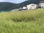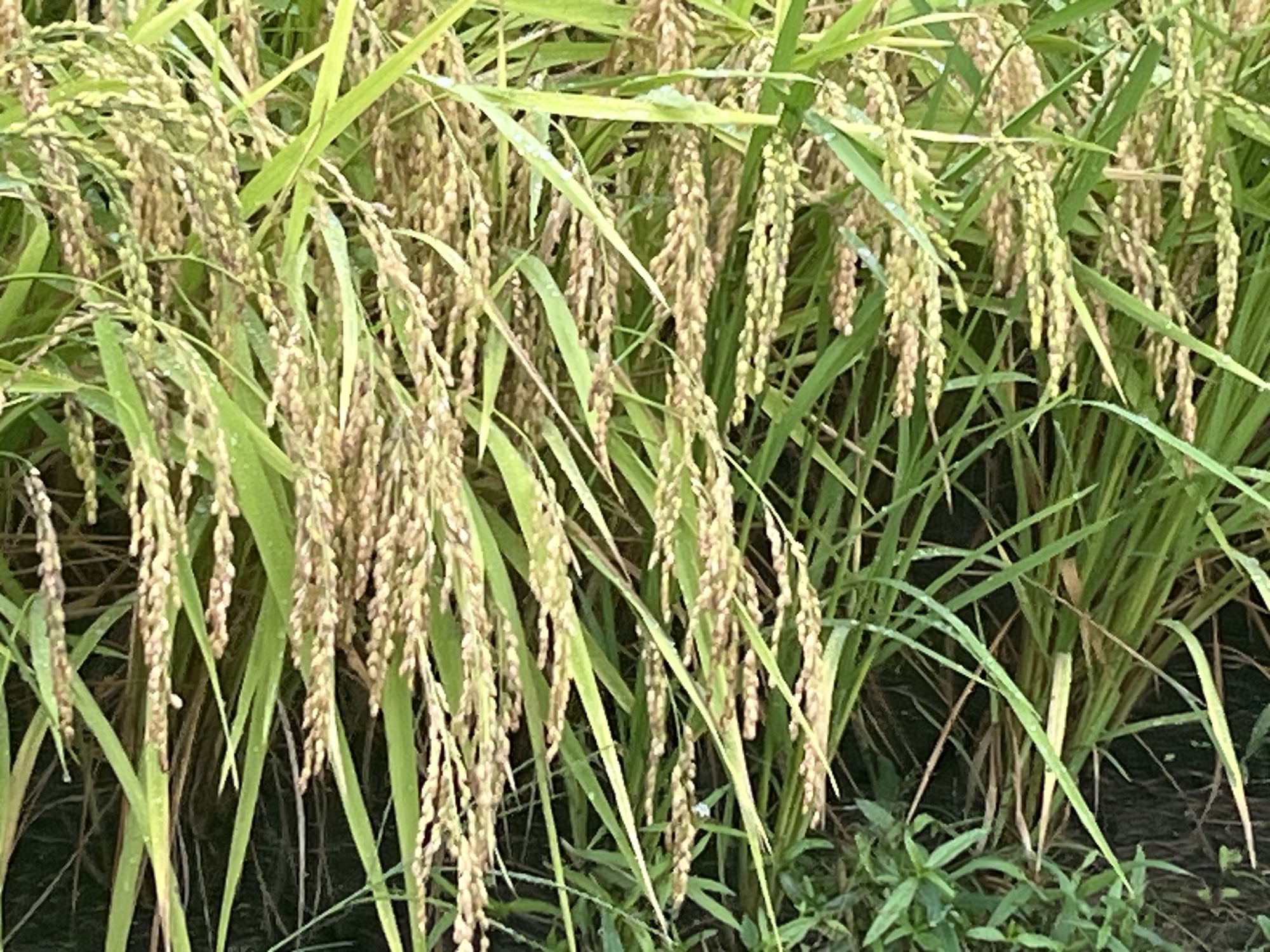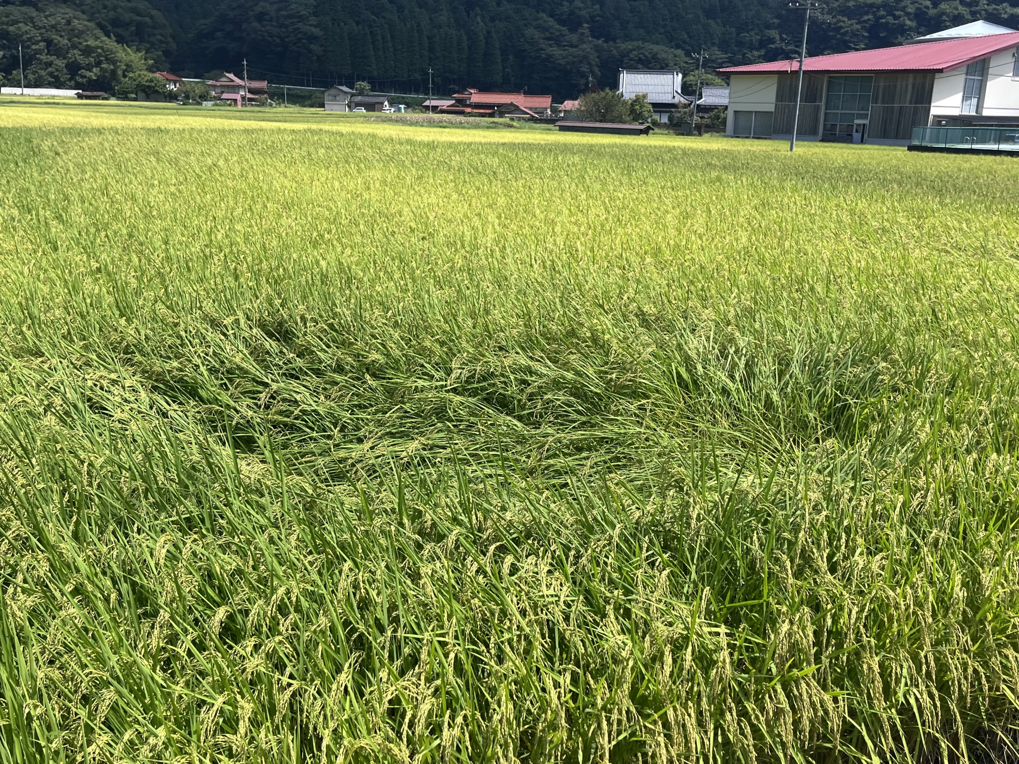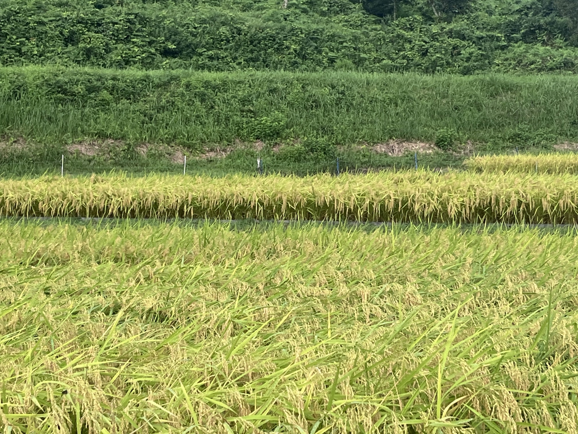 昨日の夕立ち(豪雨・雷雨)で、稲が所々、倒れていますね.
