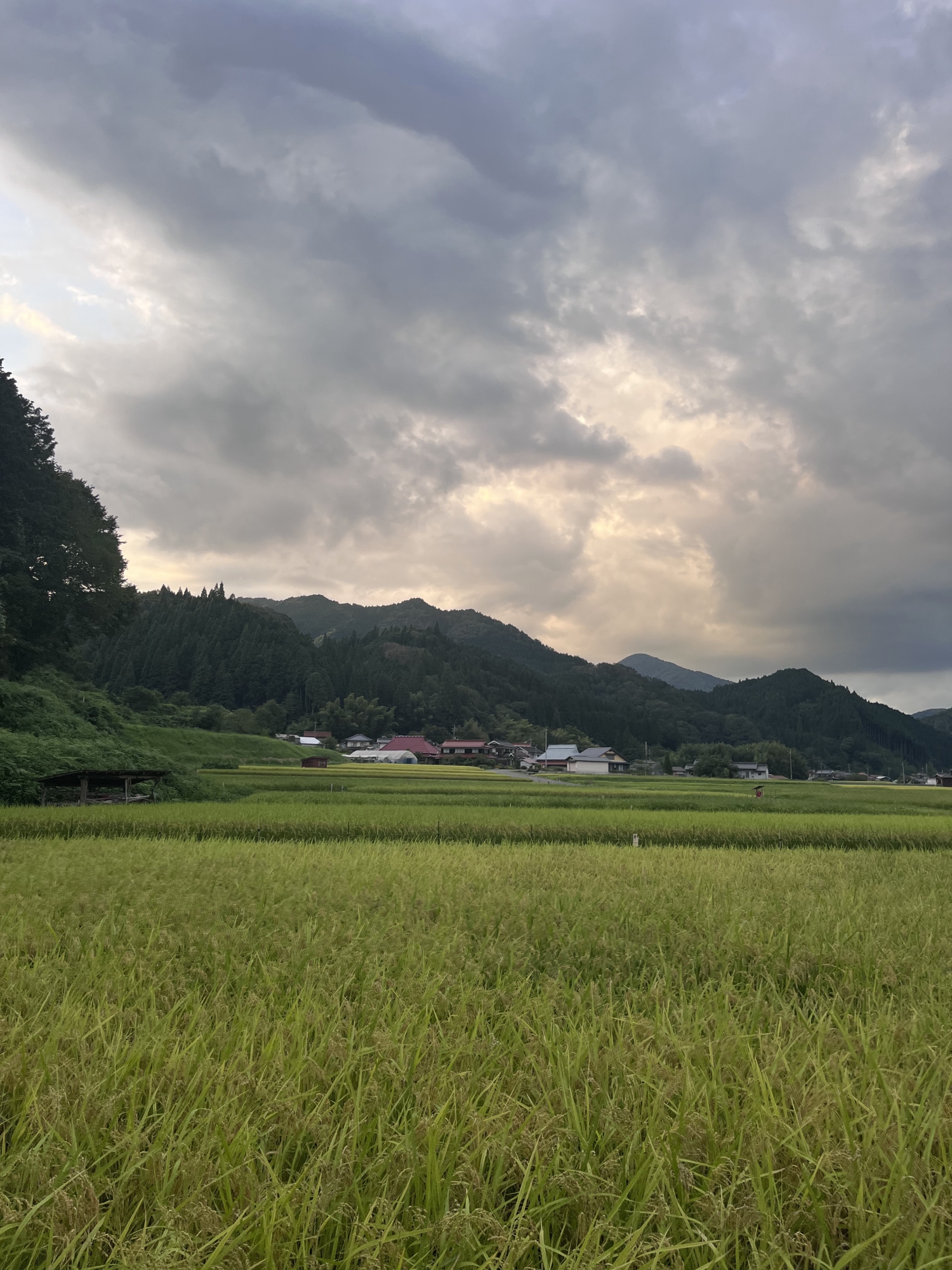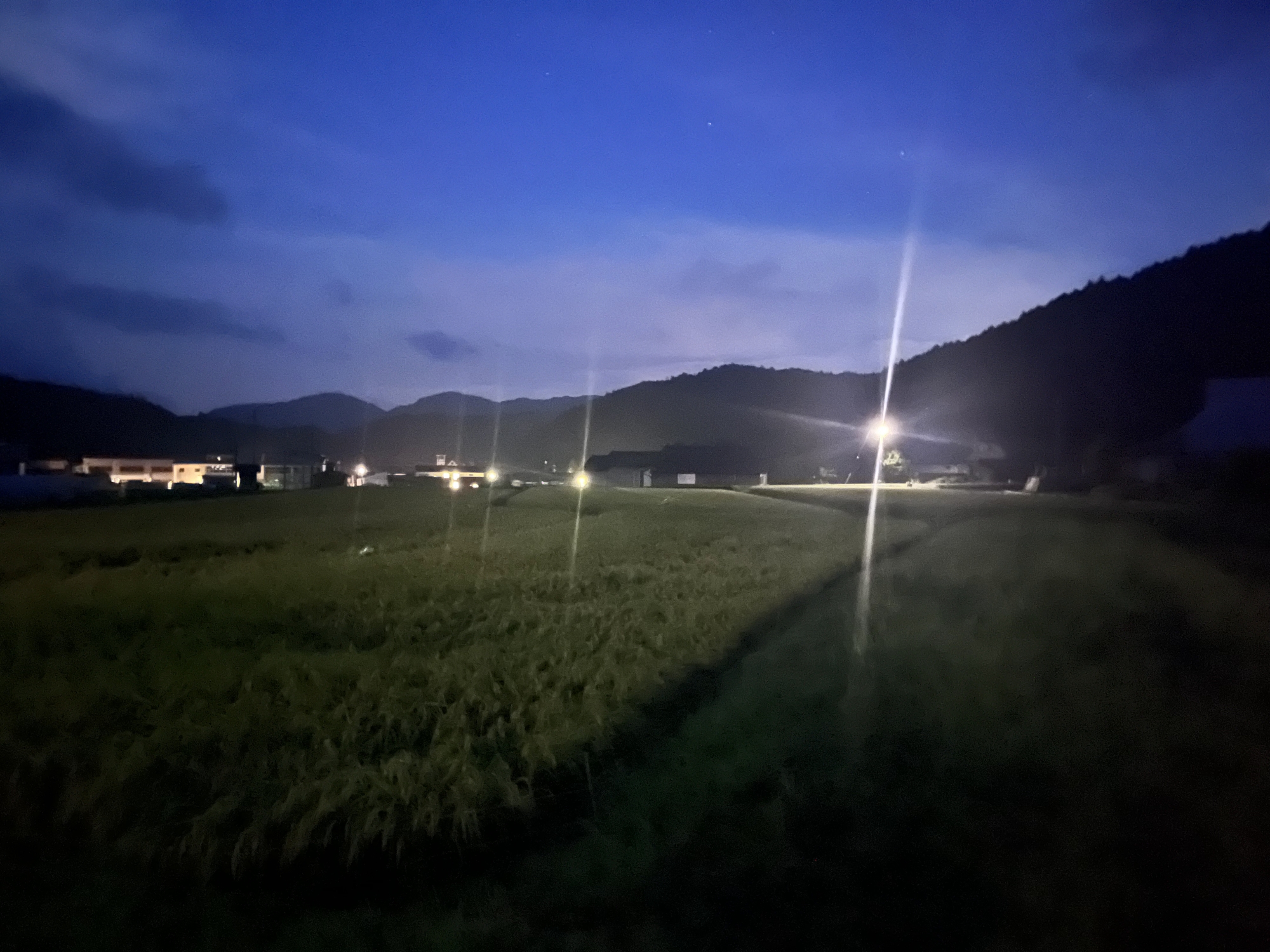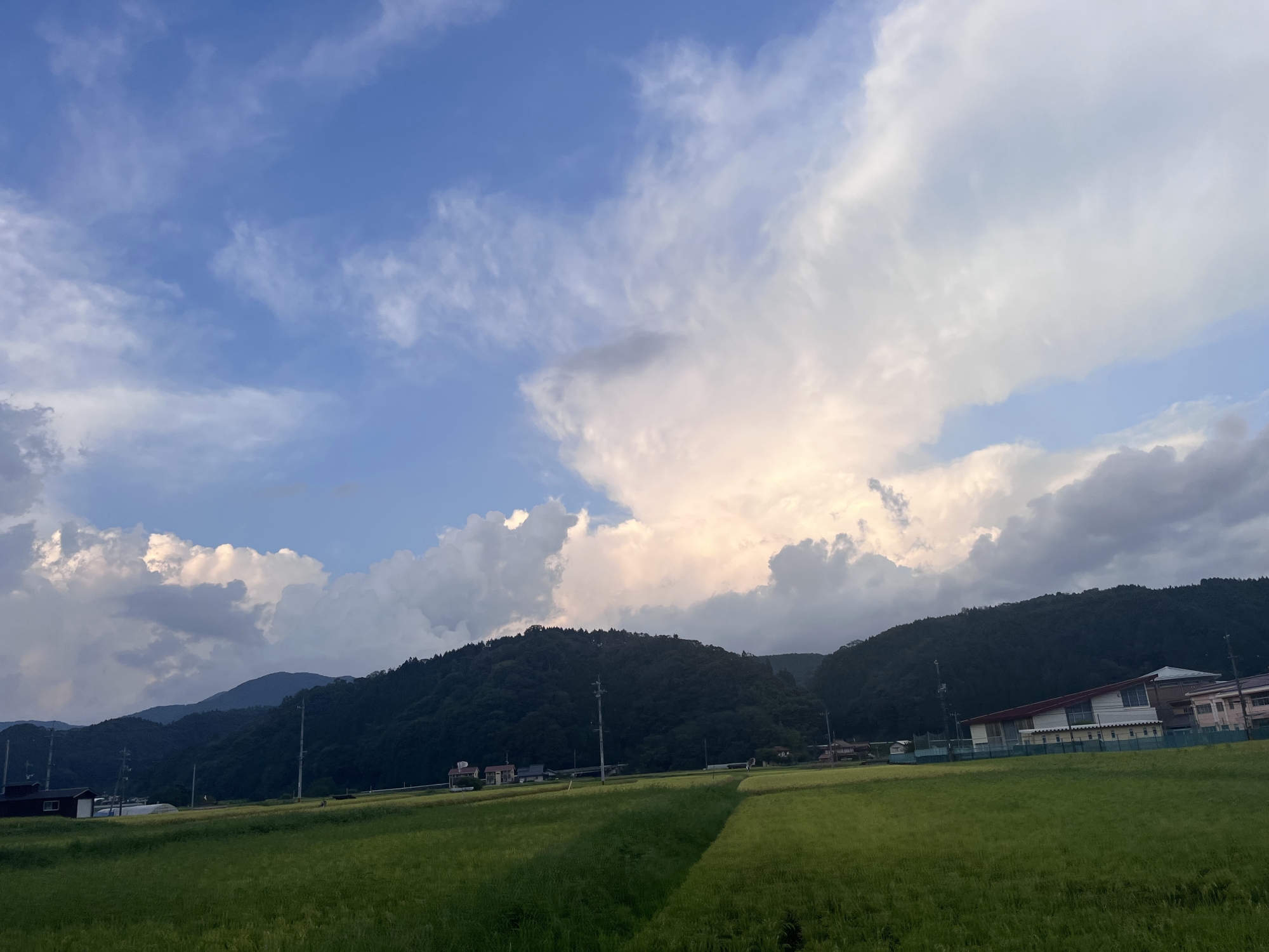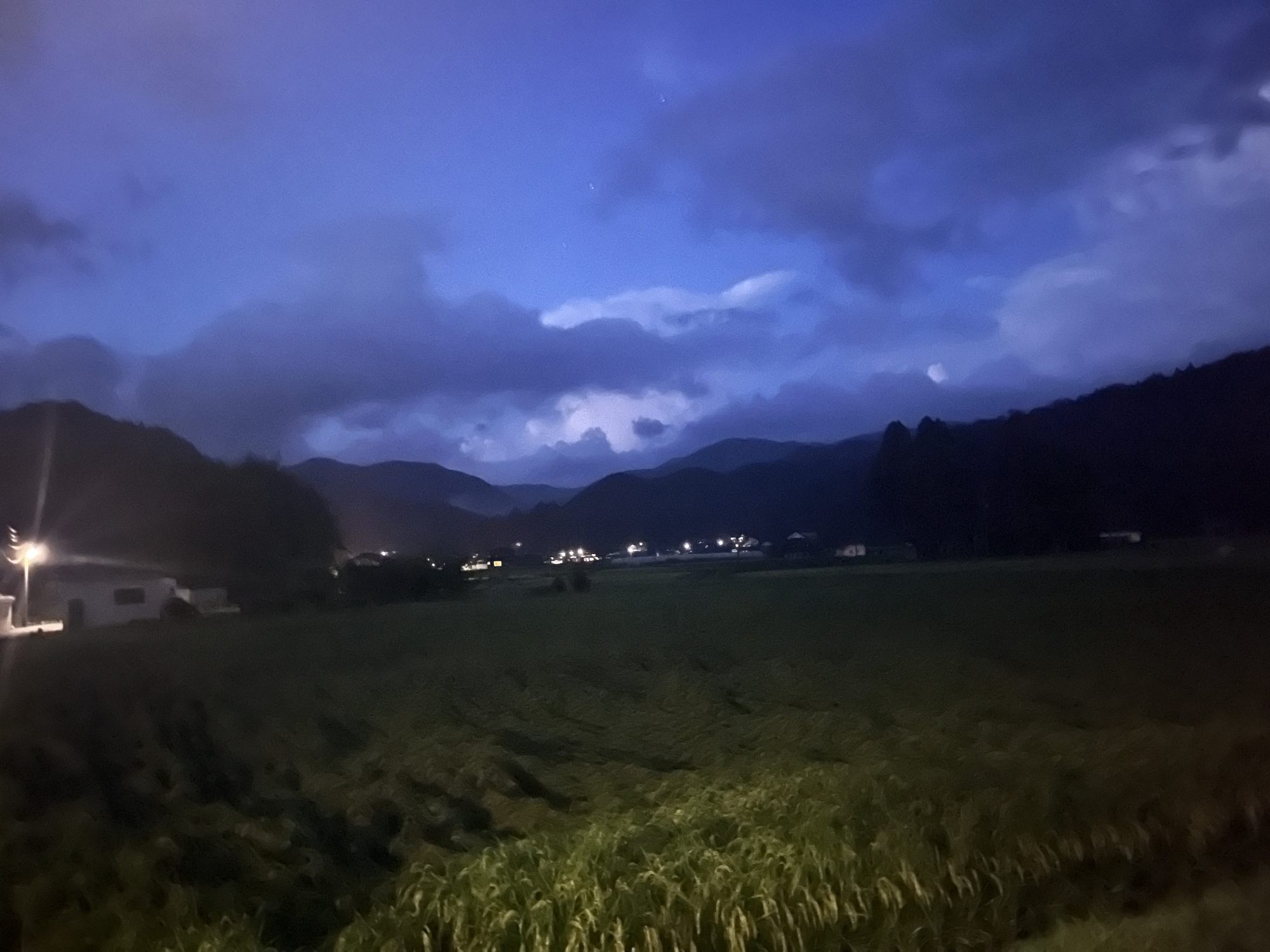 昨日の夕立ち(豪雨・雷雨)で、稲が所々、倒れていますね.