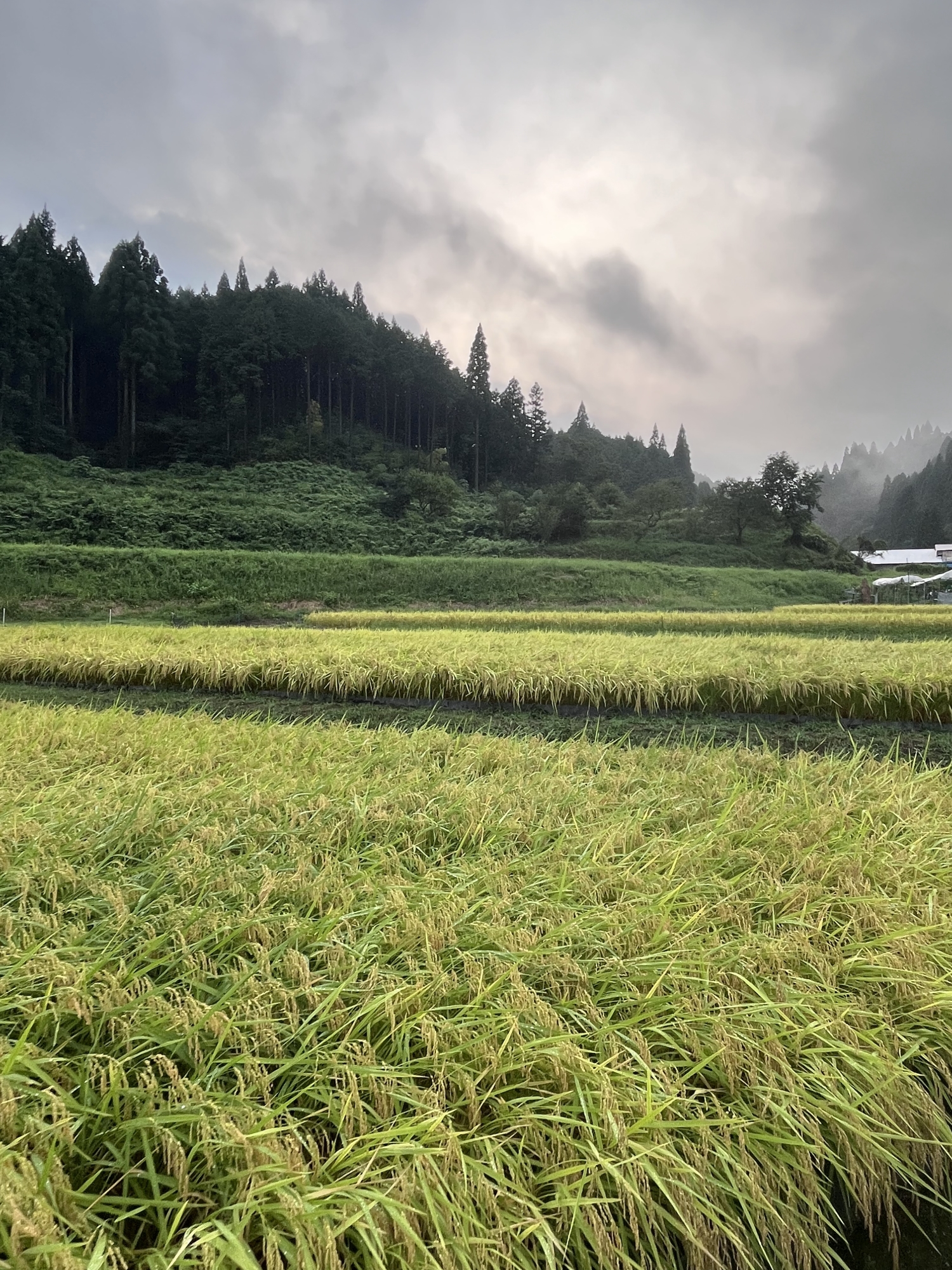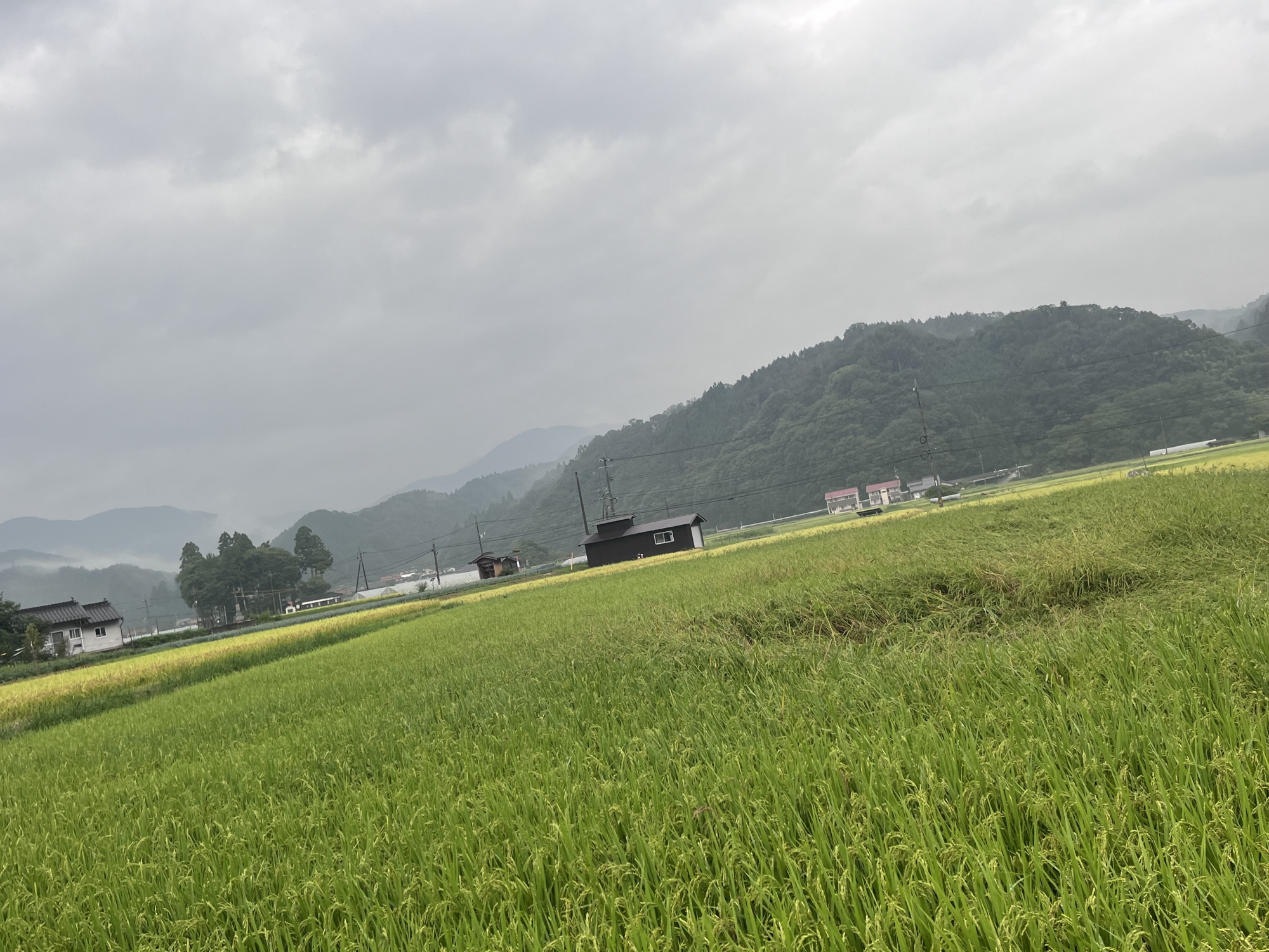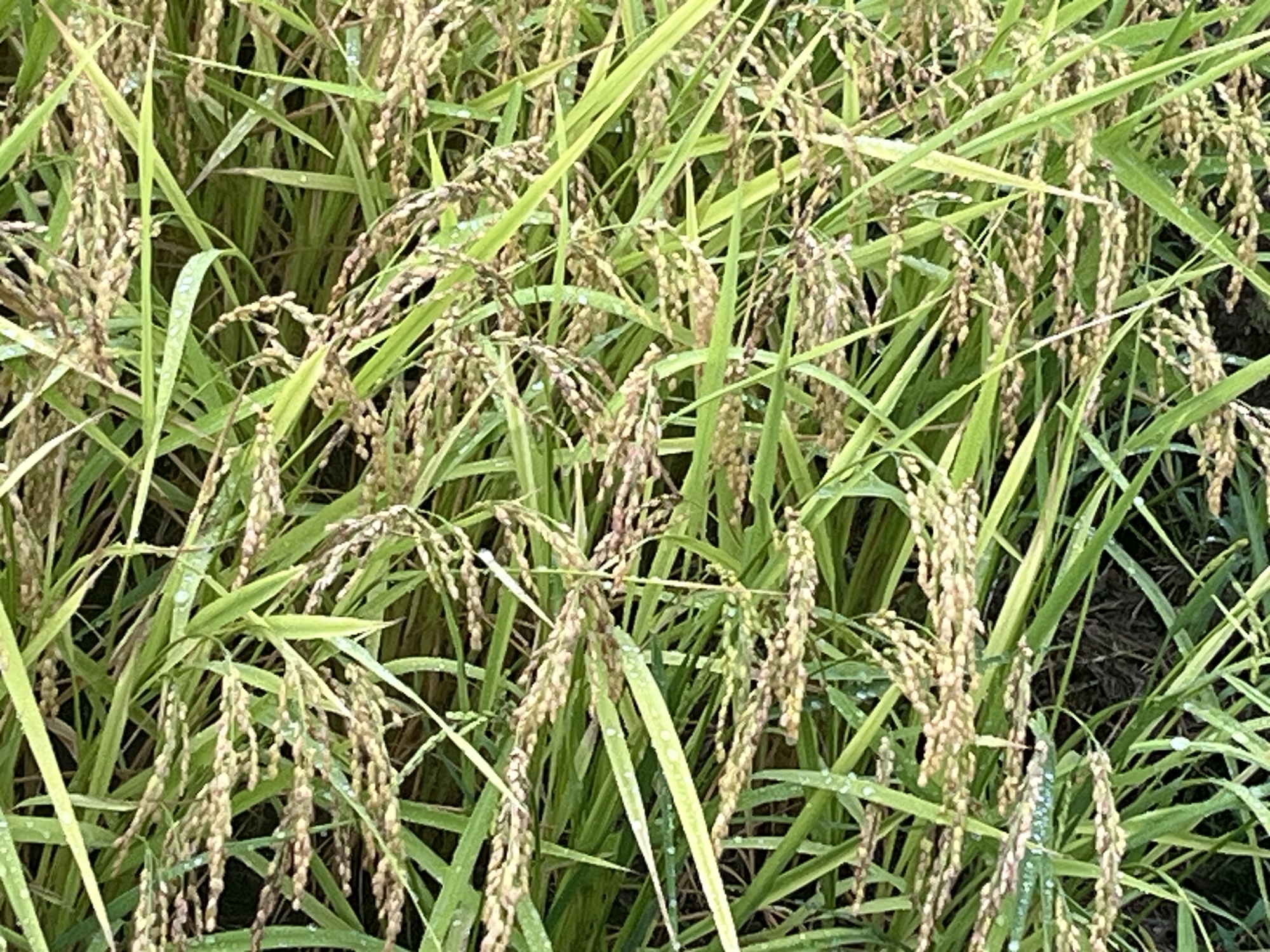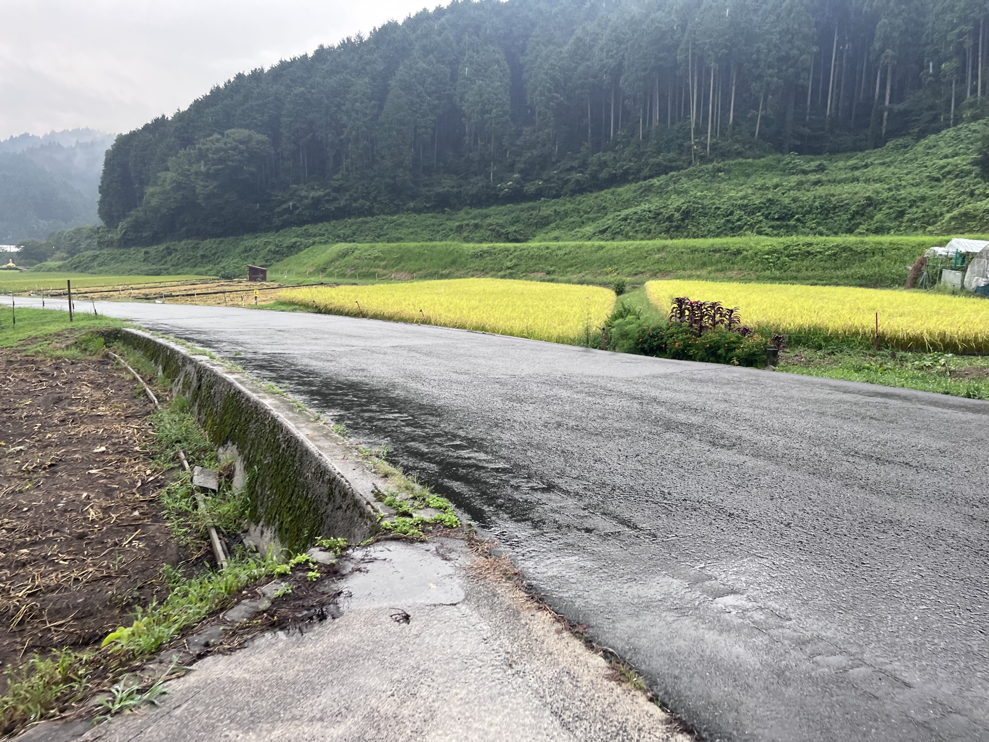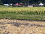 おや、稲刈り終わっていますね.~雨で倒れている稲も.