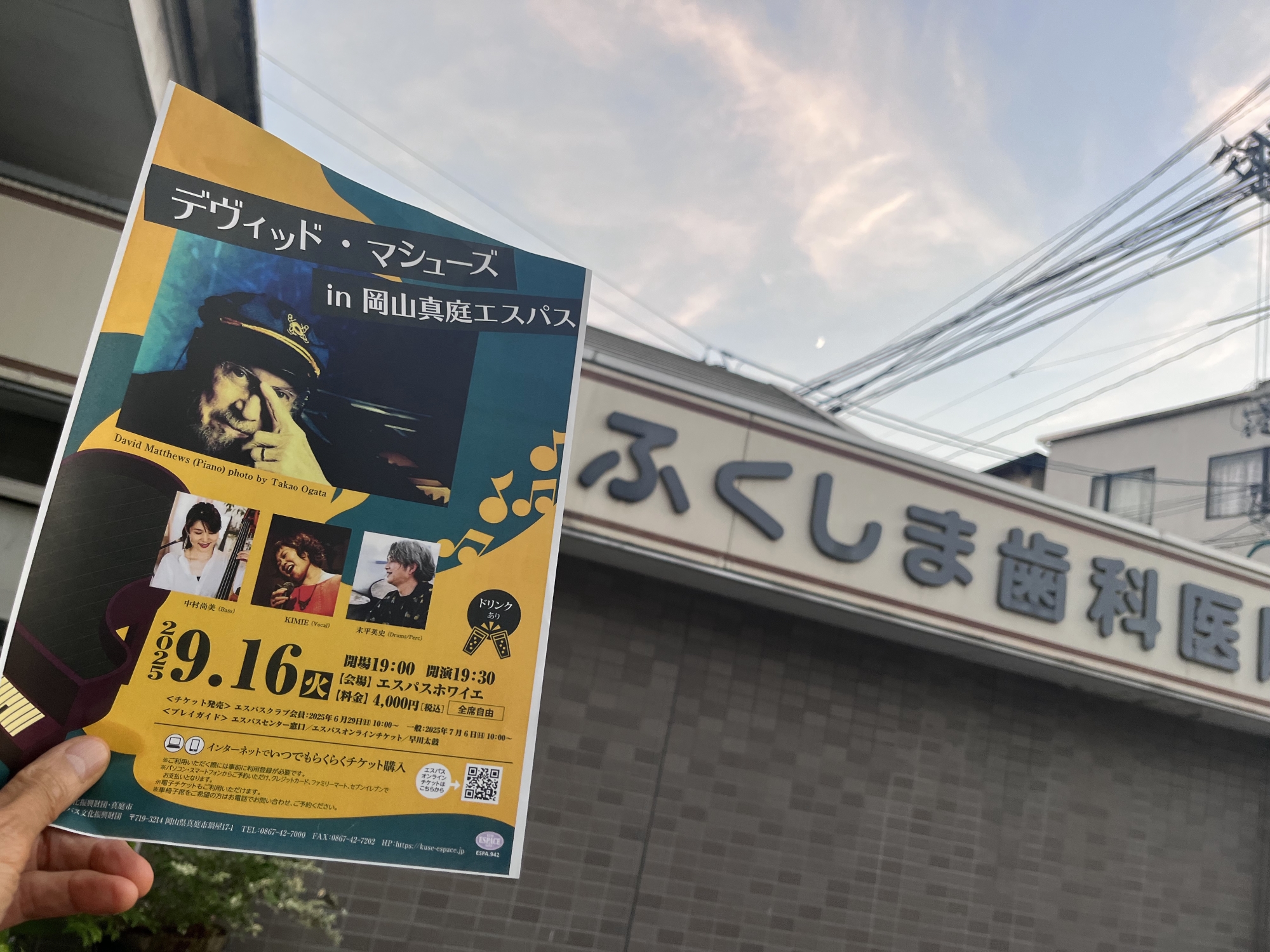 29日:今日は、9/16のデヴィッド・マシューズのコンサートチケットを福島先生から買うのに、夜……久世へ.