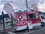 夕方から東へ.とあるスーパーの駐車場にデリバリーピザの移動販売車.