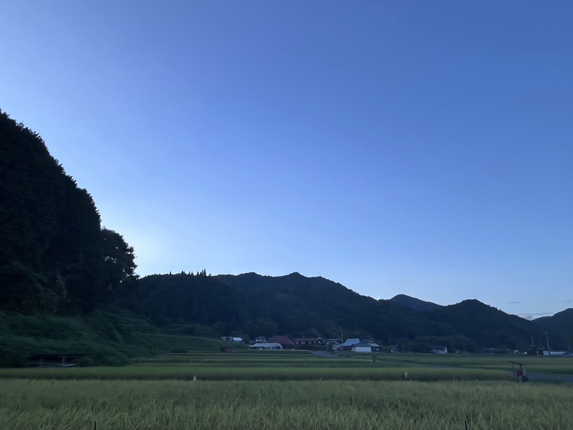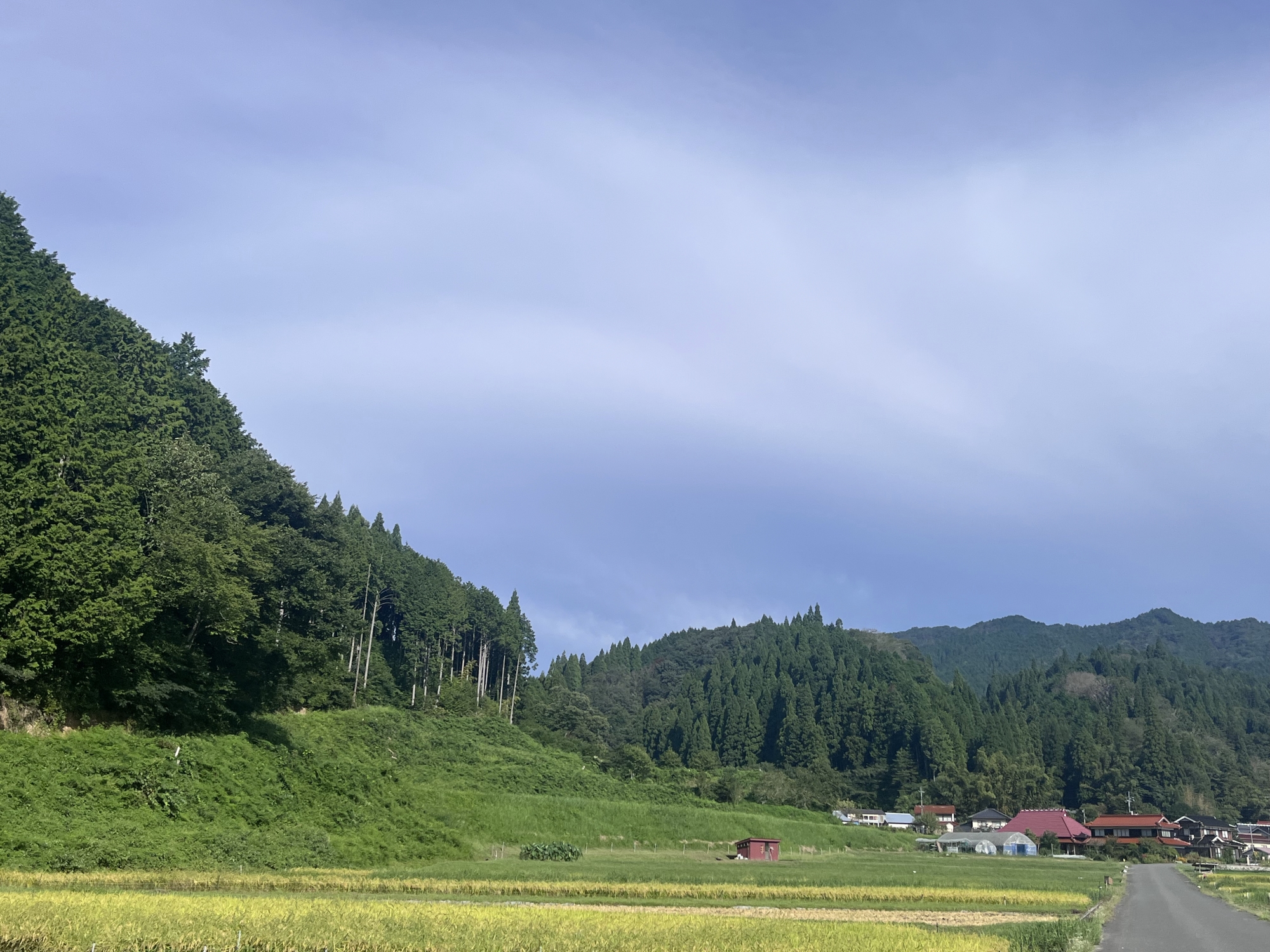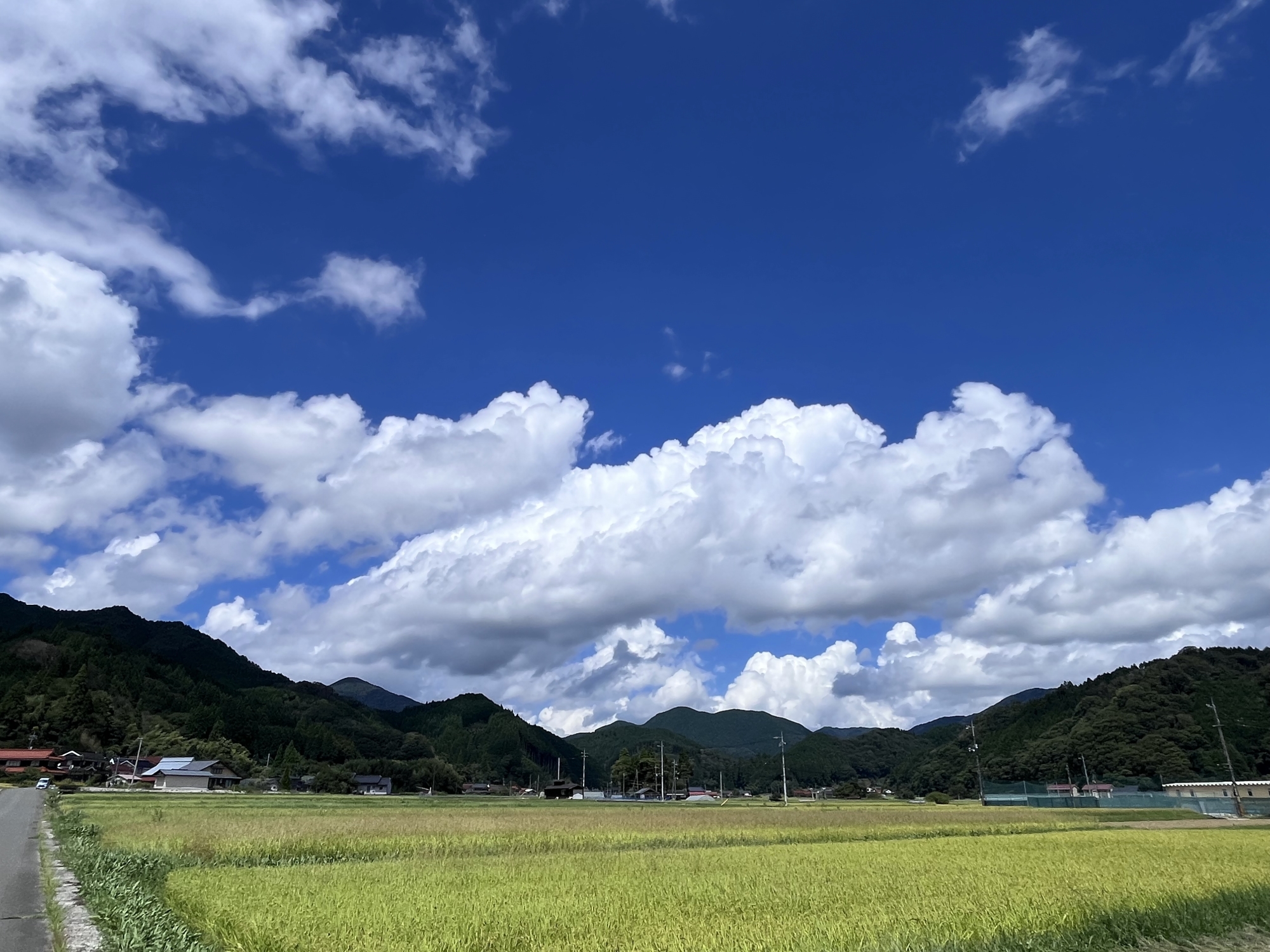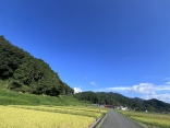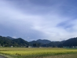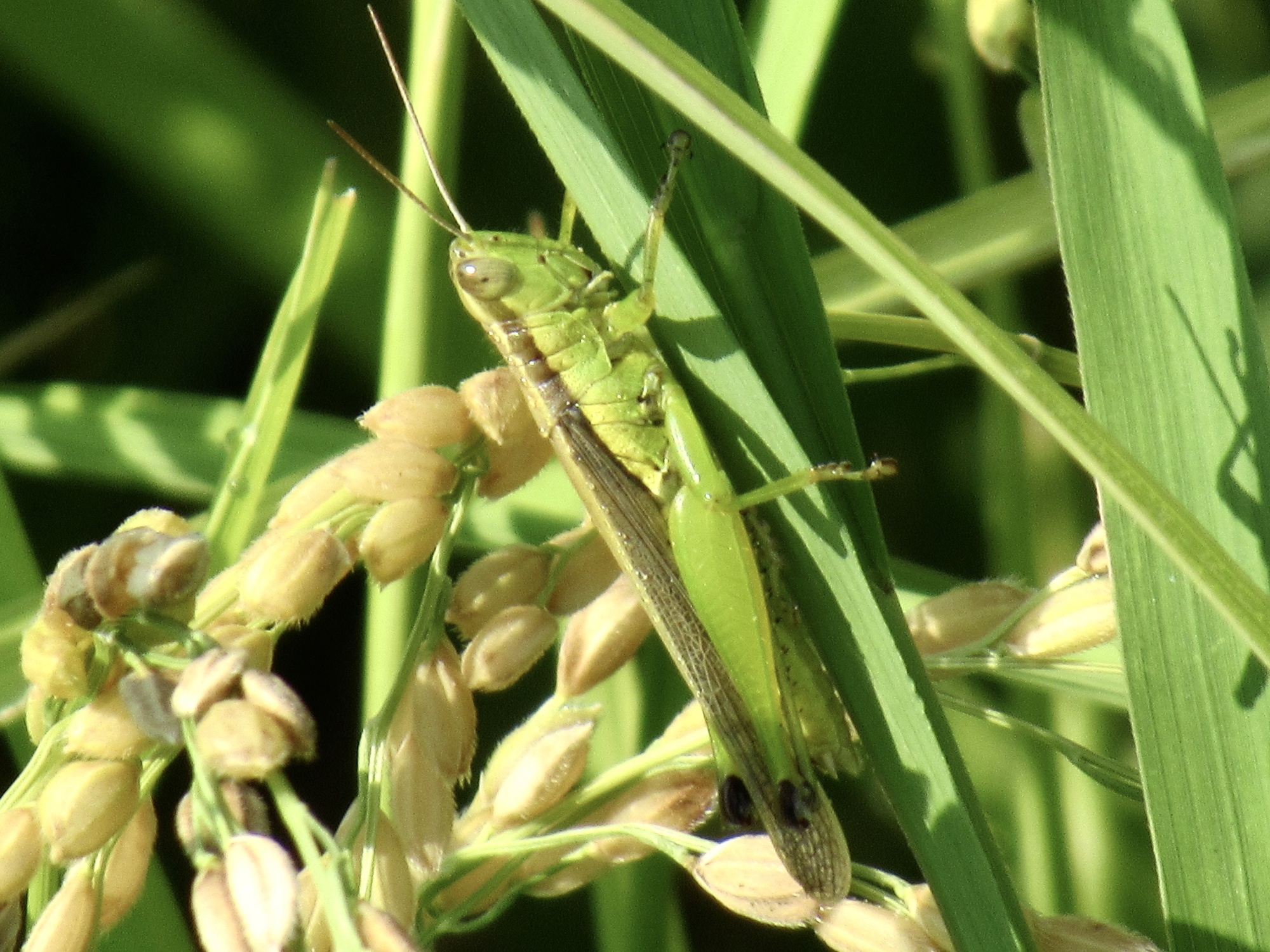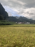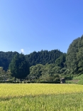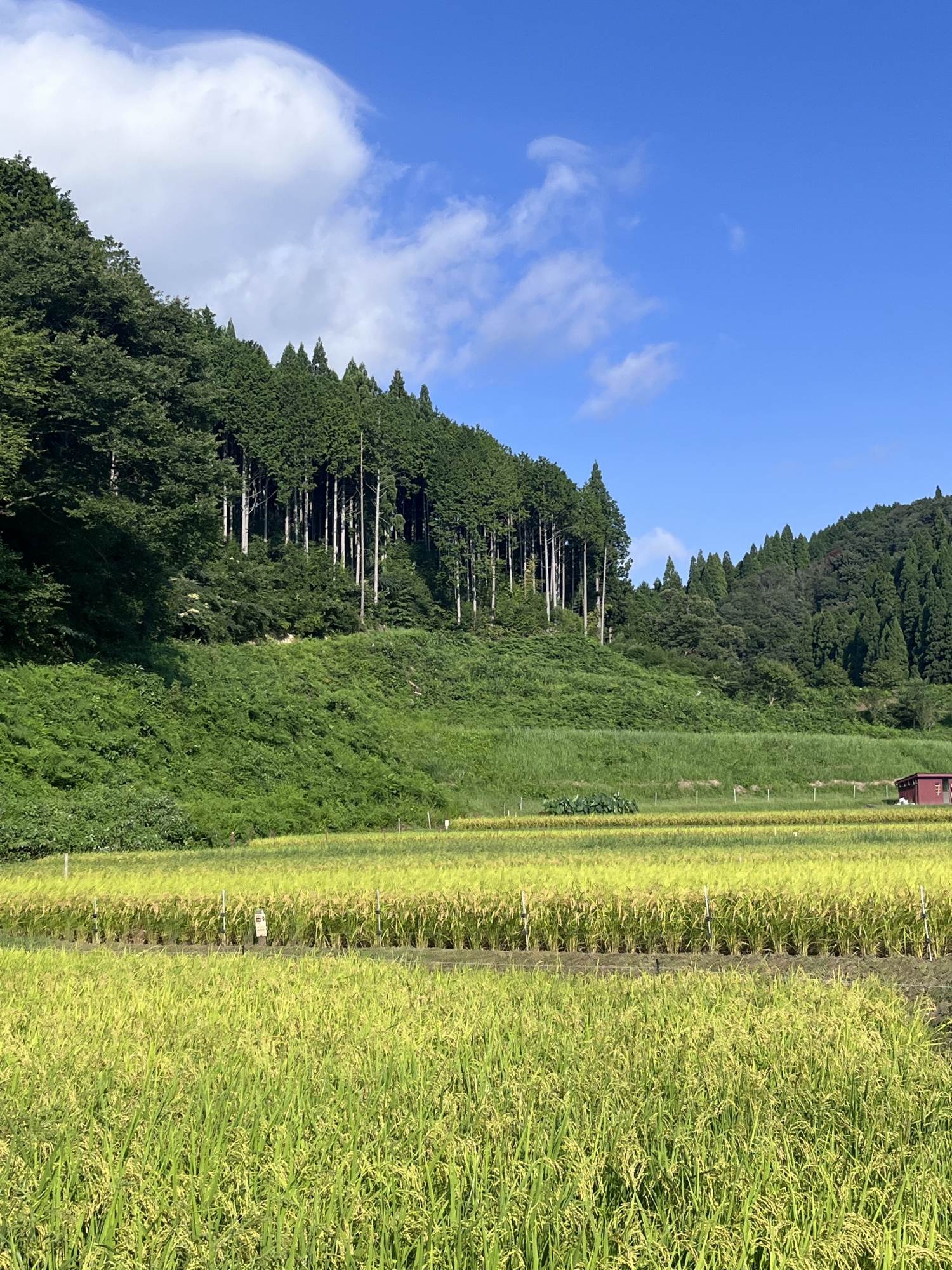 あれ、午前中に稲刈りだったのかな? そして、この緑の葉は、豆???