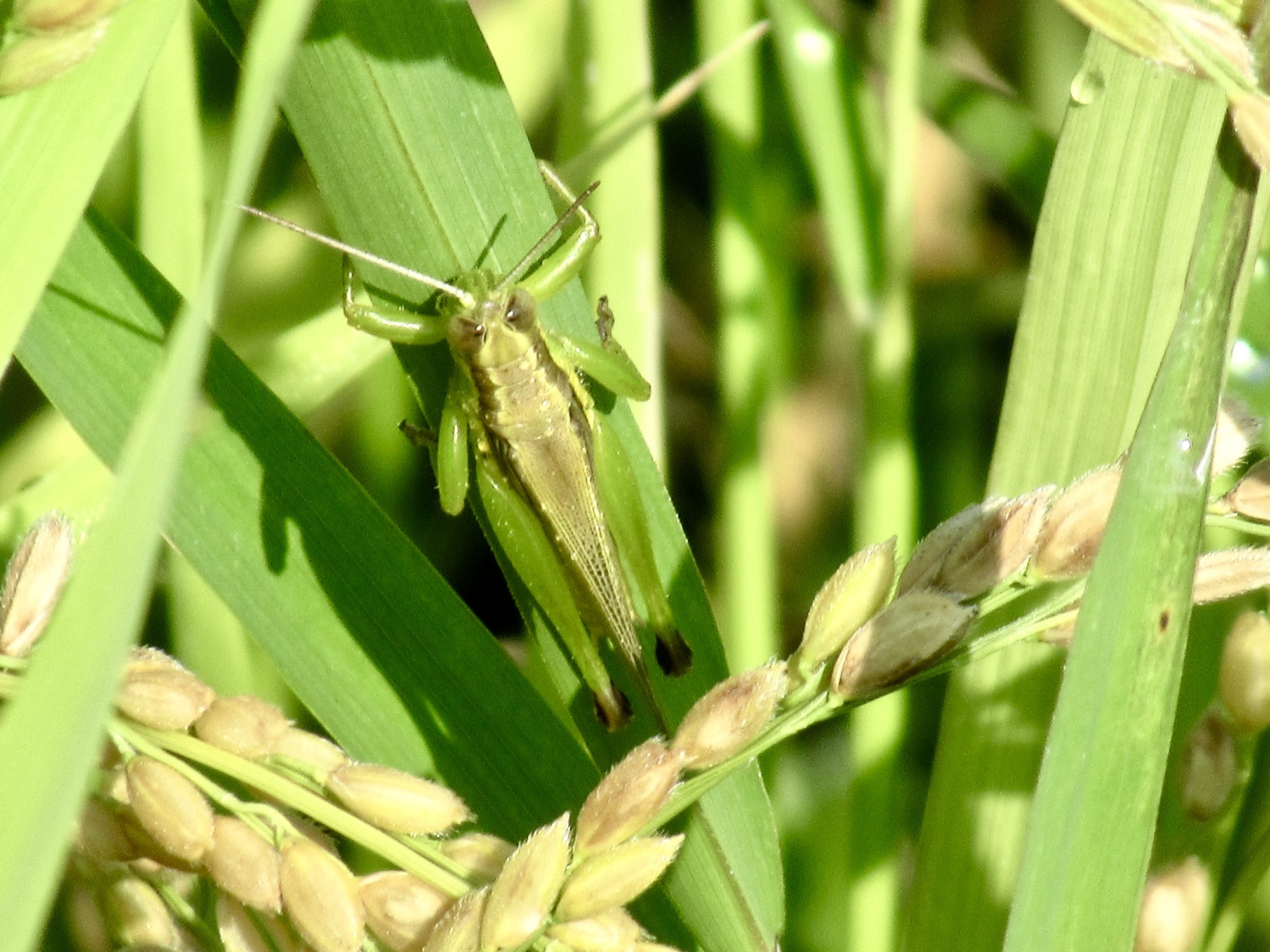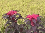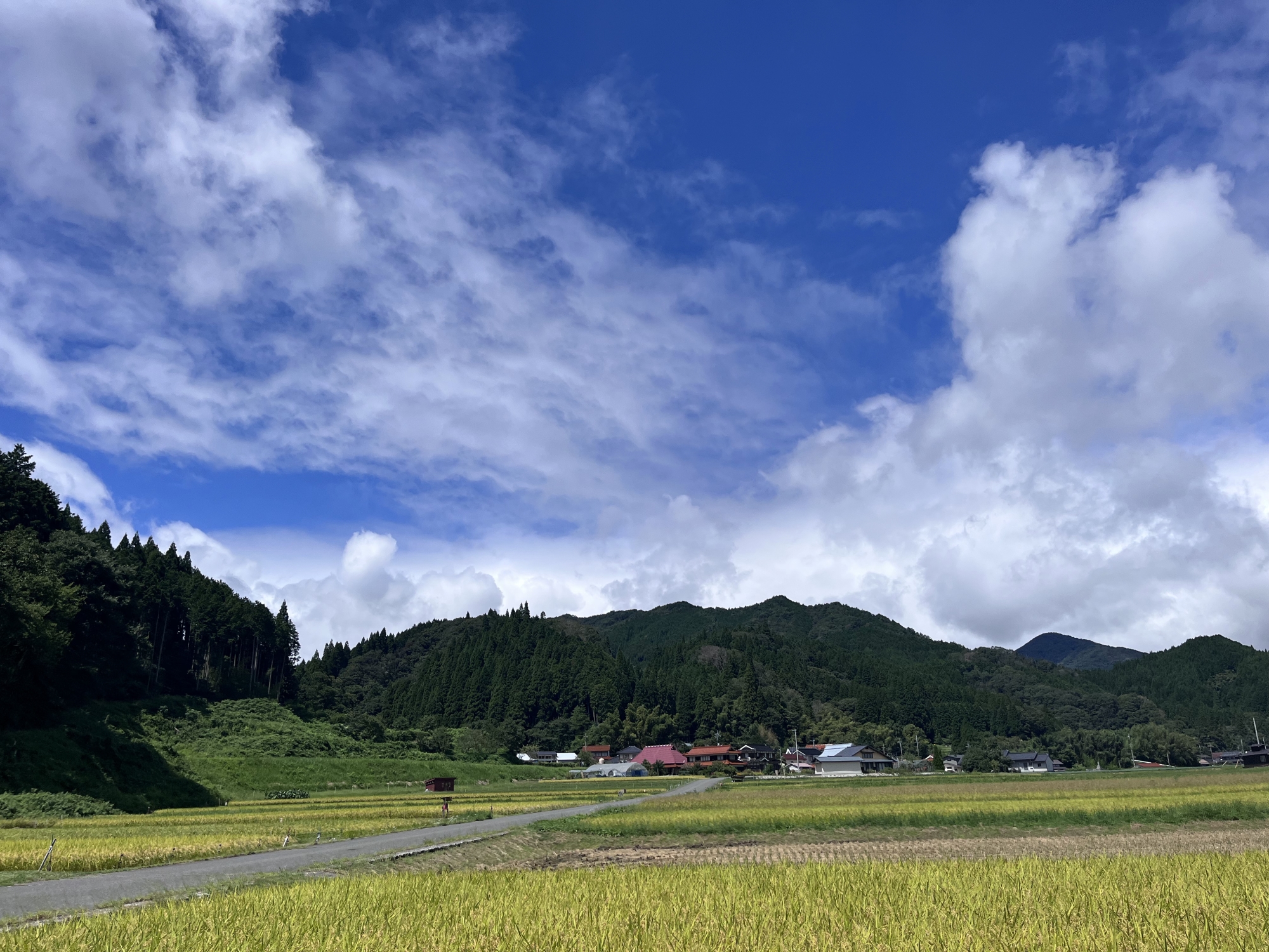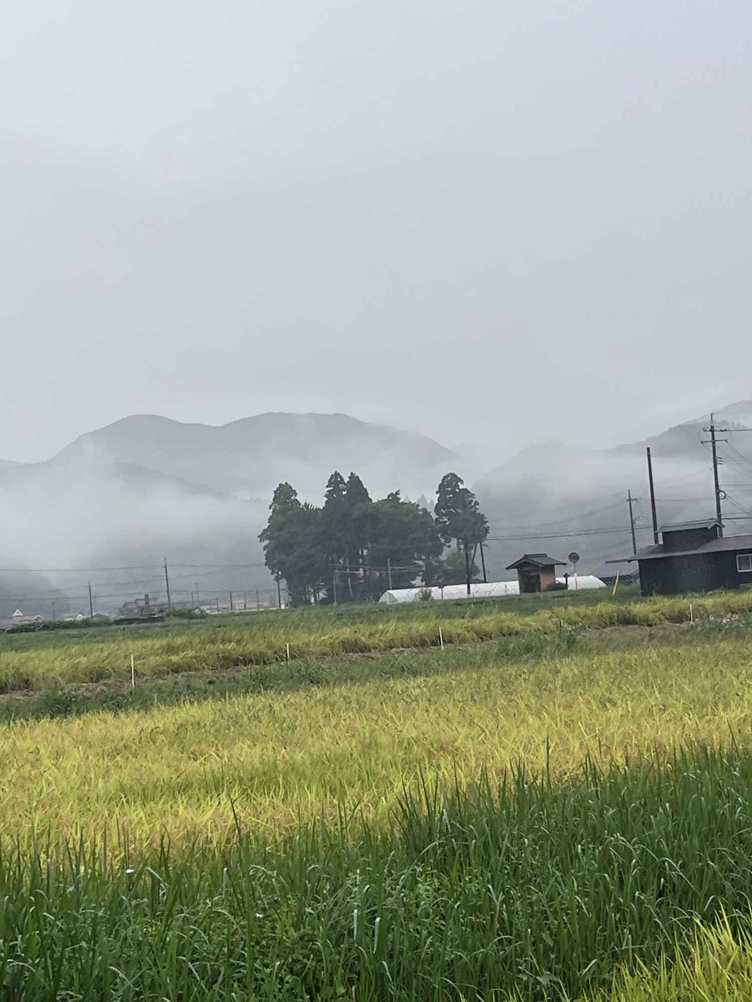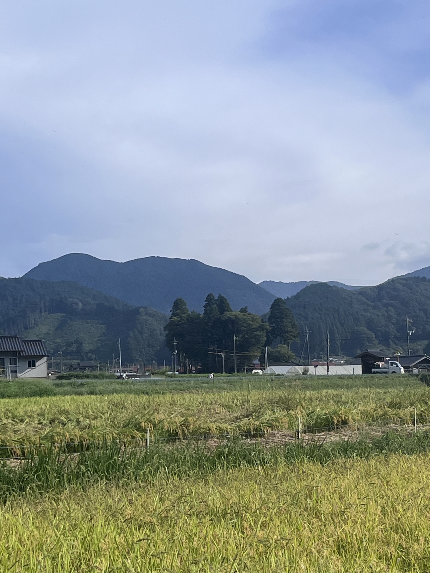 あれ、午前中に稲刈りだったのかな? そして、この緑の葉は、豆???