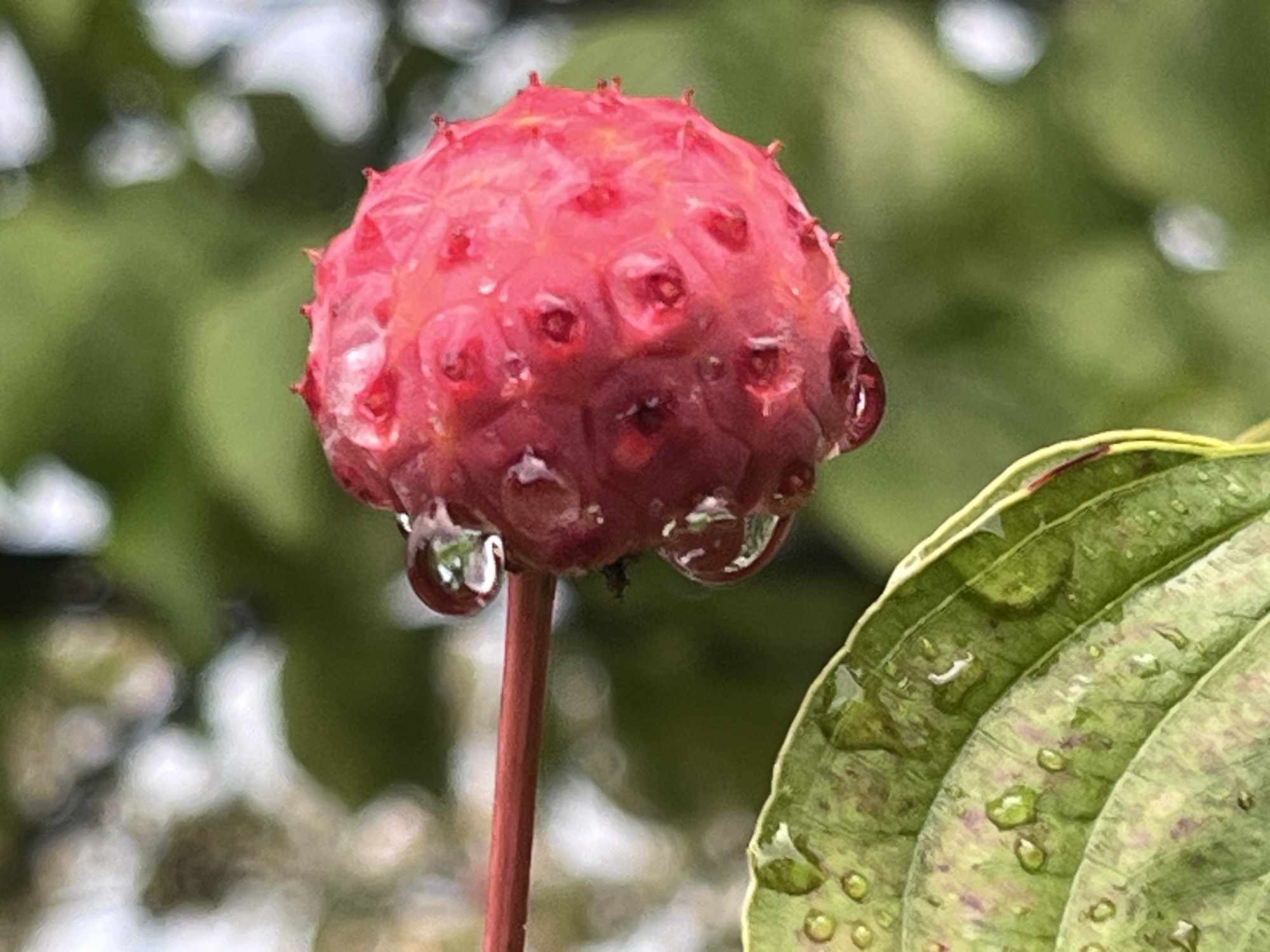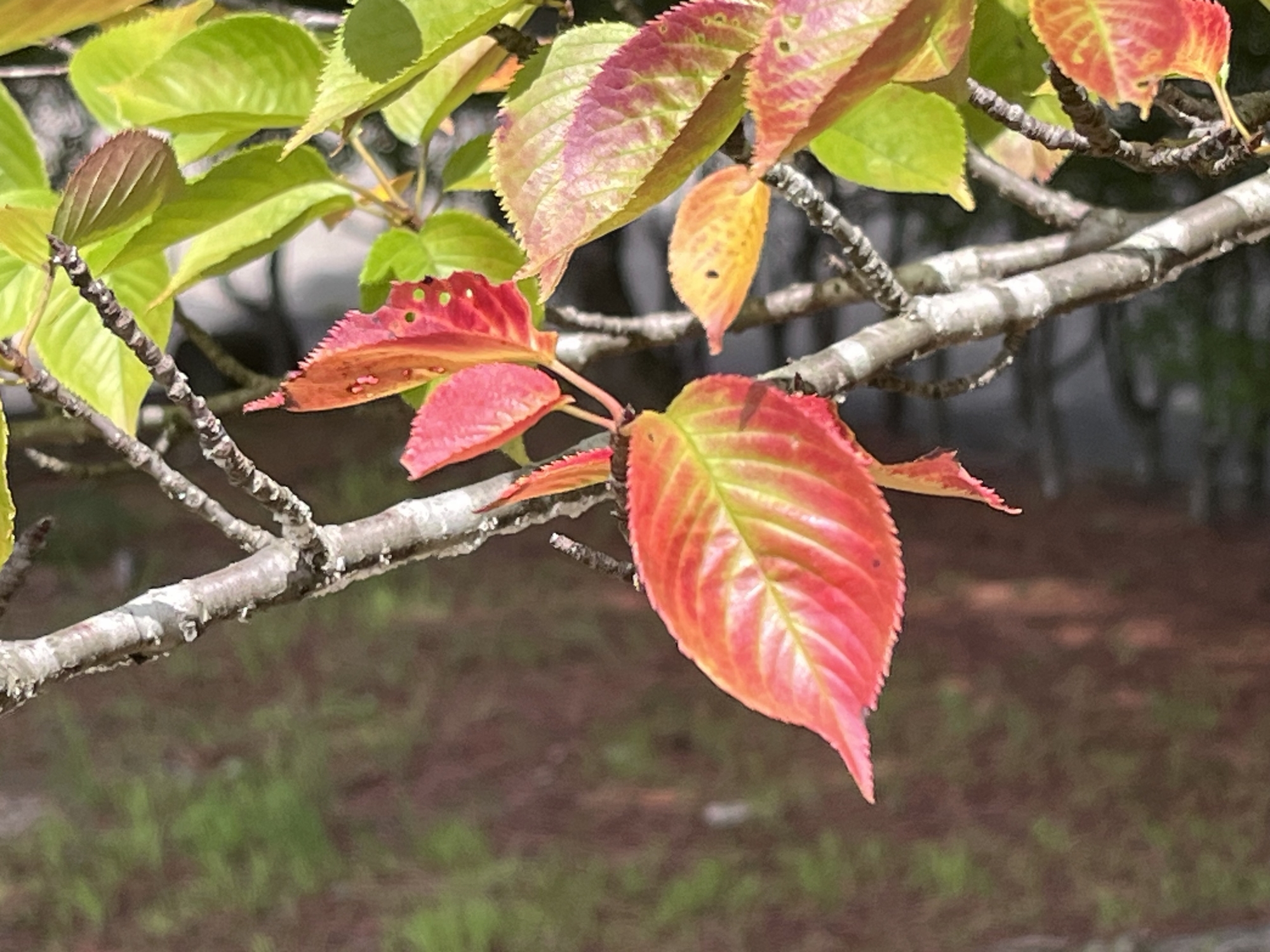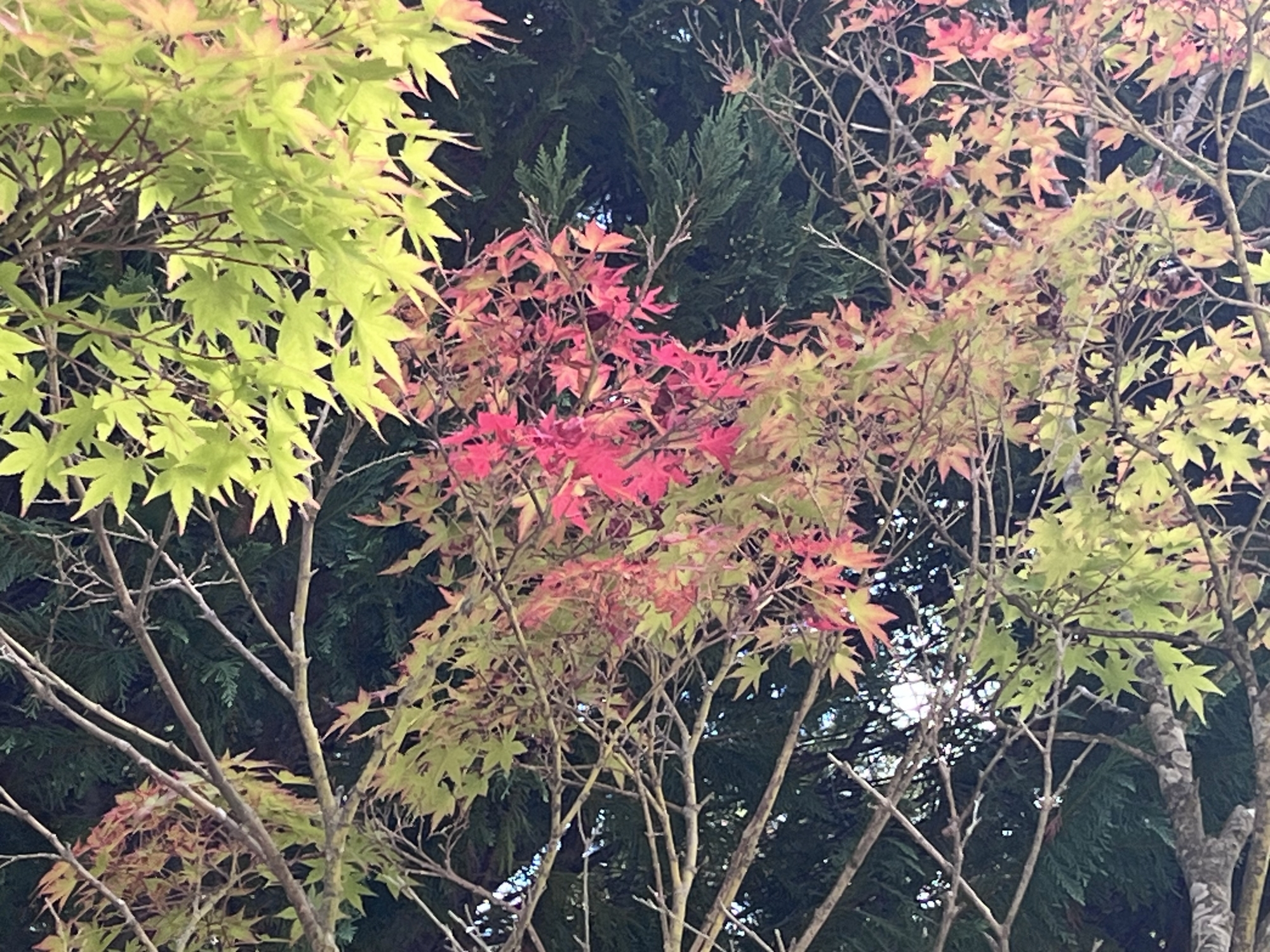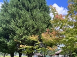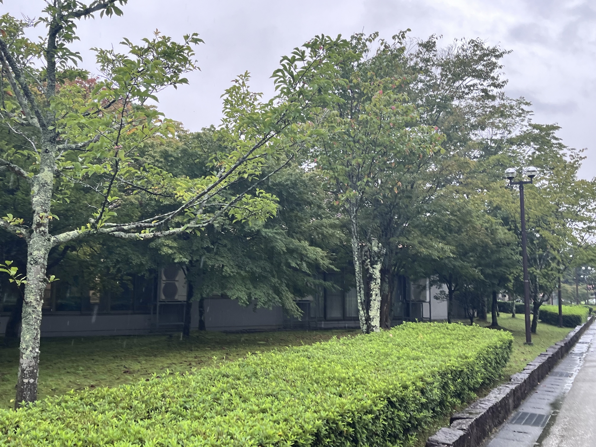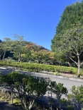 院長室の向こうヤマボウシが一番早く朱くなってきています.