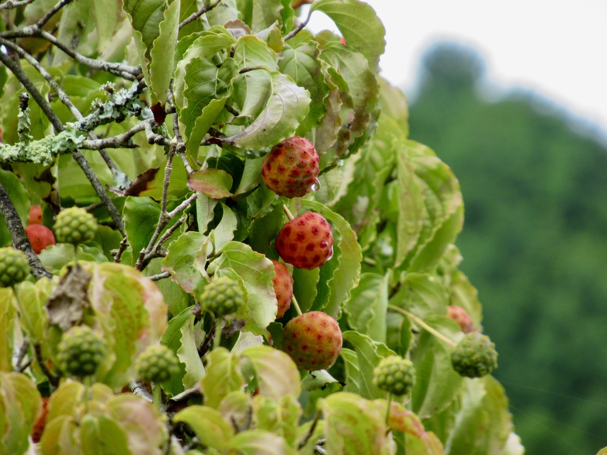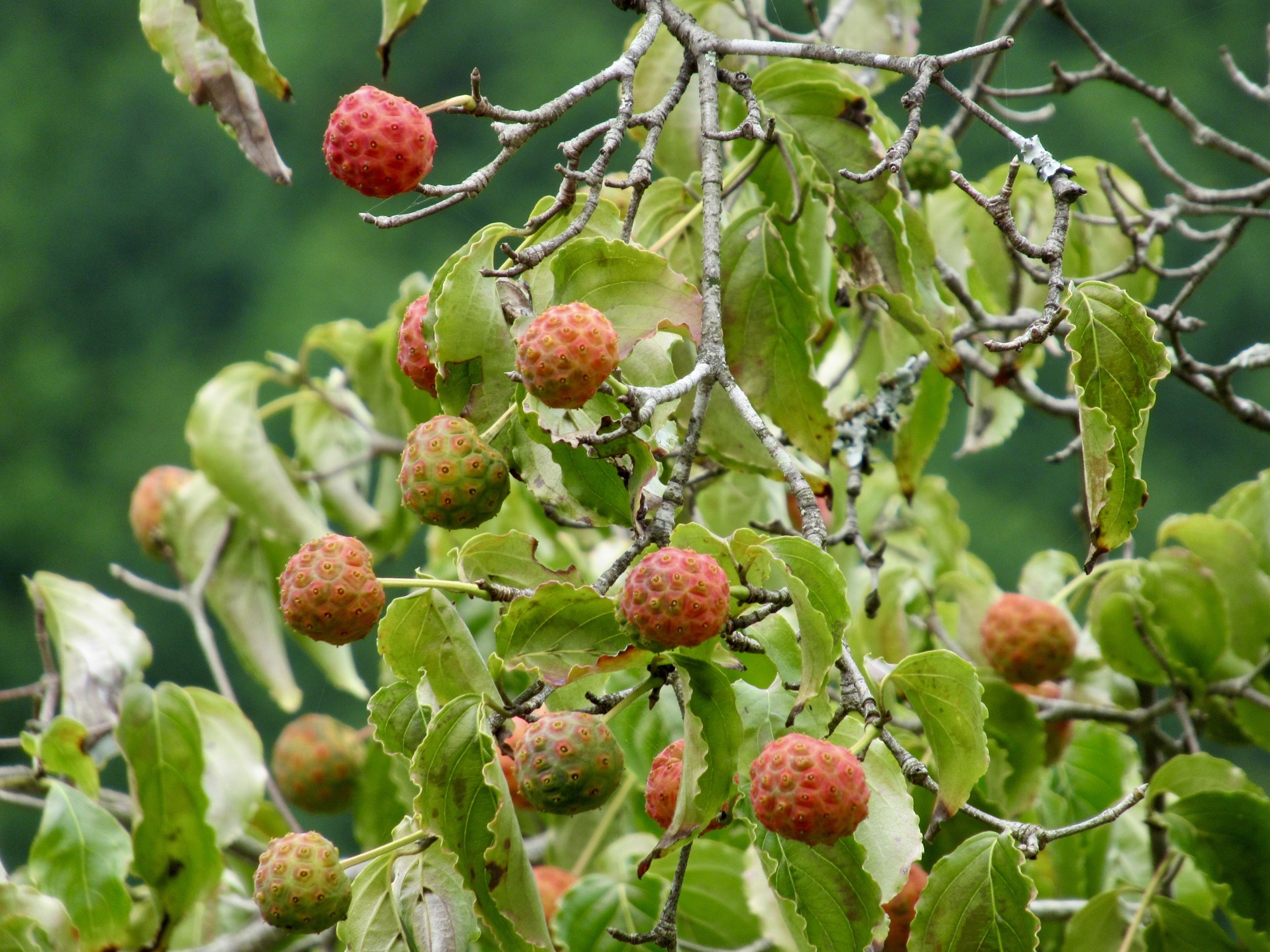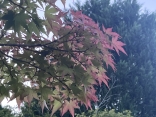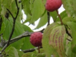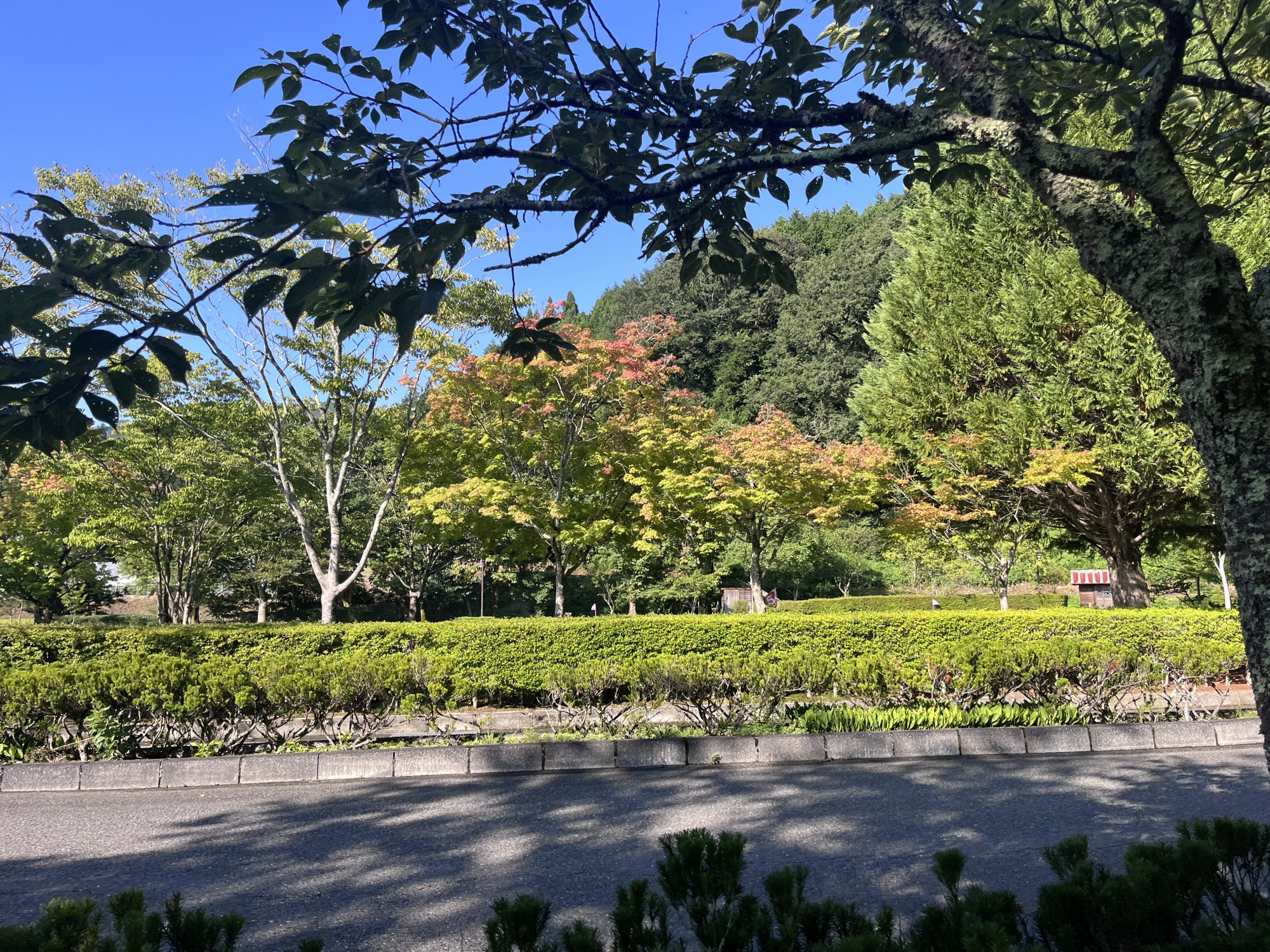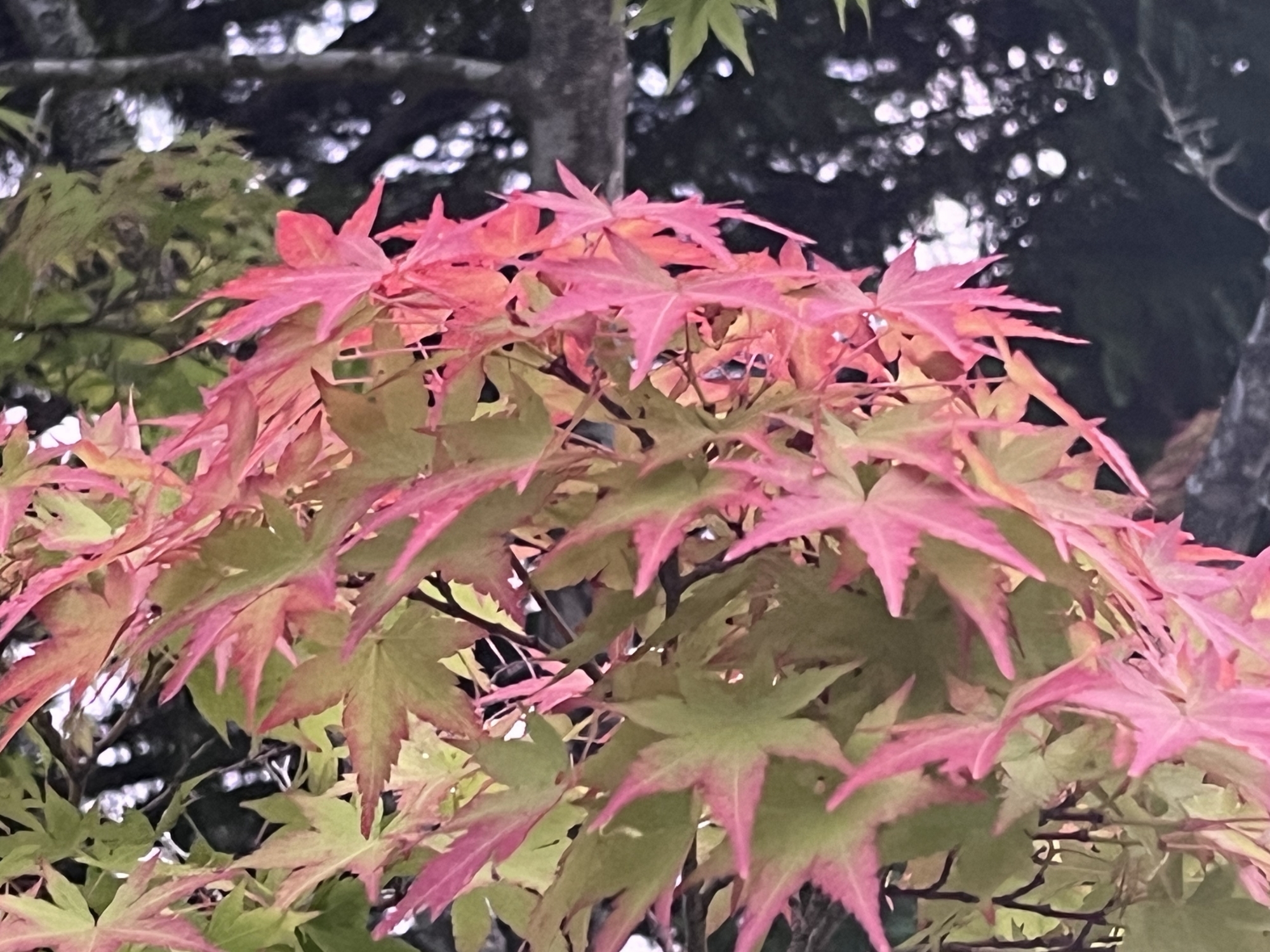 院長室の向こうヤマボウシが一番早く朱くなってきています.