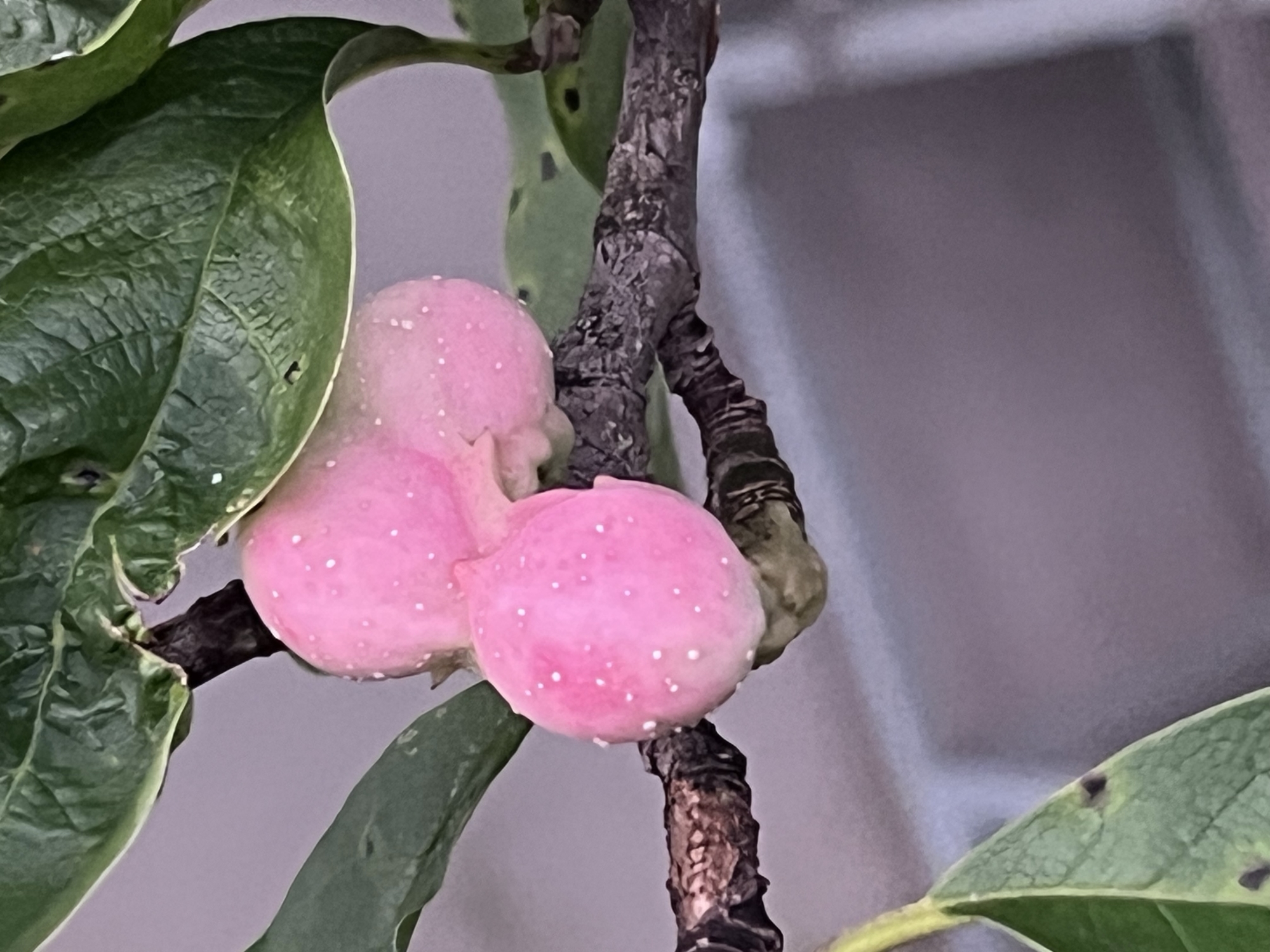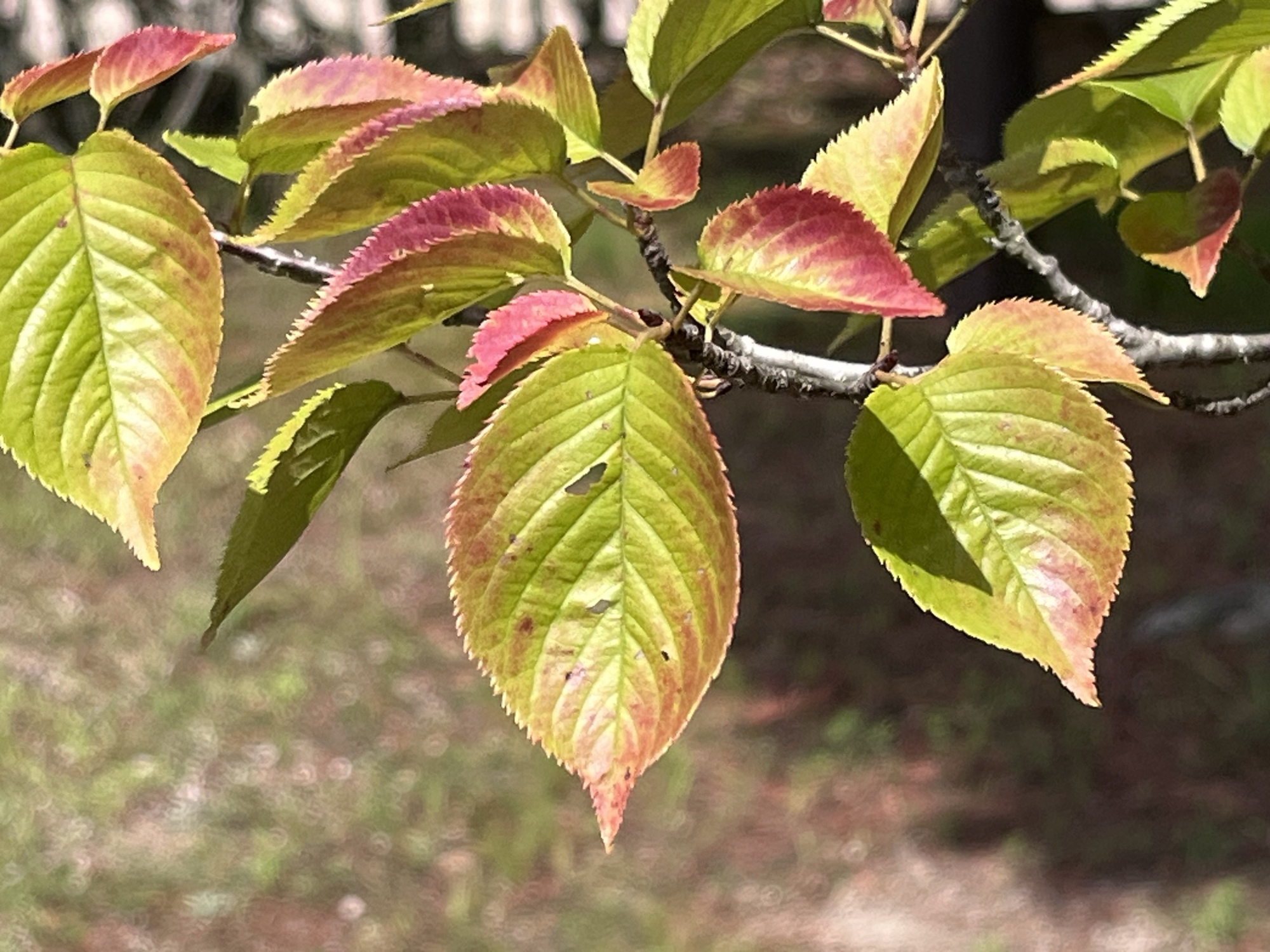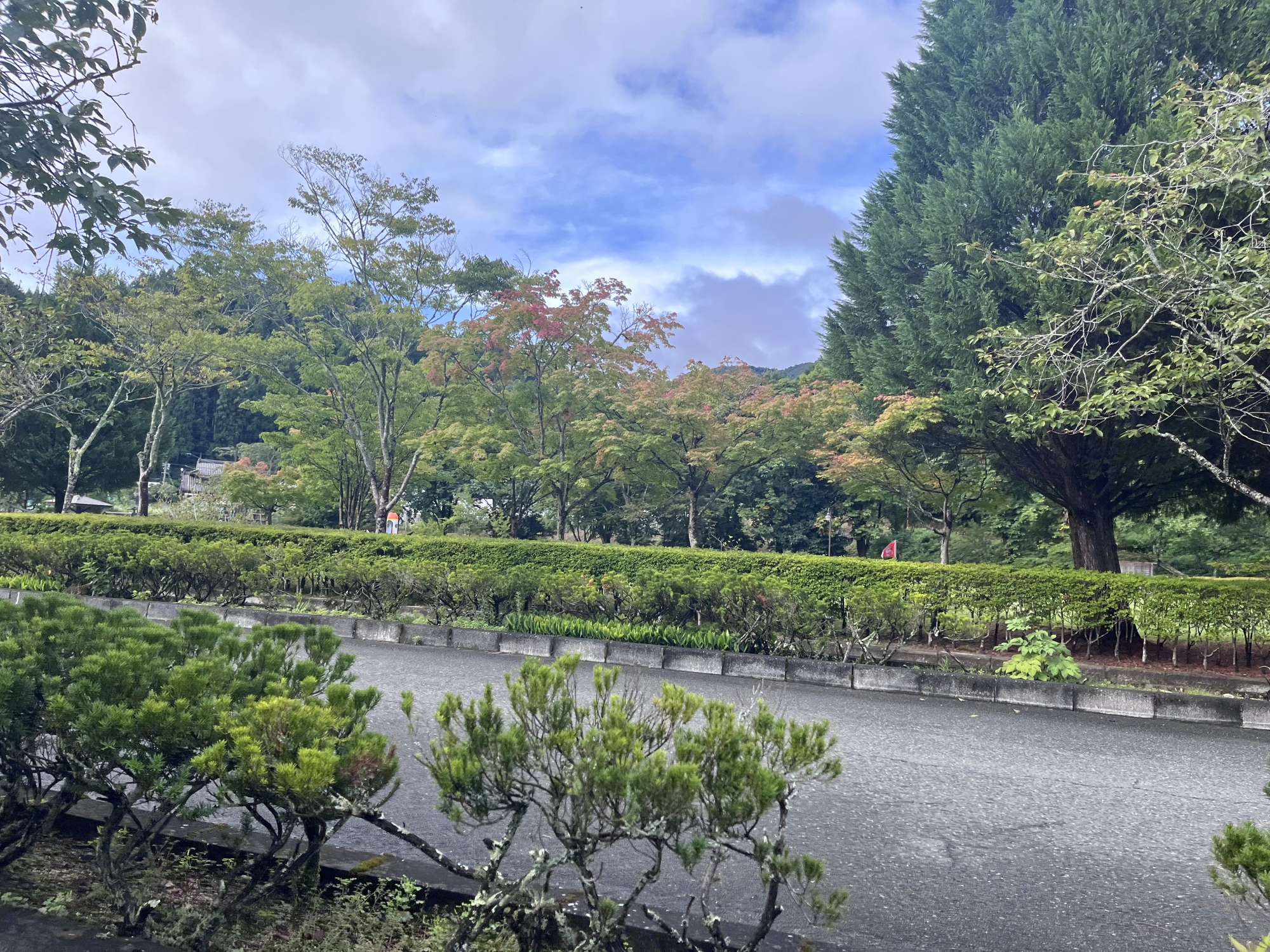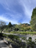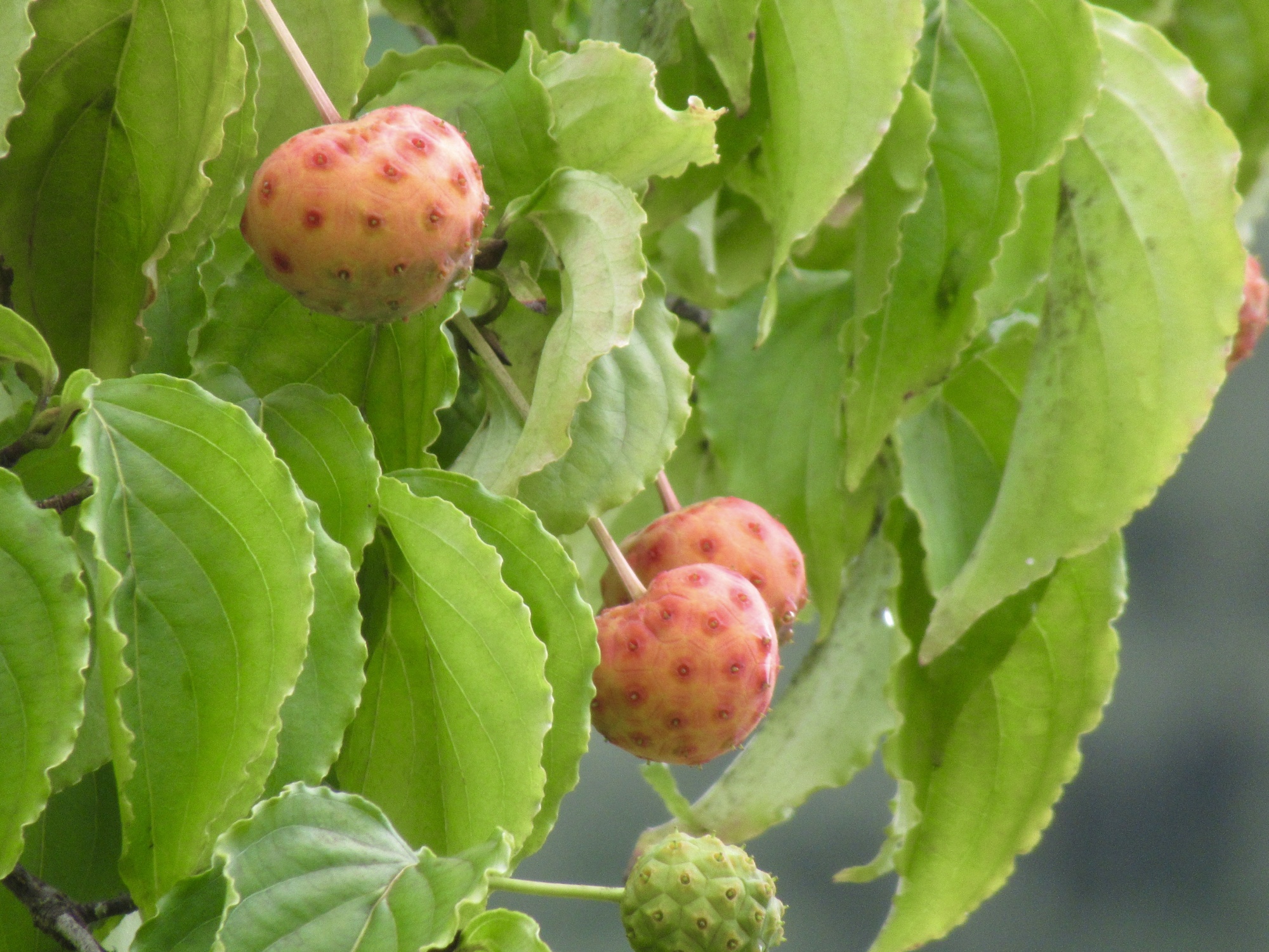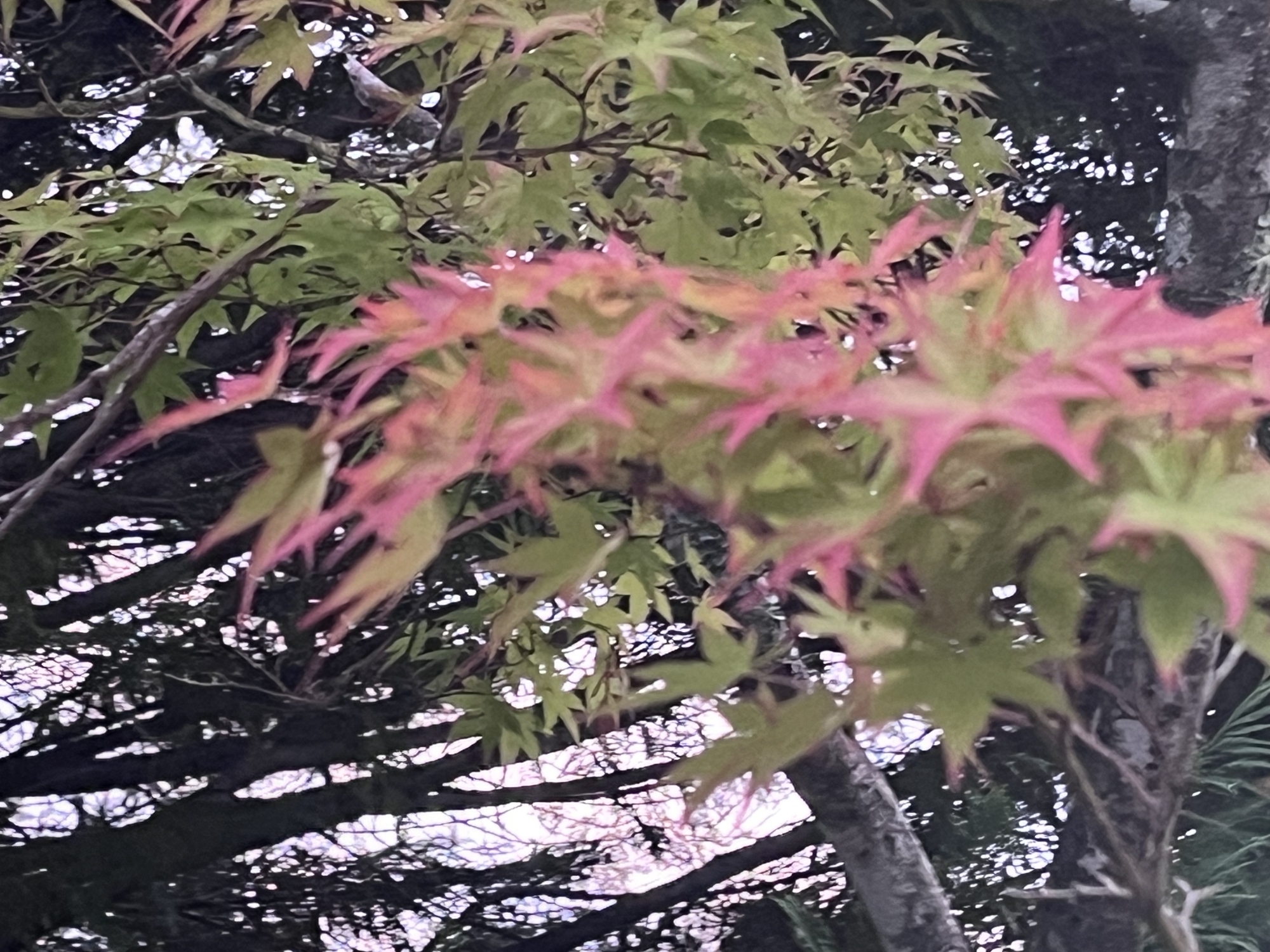院長室の向こうヤマボウシが一番早く朱くなってきています.