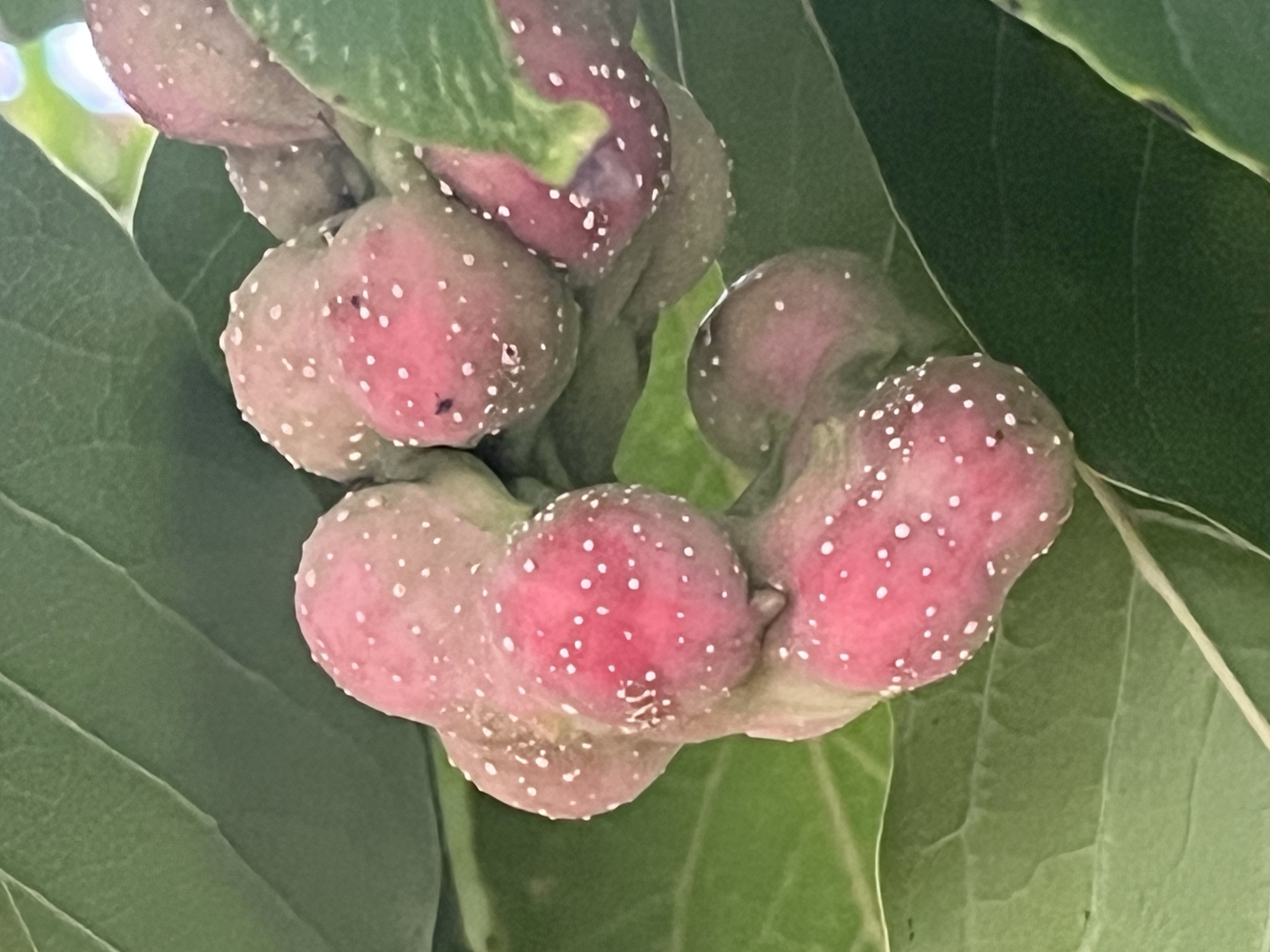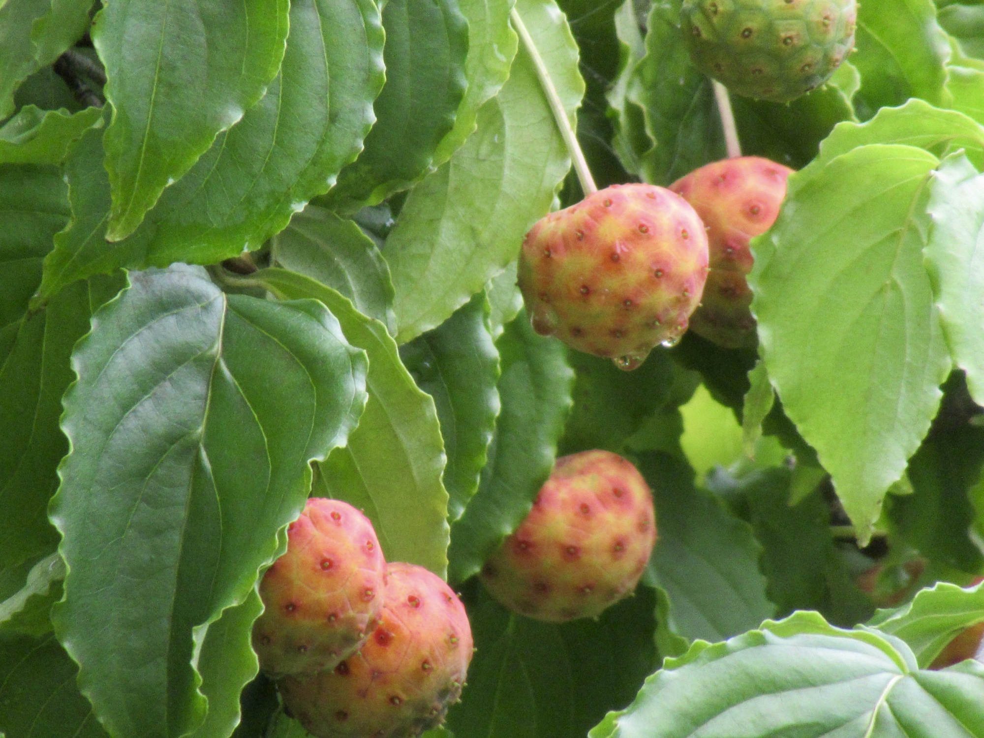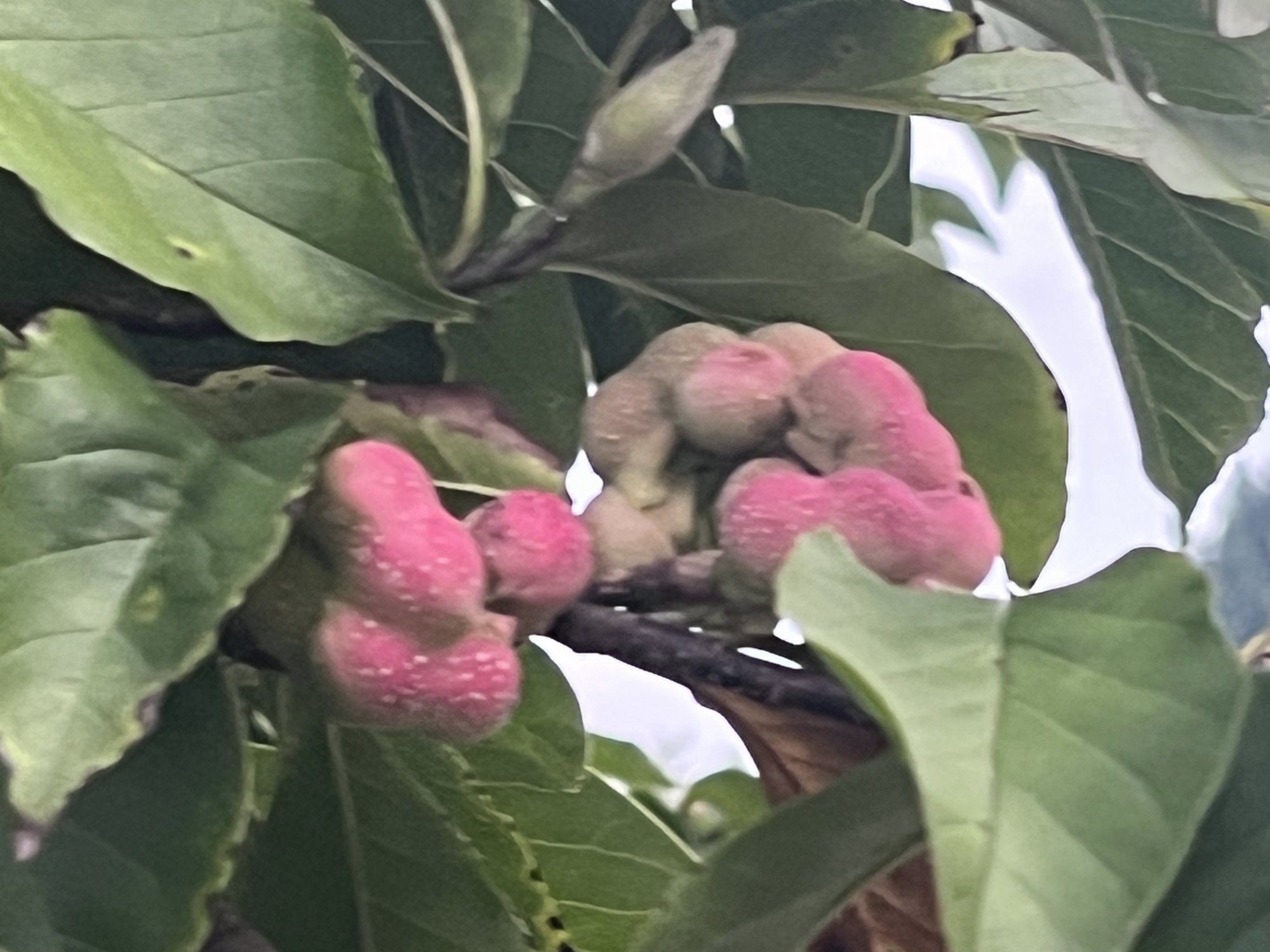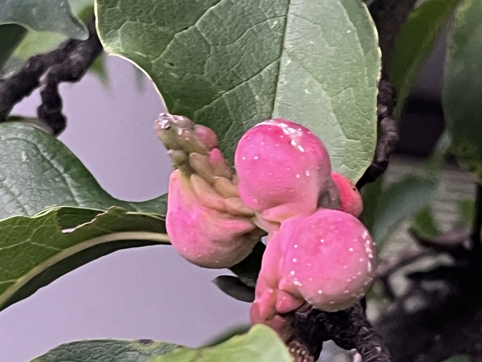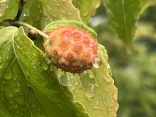 院長室の向こうヤマボウシが一番早く朱くなってきています.