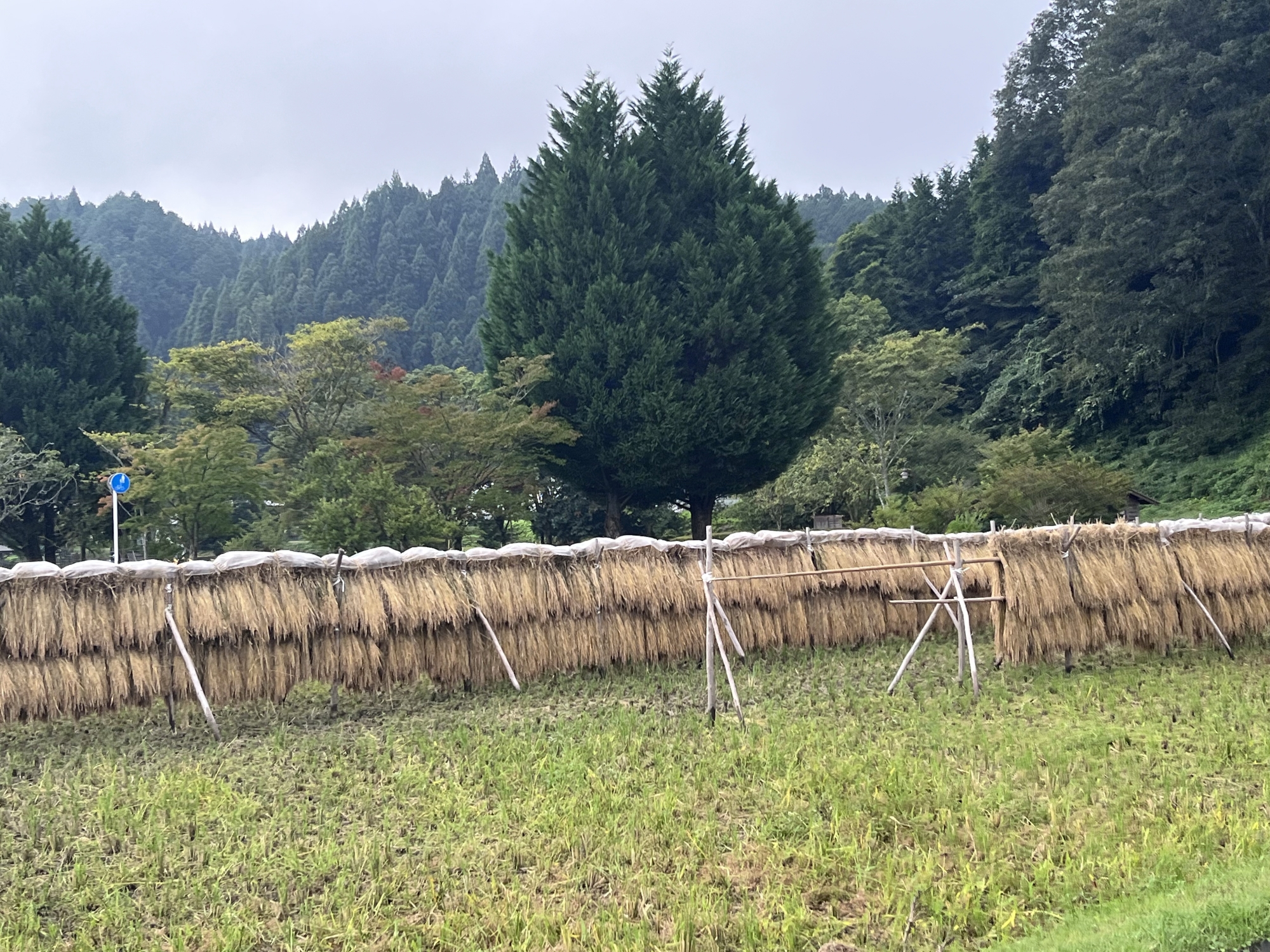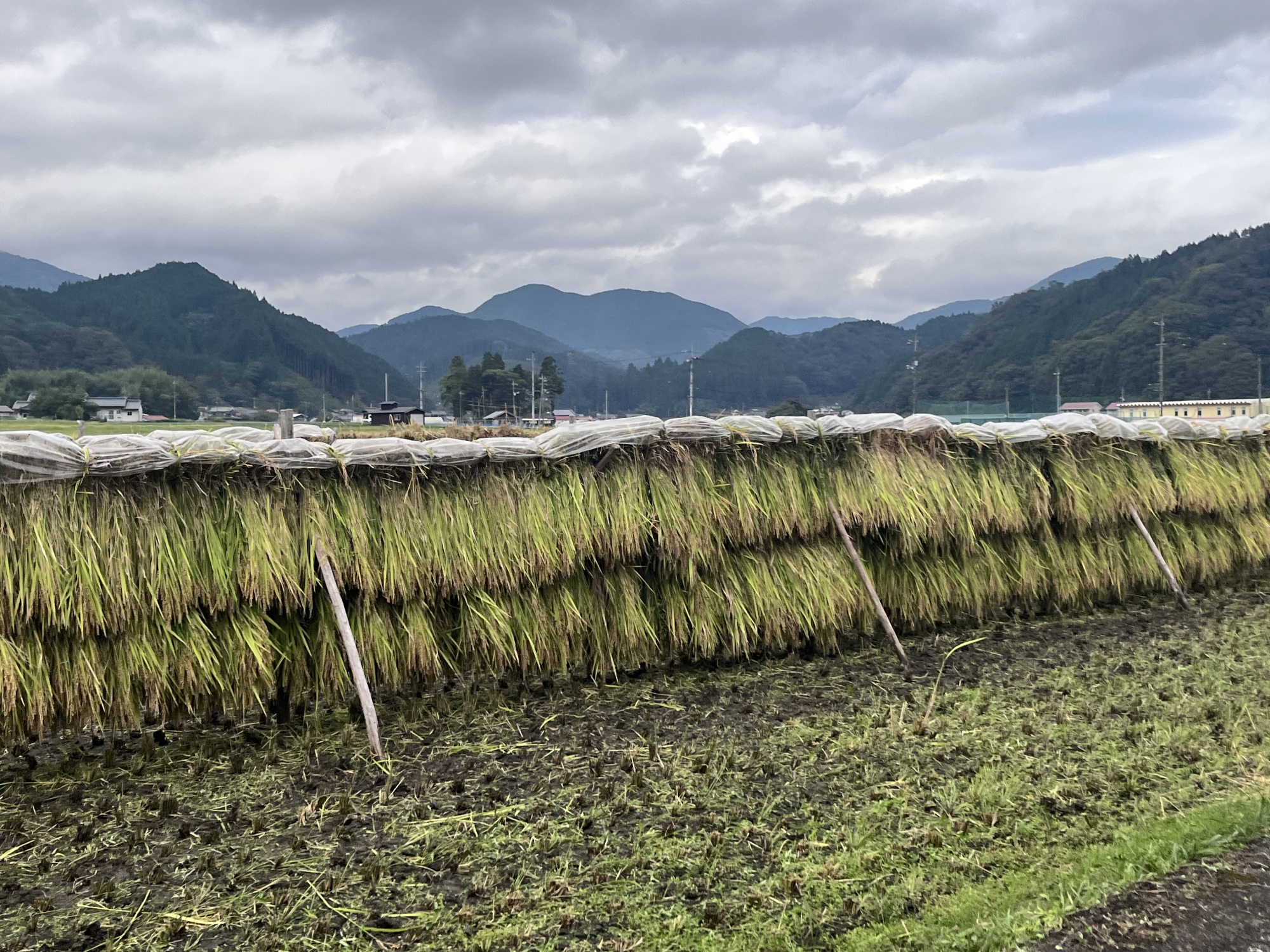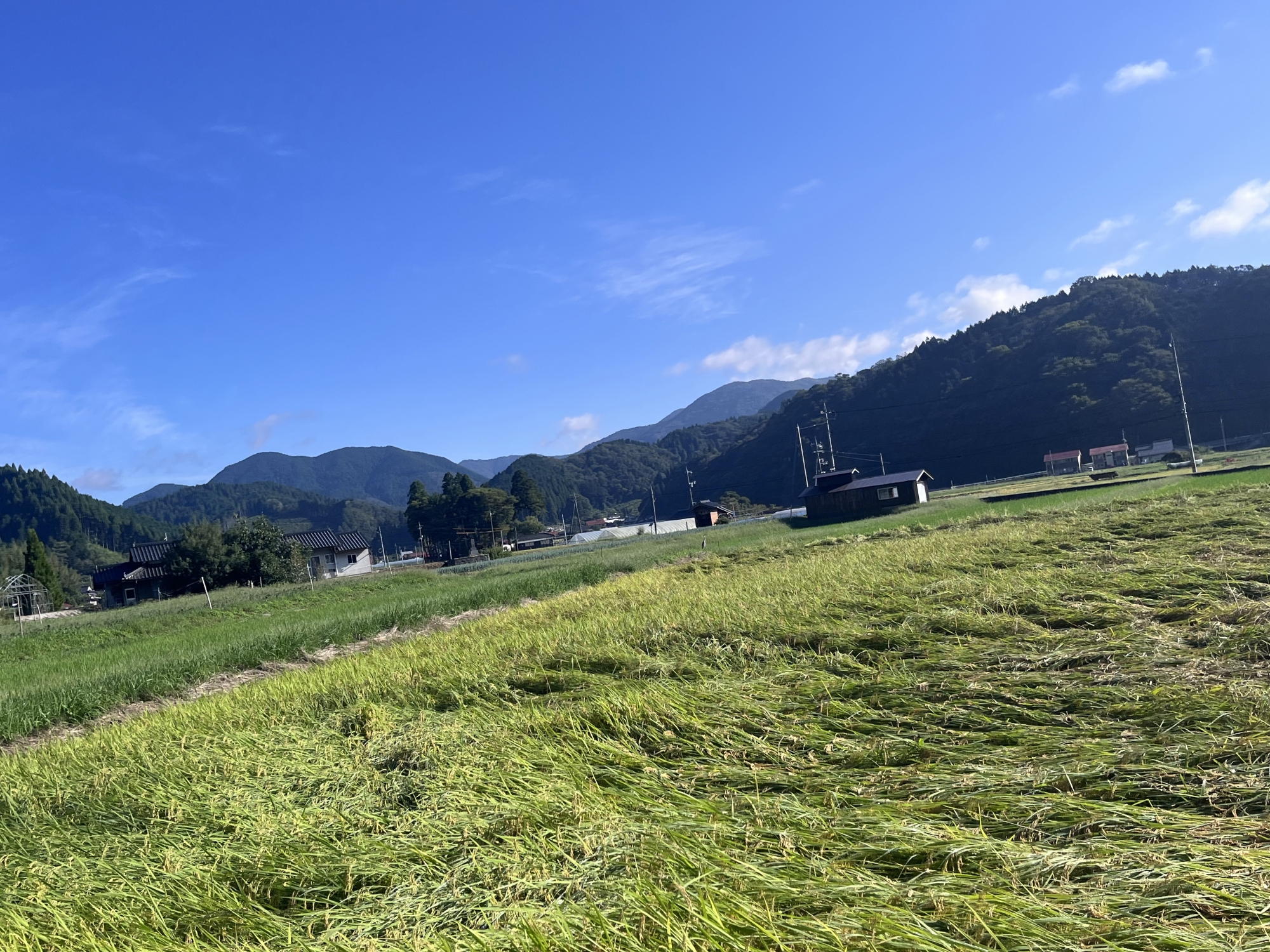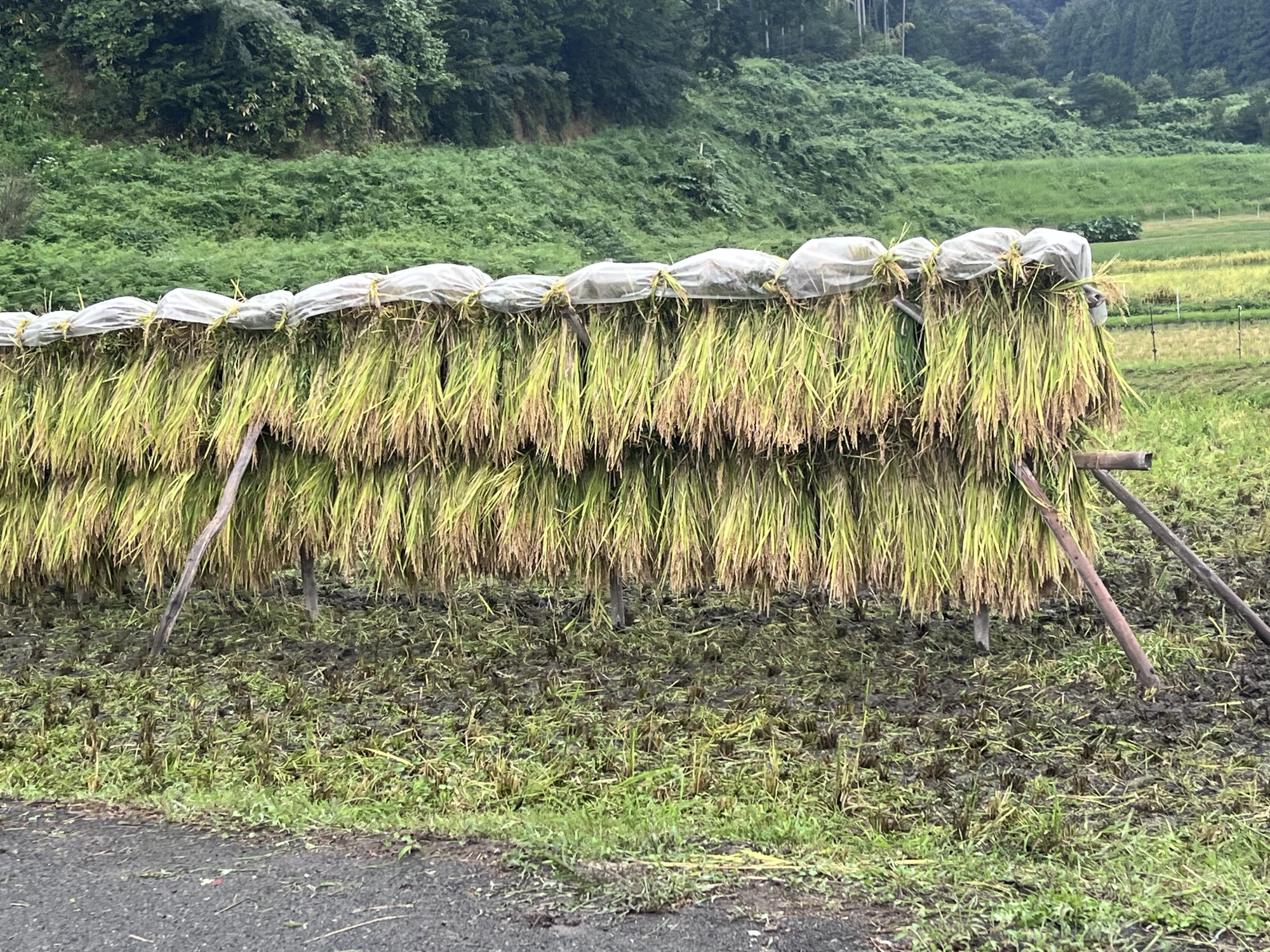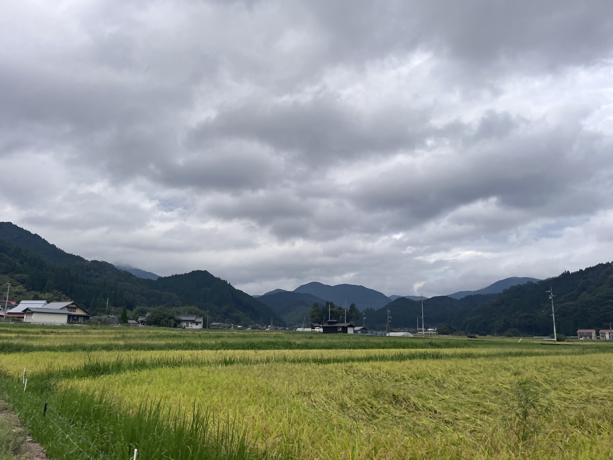 そして、雨などに倒れた稲の田圃も多いです.