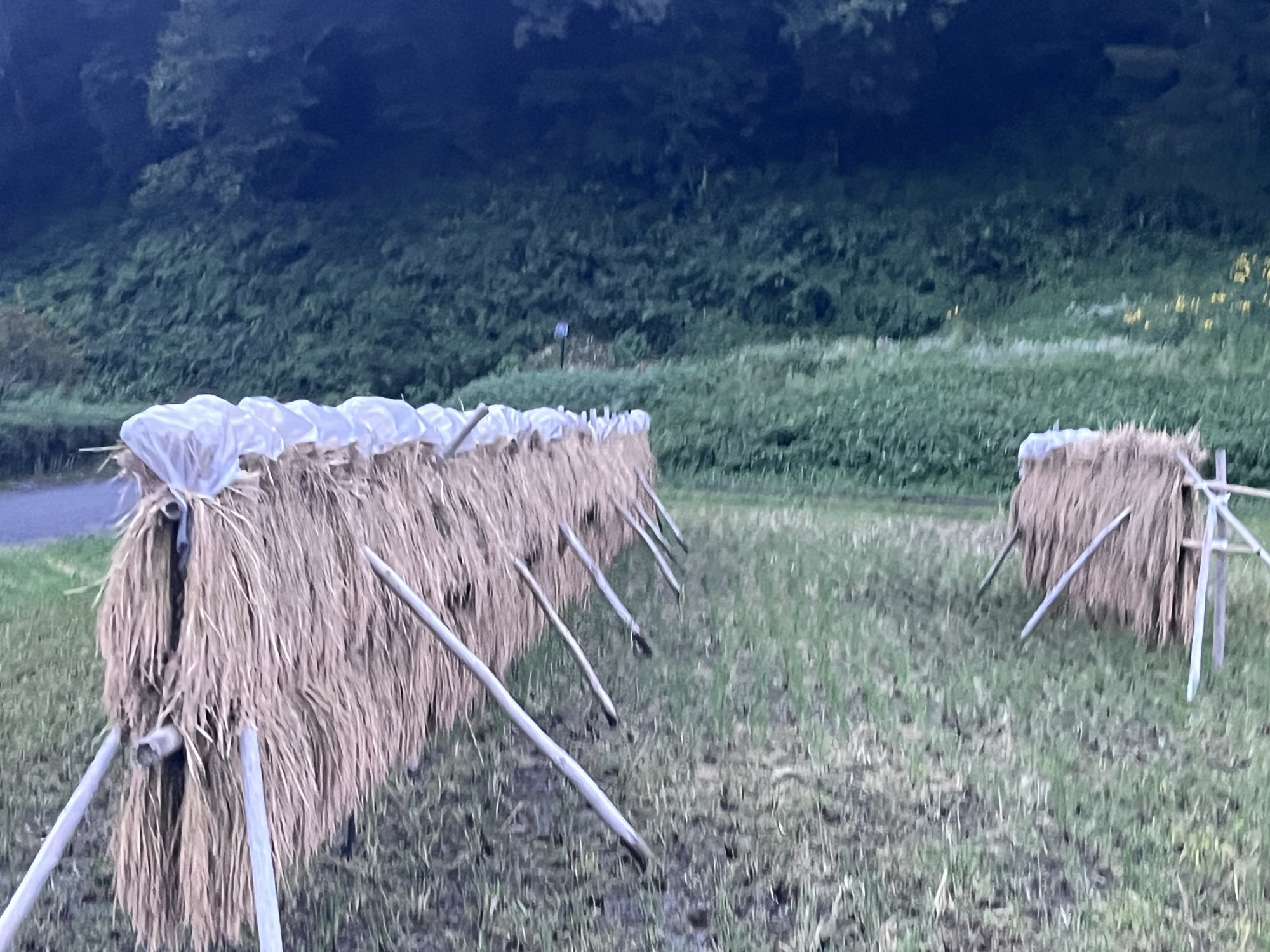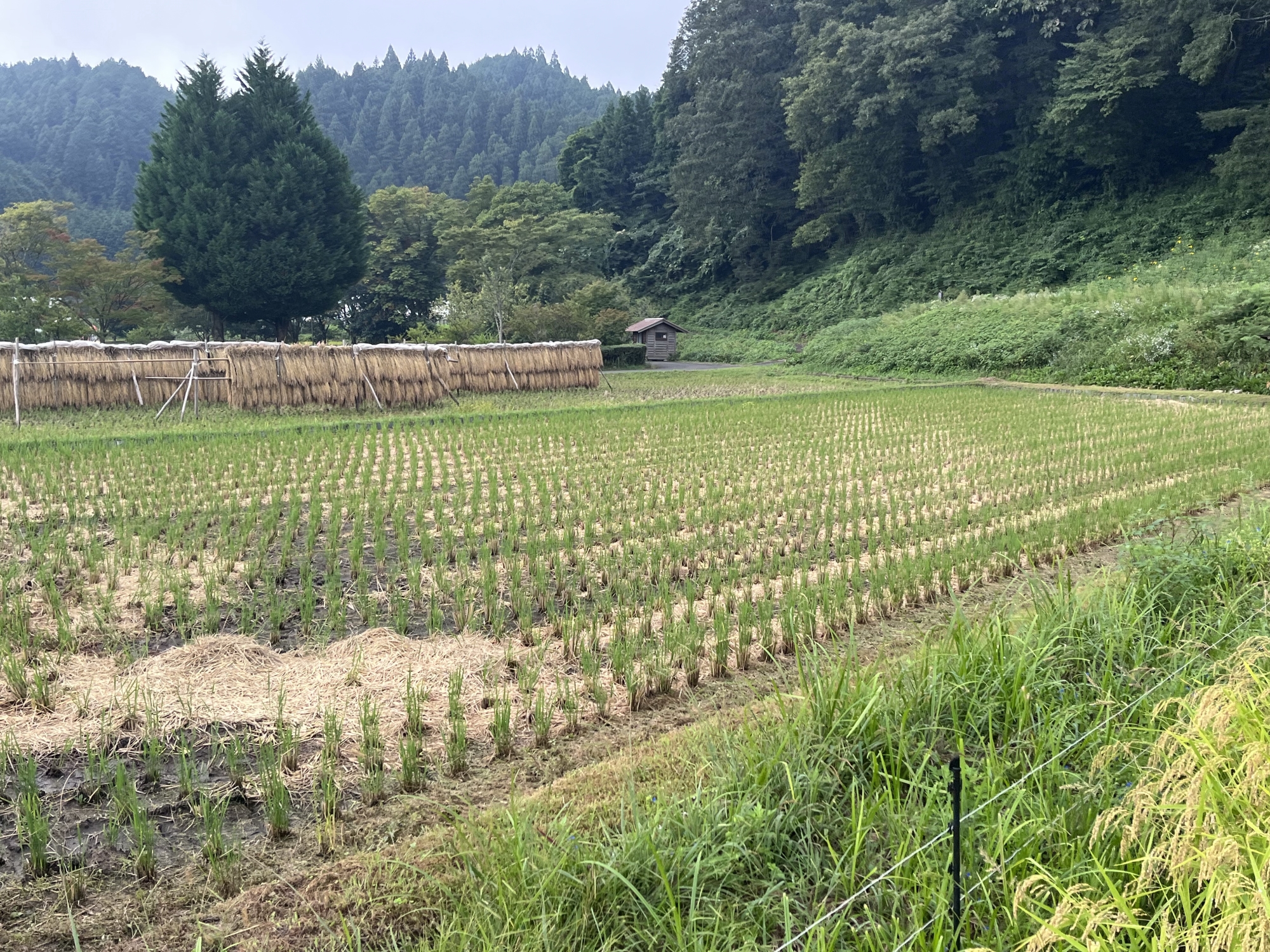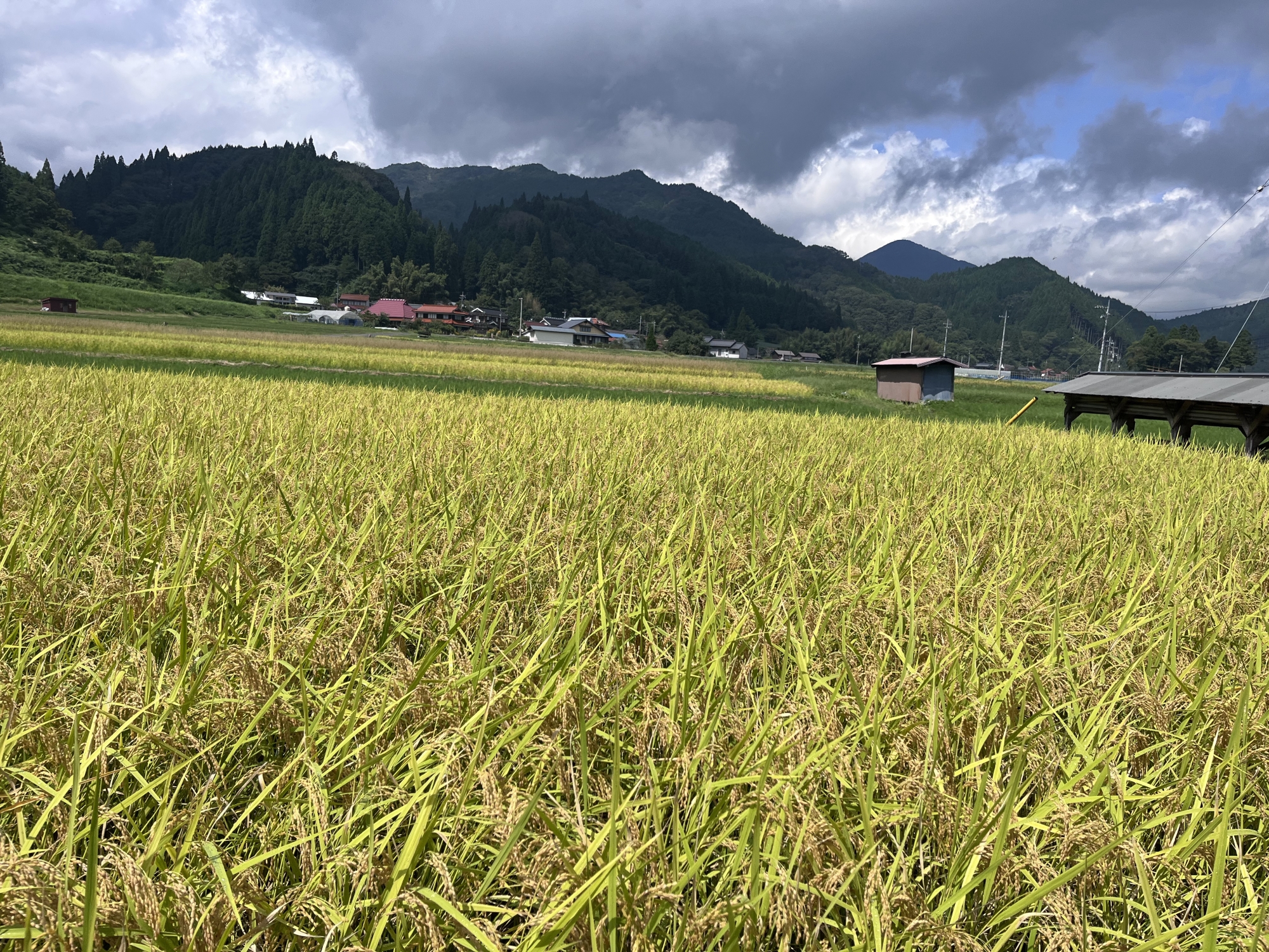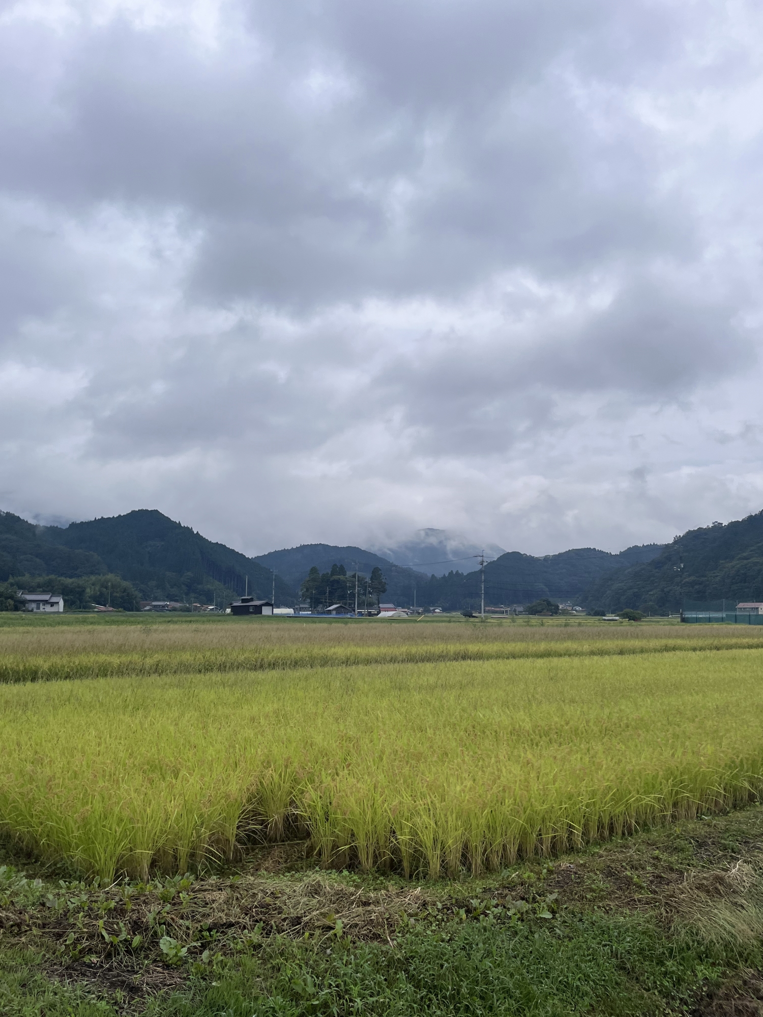 そして、雨などに倒れた稲の田圃も多いです.