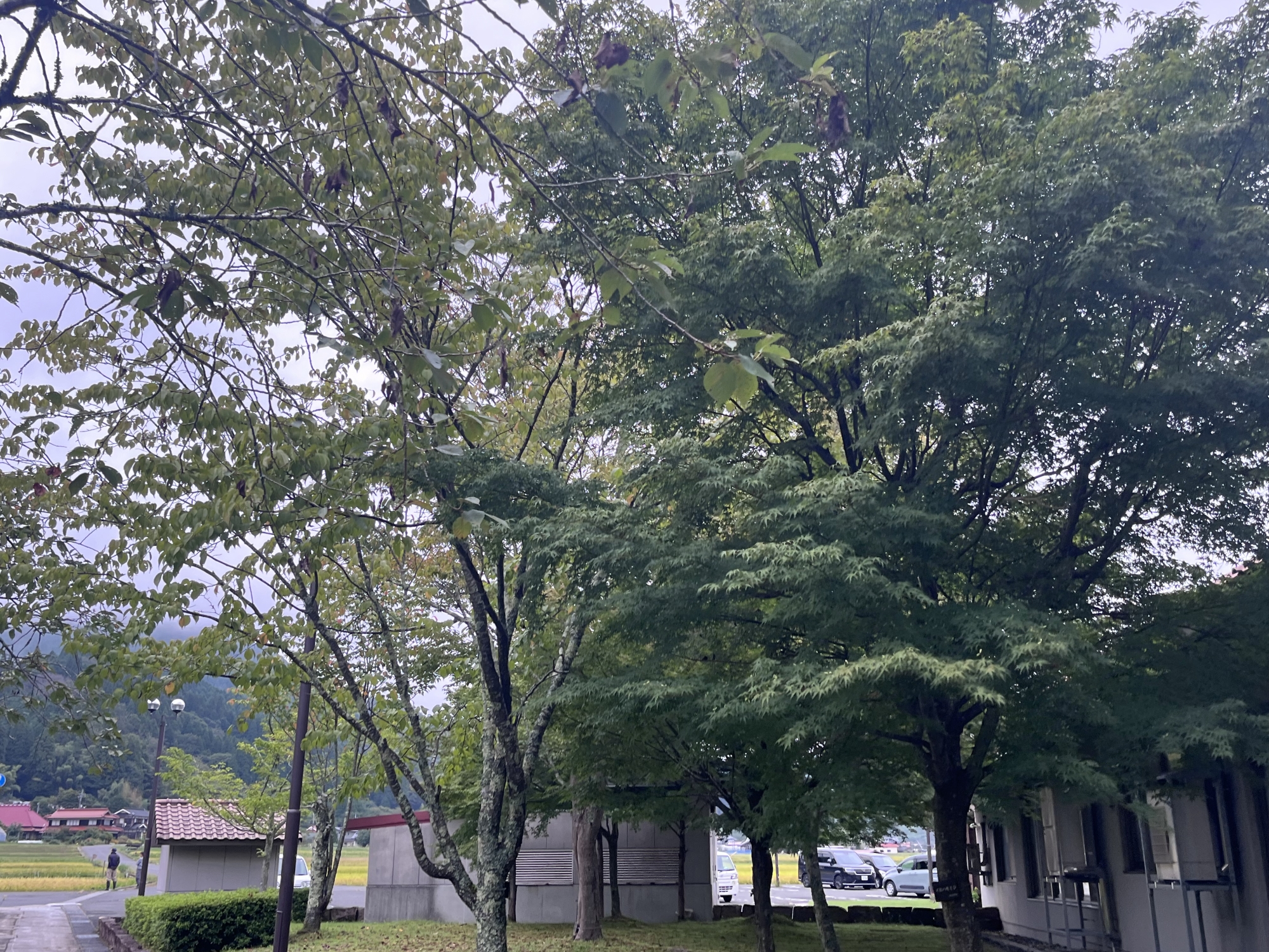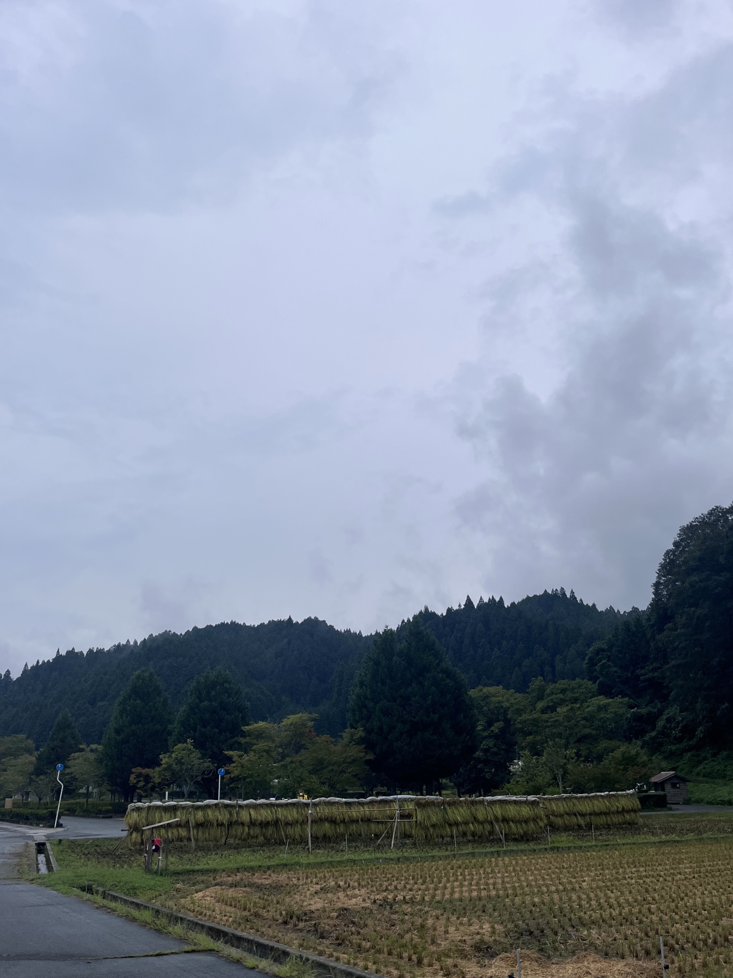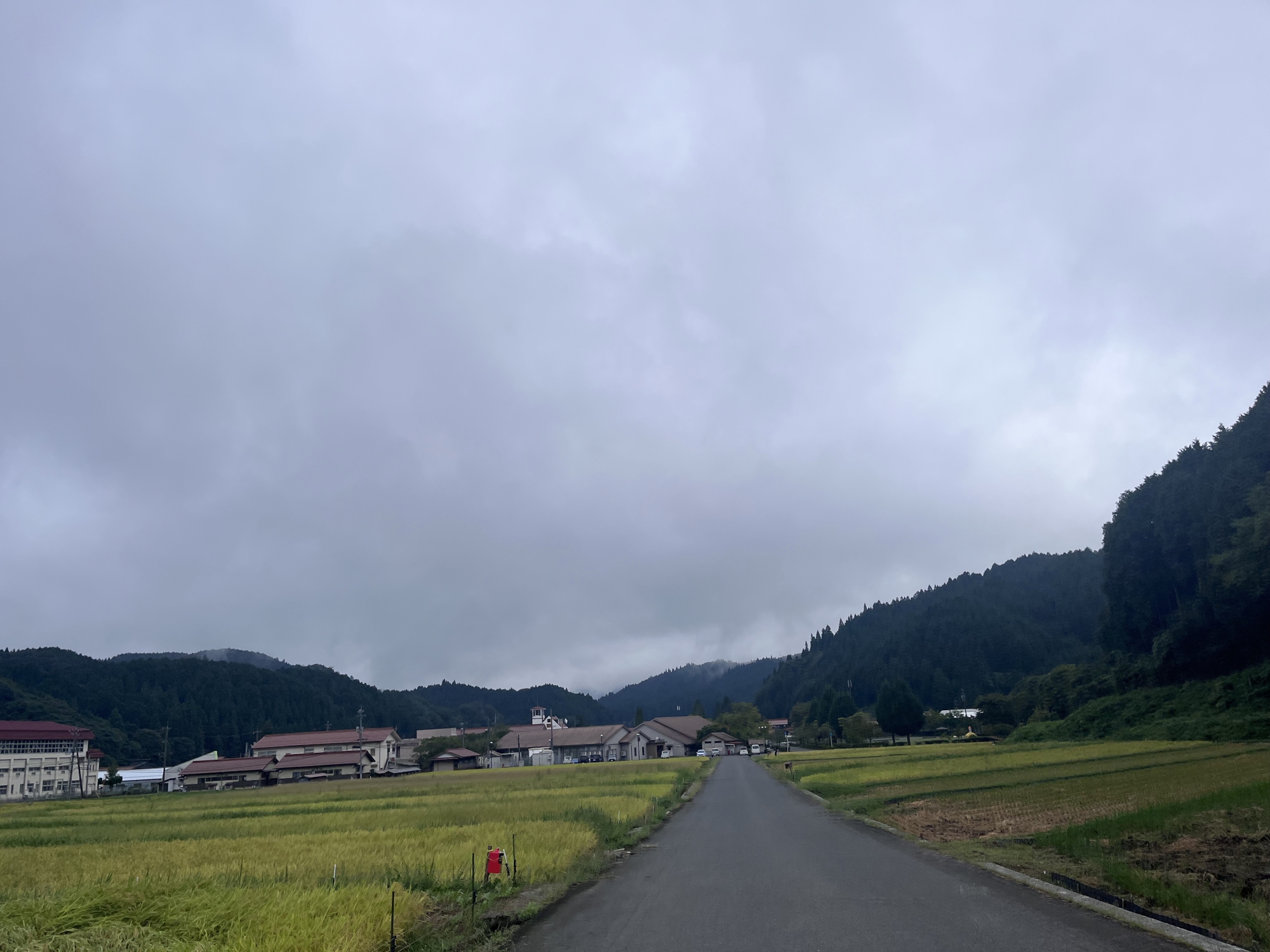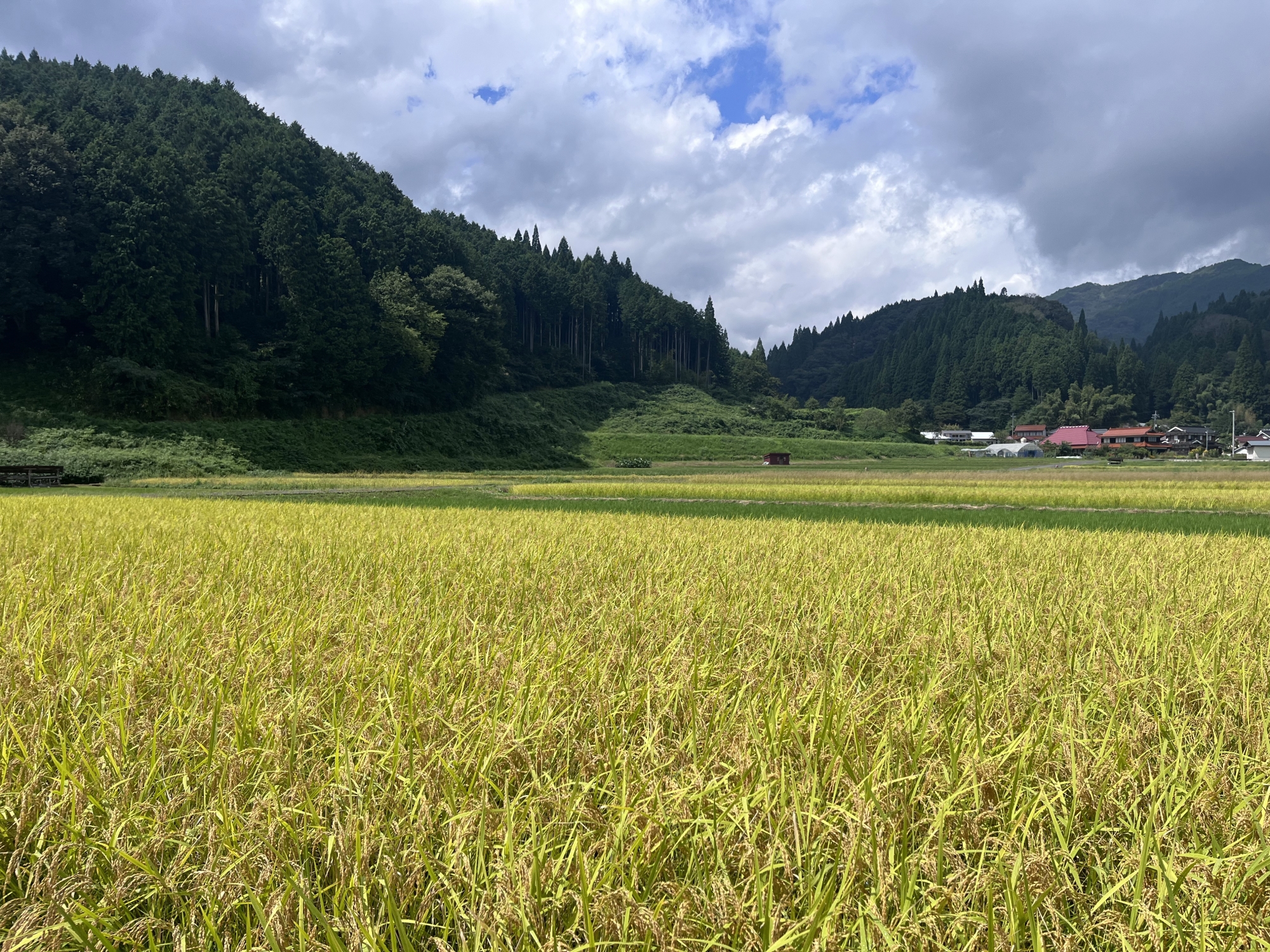 そして、雨などに倒れた稲の田圃も多いです.