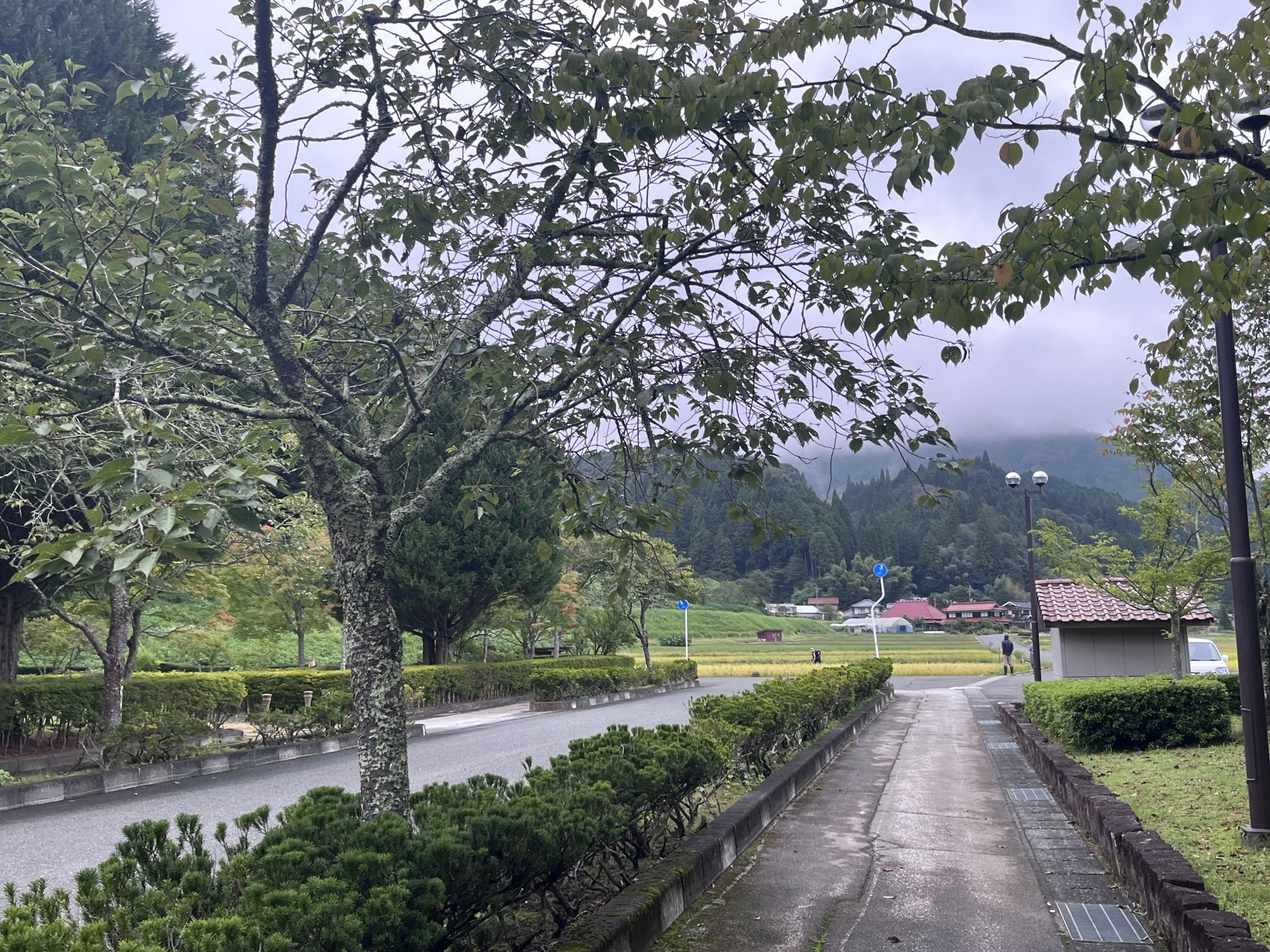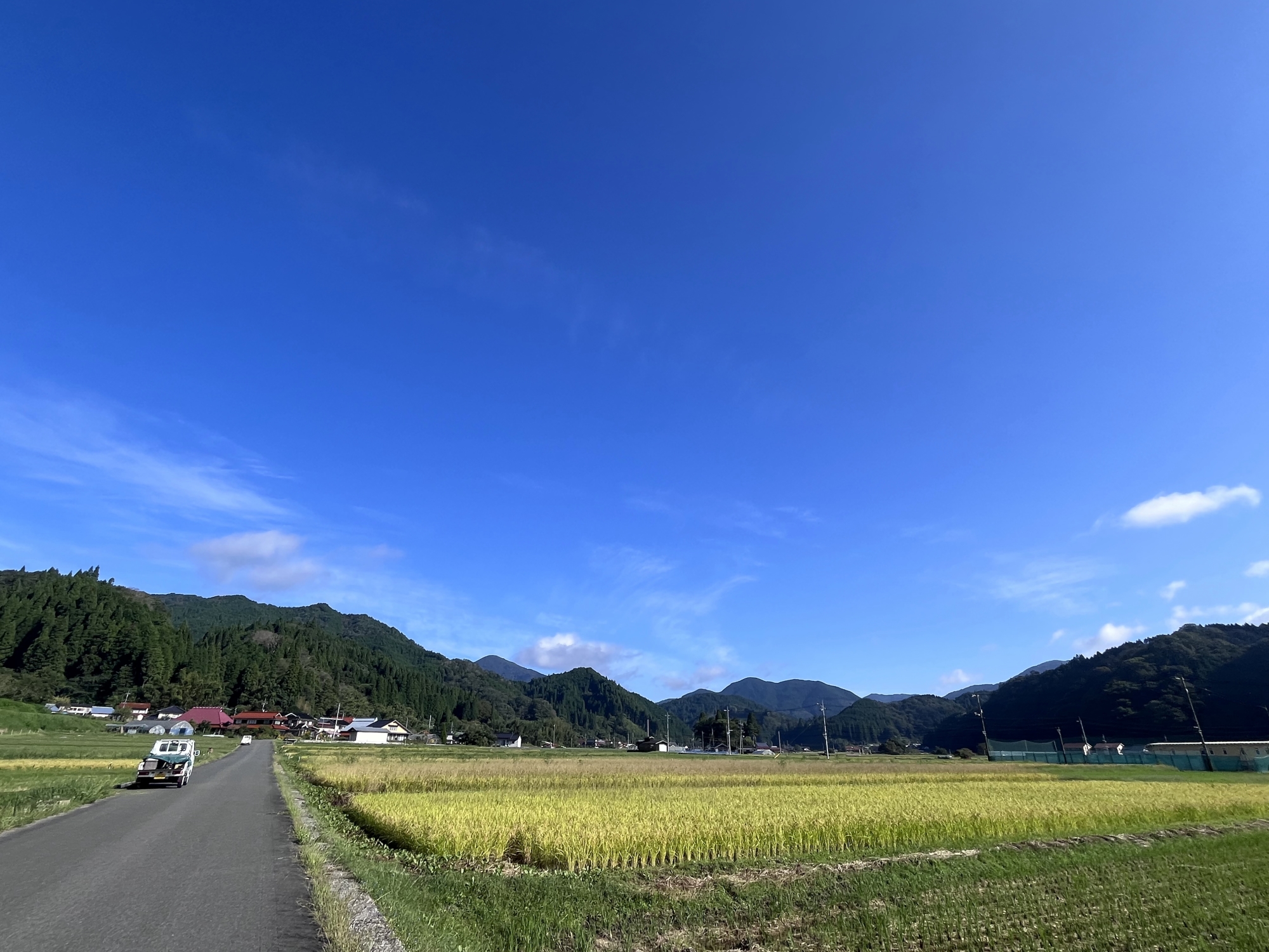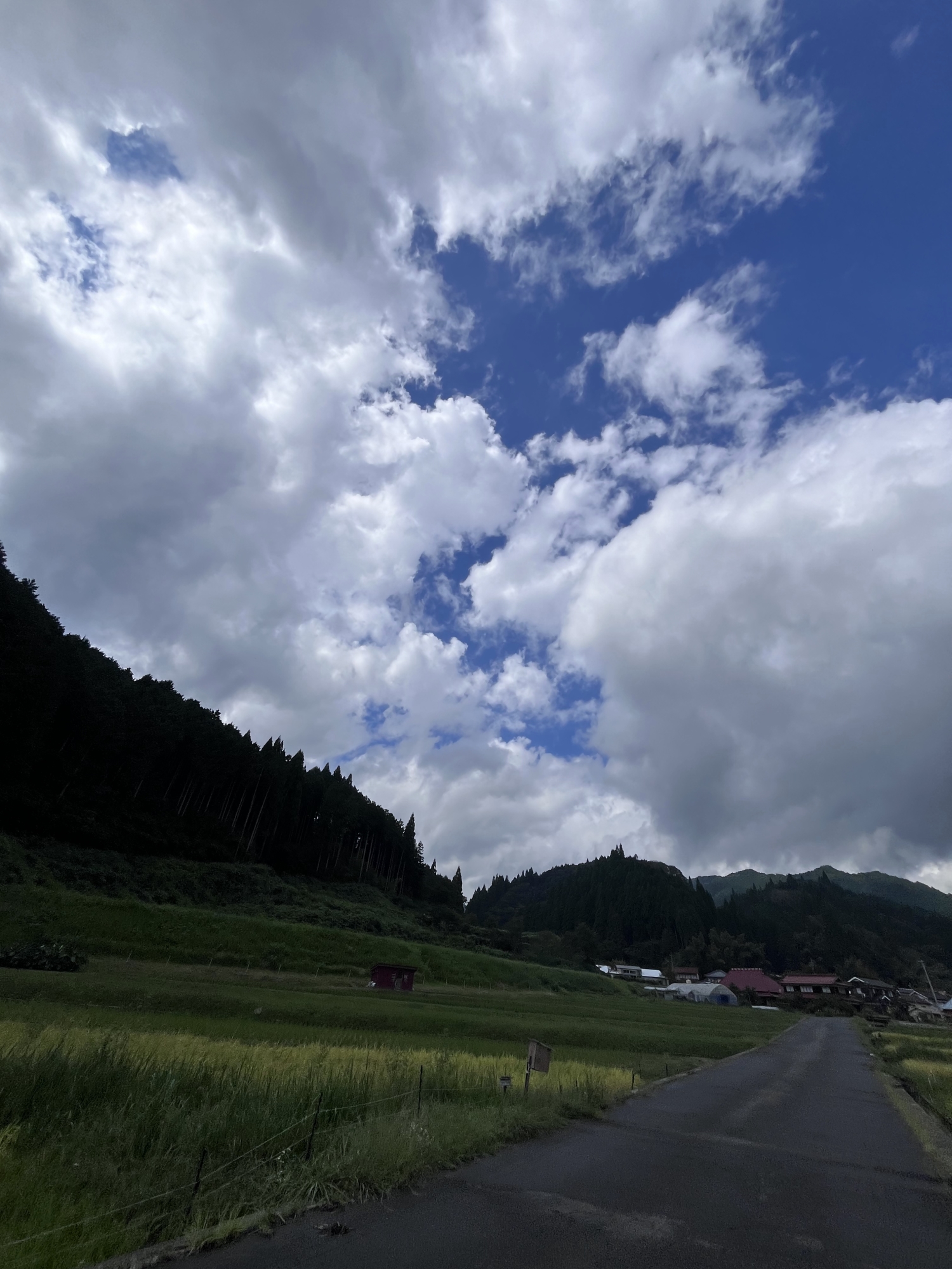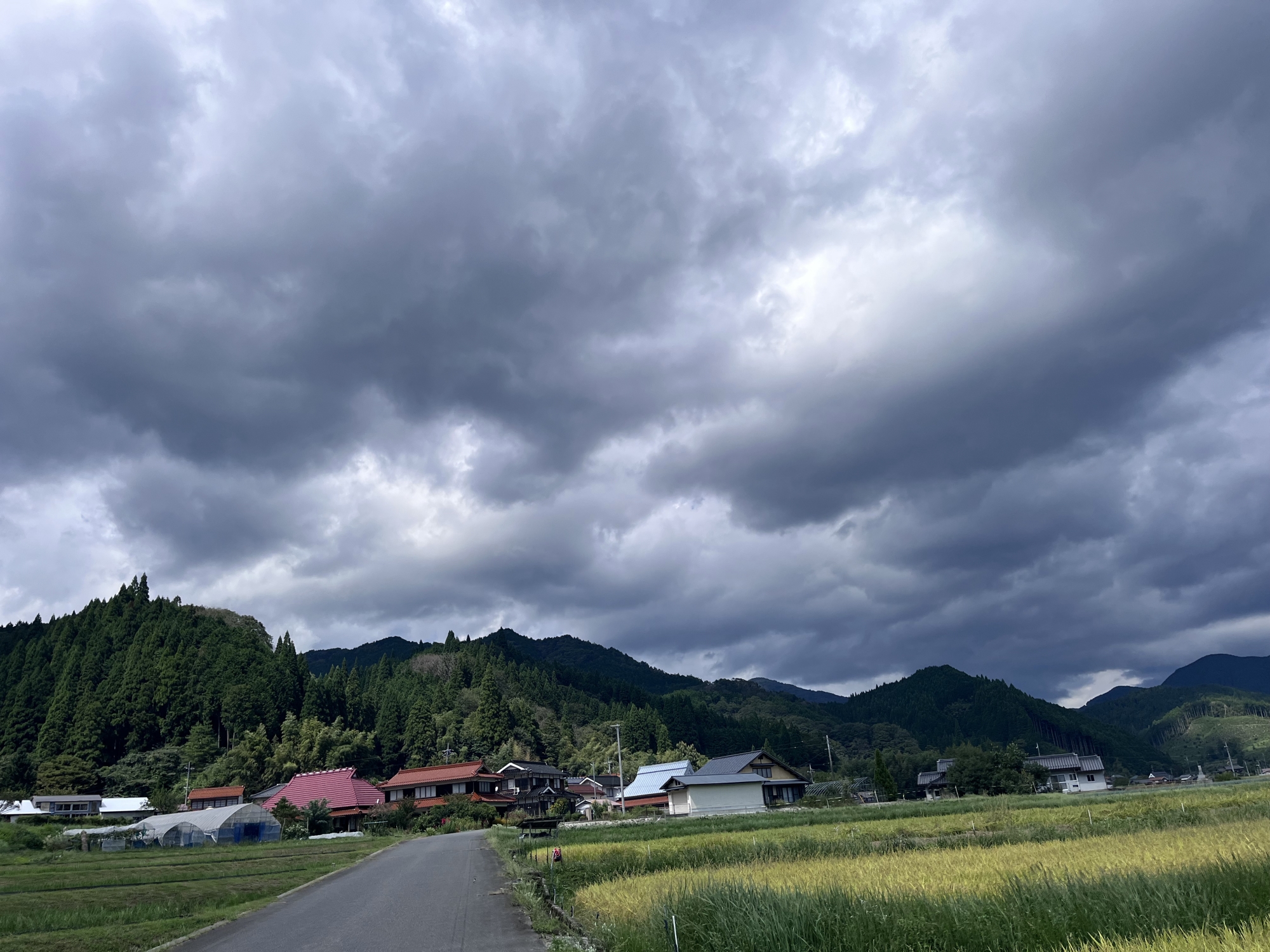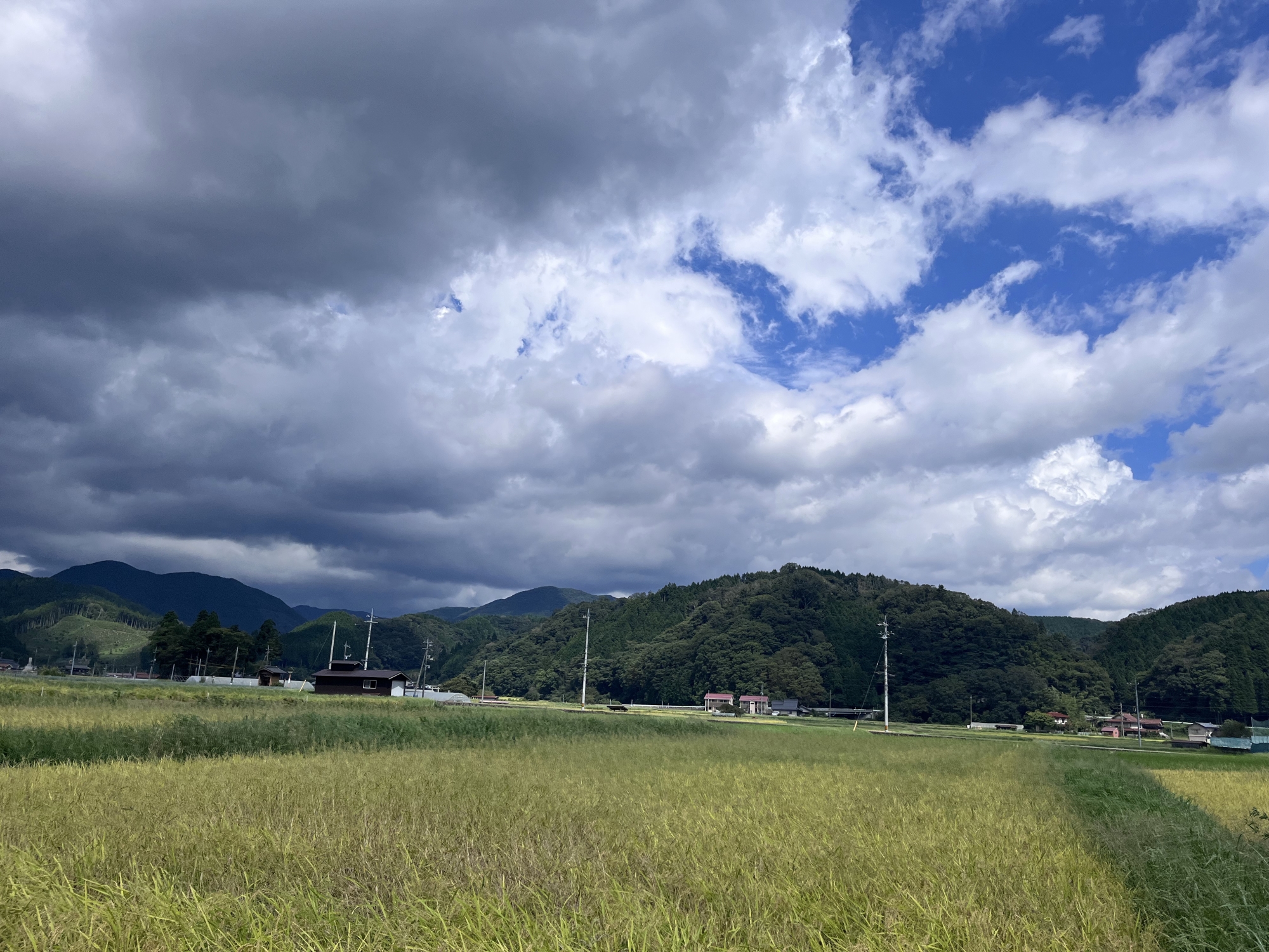 そして、雨などに倒れた稲の田圃も多いです.
