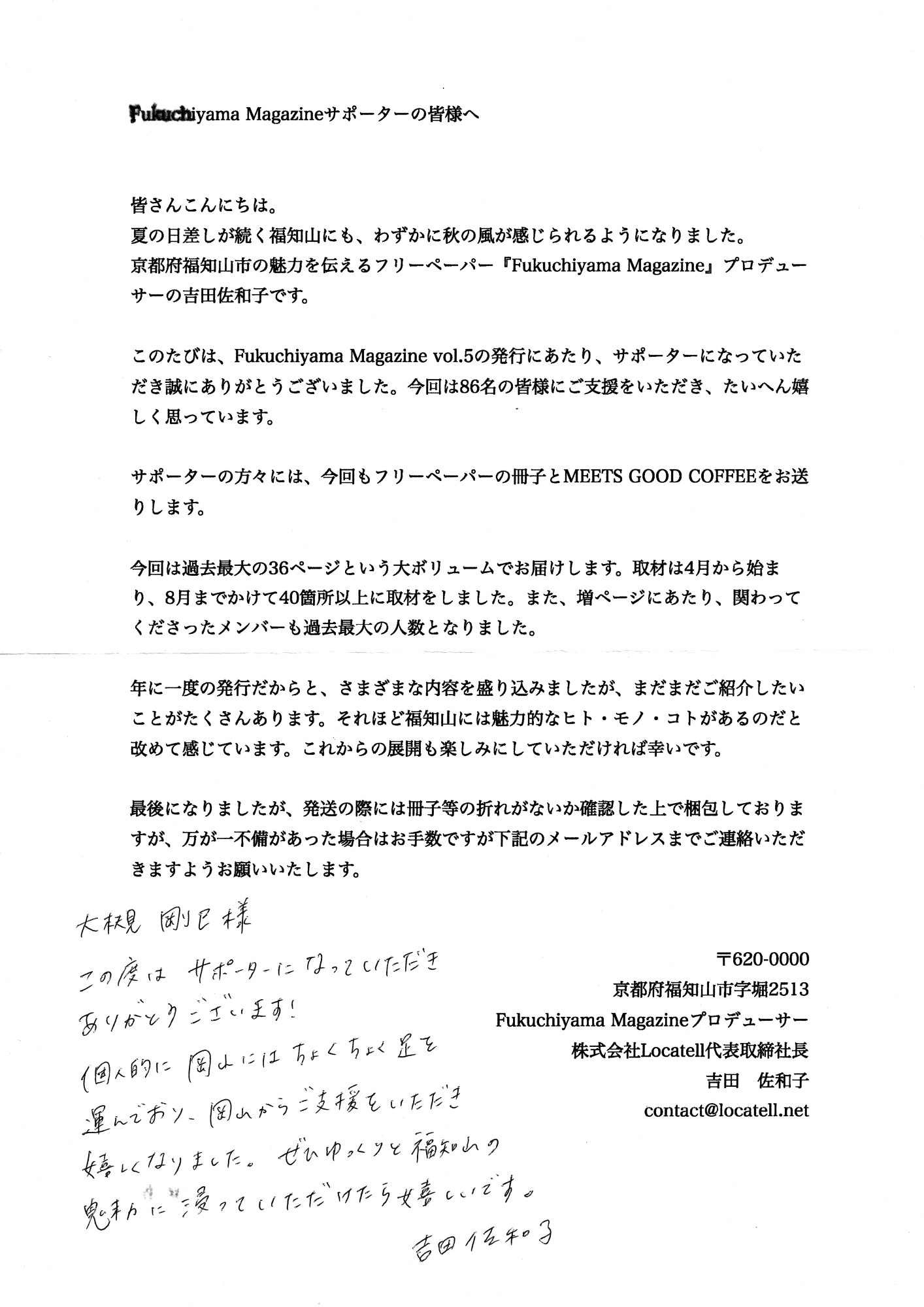Fukuchiyama Magazineが4種の珈琲と一緒に届きました.そうそう、寄付したのでした.