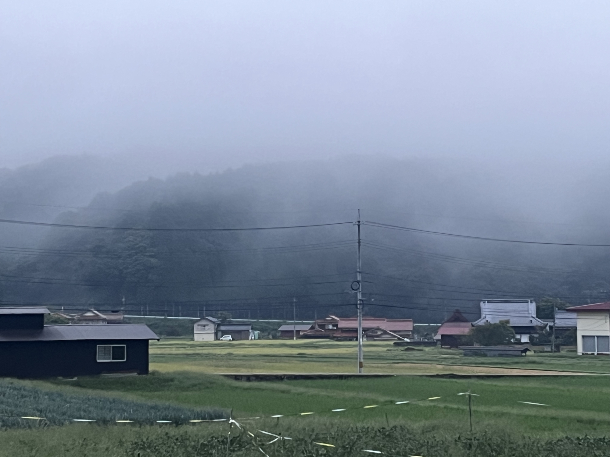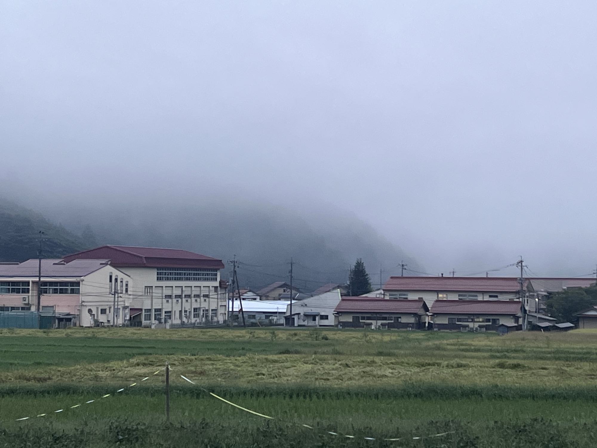 朝は霧でした.