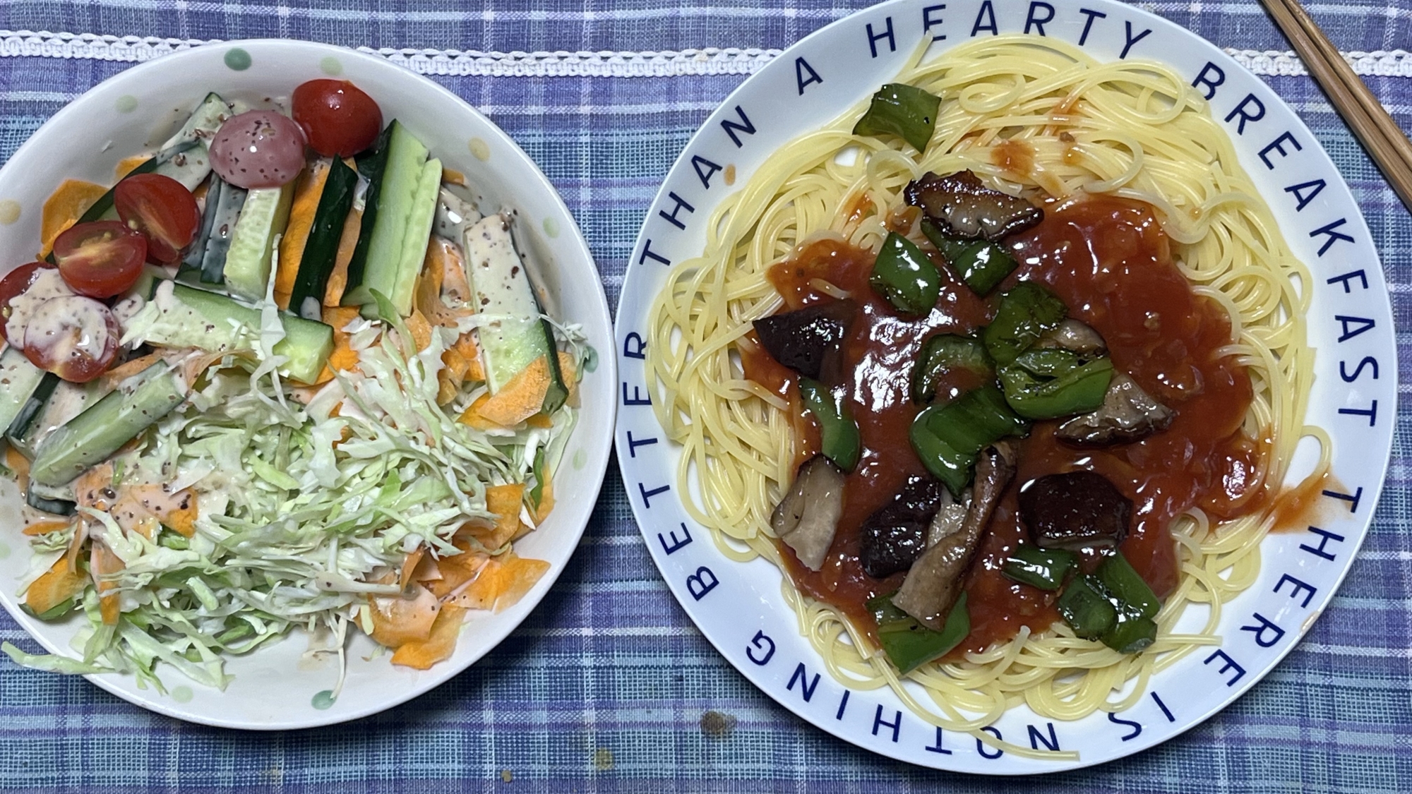 昼もことり食堂だったので、夜はパスタとサラダだけで.