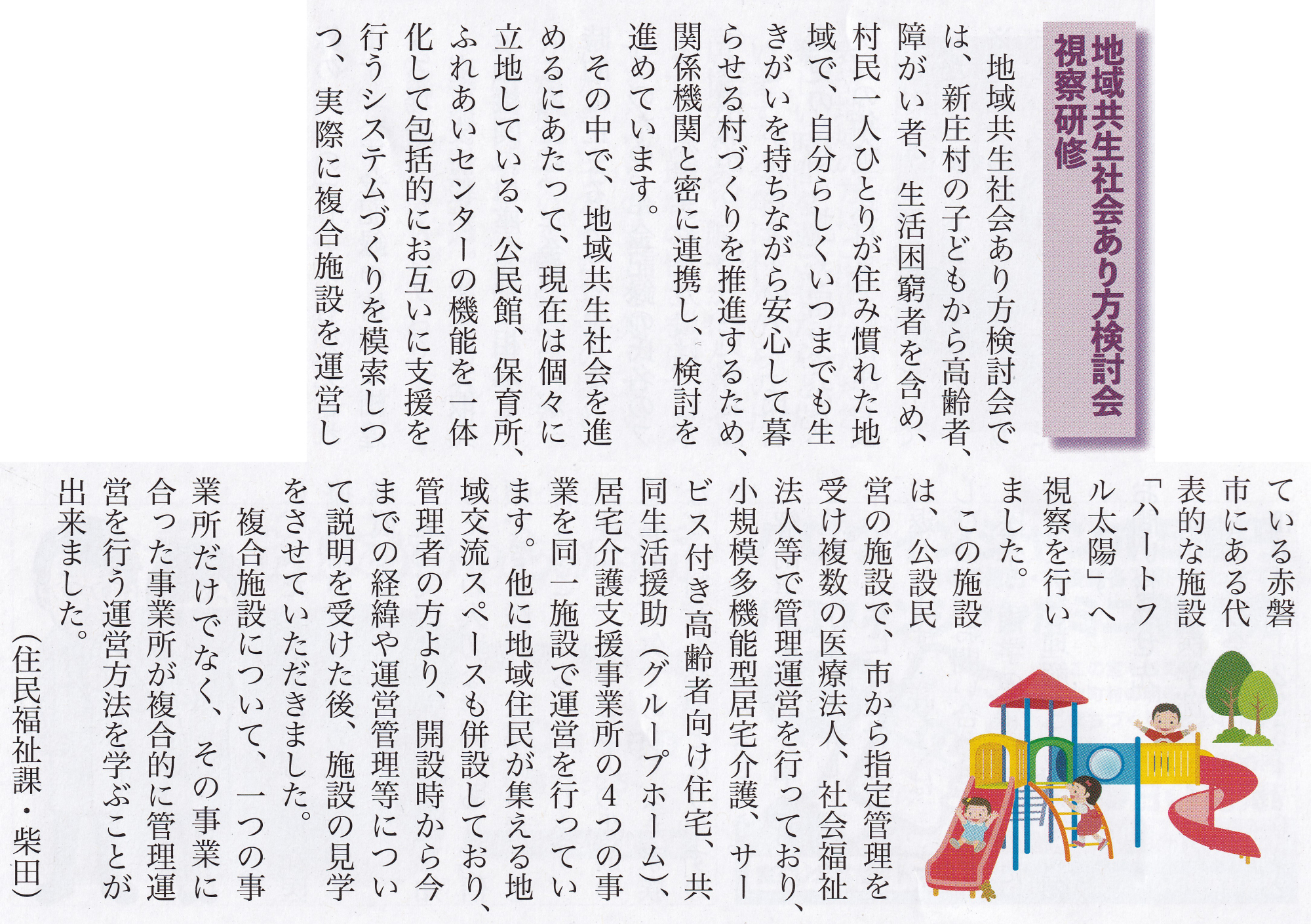 広報紙に……社協の納涼祭の話題、医療福祉大生の研修の話題、そして、地域共生社会の……(←この委員会、委員長をしているのですが、ちょっと厄介な感じにっていうか、責任感じるっていうか、組織の難しさを感じるっていうか).