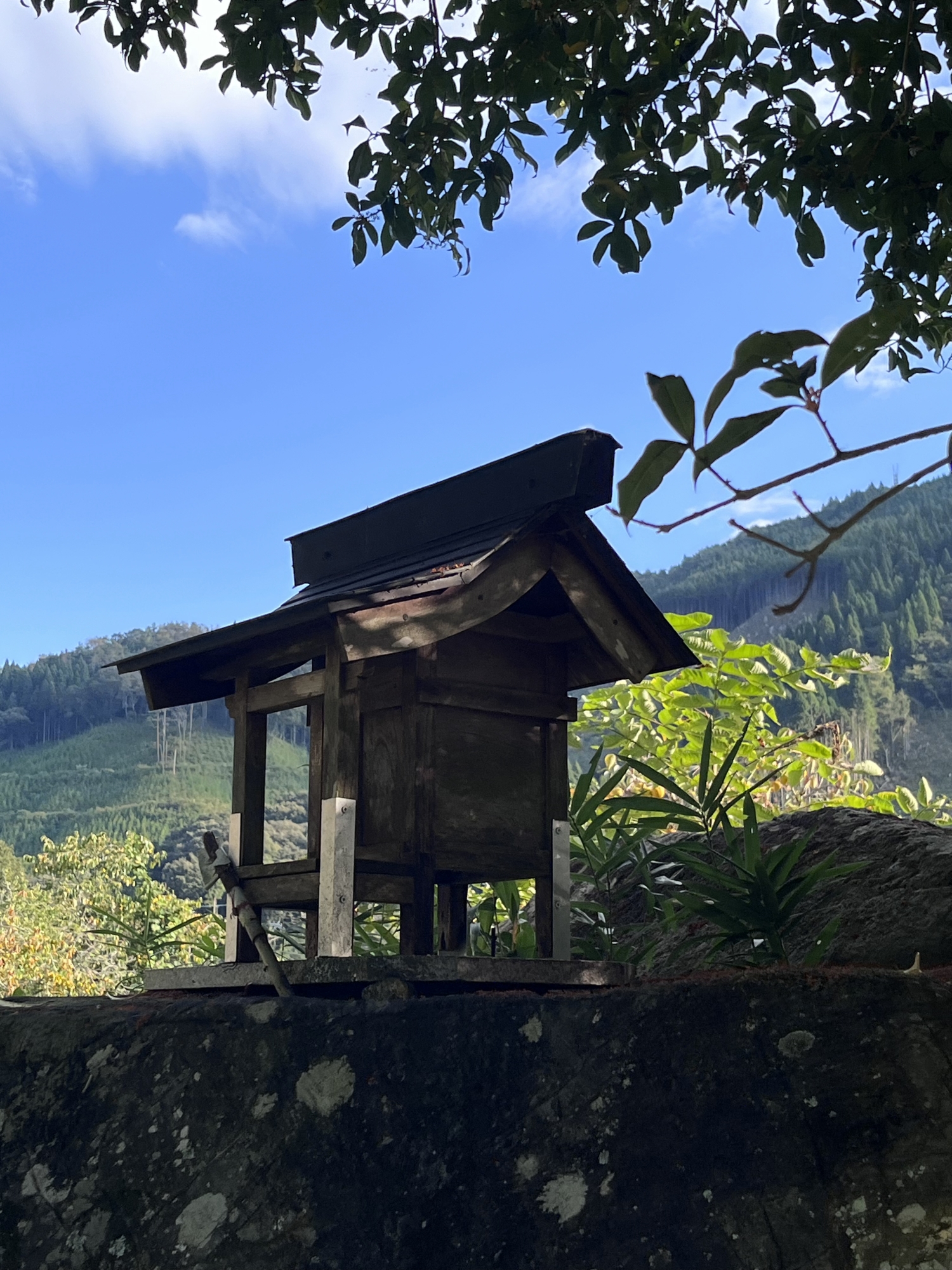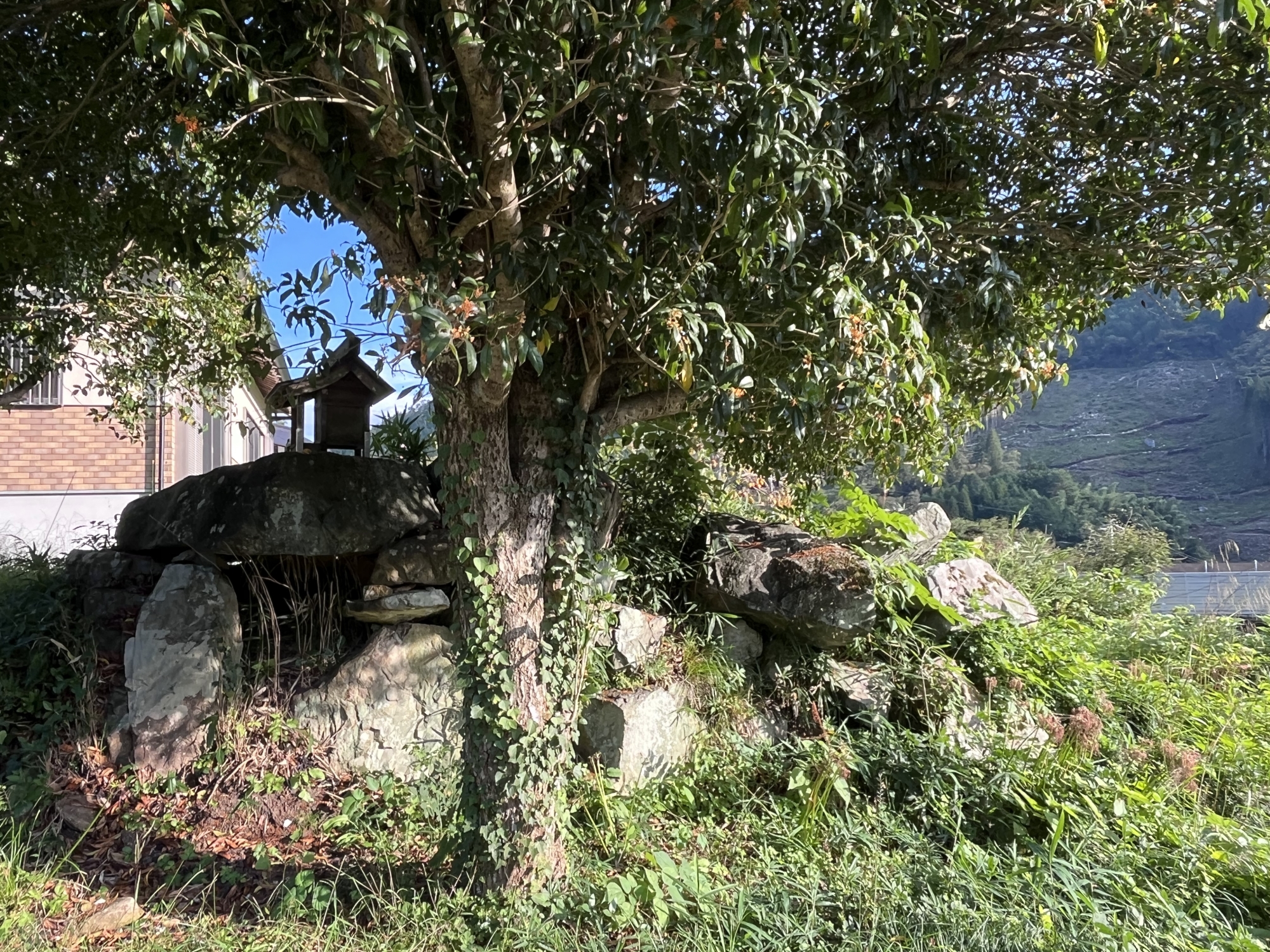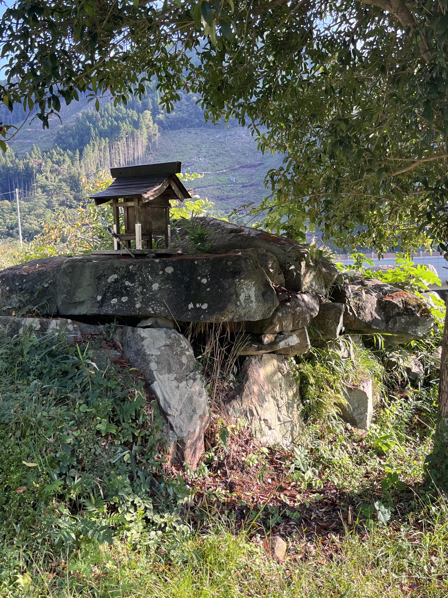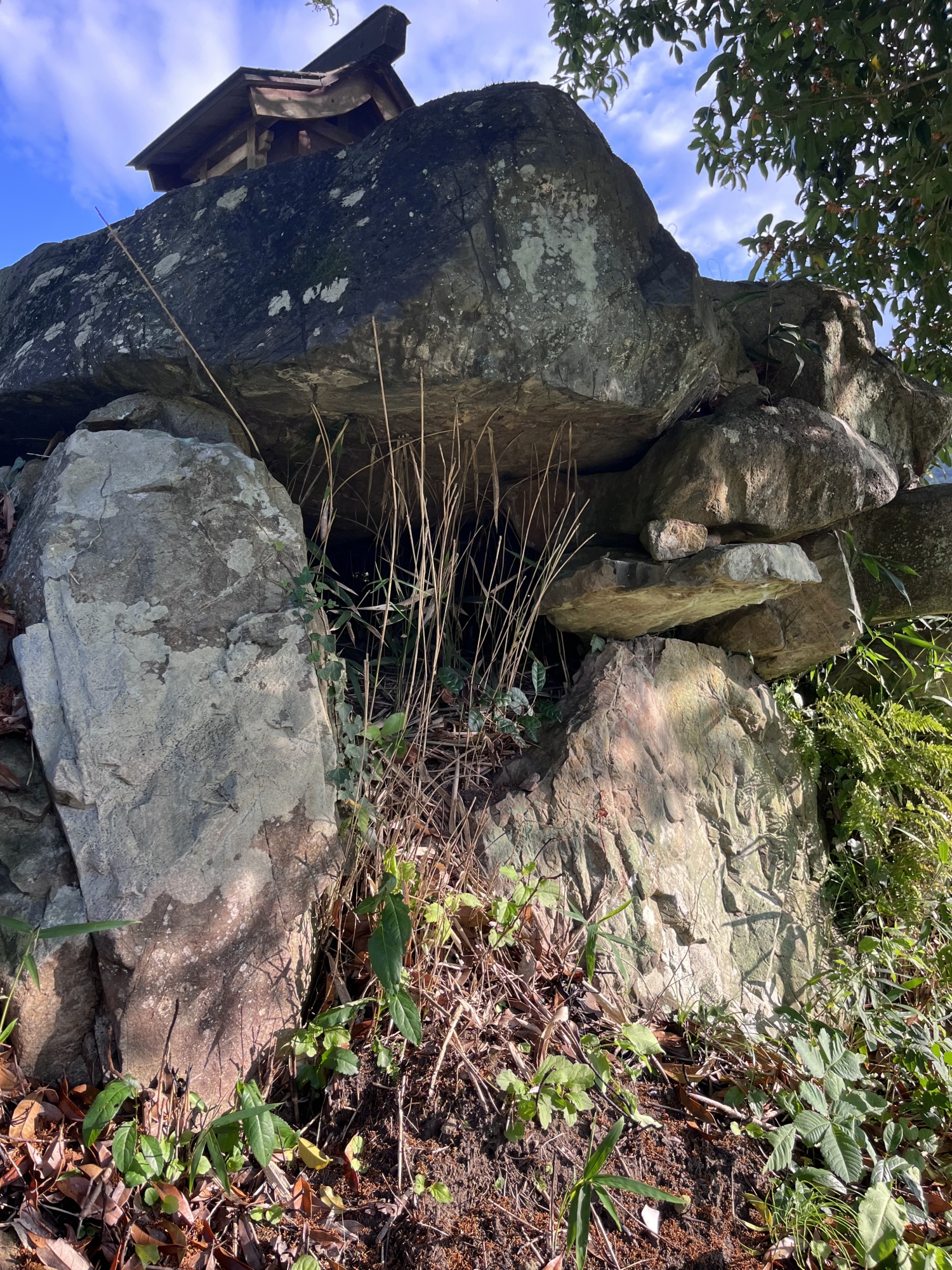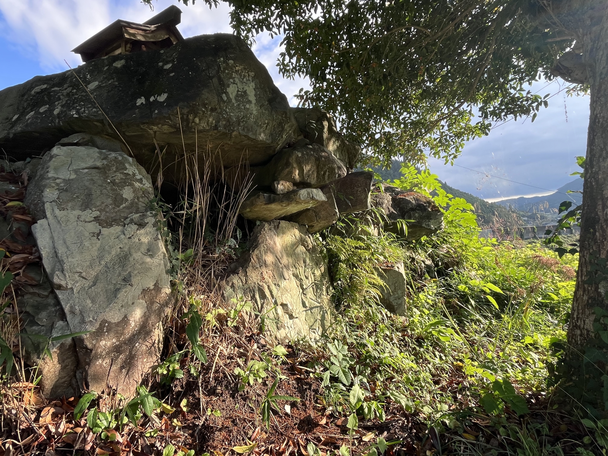 素晴らしい!!石櫃が向き出して、上に、小さな祠.