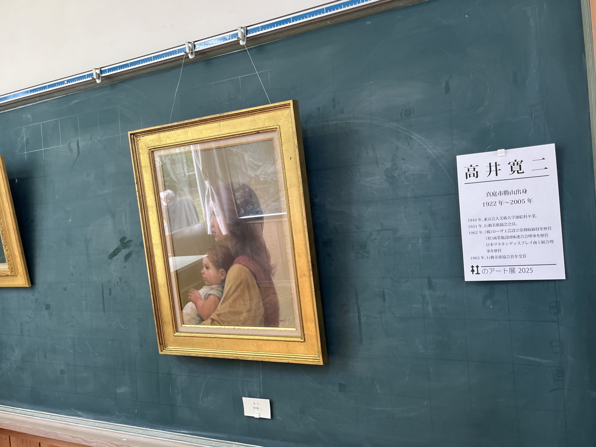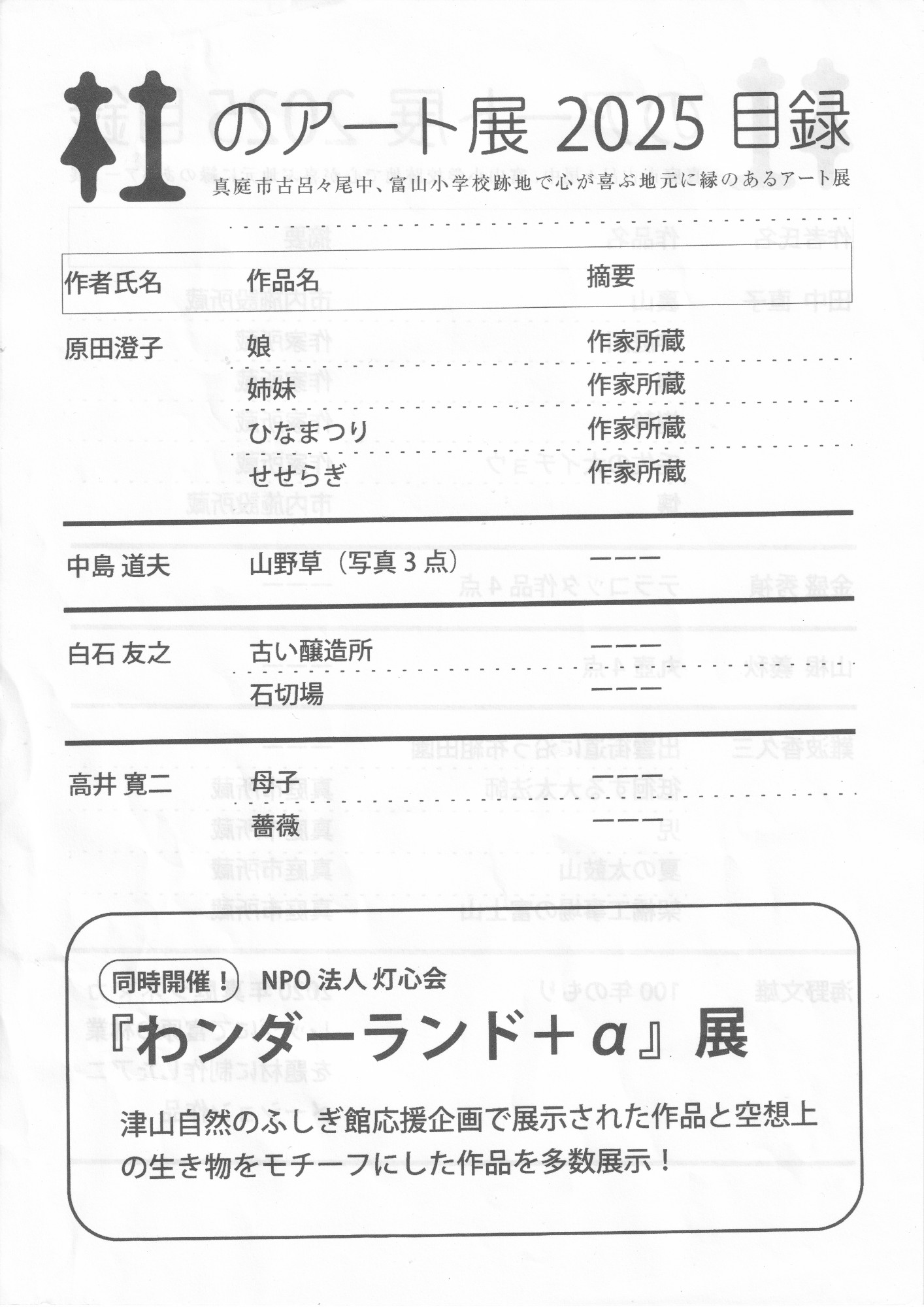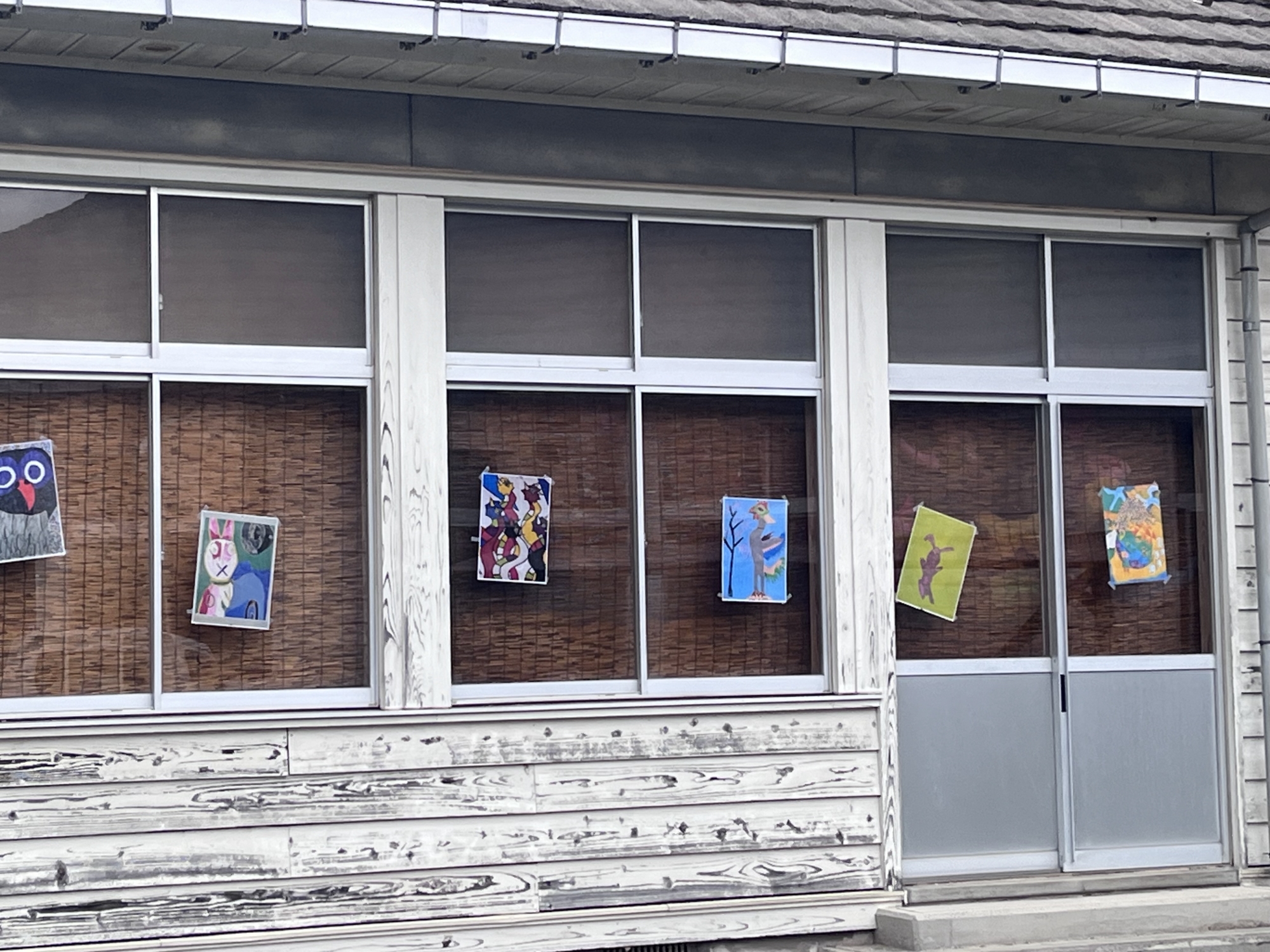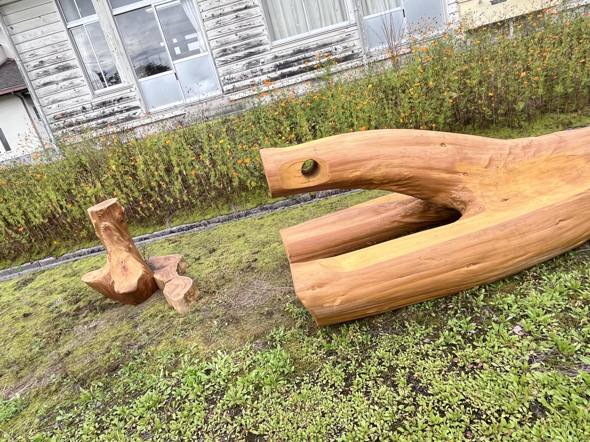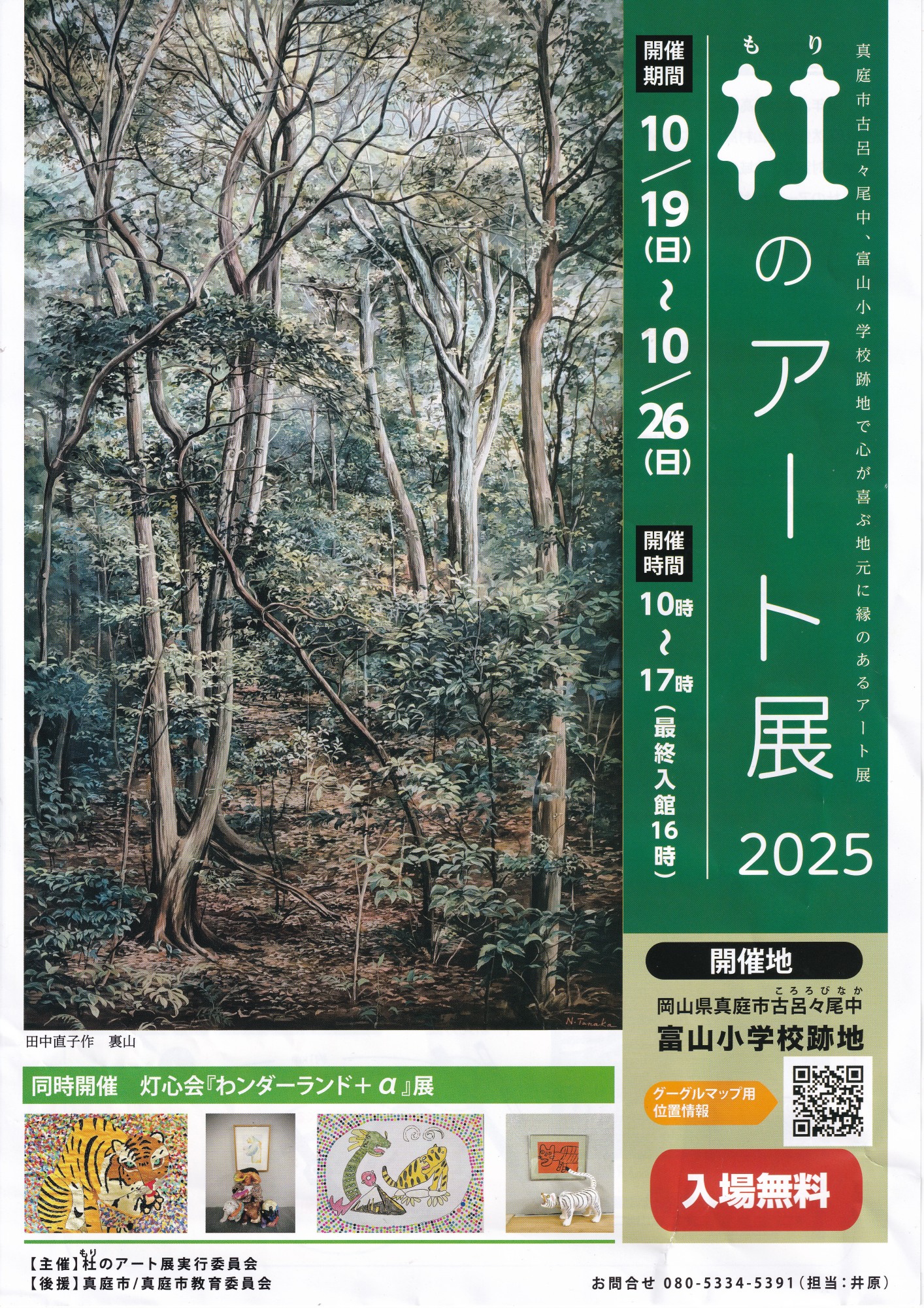 当初予定は、N美術館からカフェAのつもりだったのですが、そういえば、杜のアート展が、古呂々尾中の富山小学校跡でやってたよなぁって、あっ、今日からっていうので、行先変更!!
