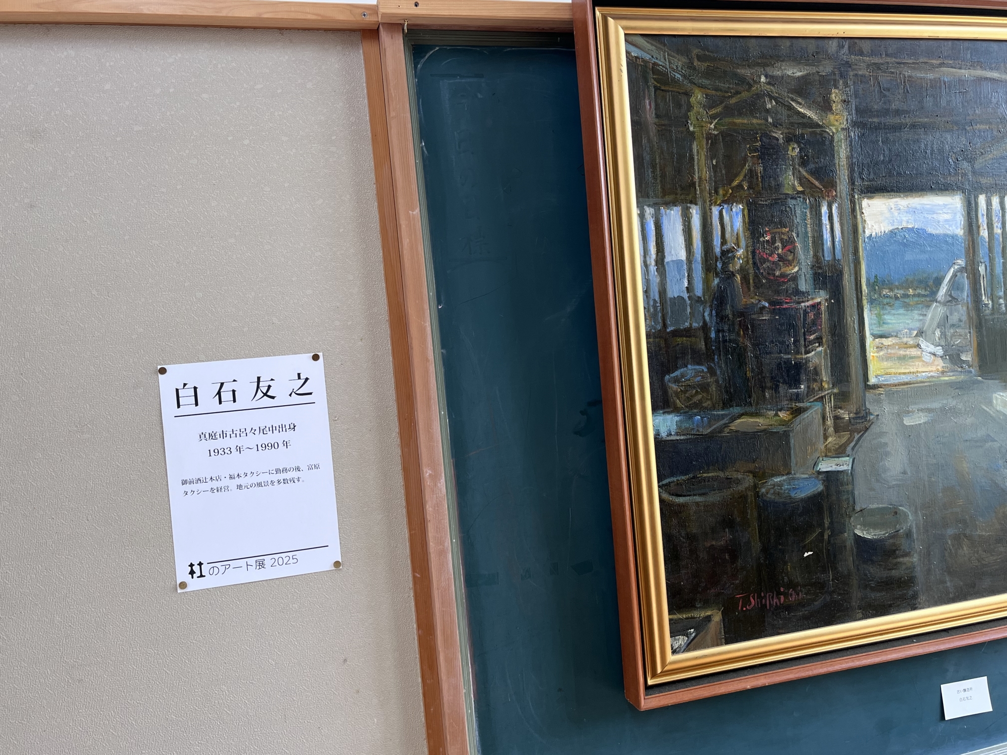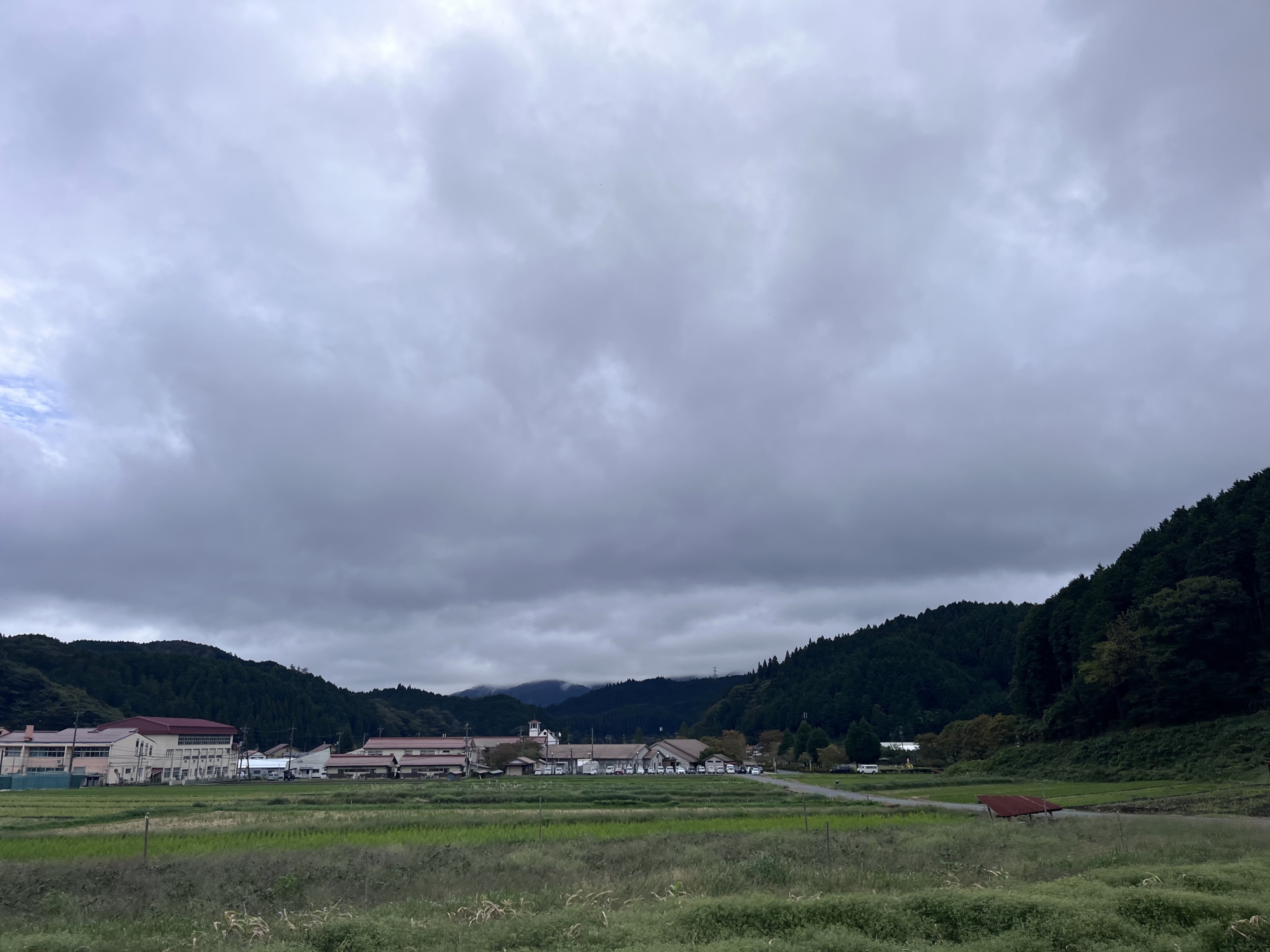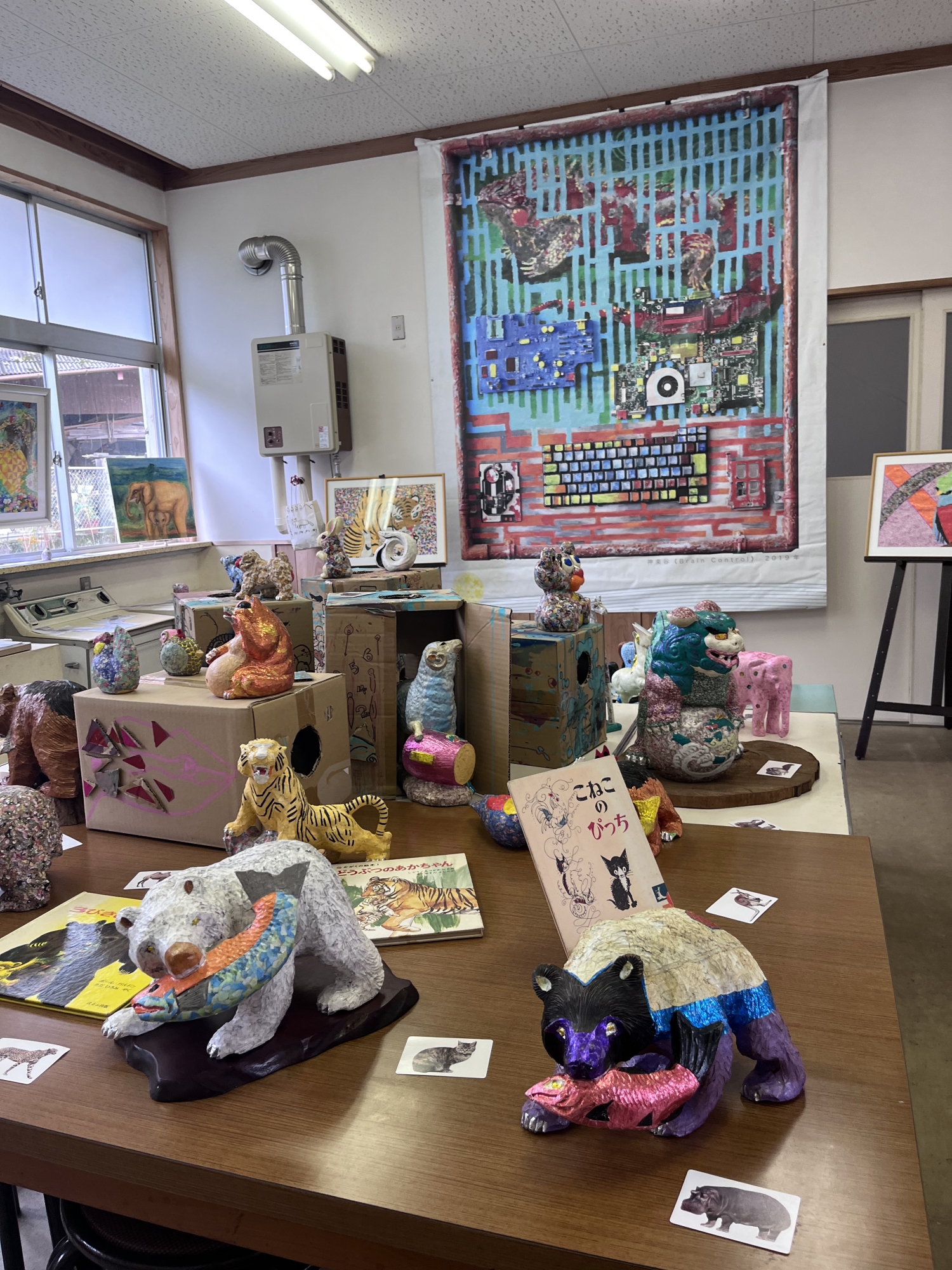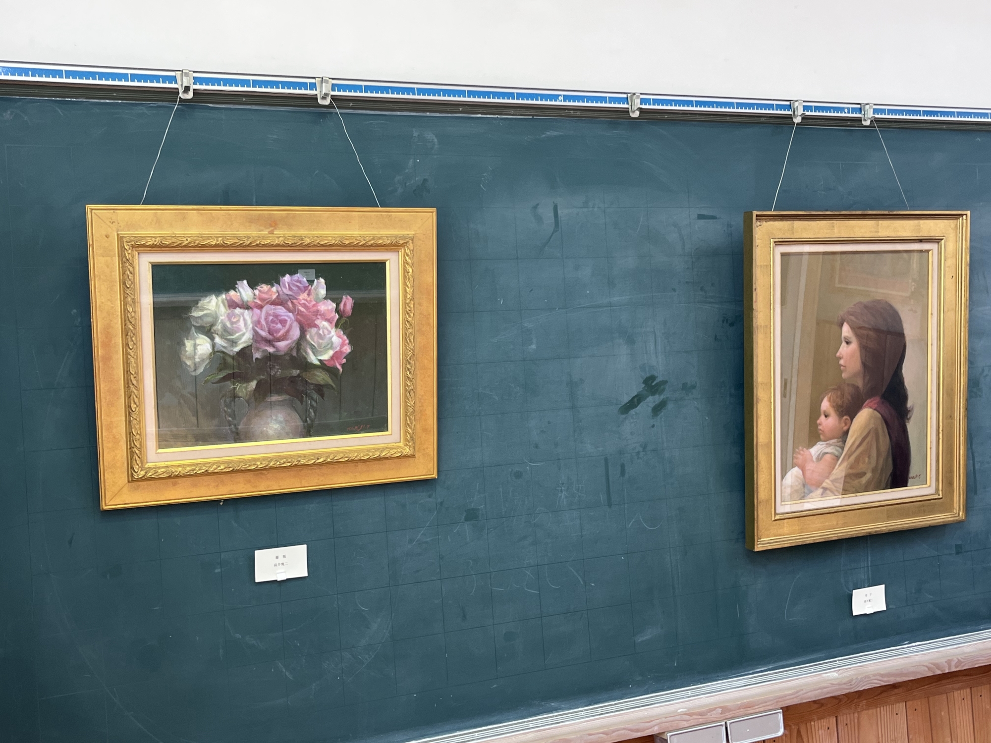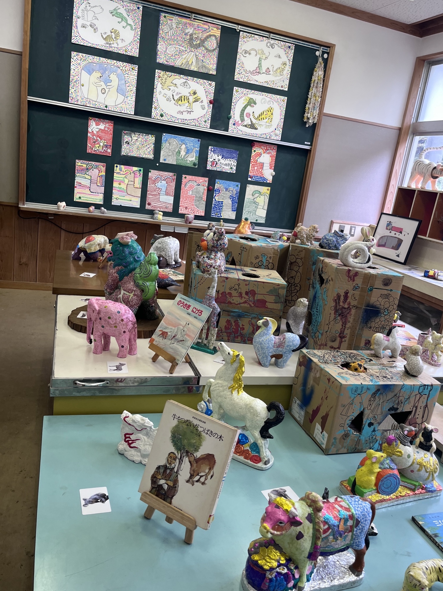 当初予定は、N美術館からカフェAのつもりだったのですが、そういえば、杜のアート展が、古呂々尾中の富山小学校跡でやってたよなぁって、あっ、今日からっていうので、行先変更!!