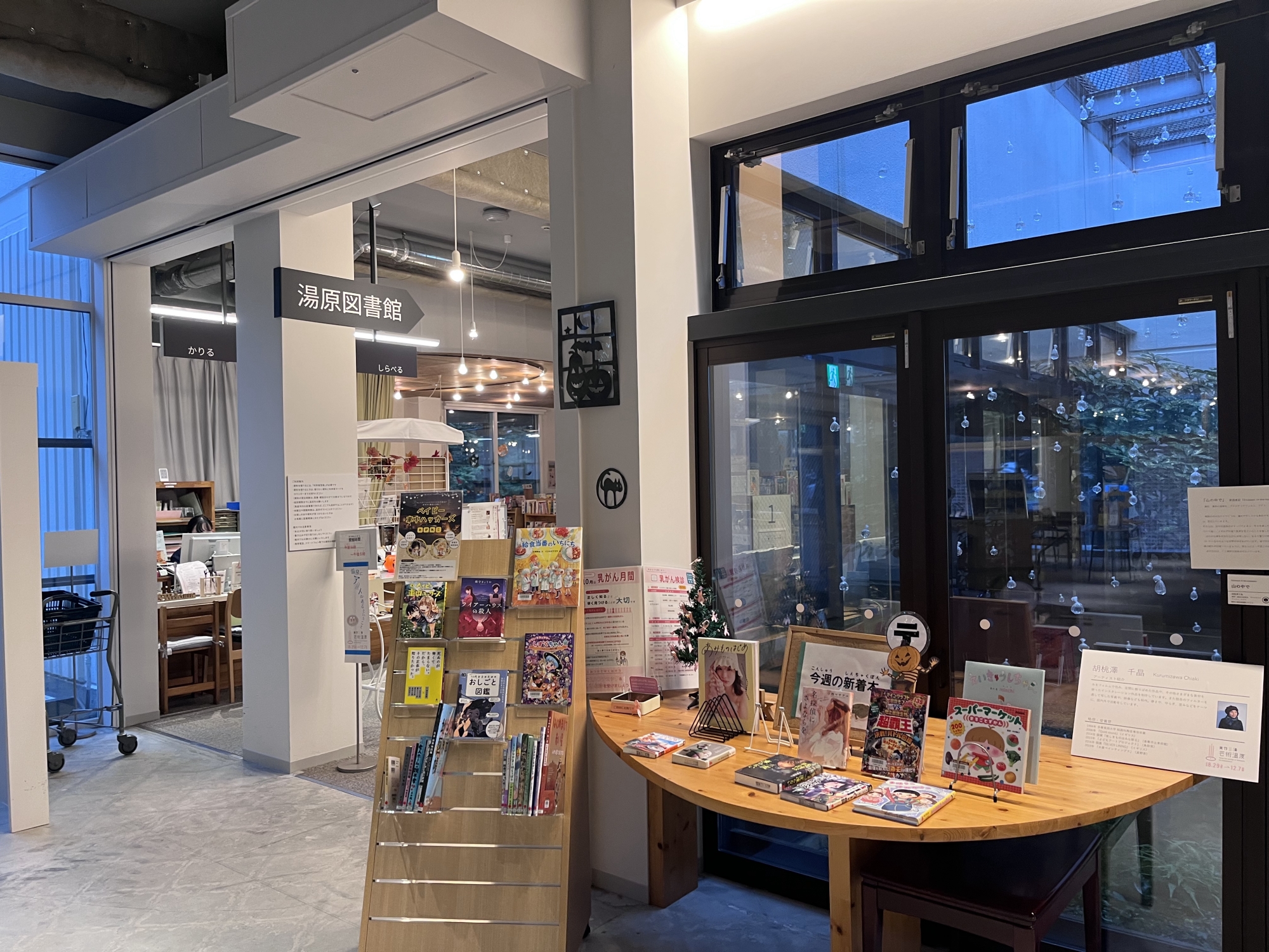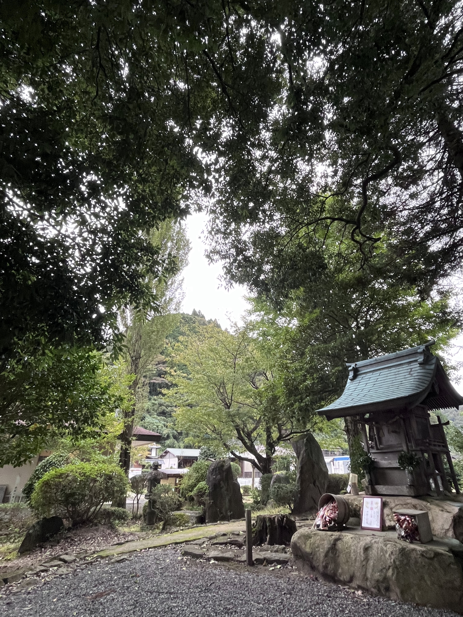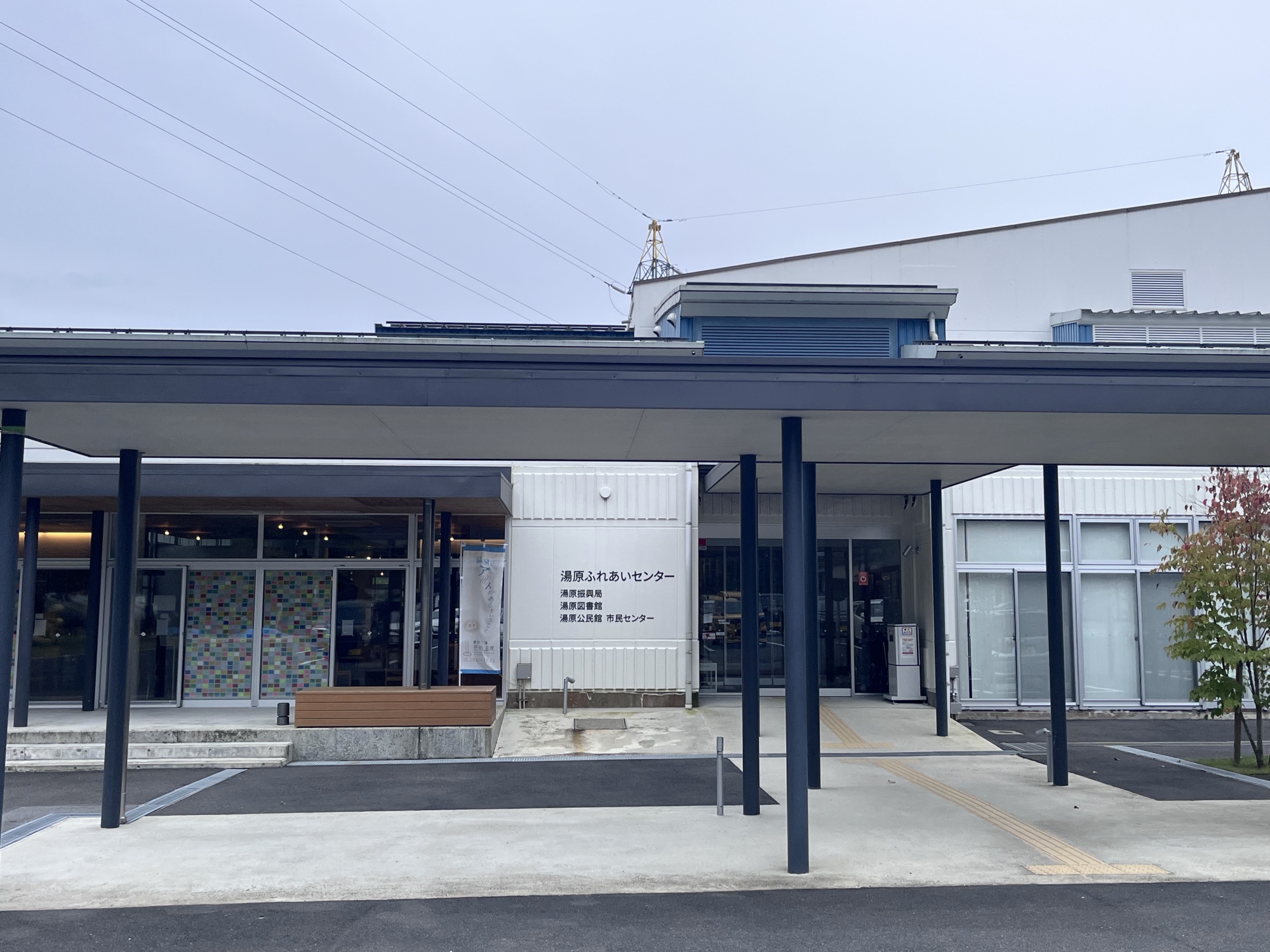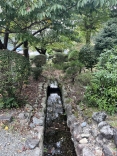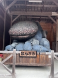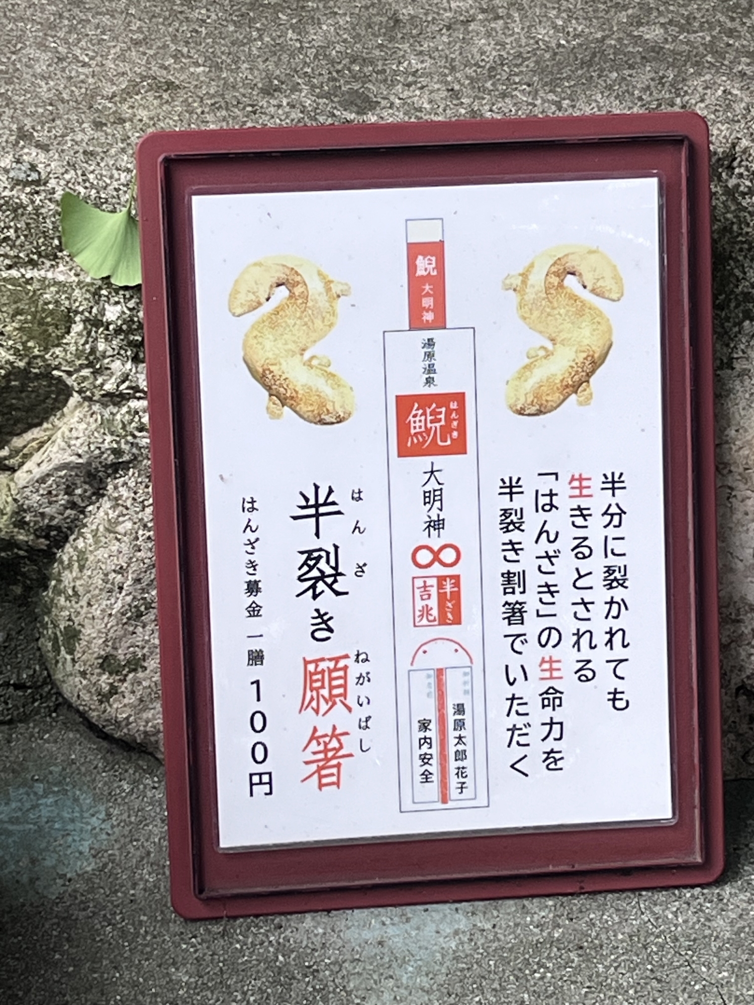 津山から戻って湯原図書館へ.向かいは鯢(ハンザキ=オオサンショウウオ)大明神.