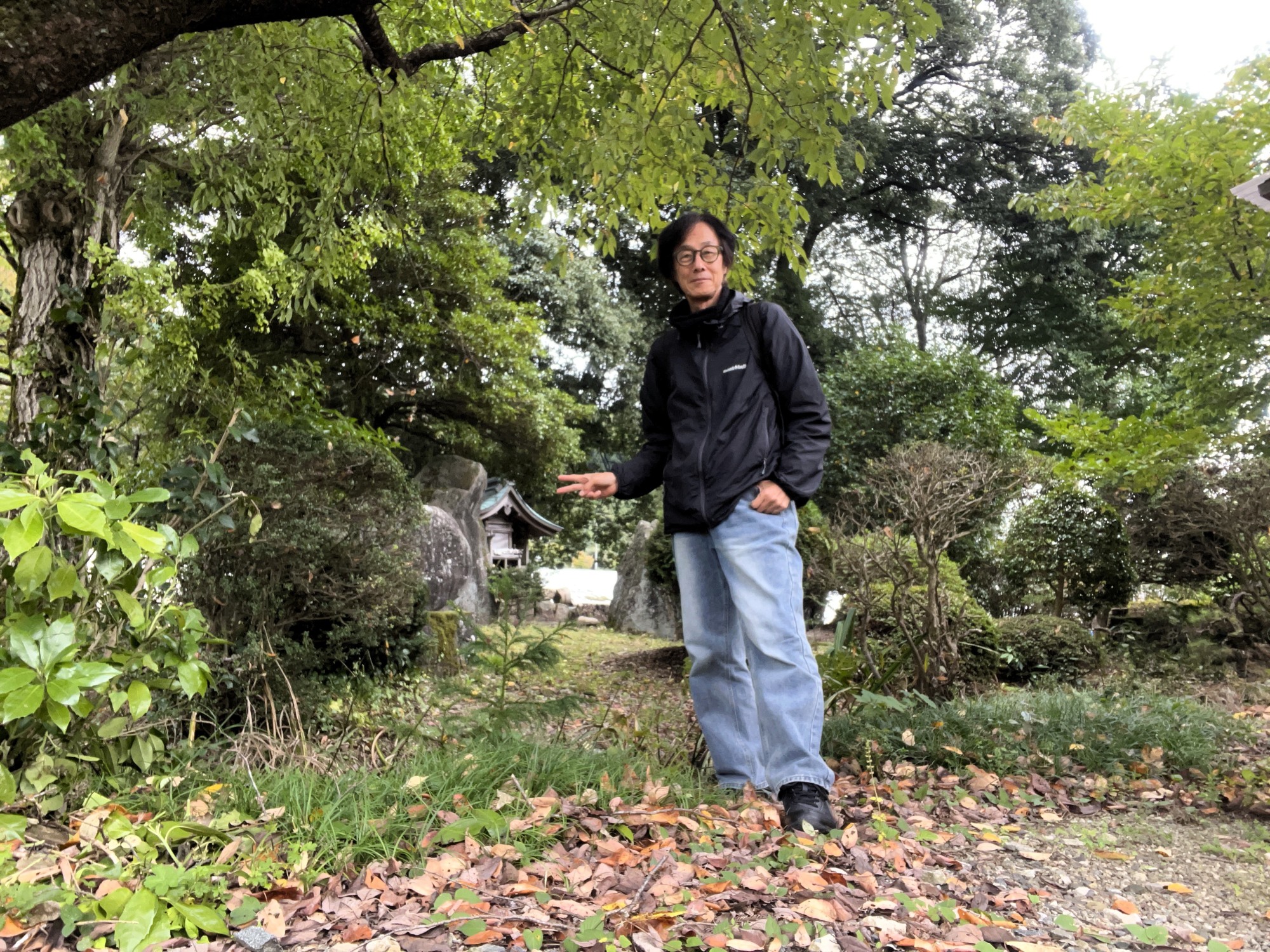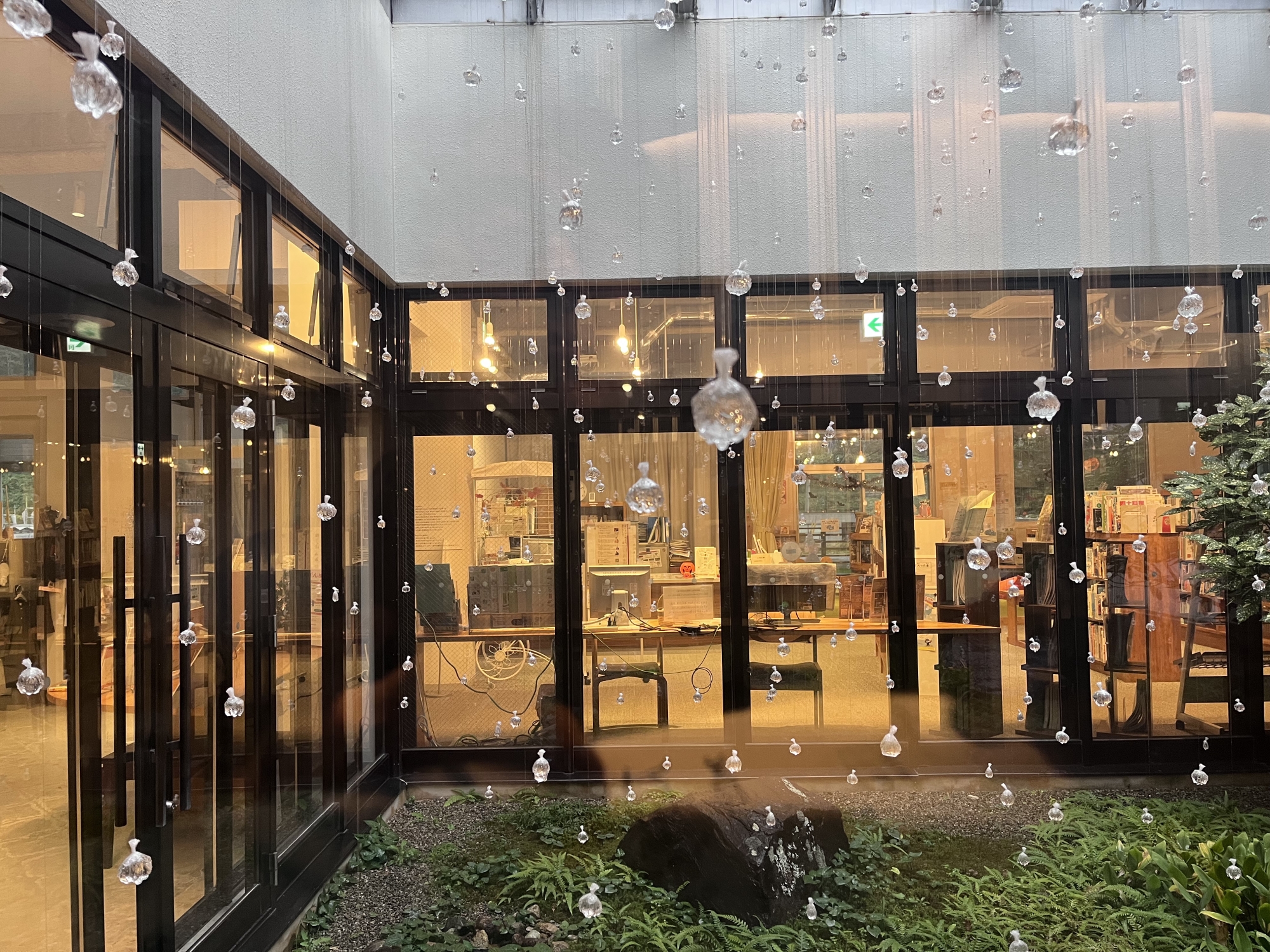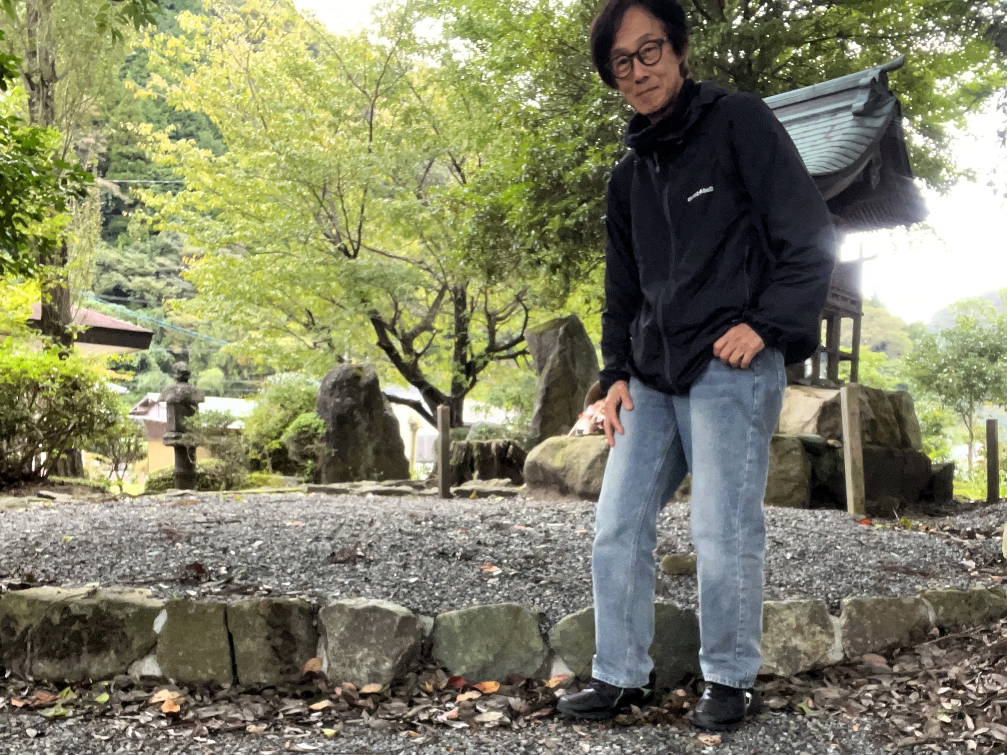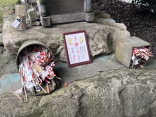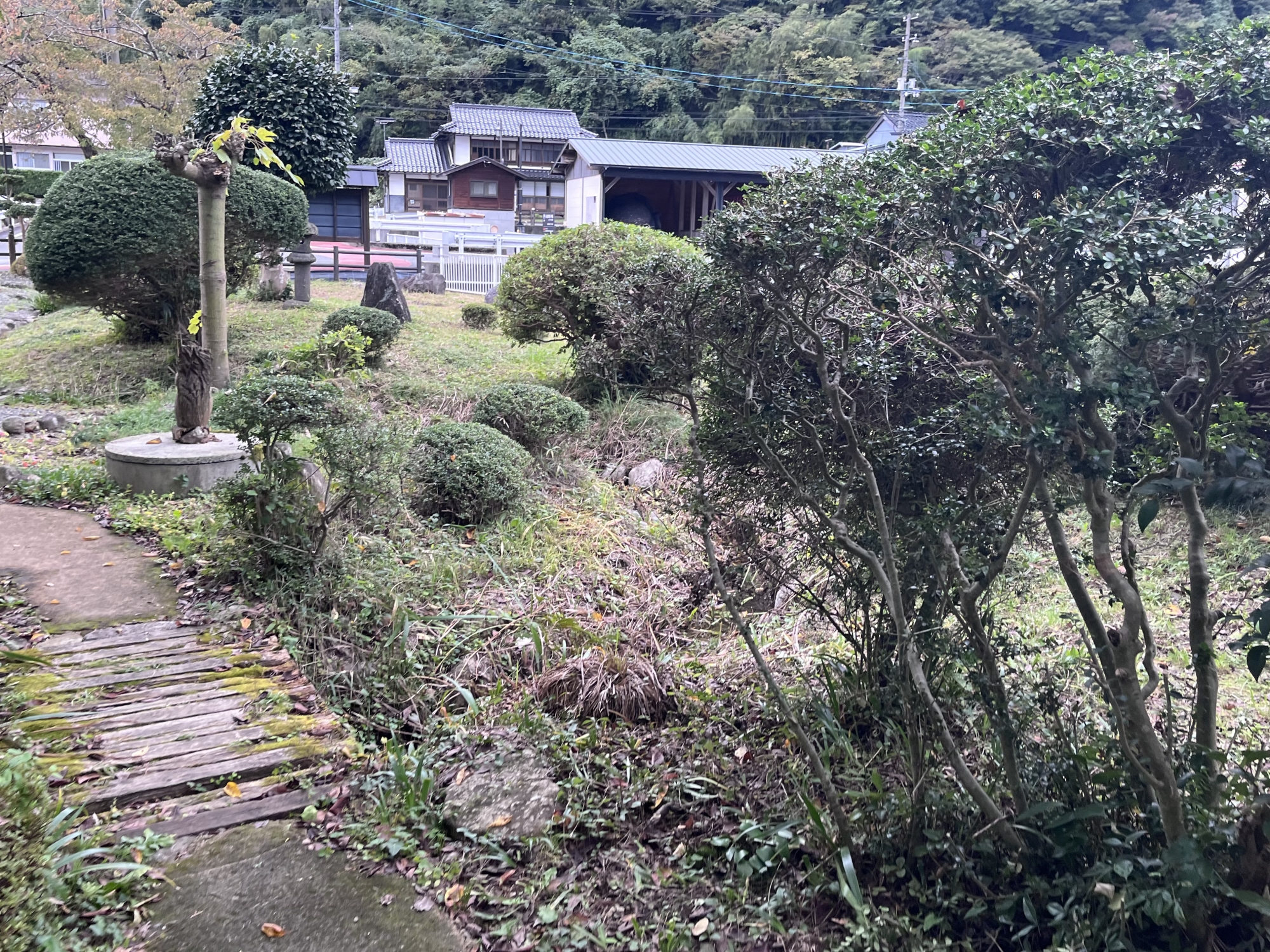 津山から戻って湯原図書館へ.向かいは鯢(ハンザキ=オオサンショウウオ)大明神.