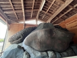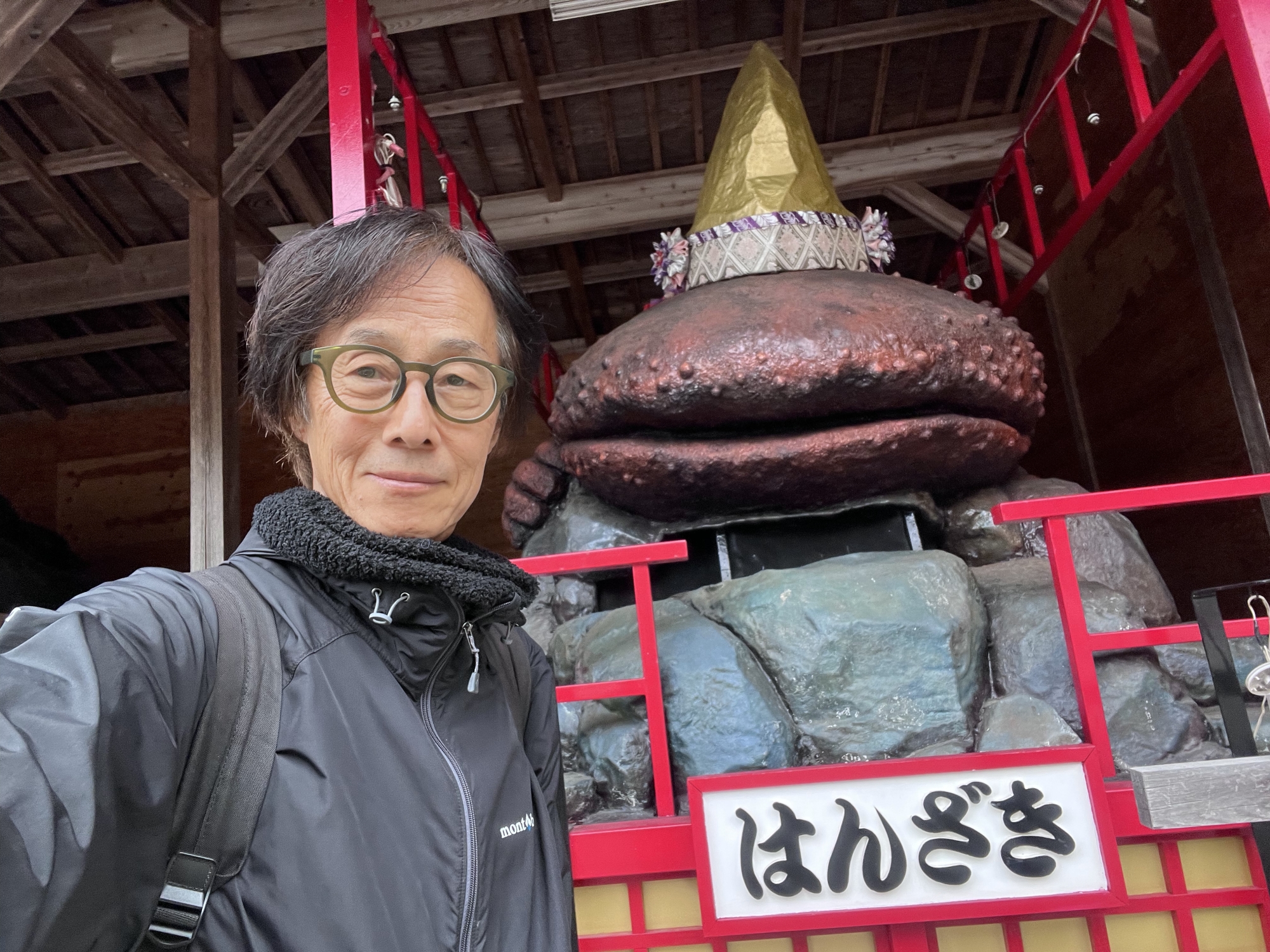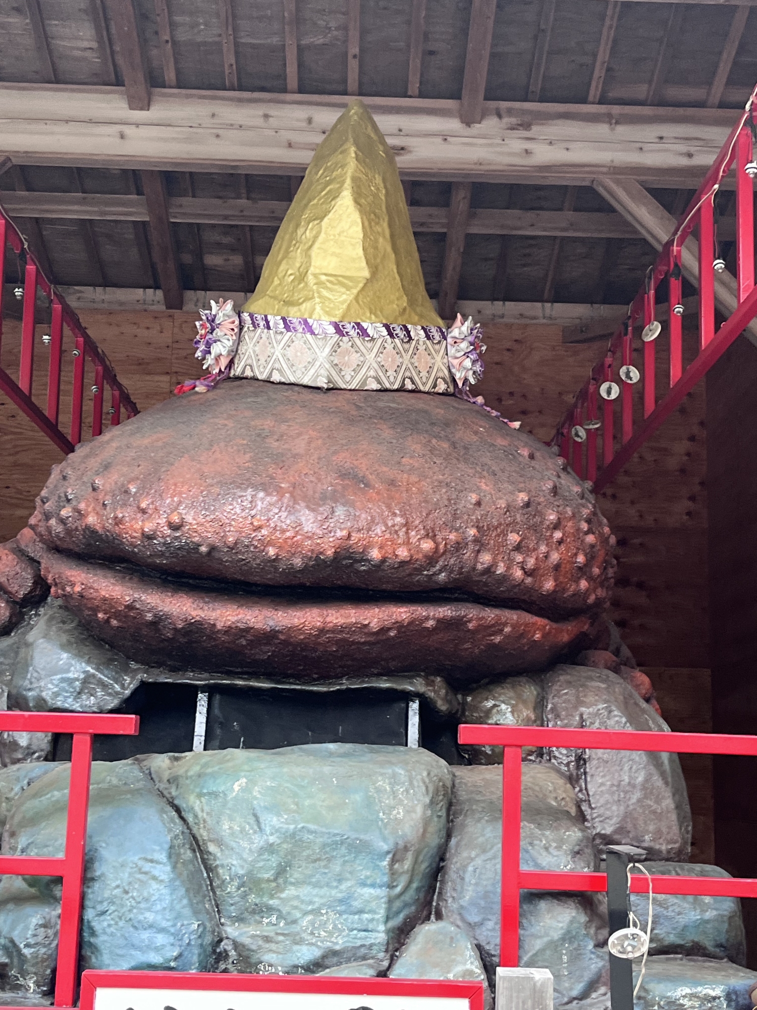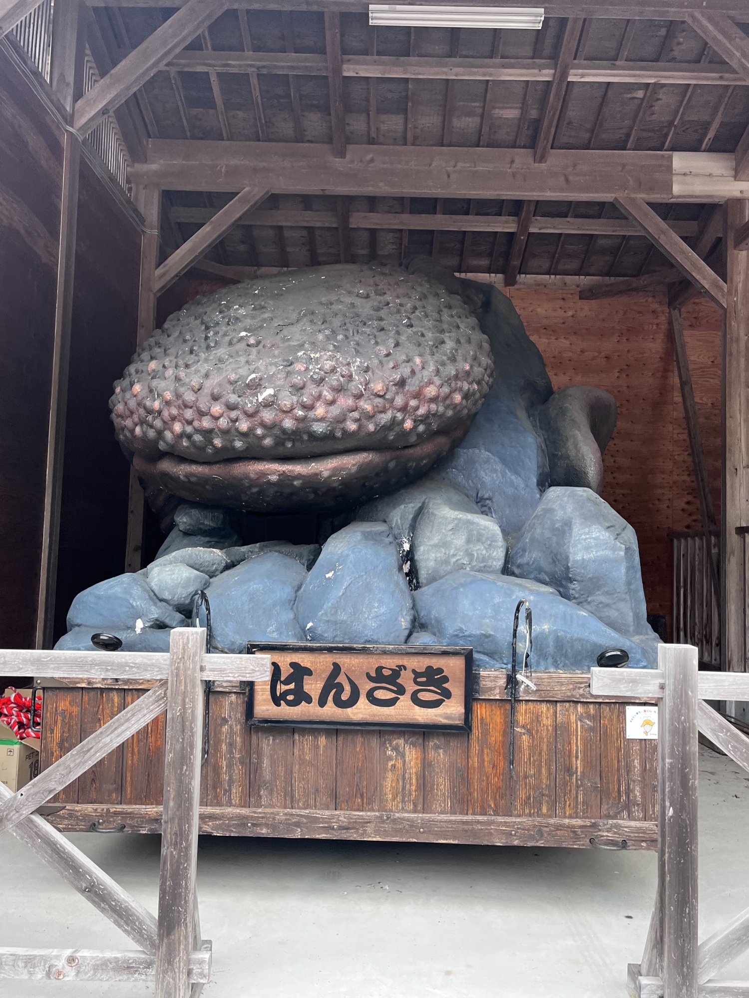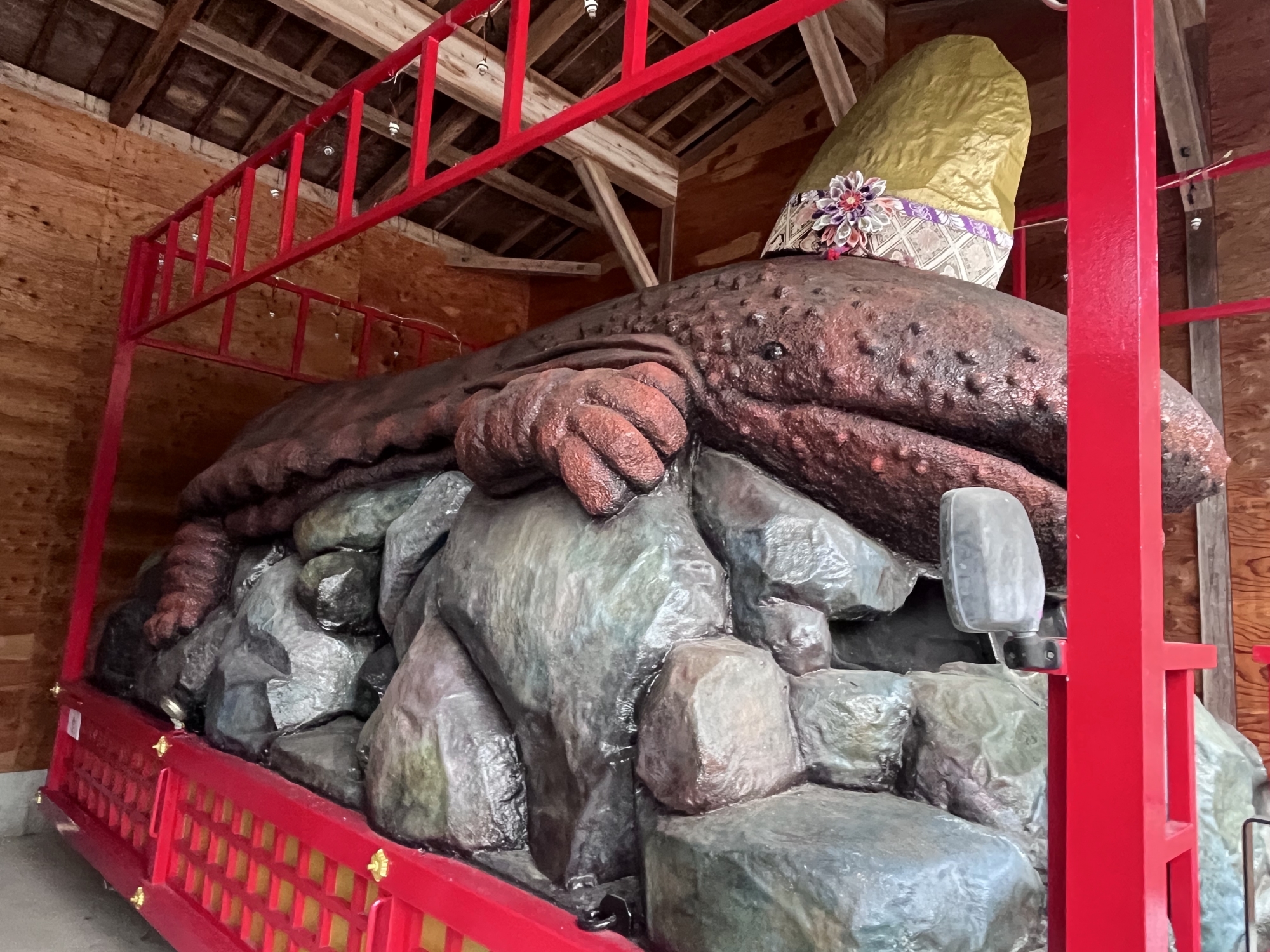 そして、はんざきの山車が……扉が空いていて、すごい、デカい、はんざき!!!!