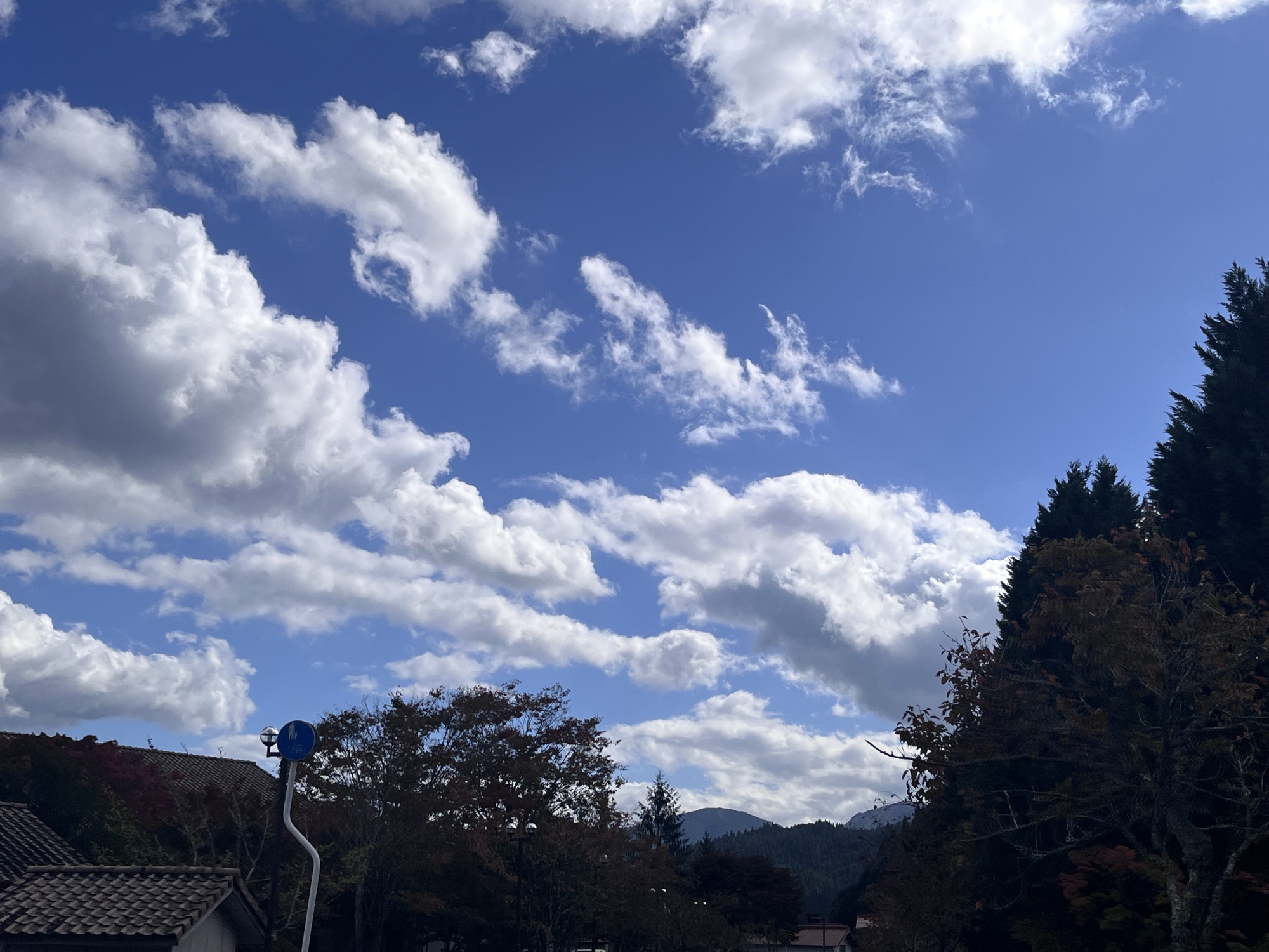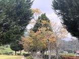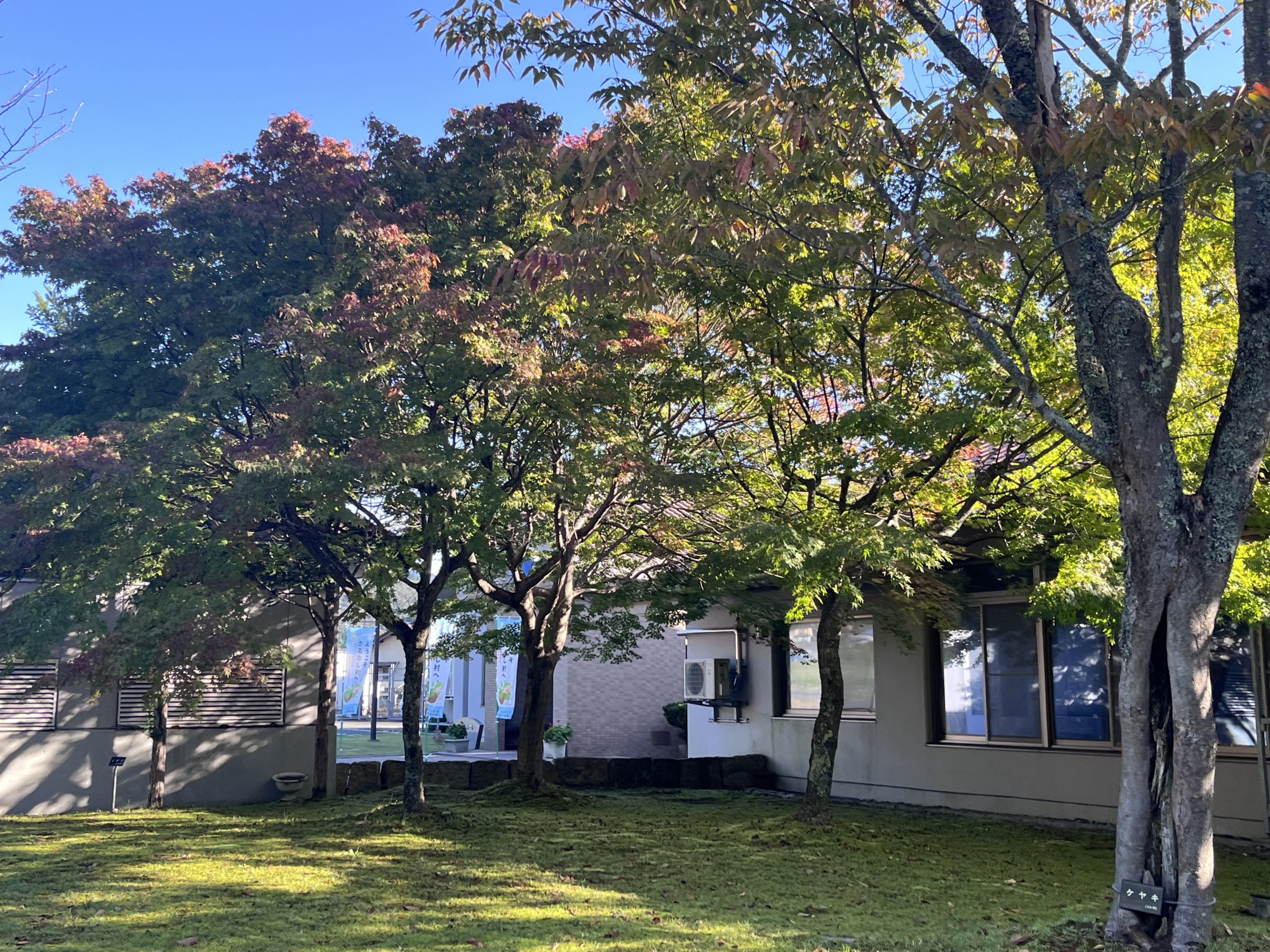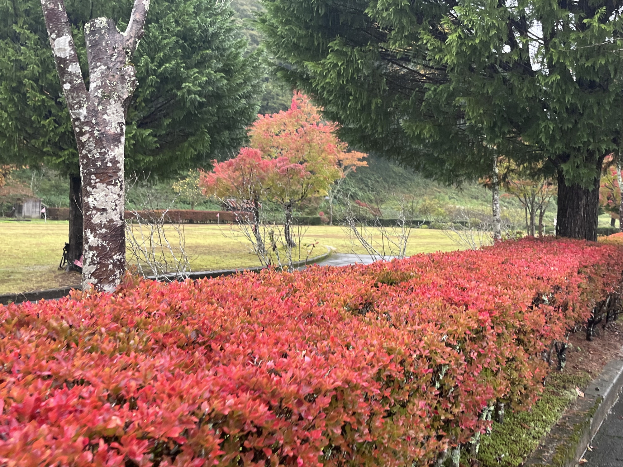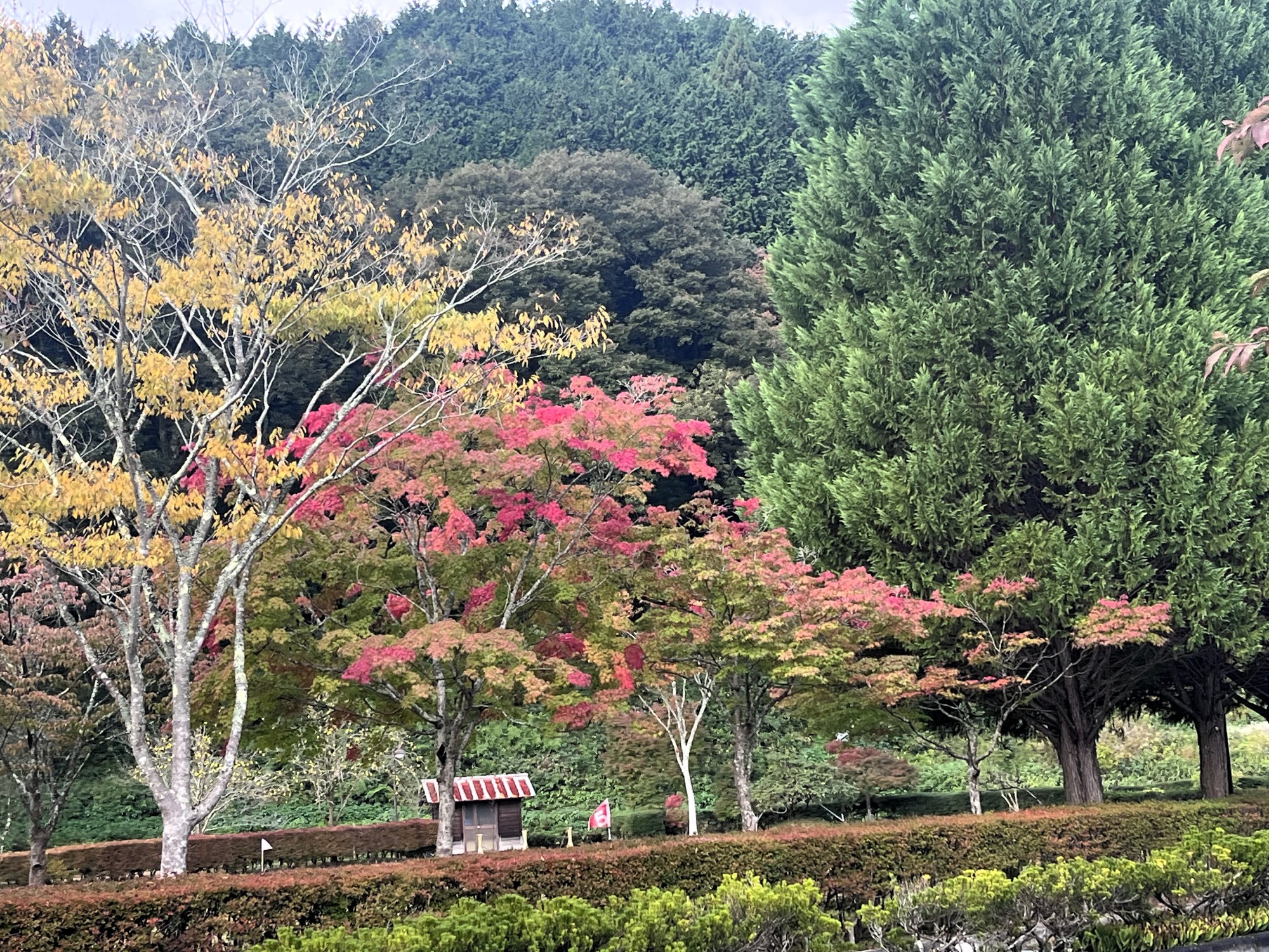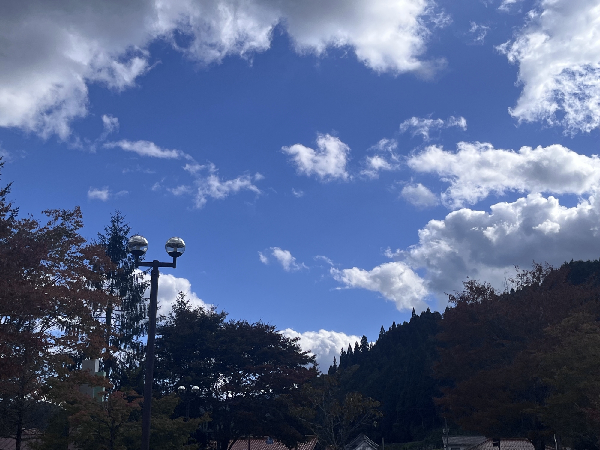 朝は青空……ふれあい公園も紅葉のコントラストが良い感じ.