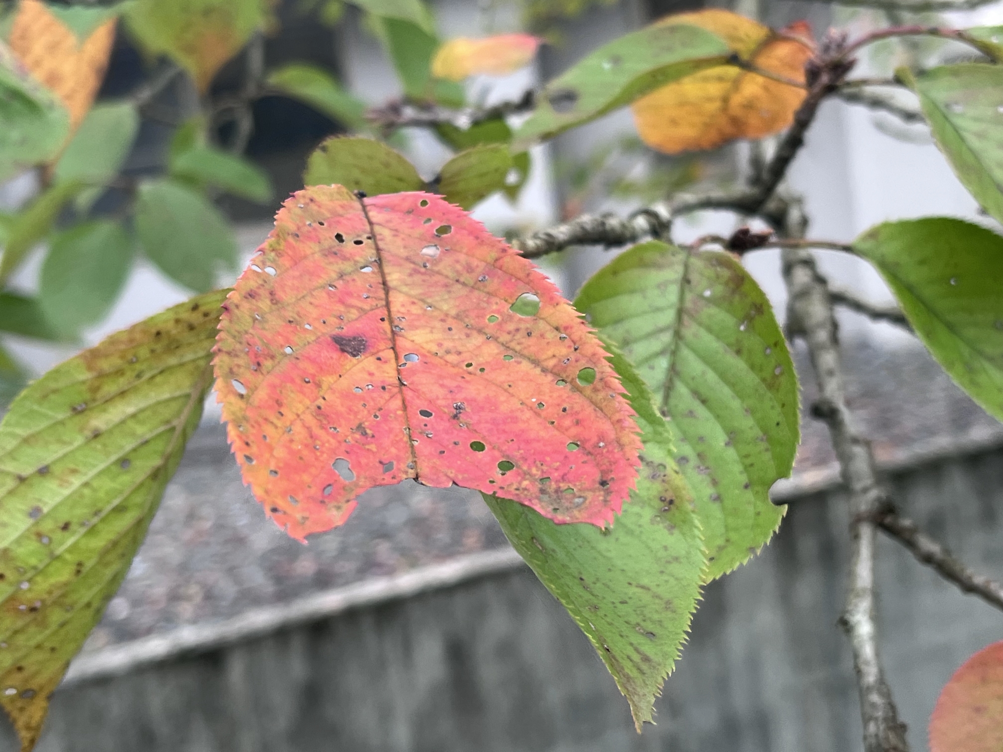 桜の葉の色付き.