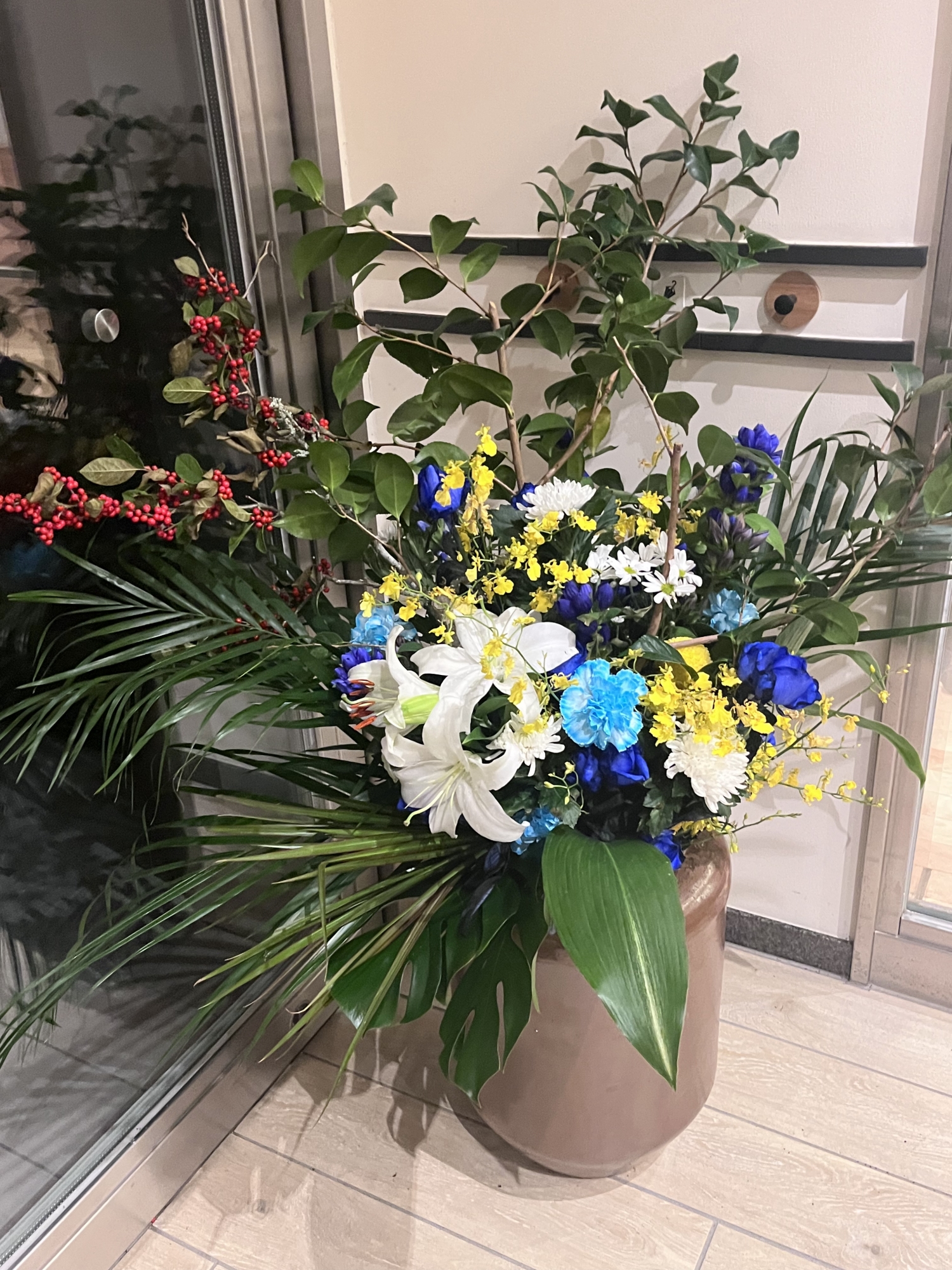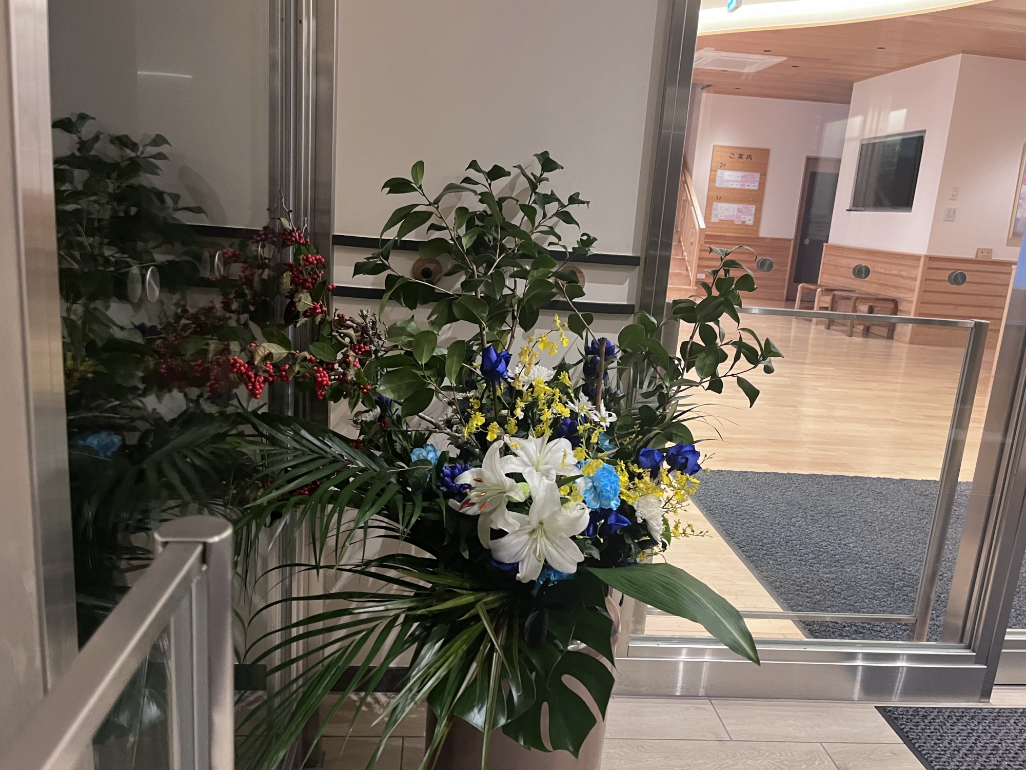 さて、終わってみて、役場の玄関の花、きれい!!!
