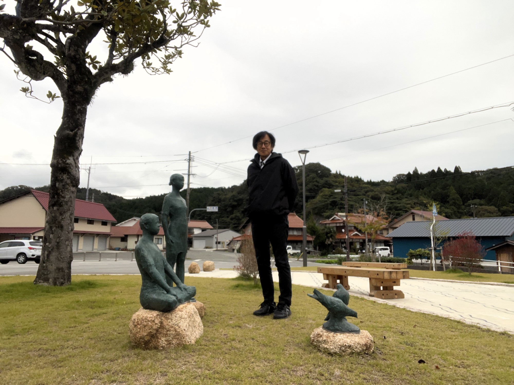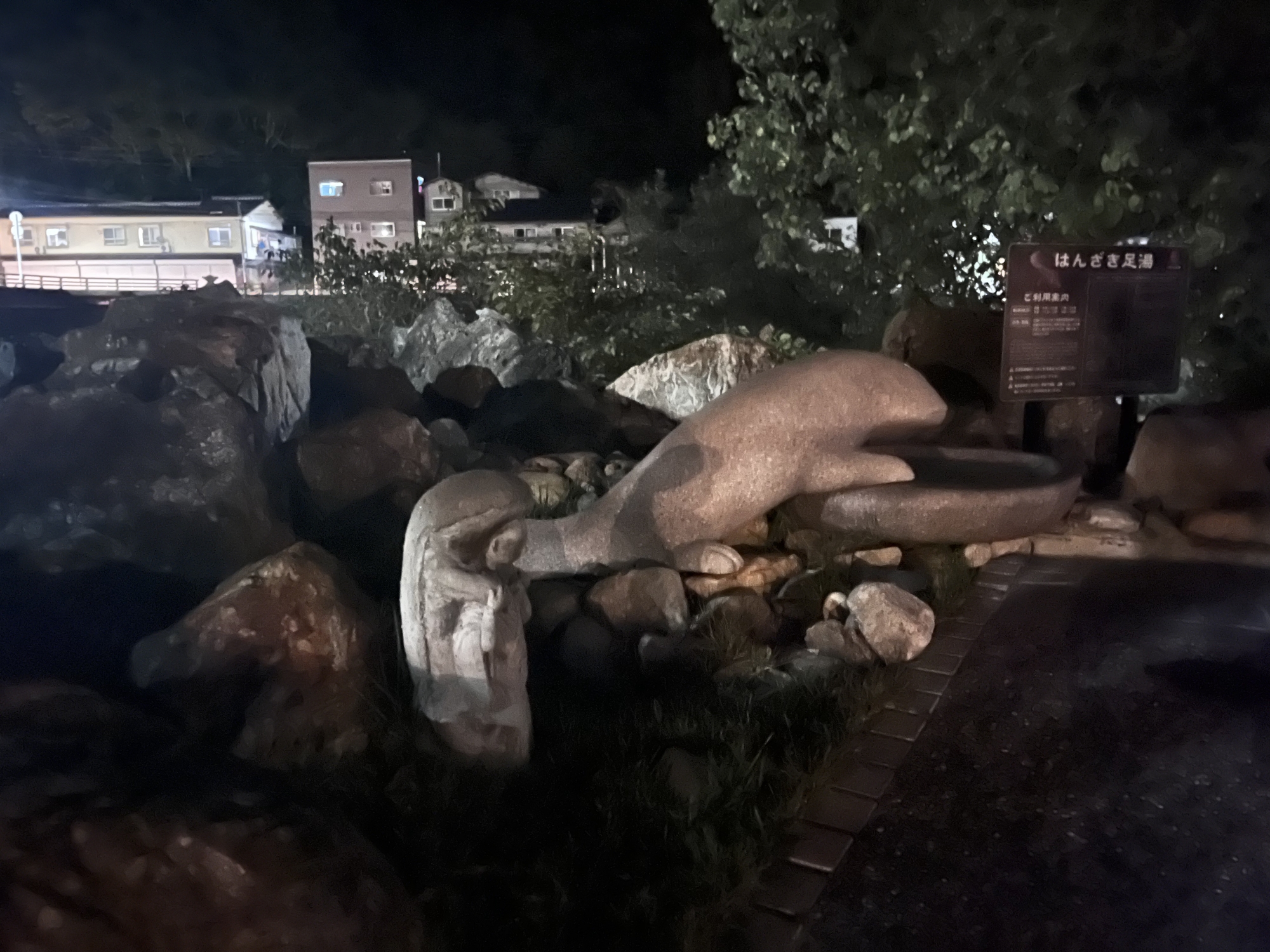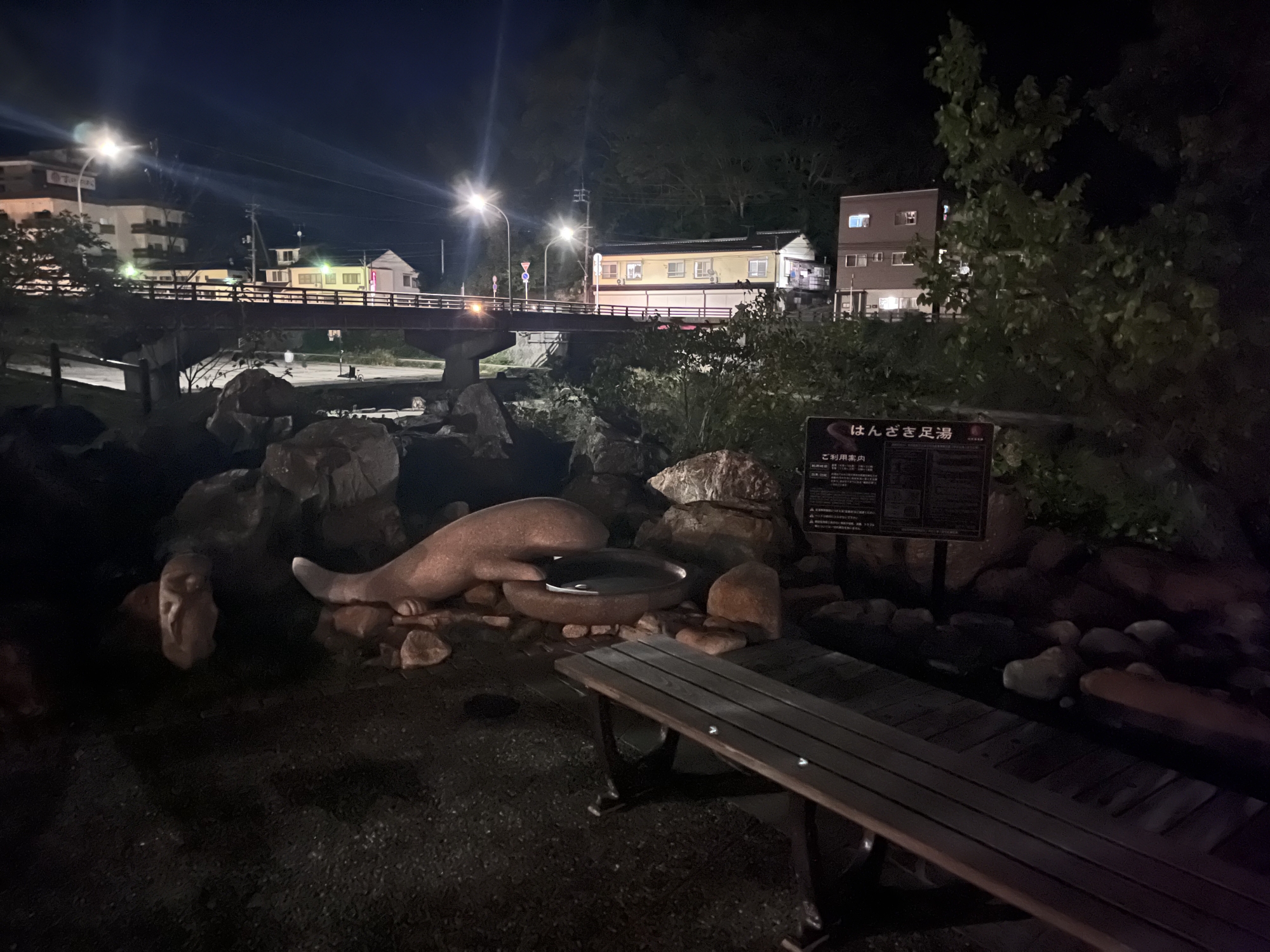 どなたかが、足湯に浸かられていました.帰宅前の会社員さん???