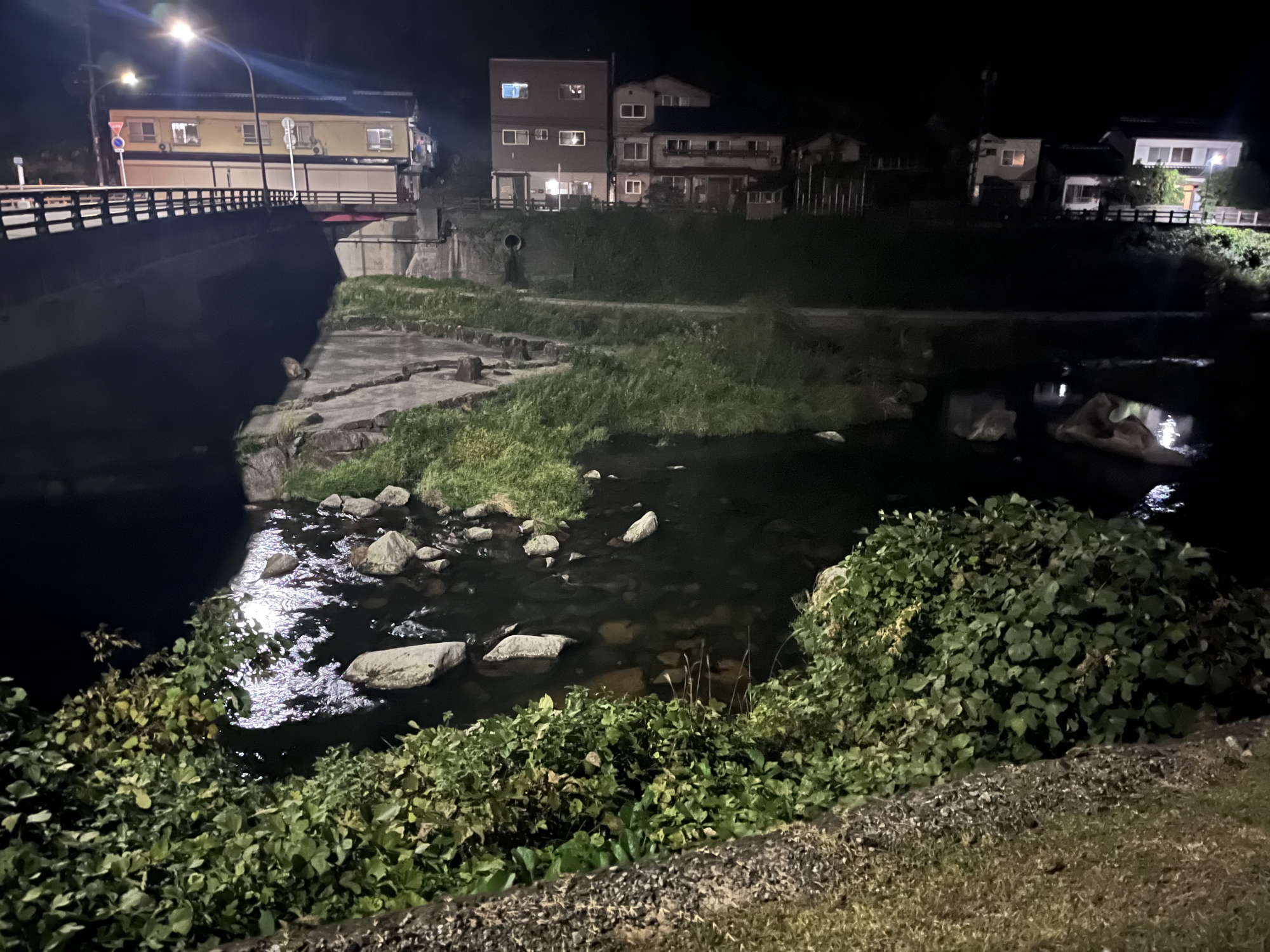旭川の向こうには灯りが.