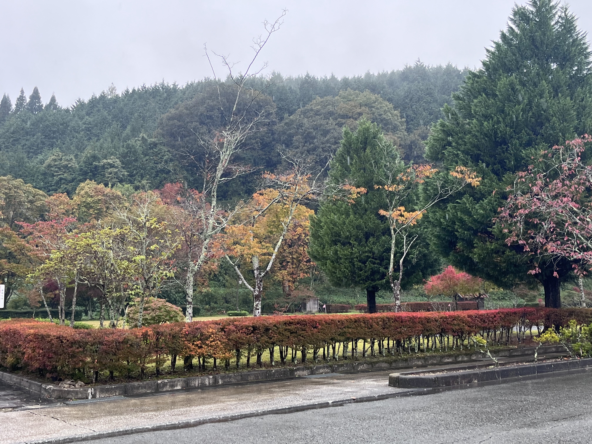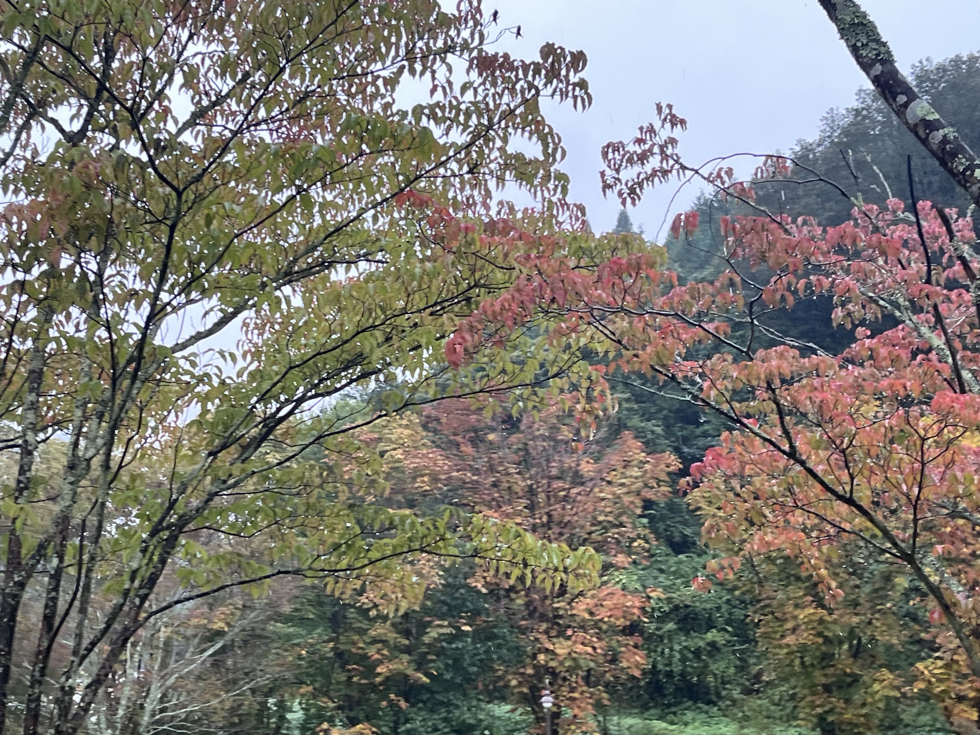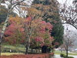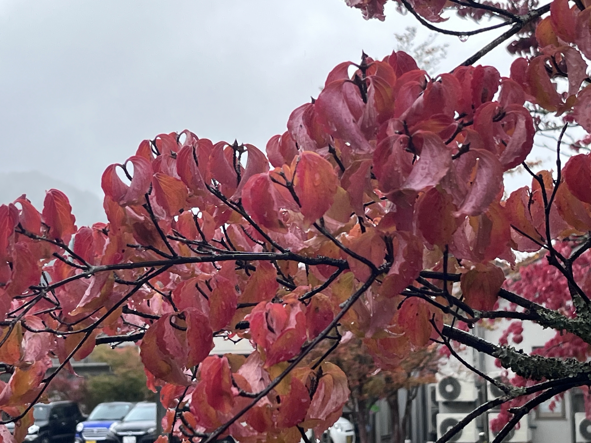 雨に洗われる紅葉.