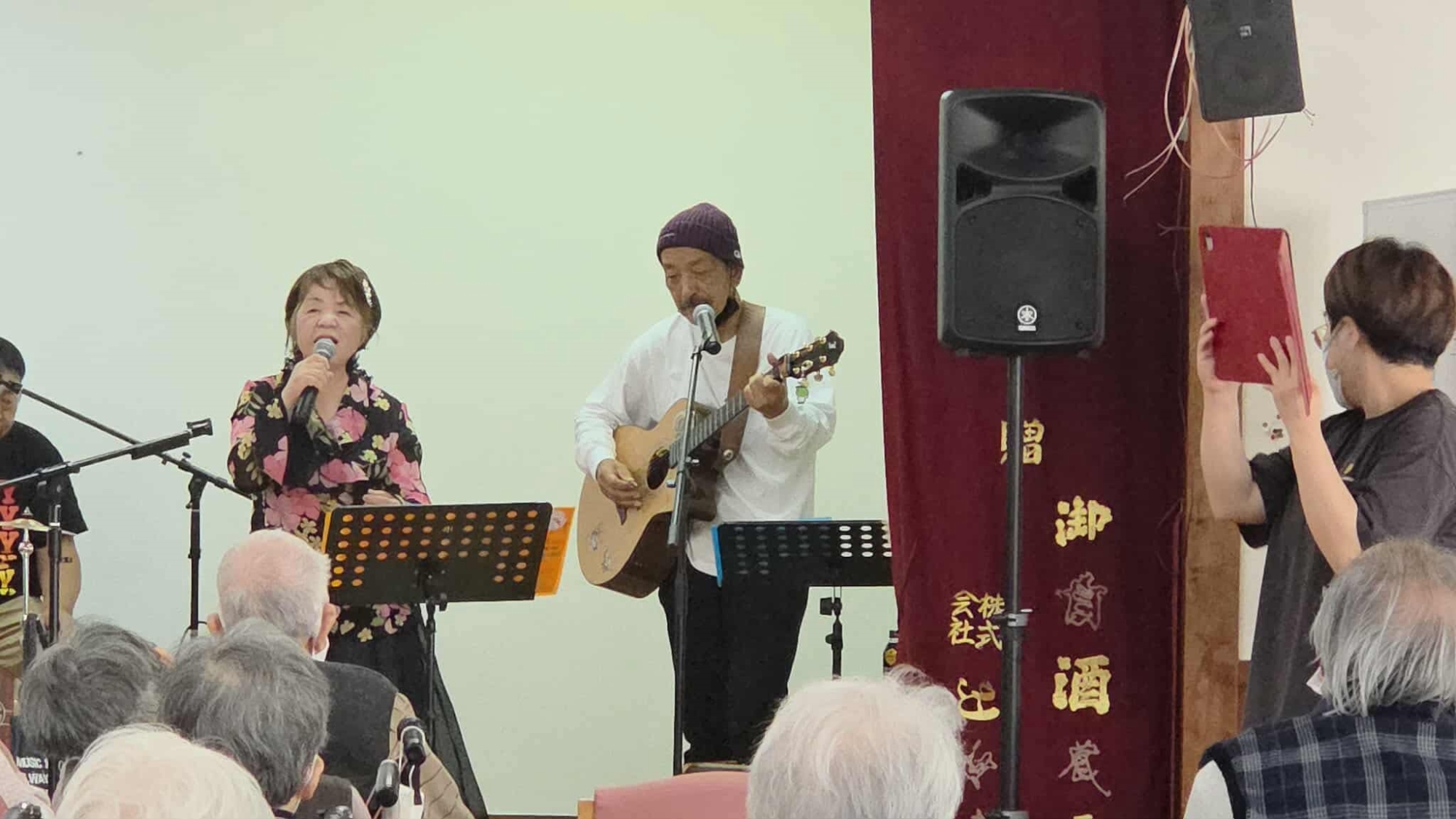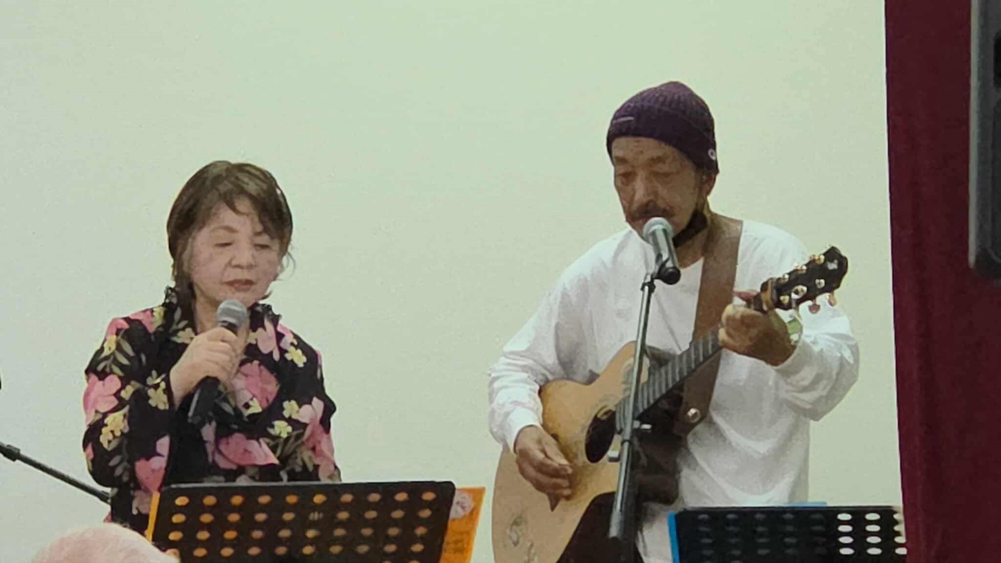 次は、いつもの「はるちゃん、けんちゃん」~去年は、その場での伴奏もしましたが……今回、オカリナのバックで、松井さんがギターを引いてくださいました.