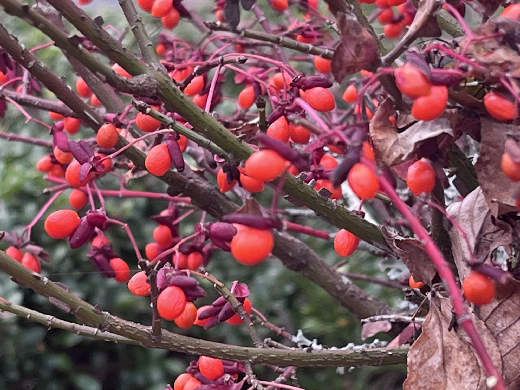 マユミの実……葉が散ってカメムシが居なくなりました.