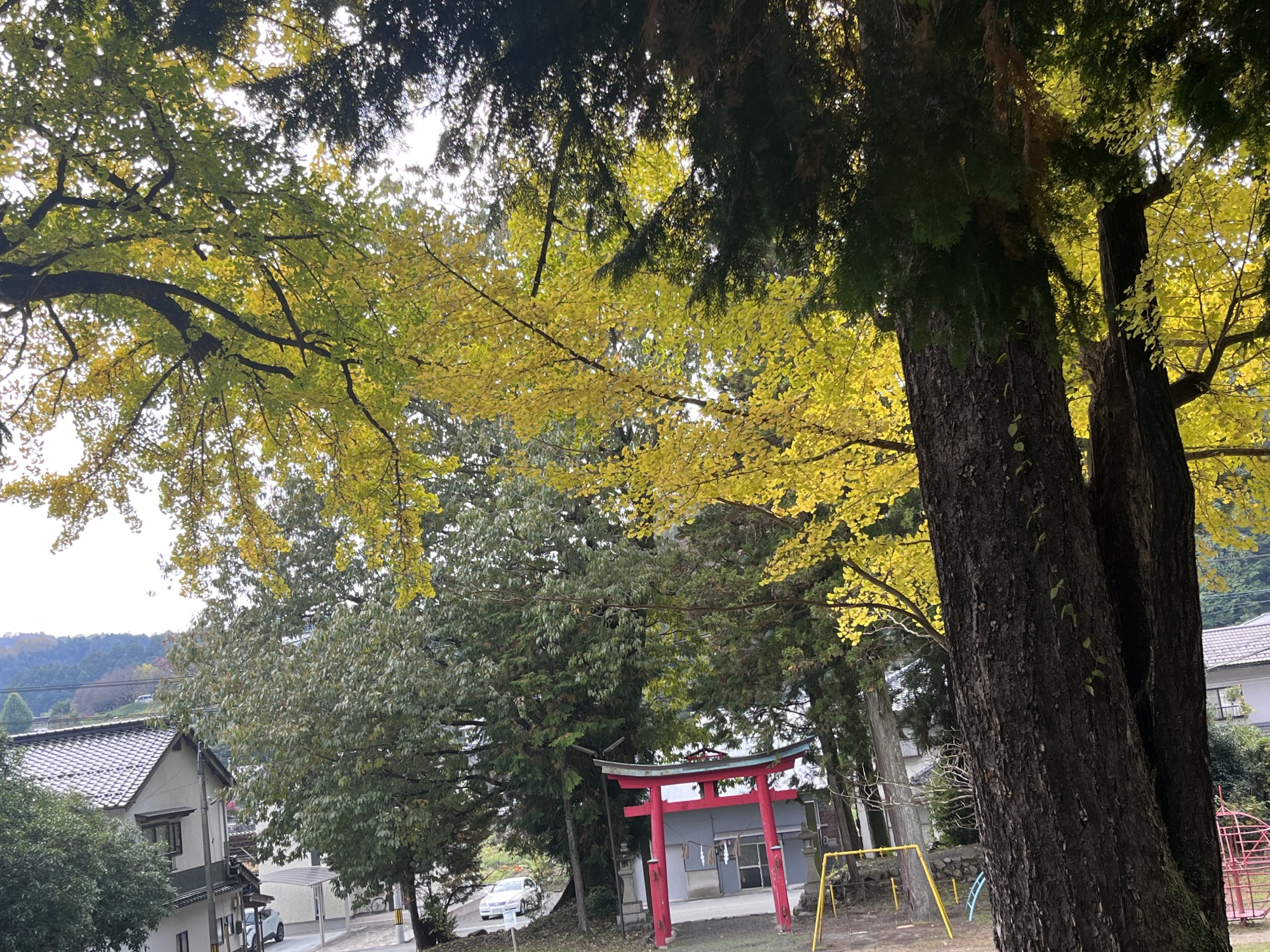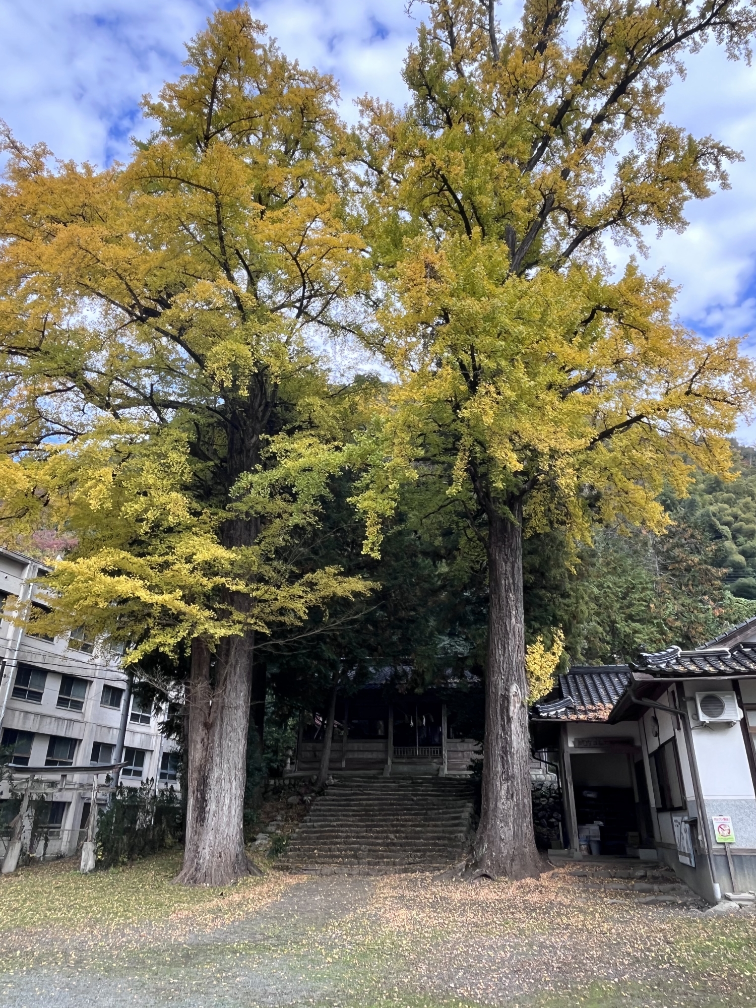 午後からは、久し振りに真庭市中央図書館のDVDシアターに行ってみようって……で、お隣の速日神社~2本の高い銀杏.
