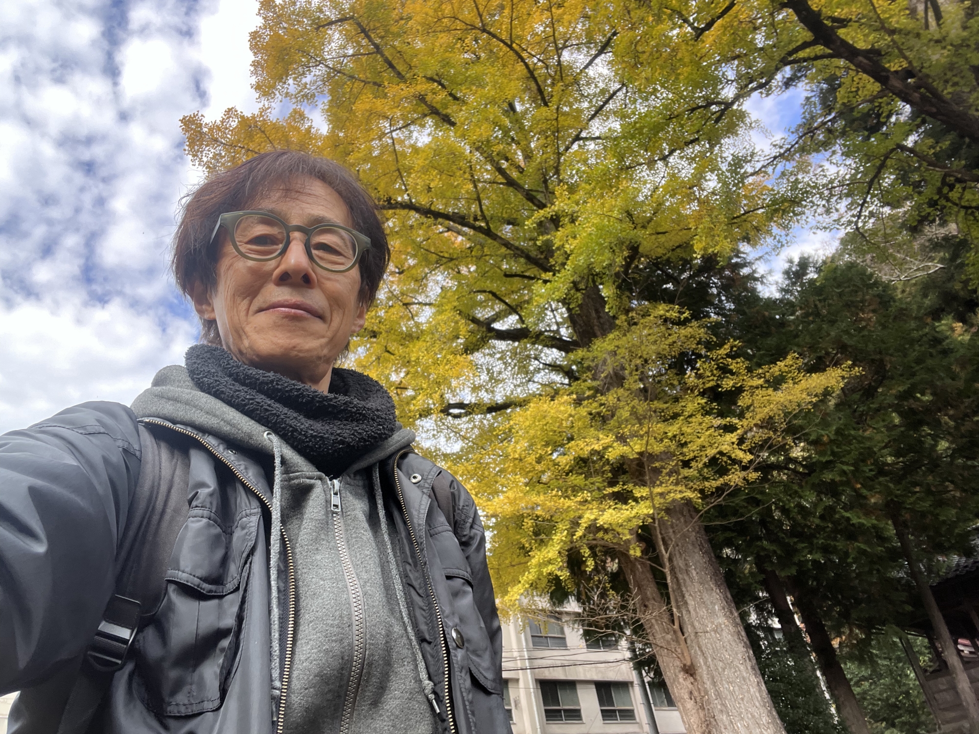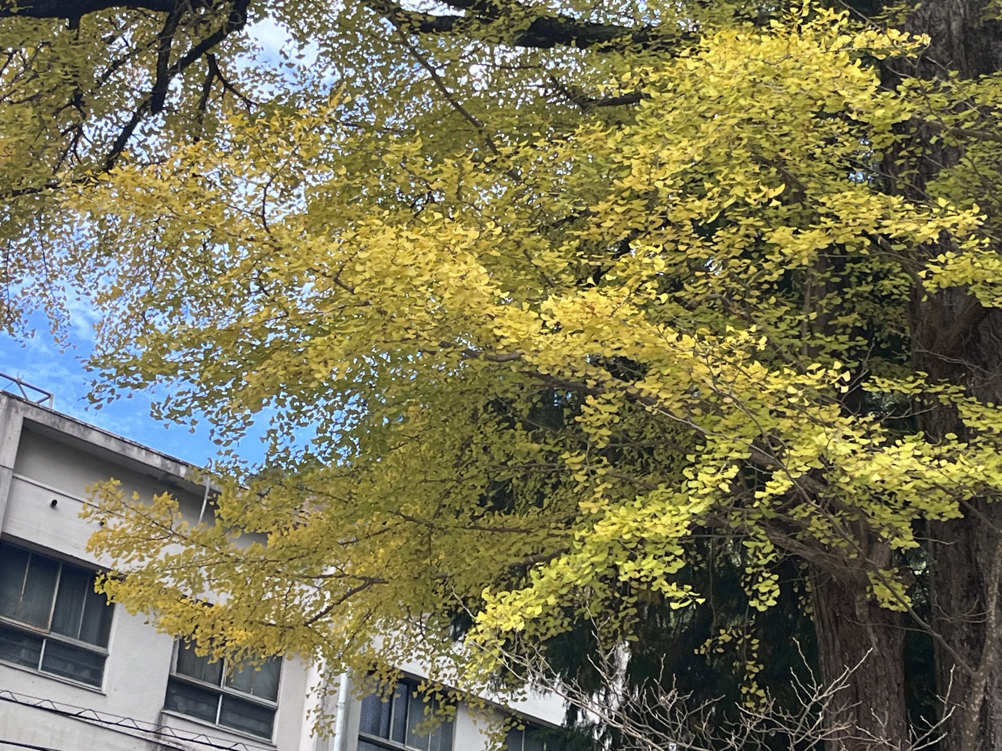 この前は、風のある日で、銀杏の葉が散って舞っていましたね.