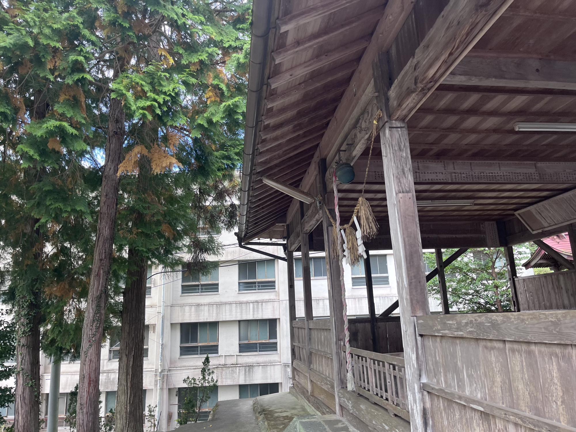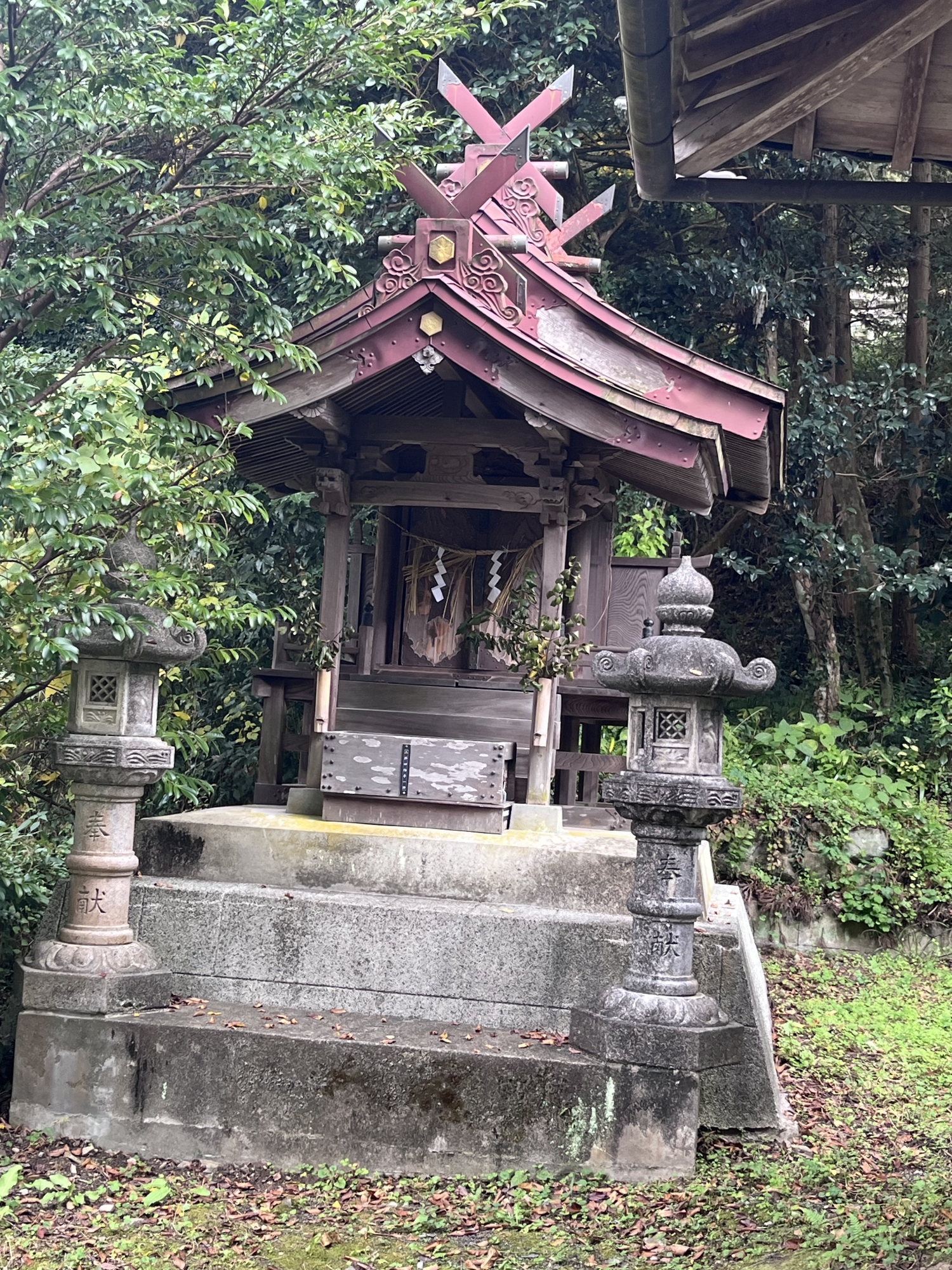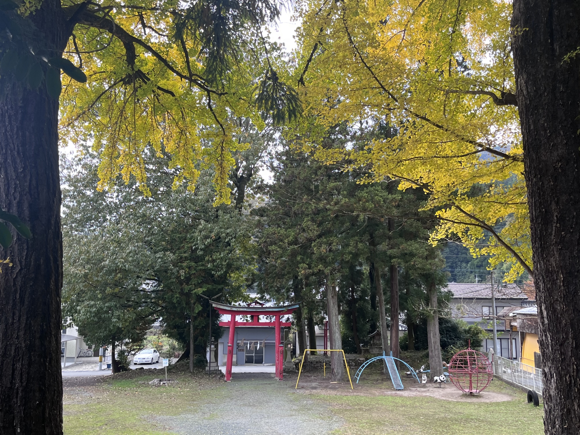 向こうに赤い鳥居.