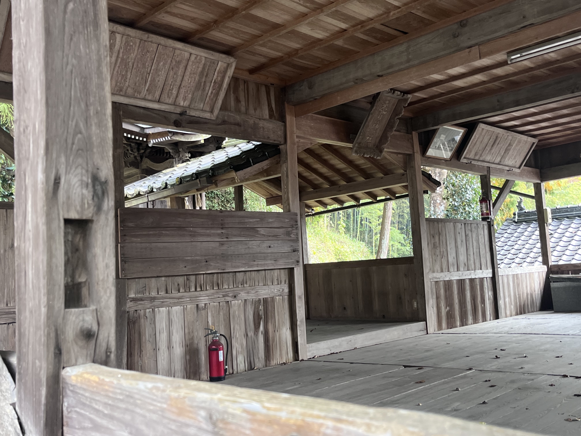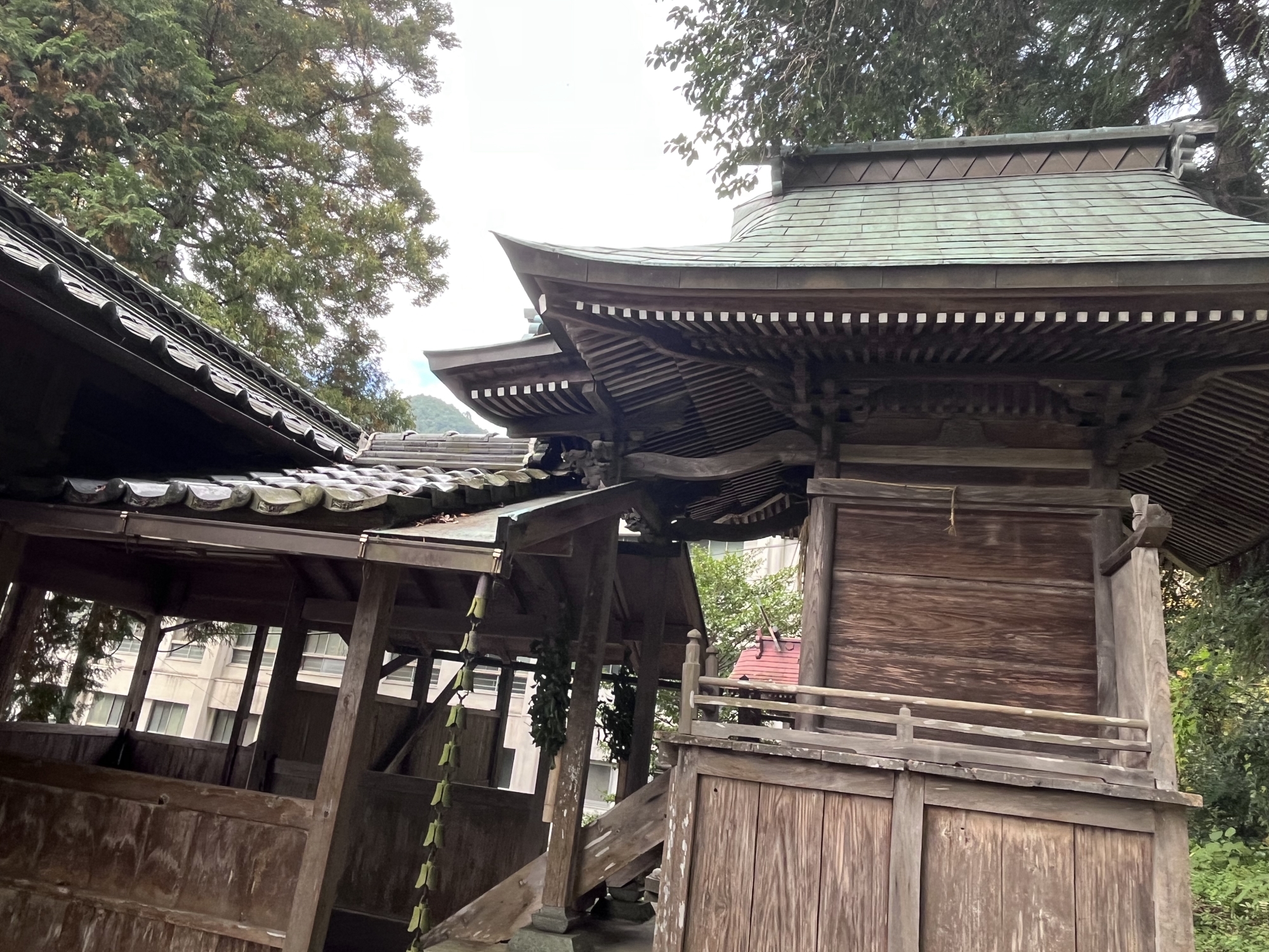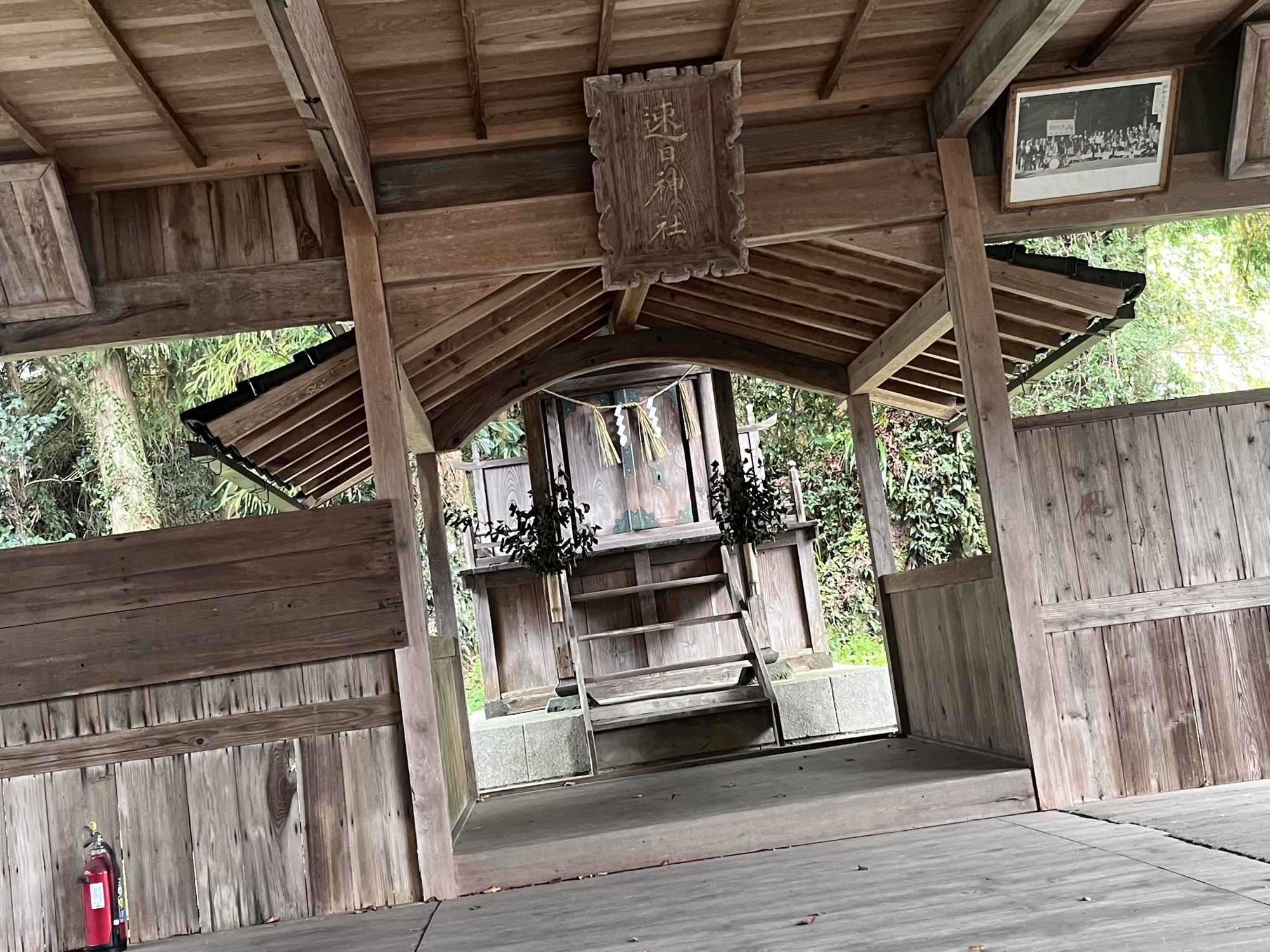 向こうに赤い鳥居.