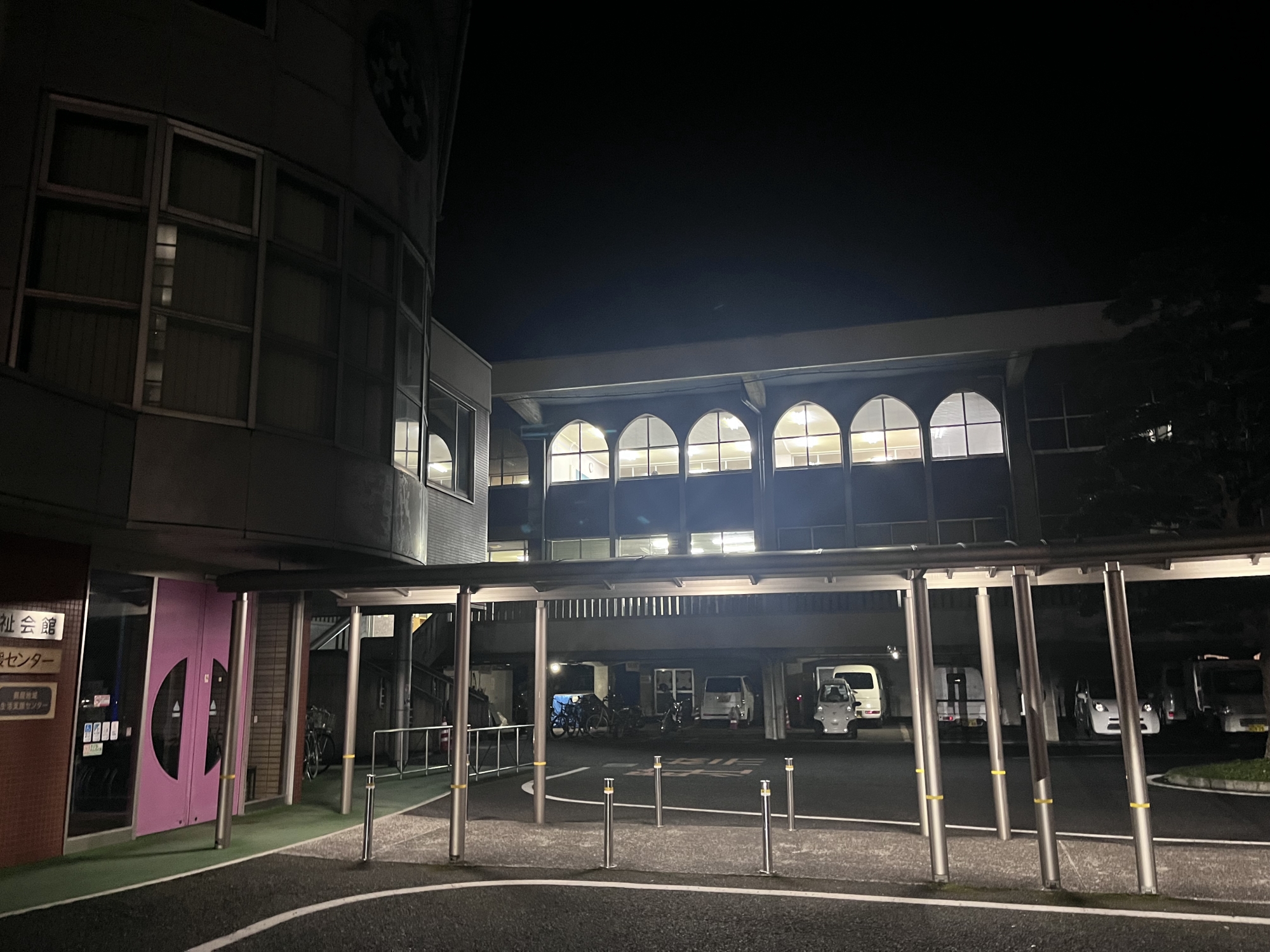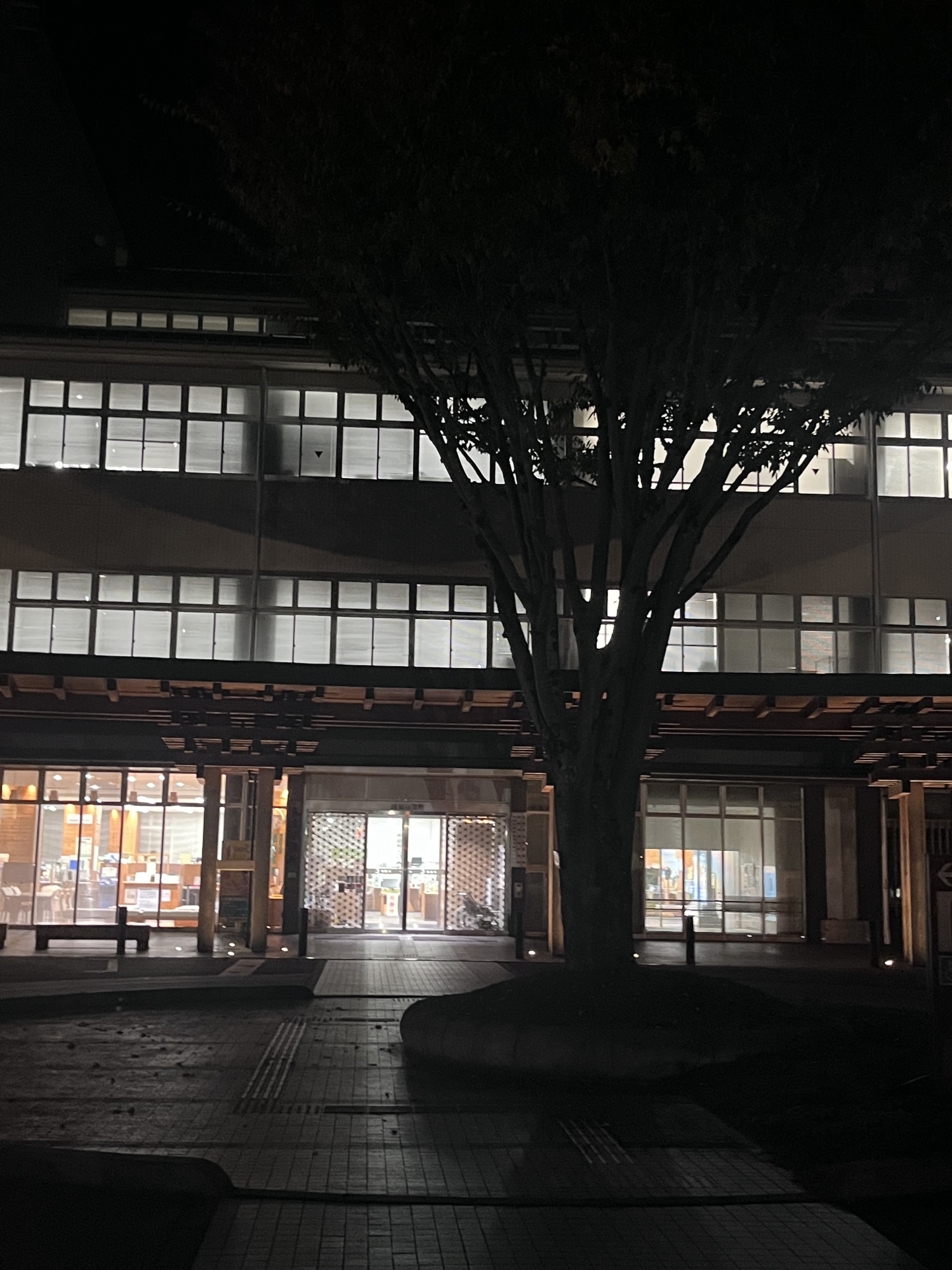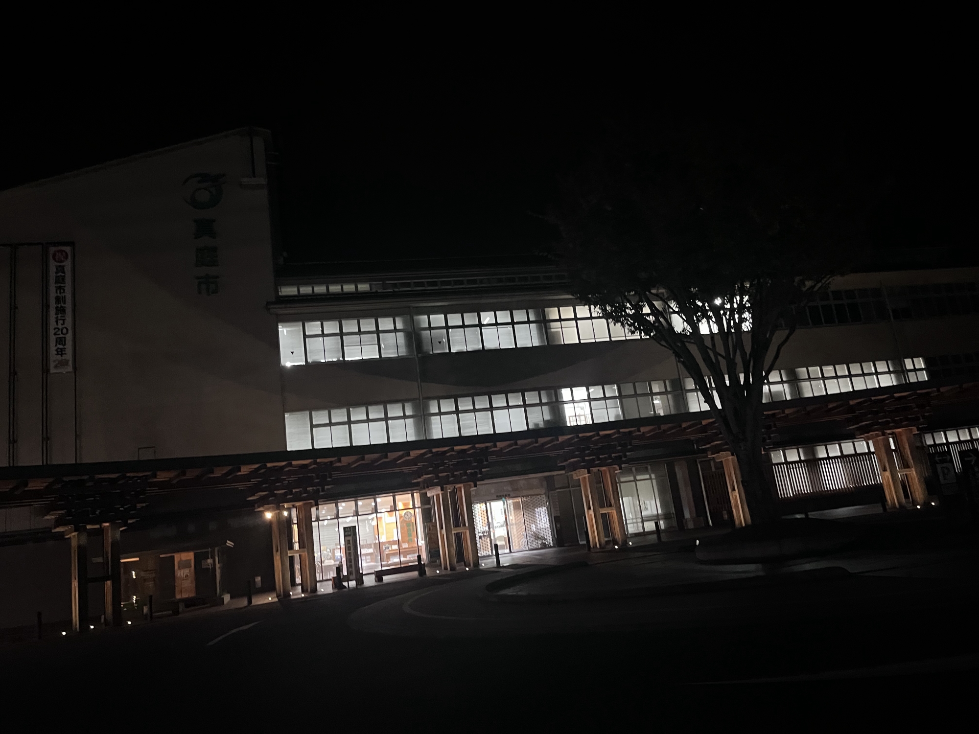 夜の真庭市役所へ.