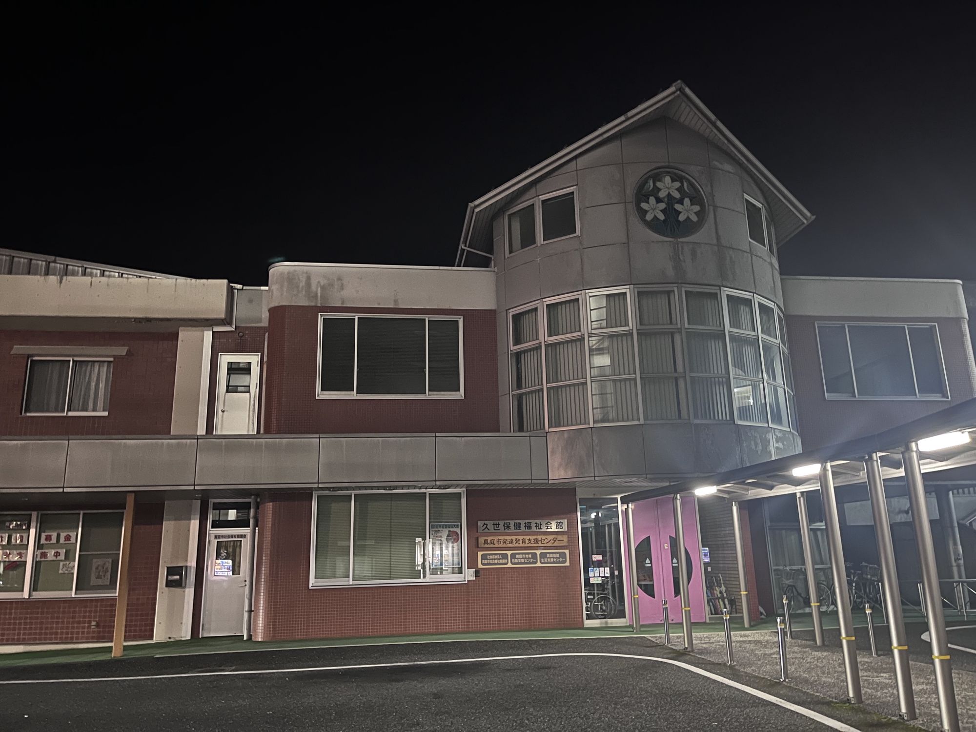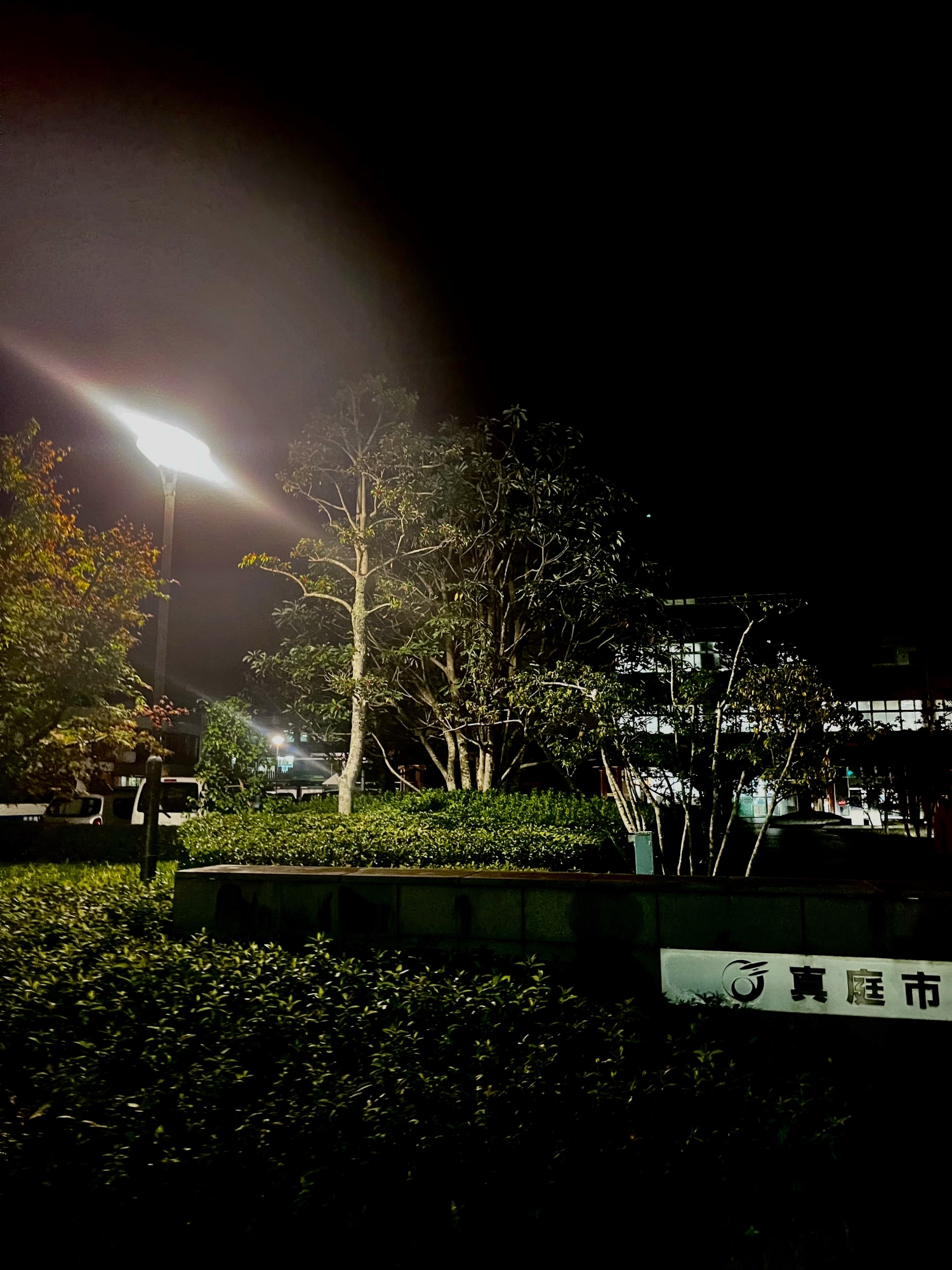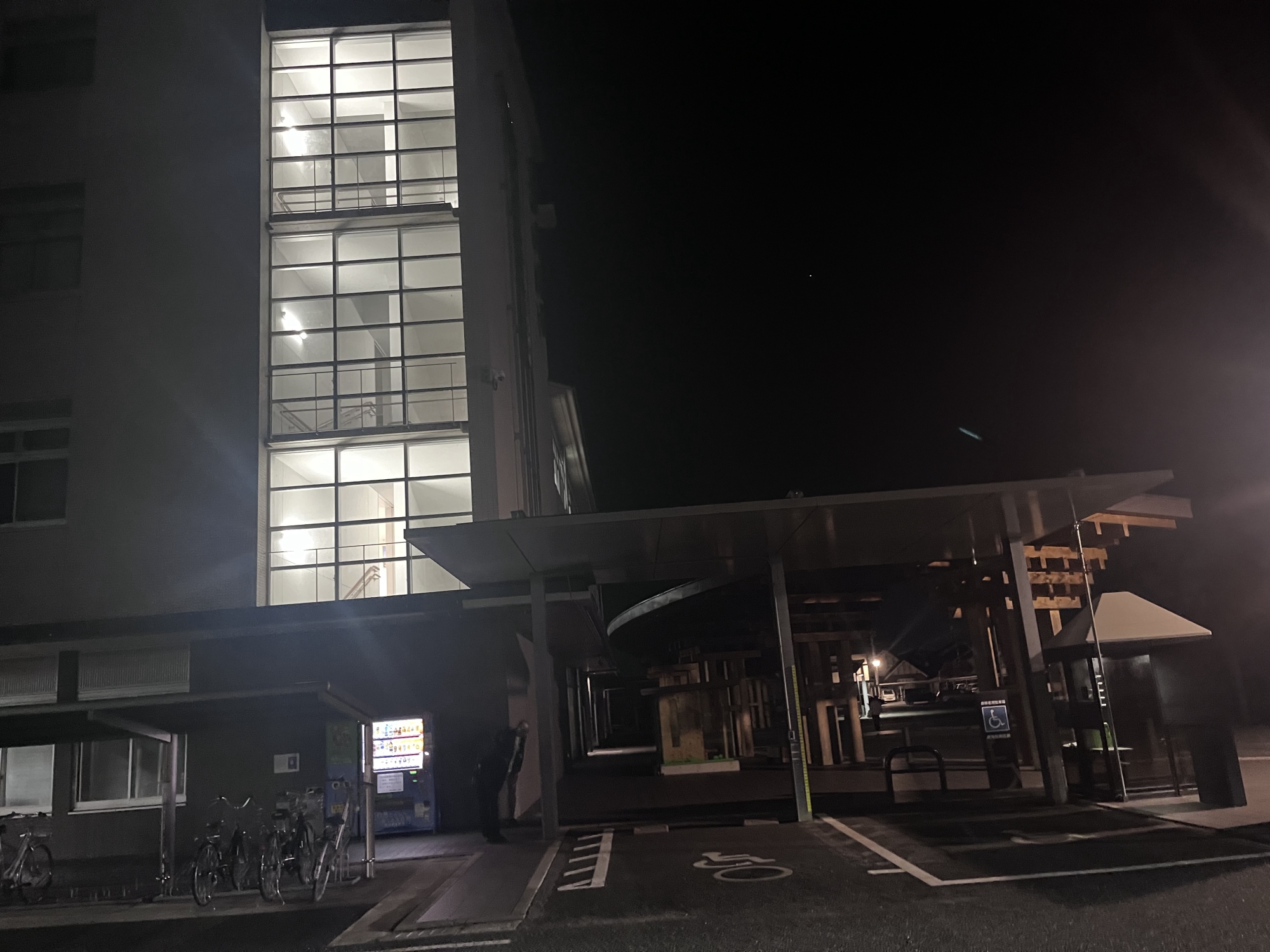 夜の真庭市役所へ.
