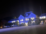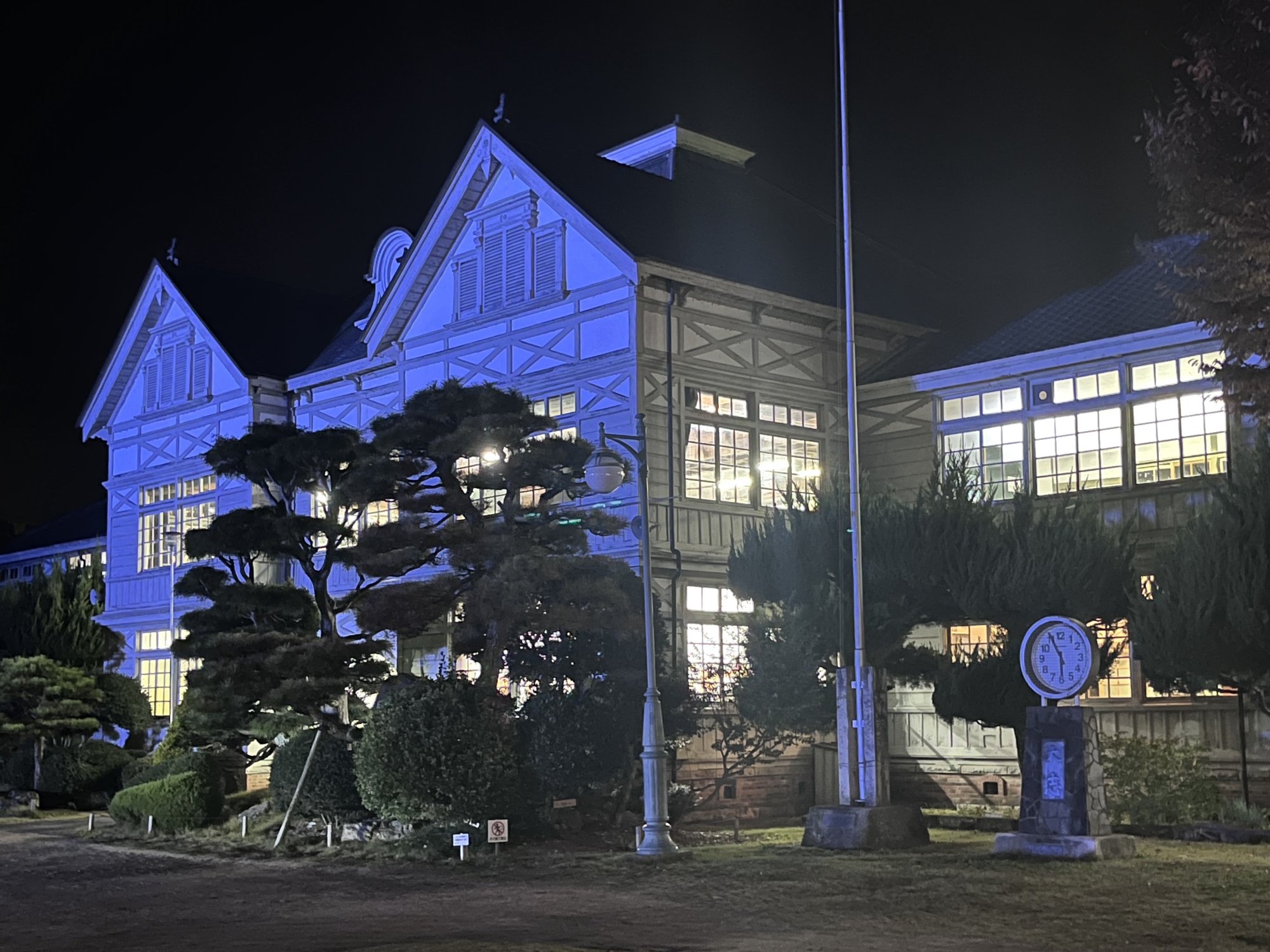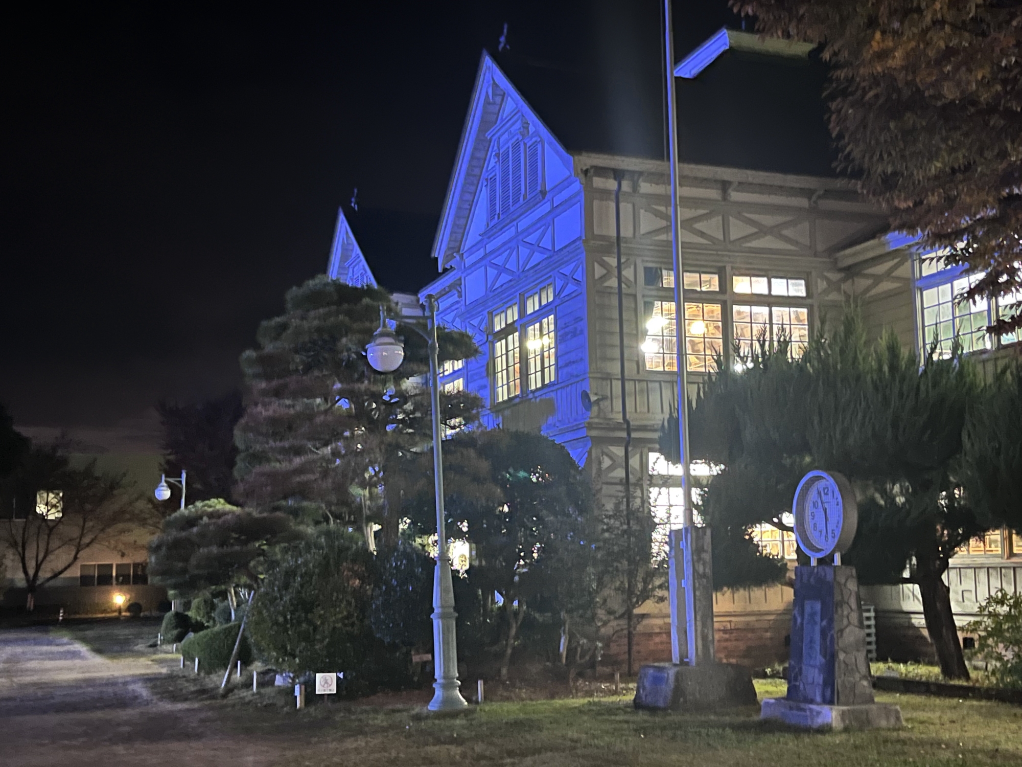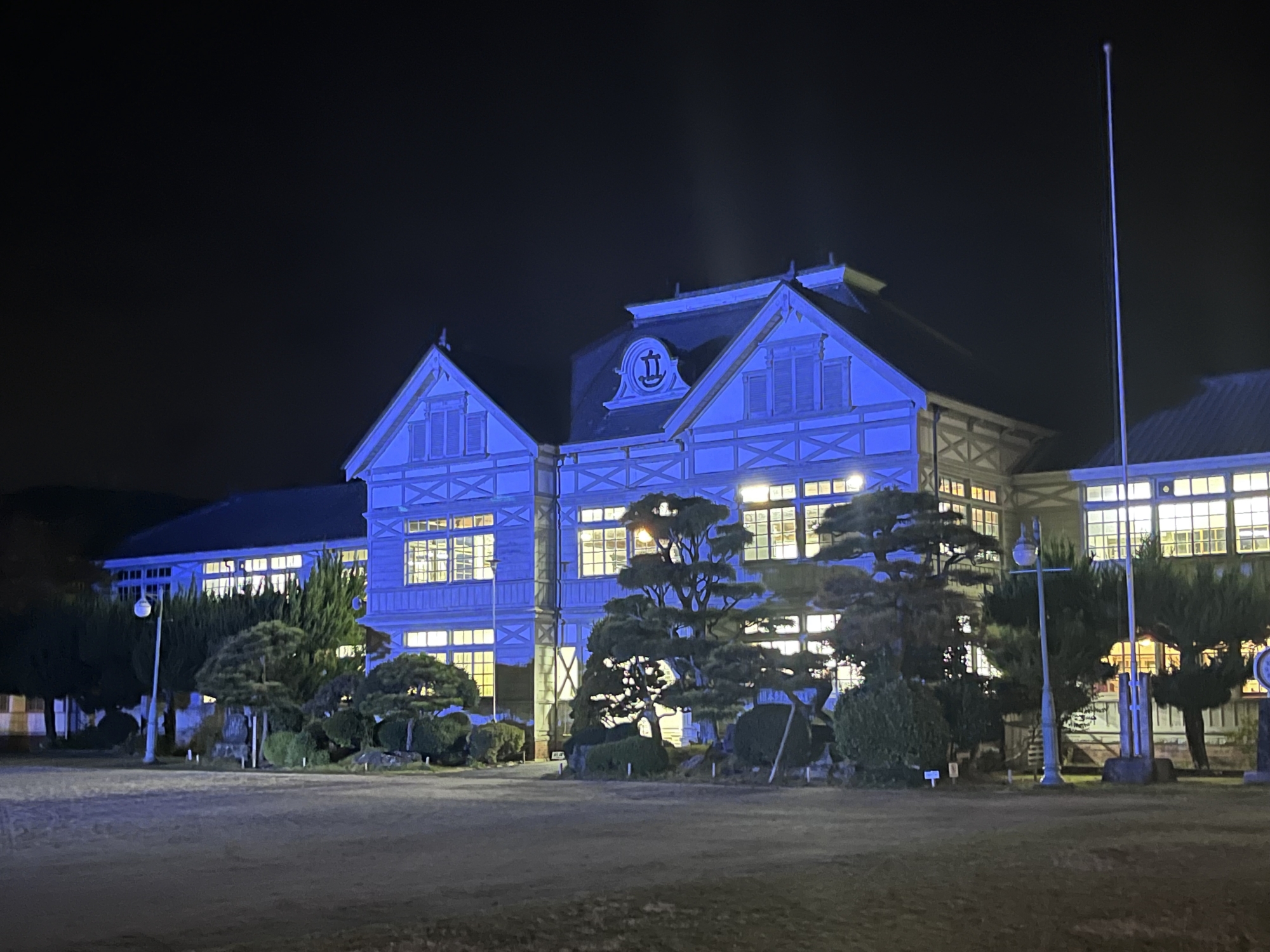 灯りが点いていて……でもこのこのブルーは国連の糖尿病の関連のブルーのライトアップ???