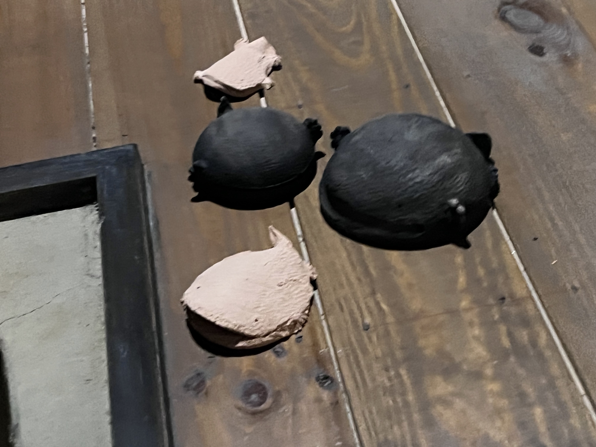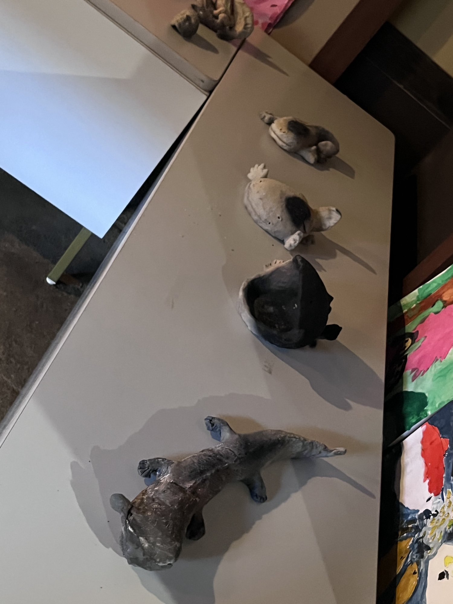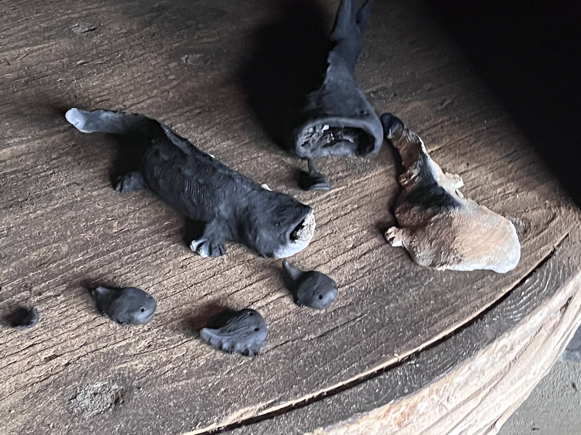 先月かしら? 村で行われた「粘土であそぼう」のサンショウウオの彫刻.