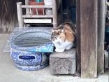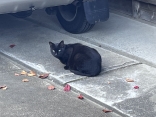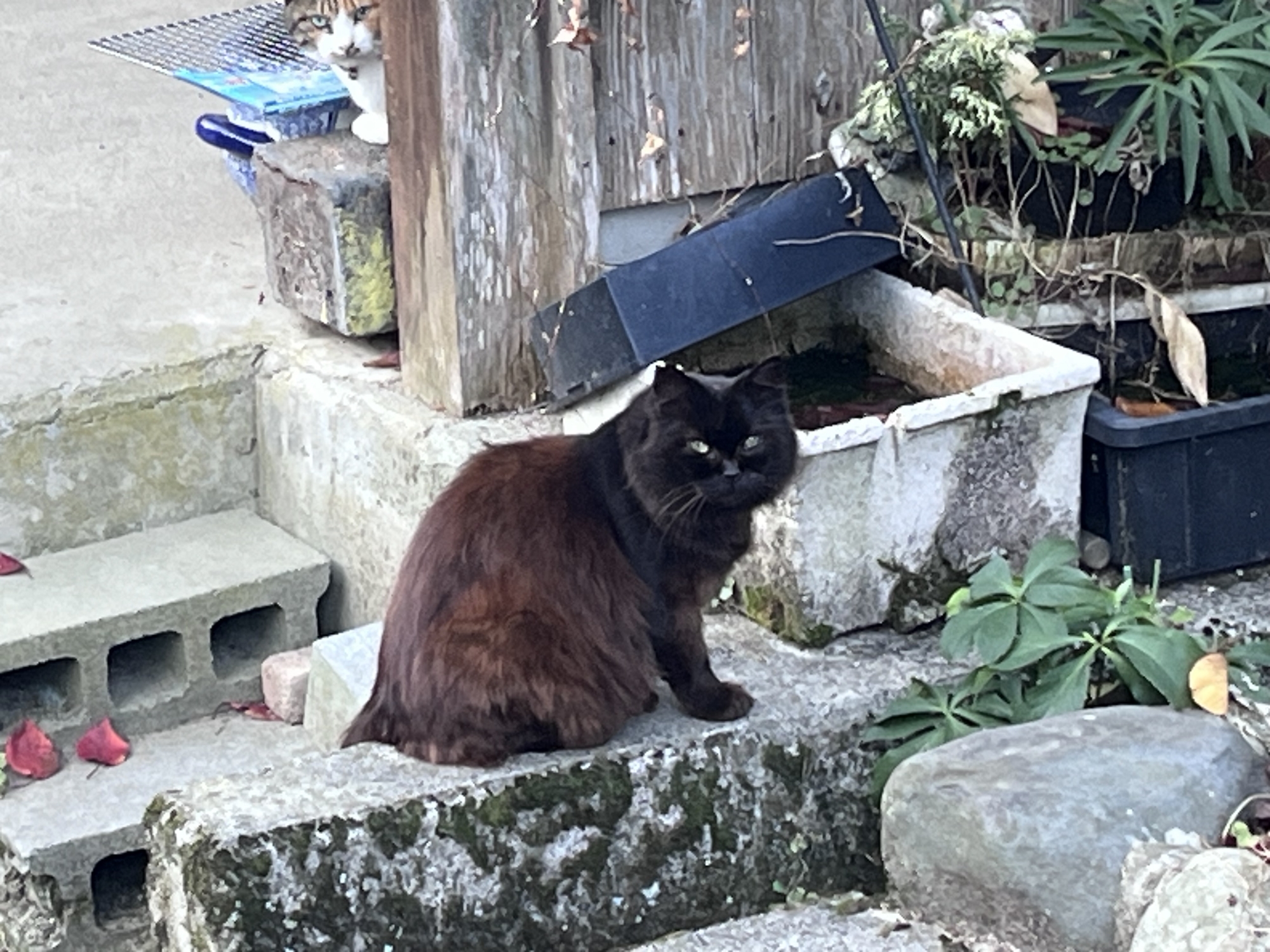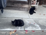 さて、桜並木の枯葉とほぼ枯木……ニャンコたち.