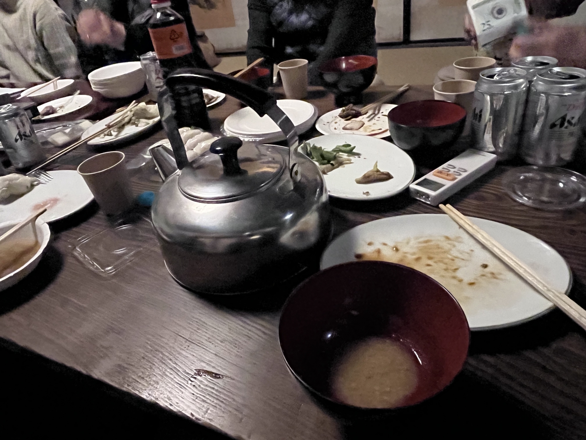 さて、夜は本陣佐藤邸へ……今日のメンバーが、鍋&刺身会……ちょっと遅かったので……刺身はほぼ無でしたけど.