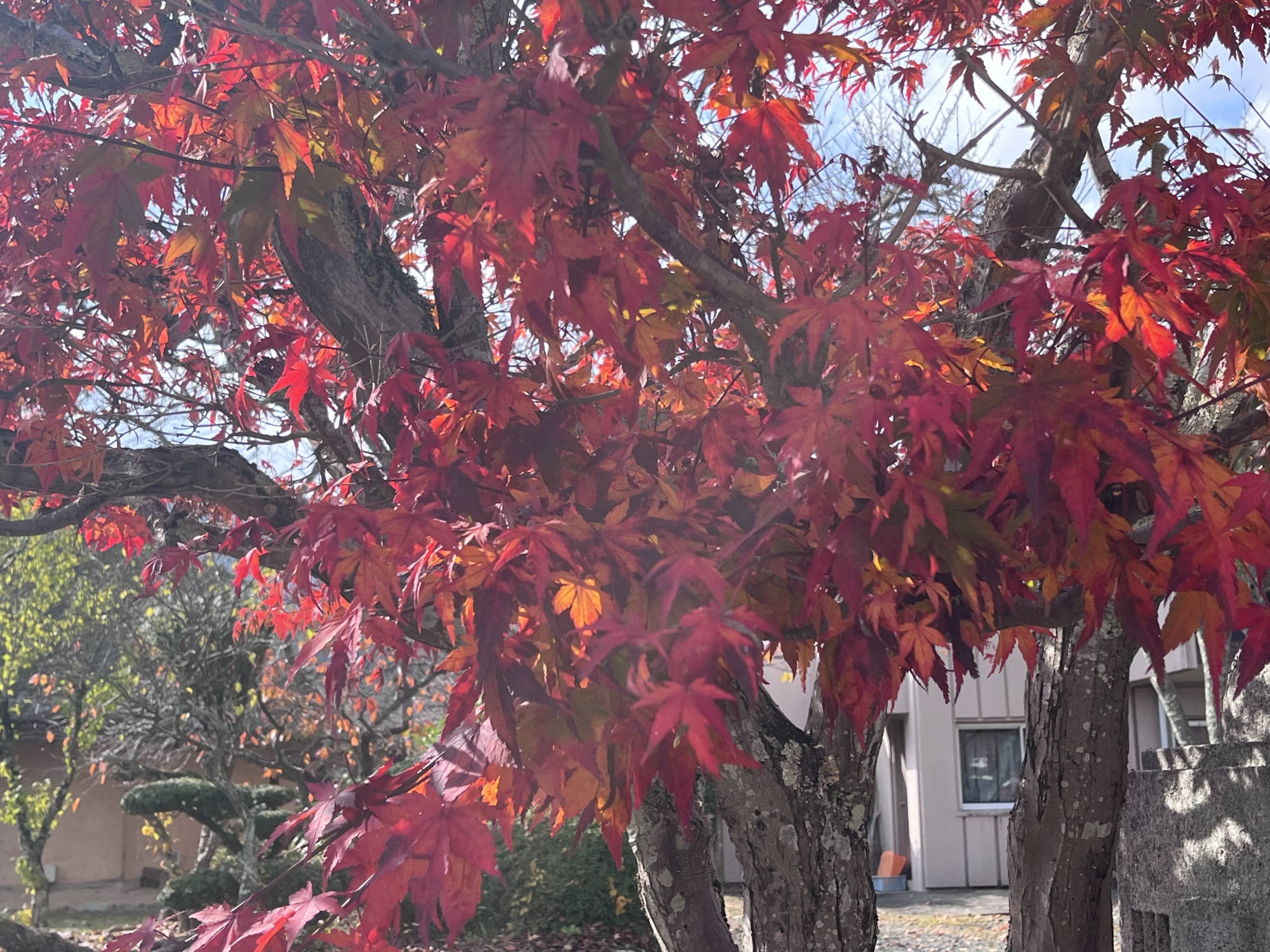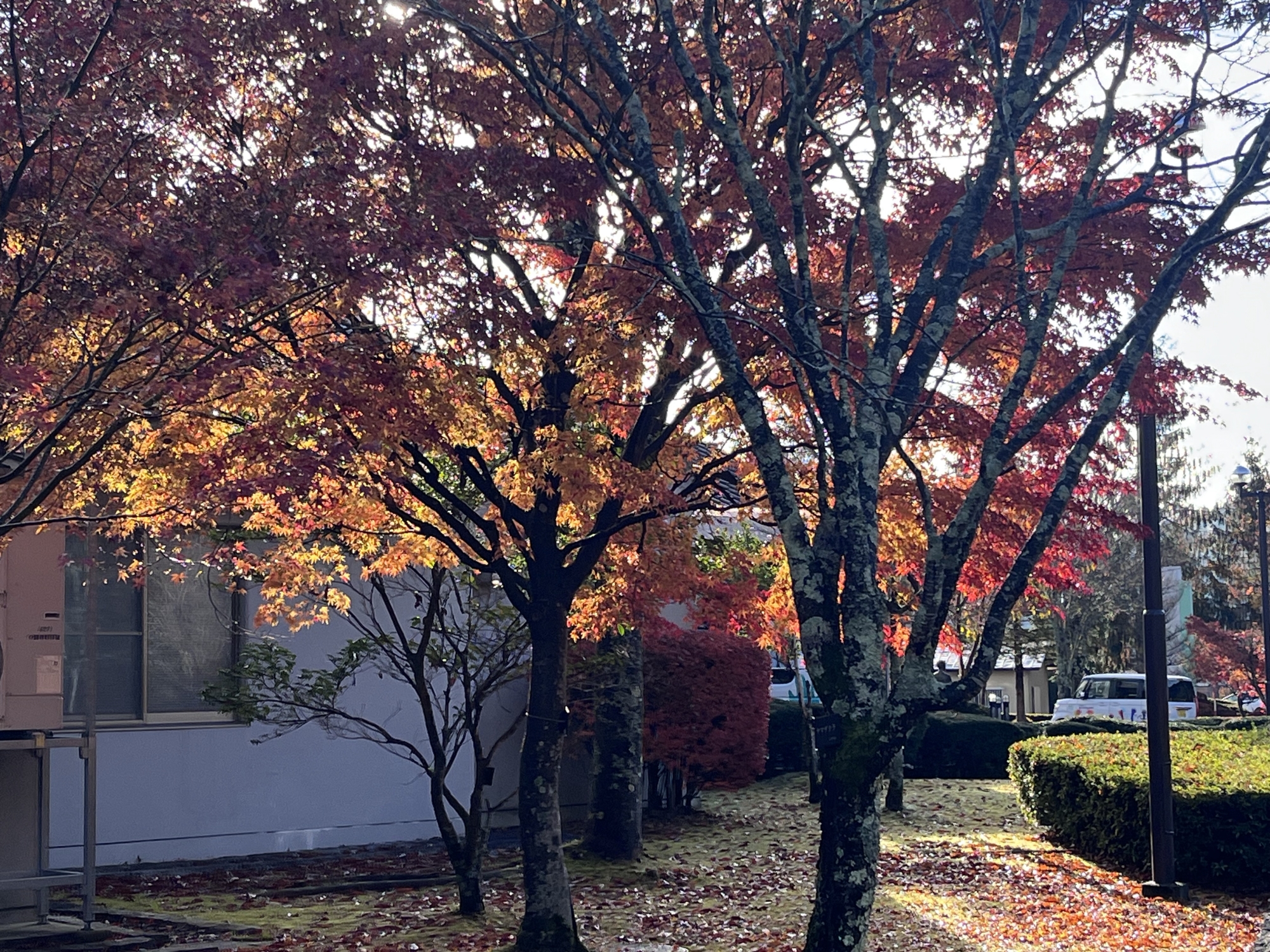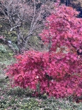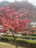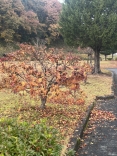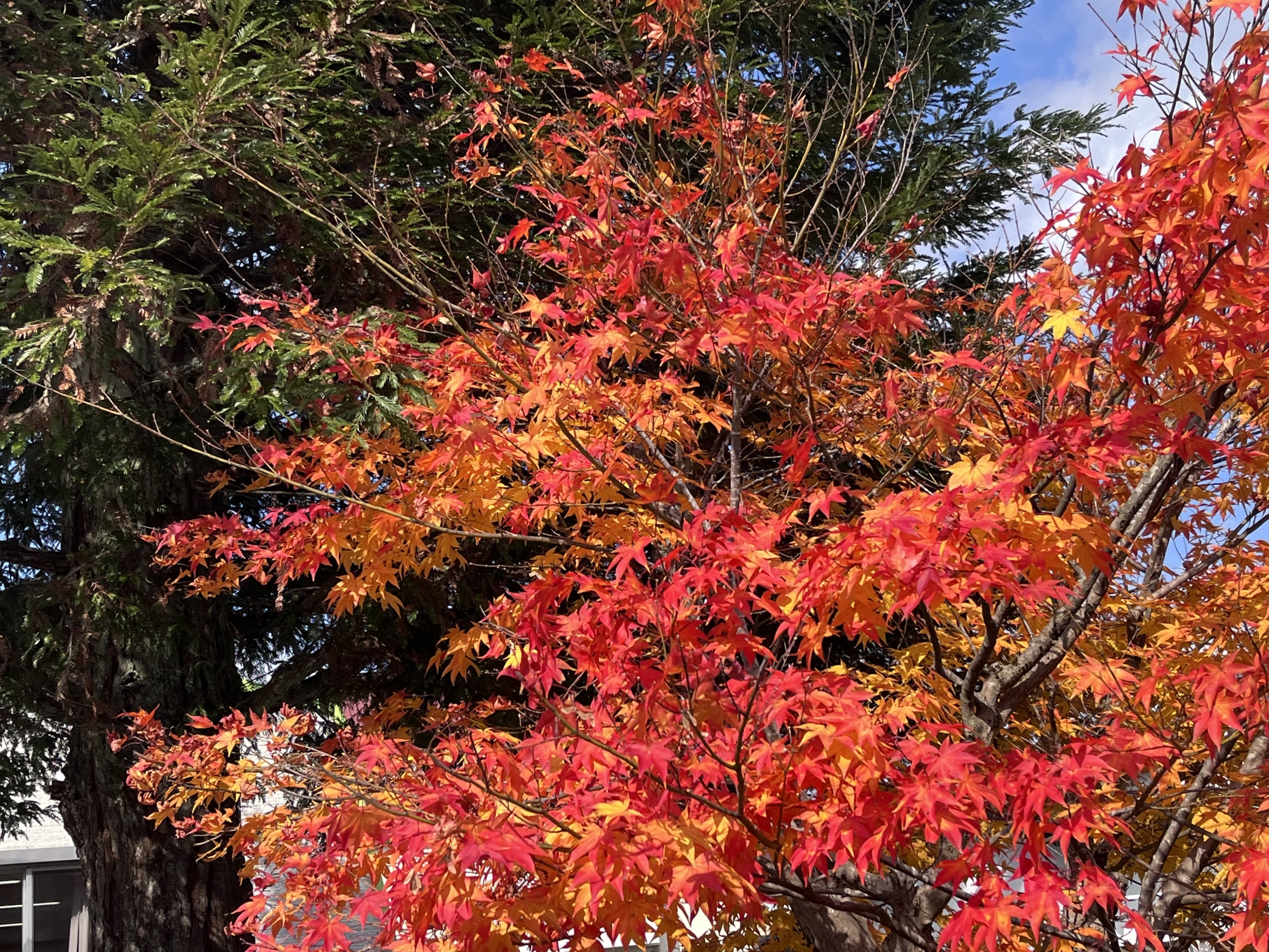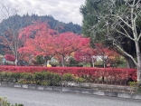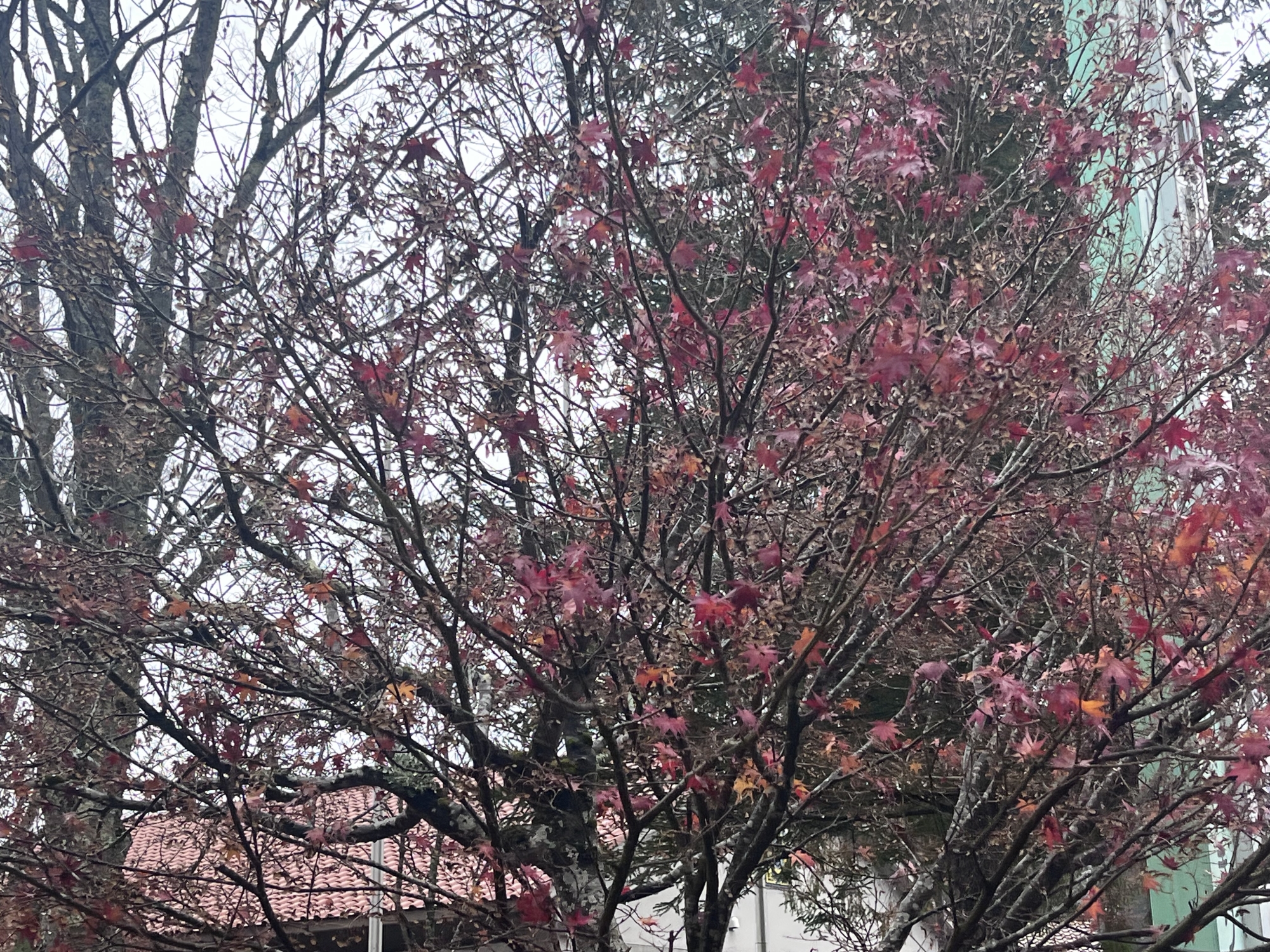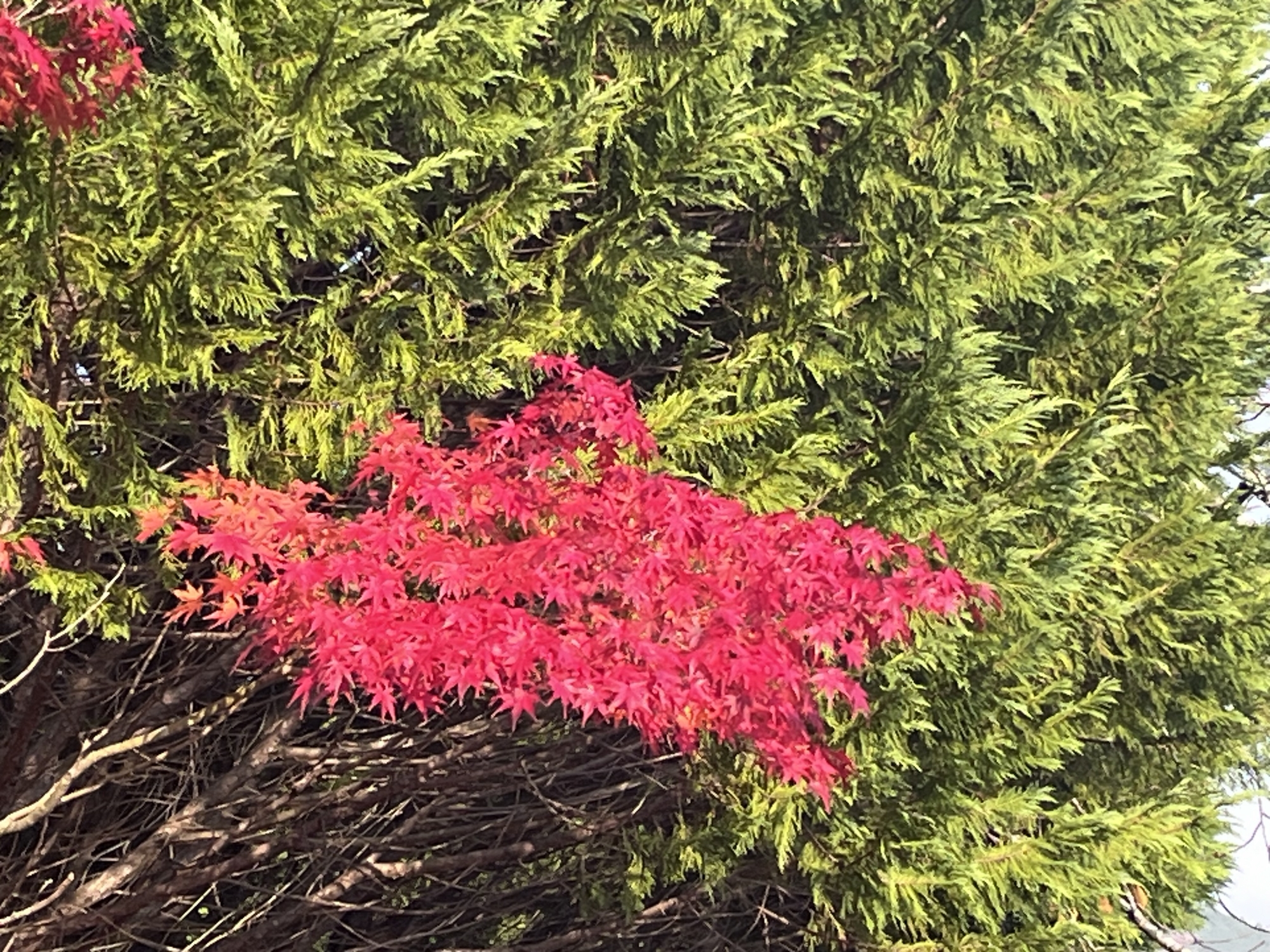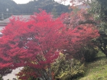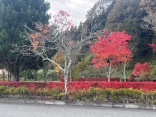 さて、昼から……診療所横もかなり散っていて……歴史民俗資料館の横で、ドウダンツツジと紅葉.