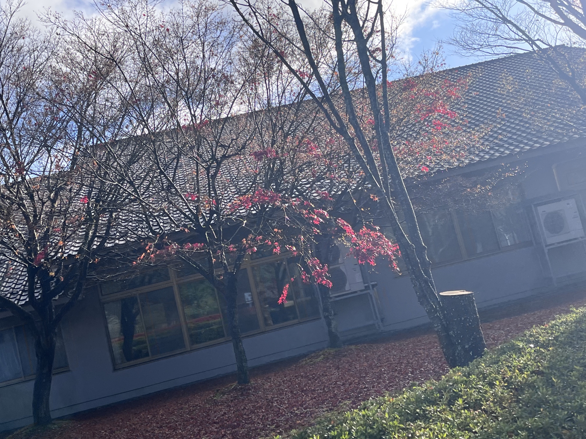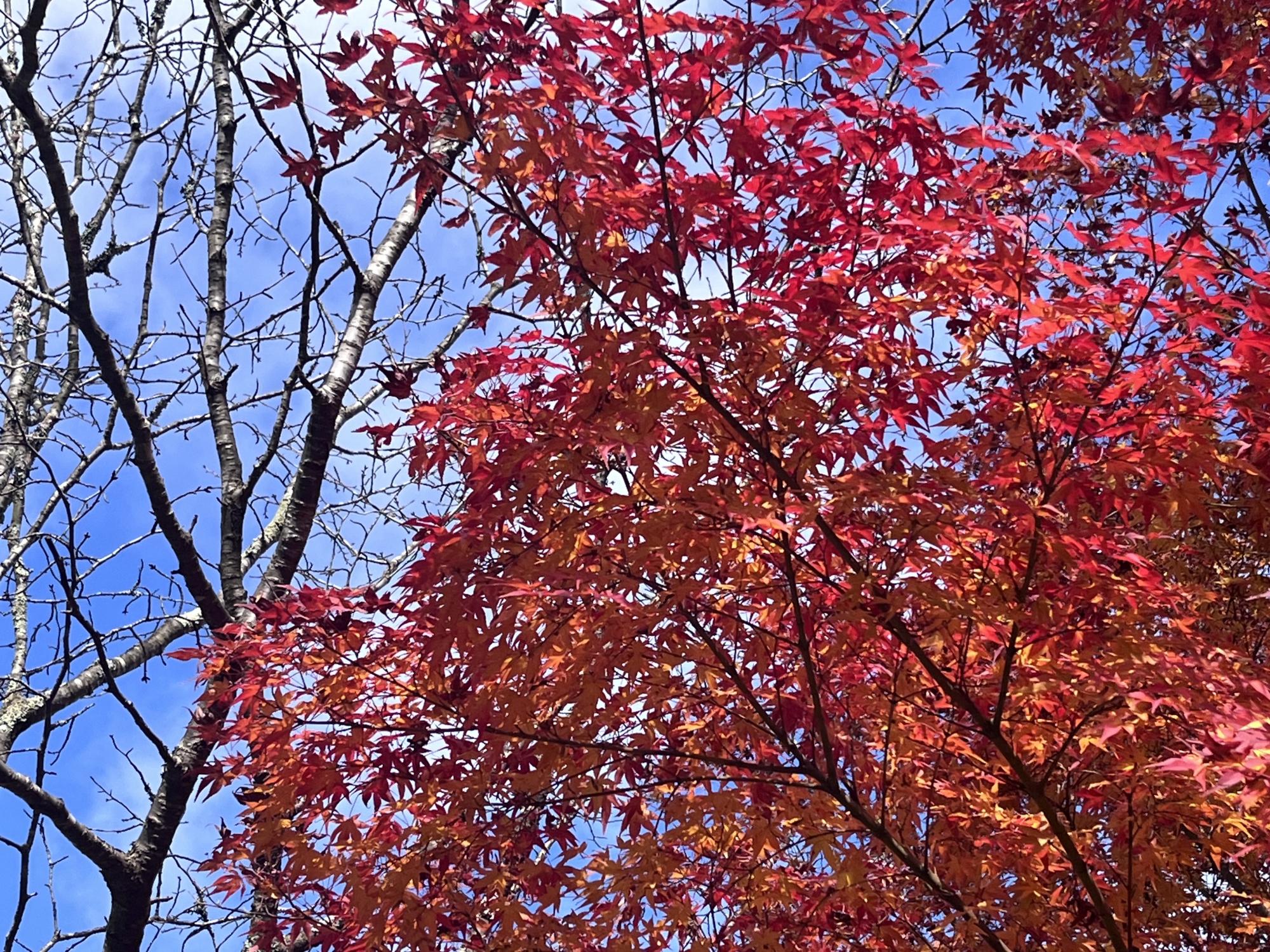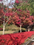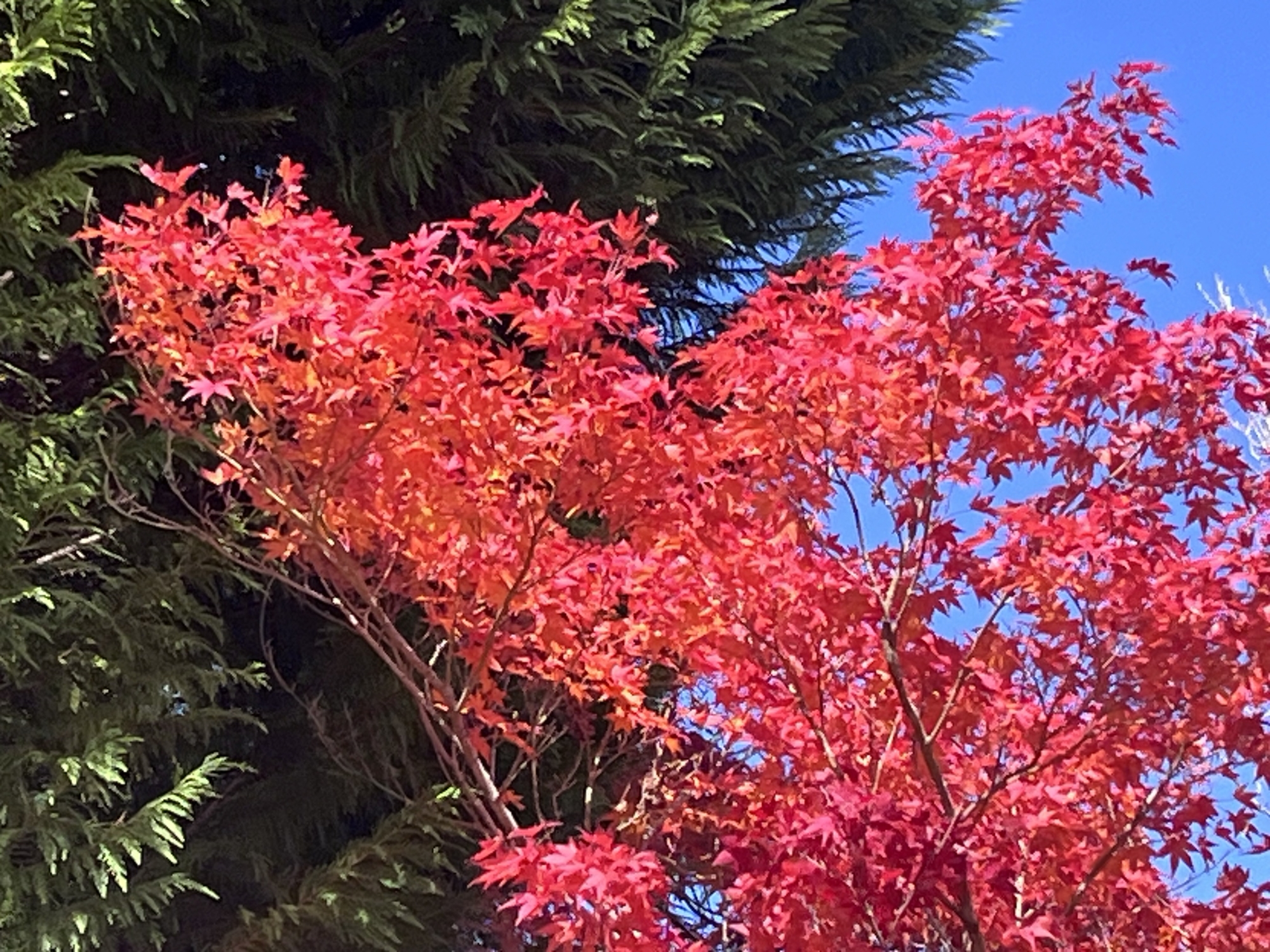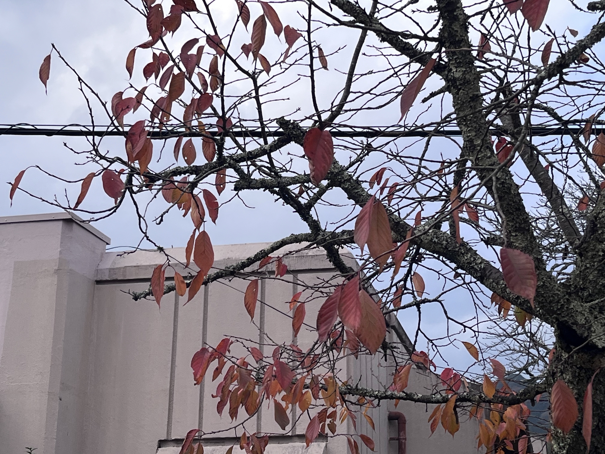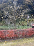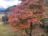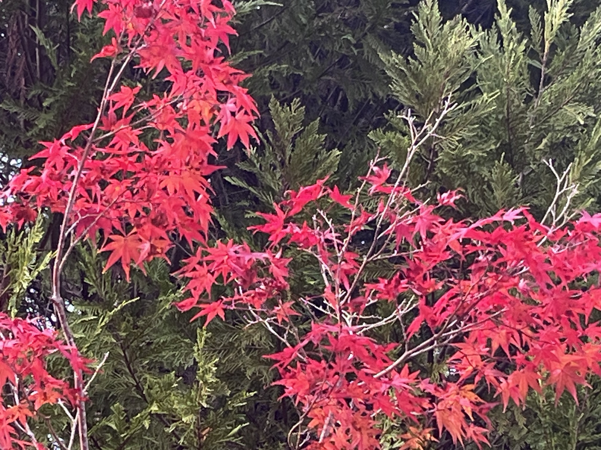 さて、昼から……診療所横もかなり散っていて……歴史民俗資料館の横で、ドウダンツツジと紅葉.