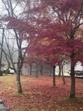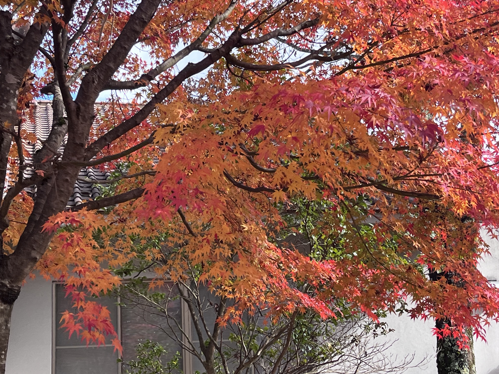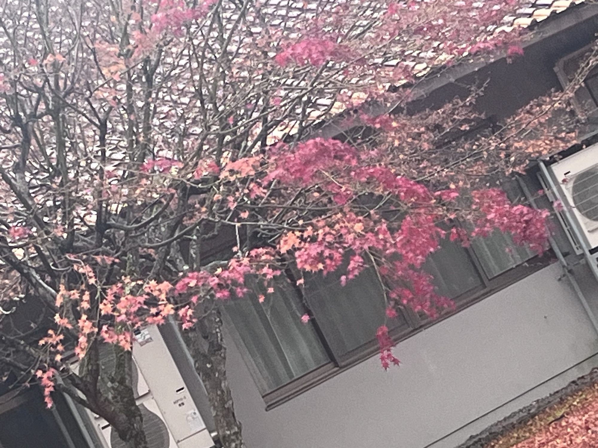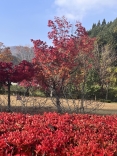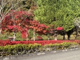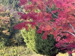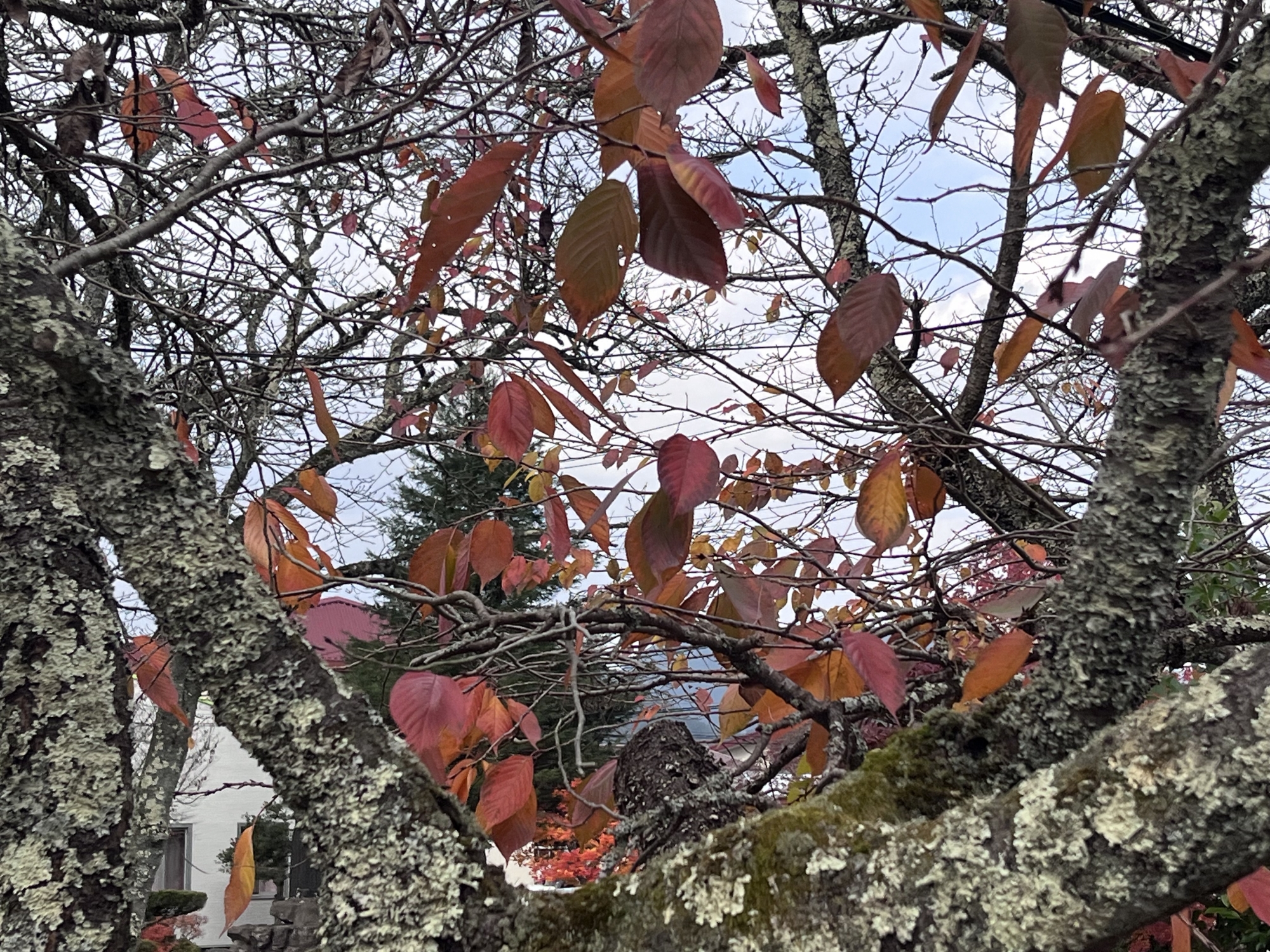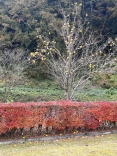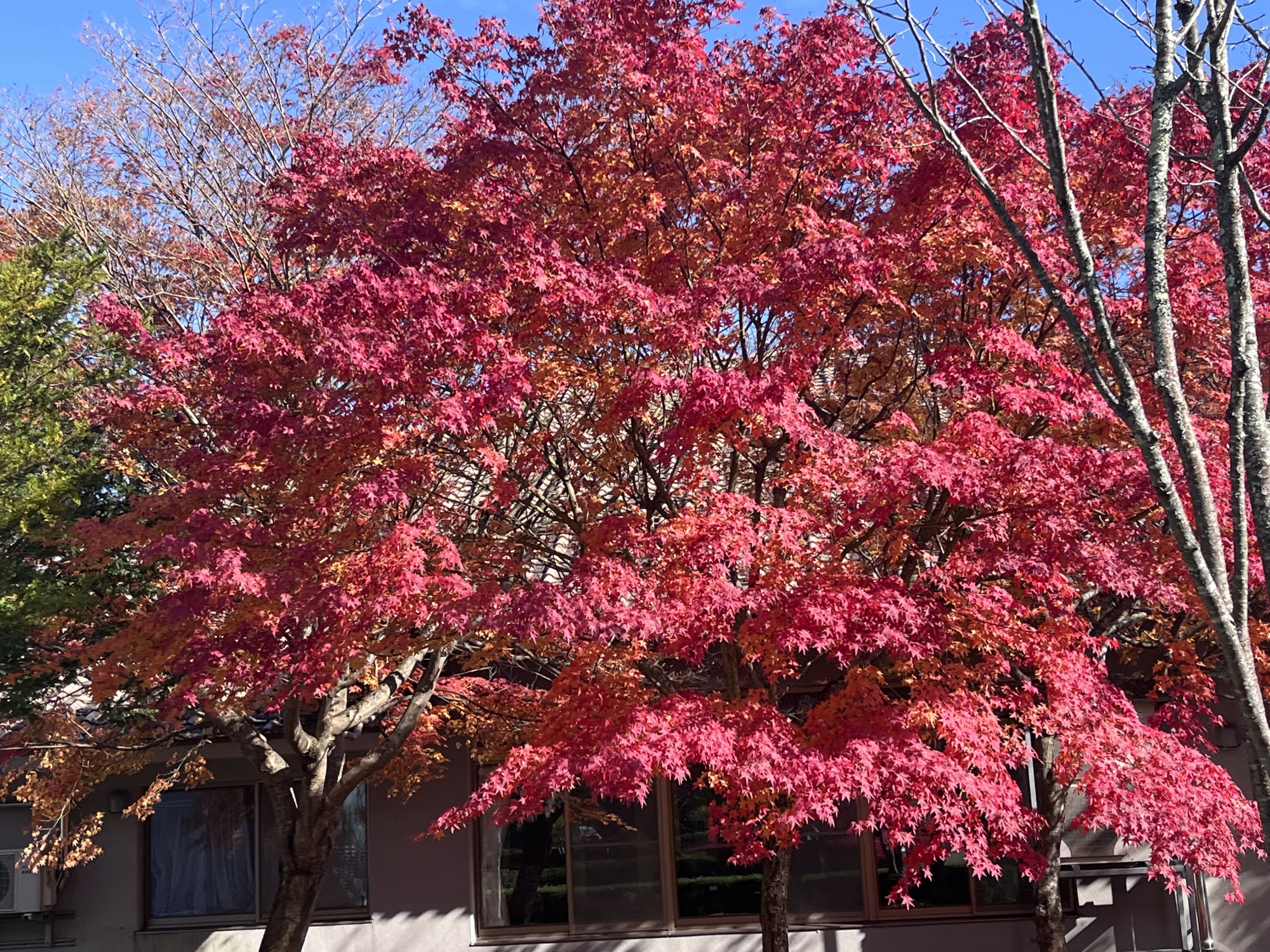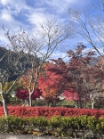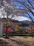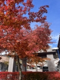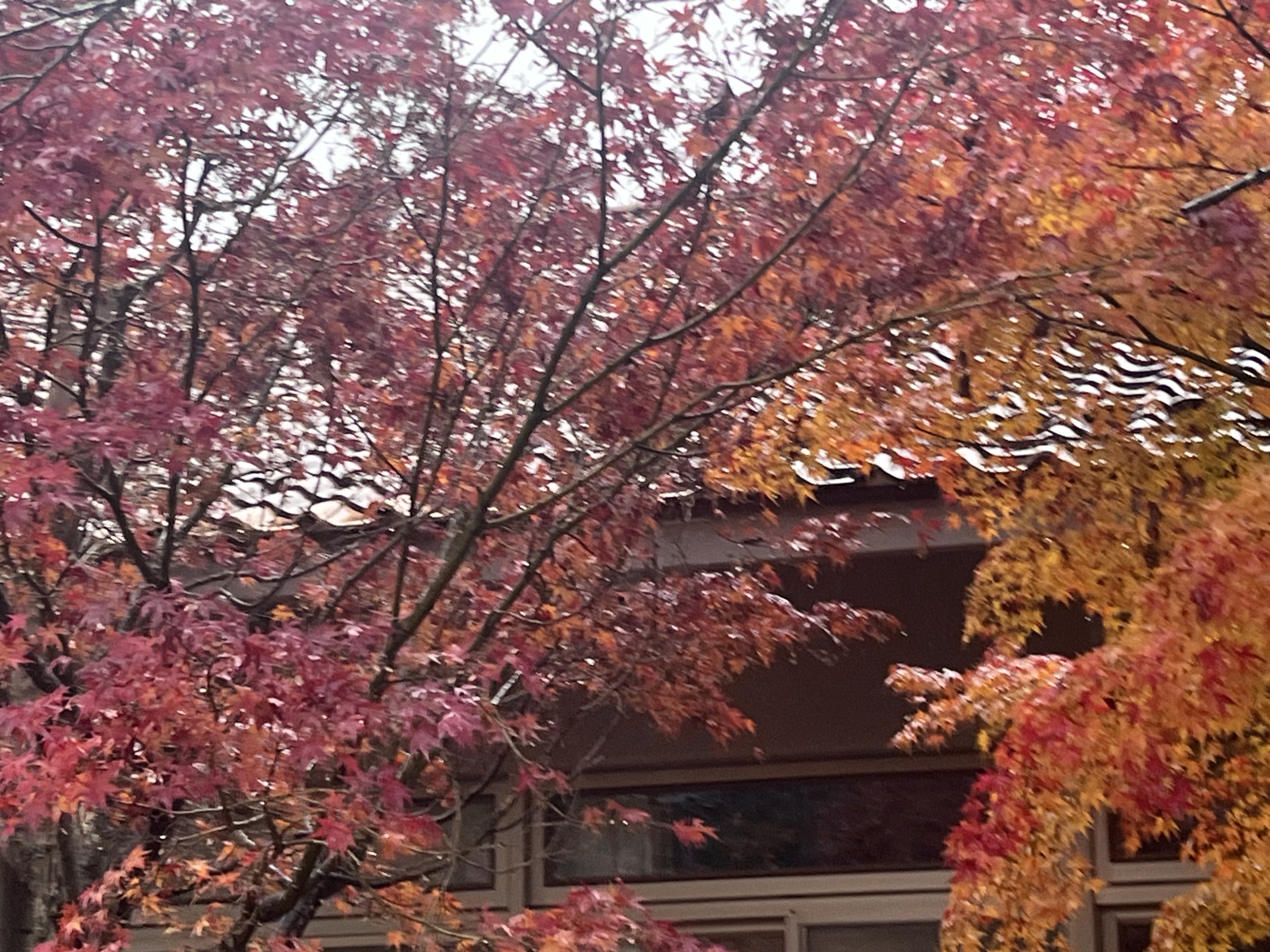 さて、昼から……診療所横もかなり散っていて……歴史民俗資料館の横で、ドウダンツツジと紅葉.