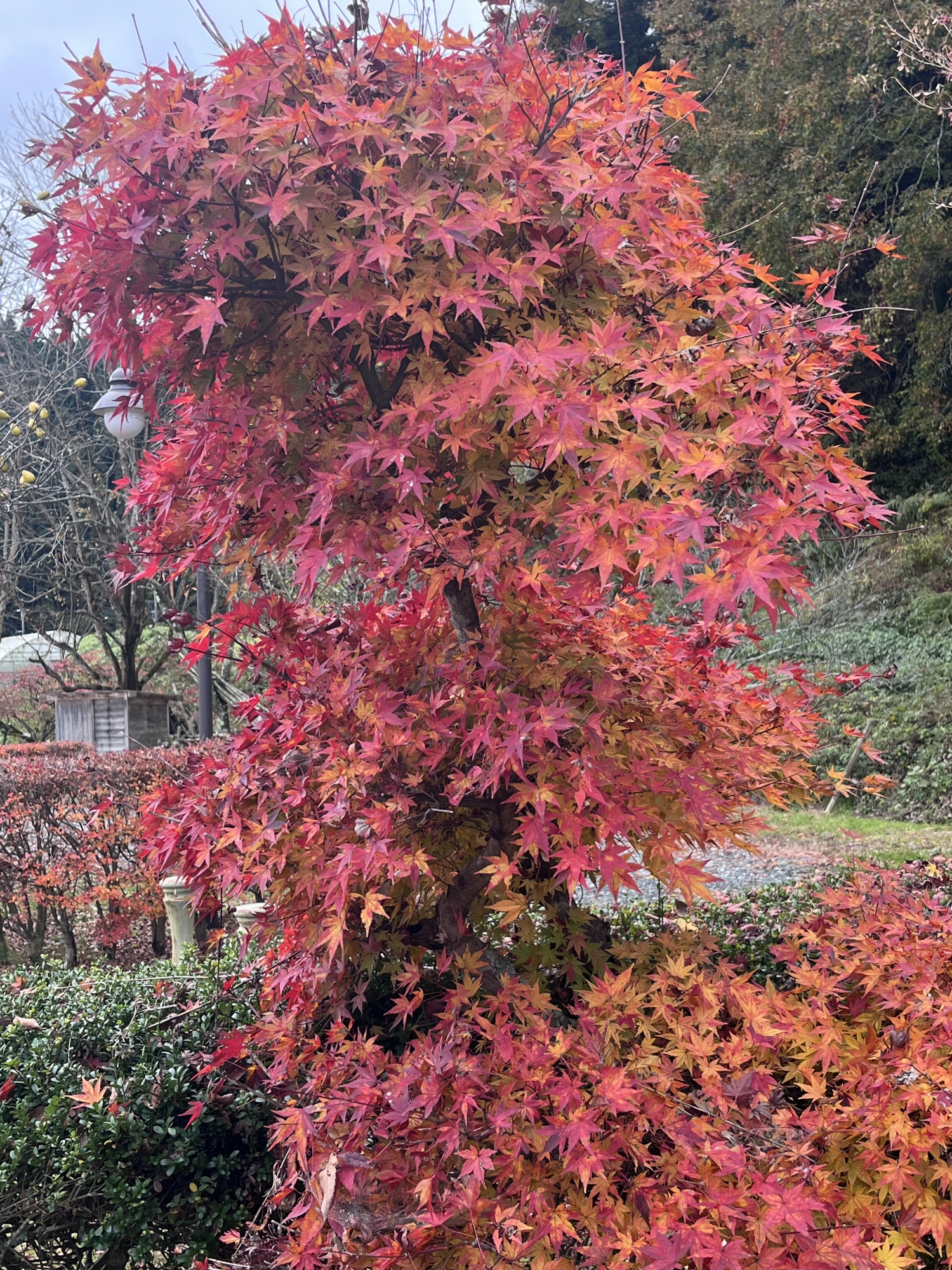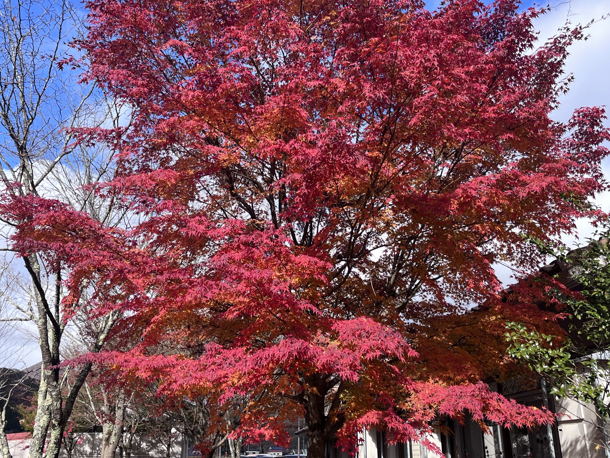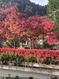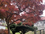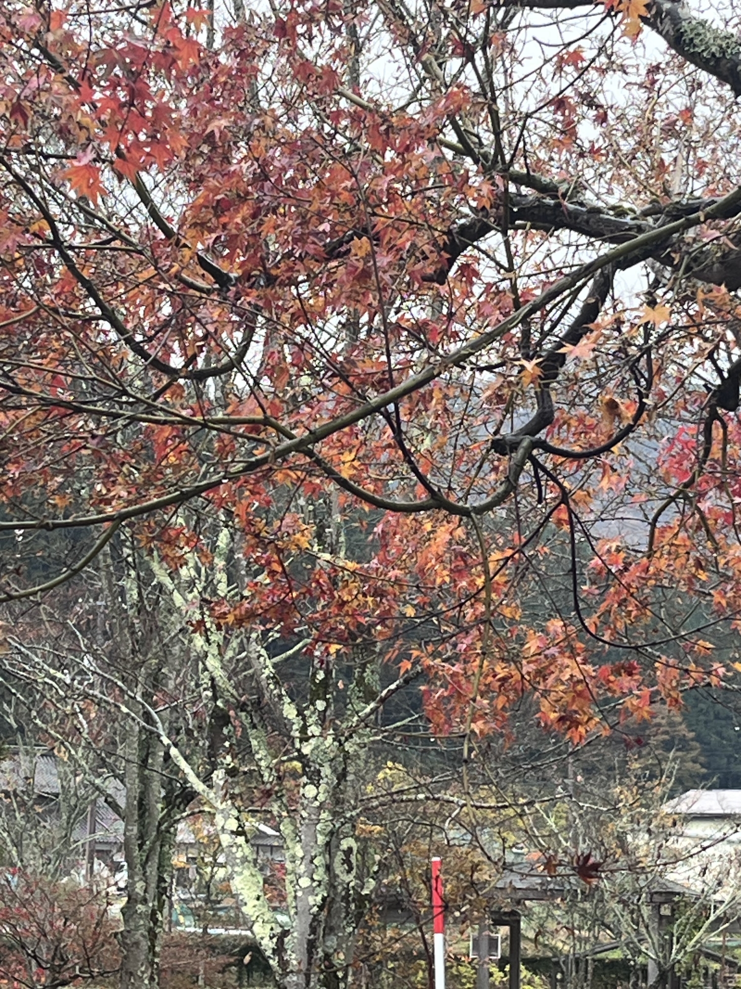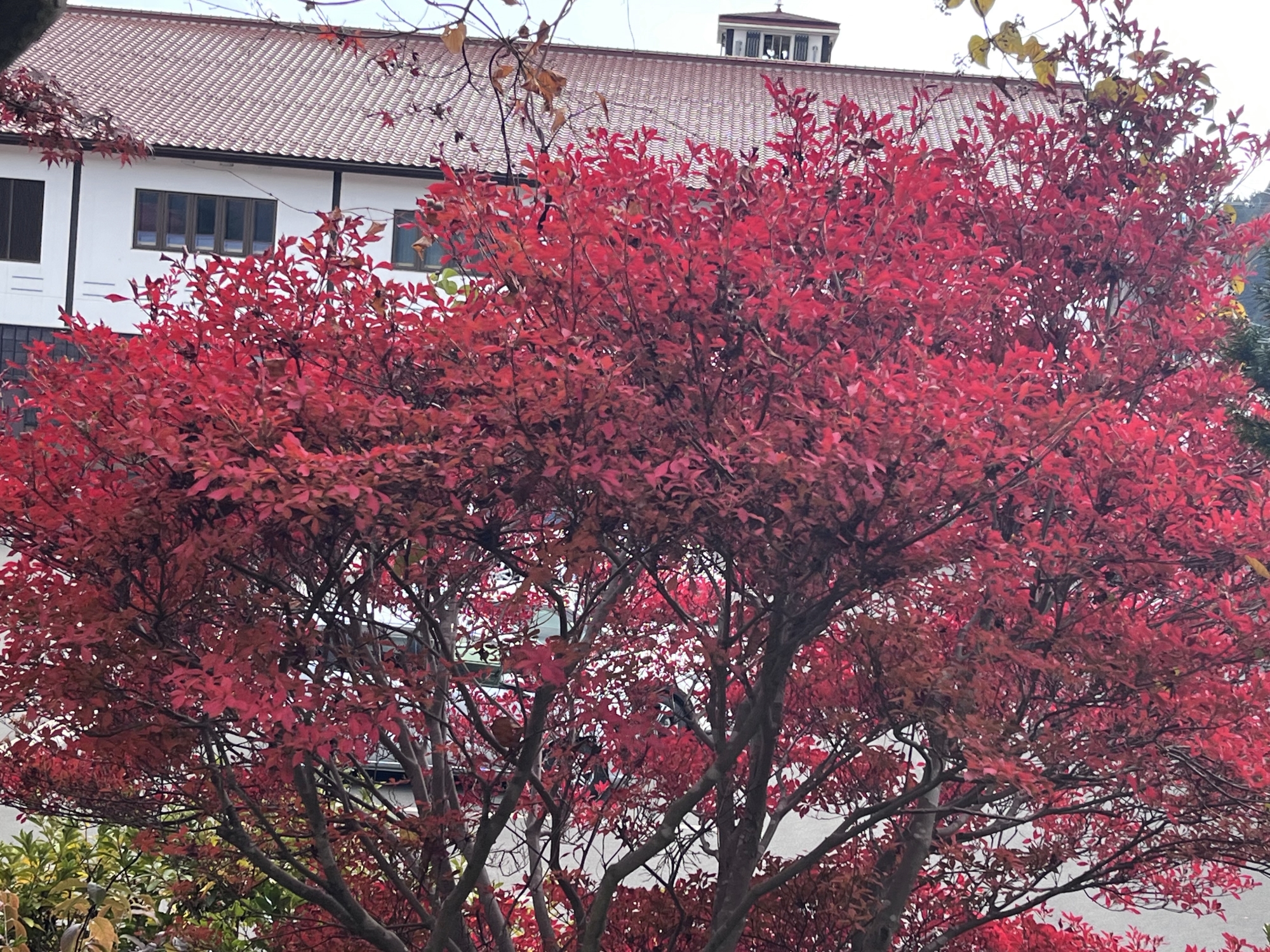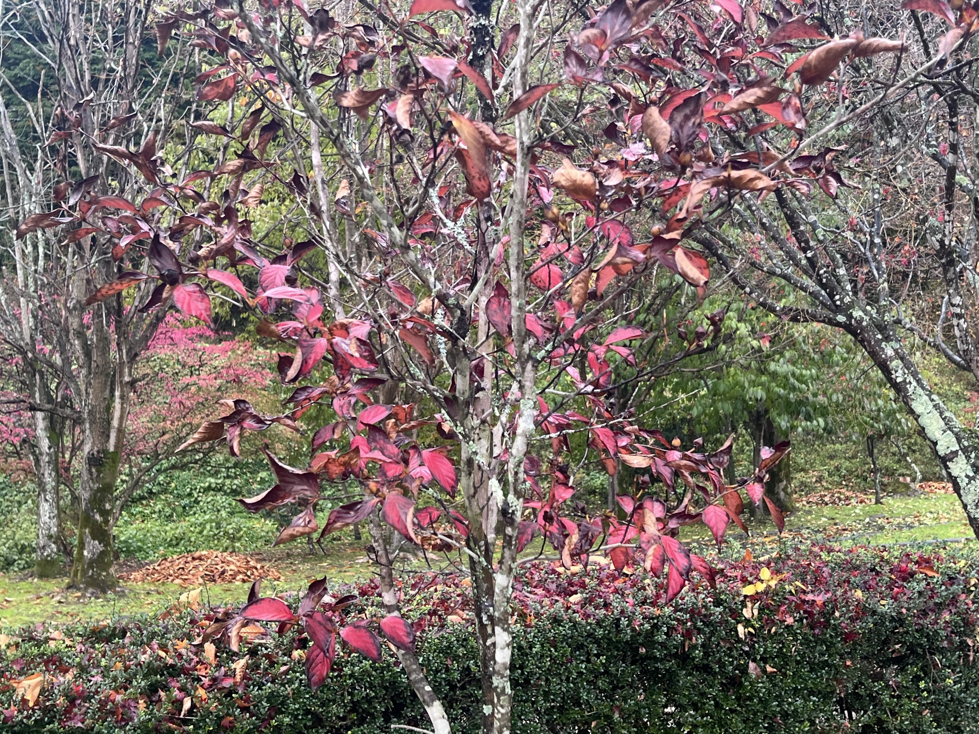 さて、昼から……診療所横もかなり散っていて……歴史民俗資料館の横で、ドウダンツツジと紅葉.