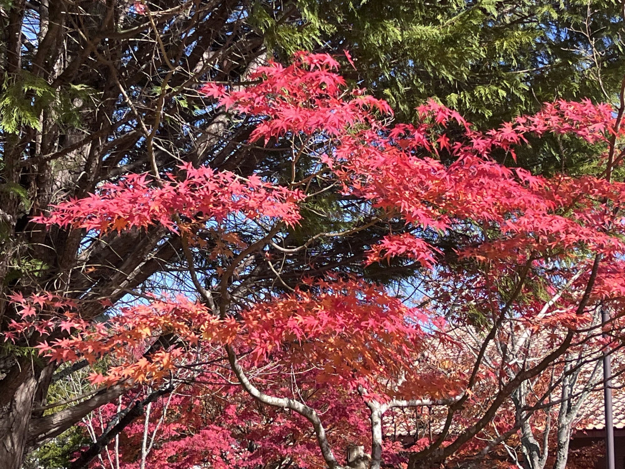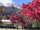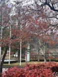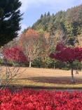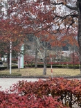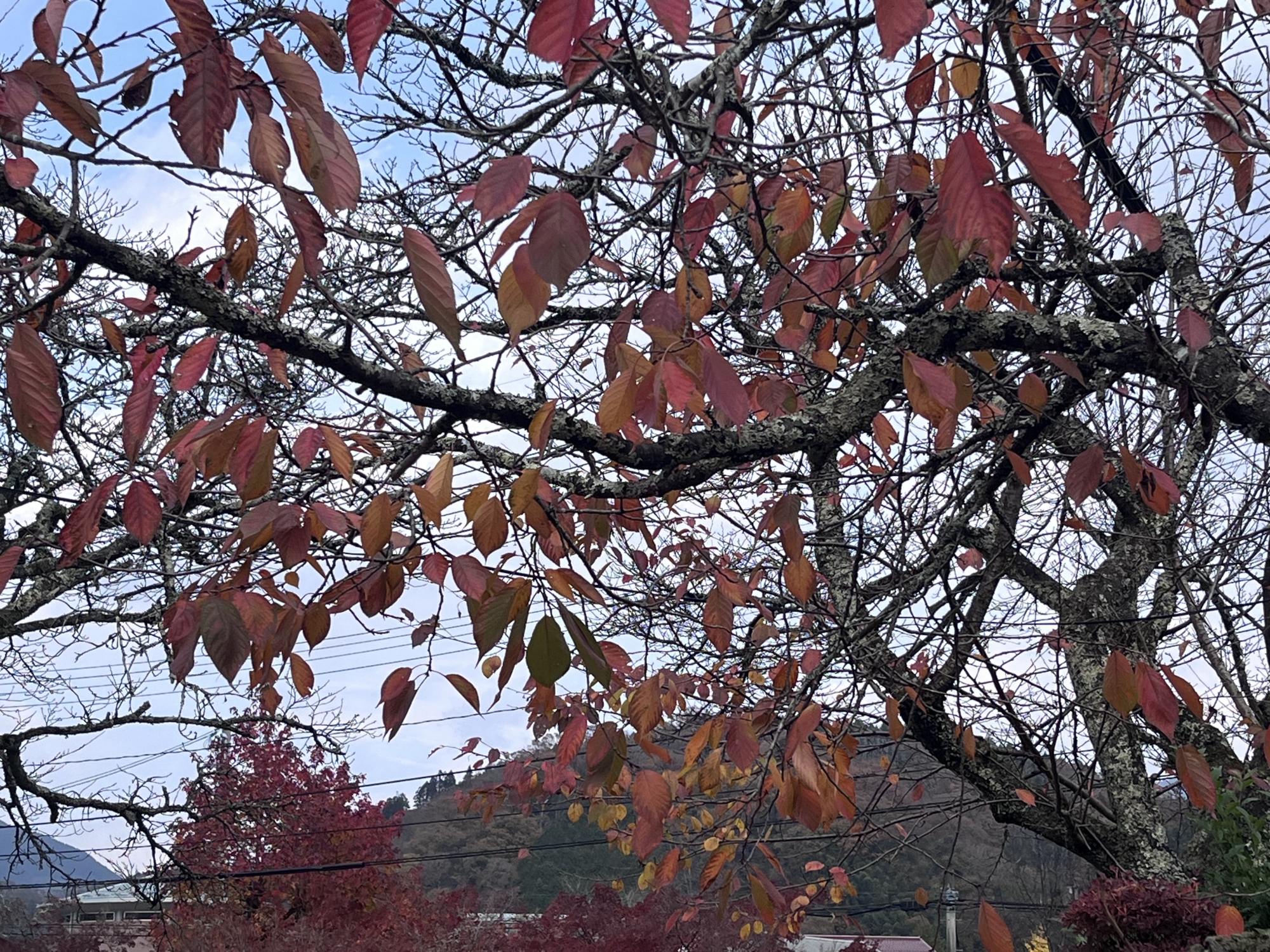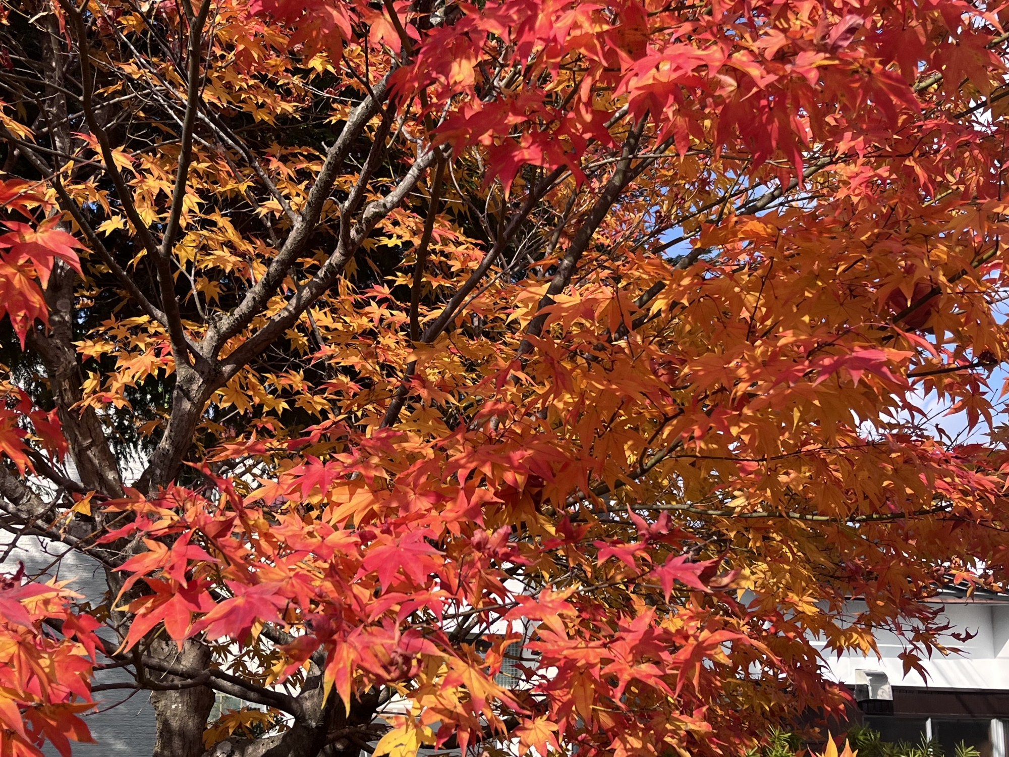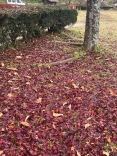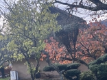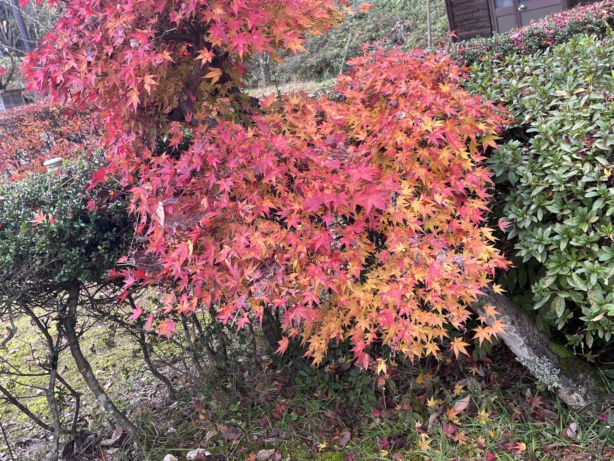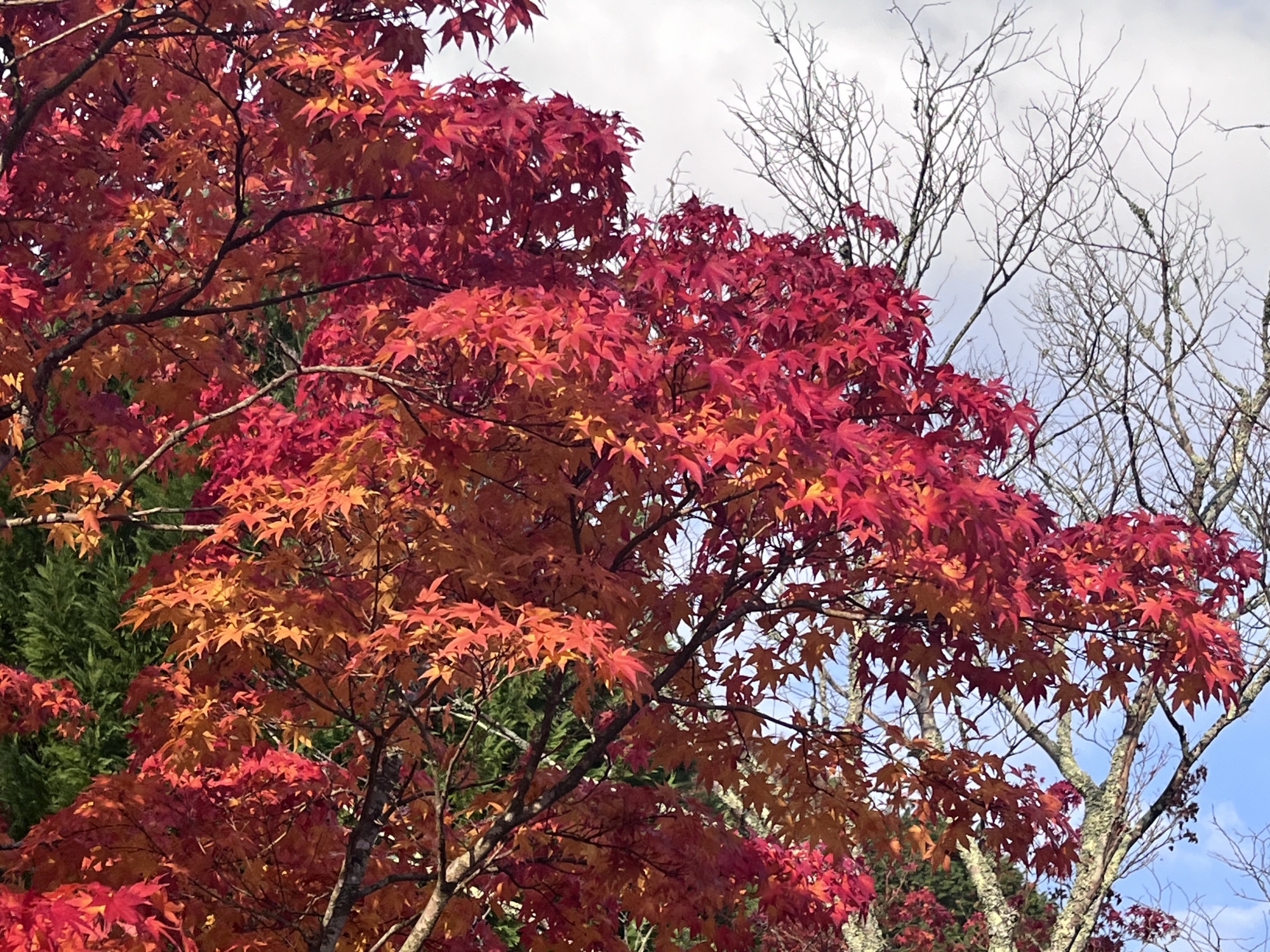さて、昼から……診療所横もかなり散っていて……歴史民俗資料館の横で、ドウダンツツジと紅葉.