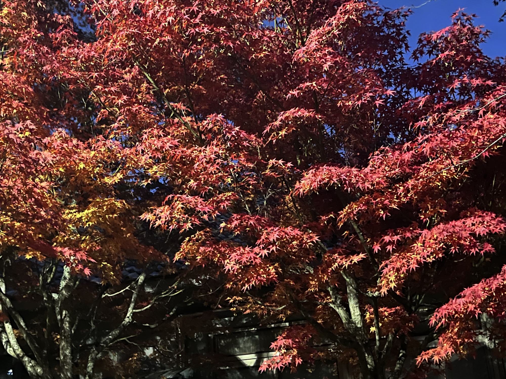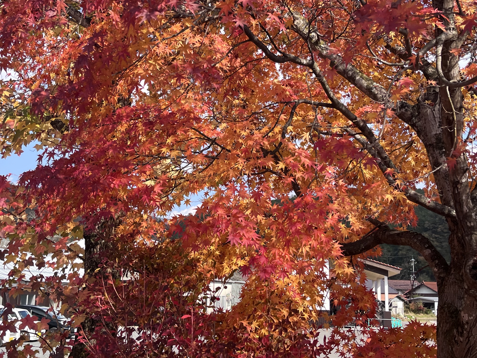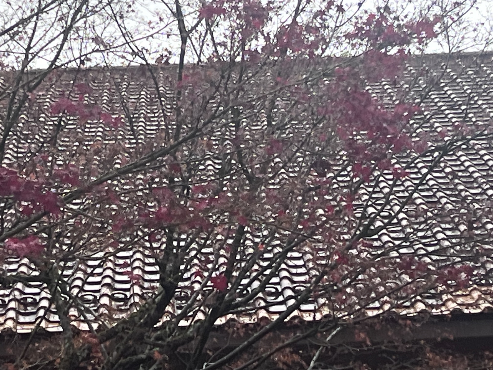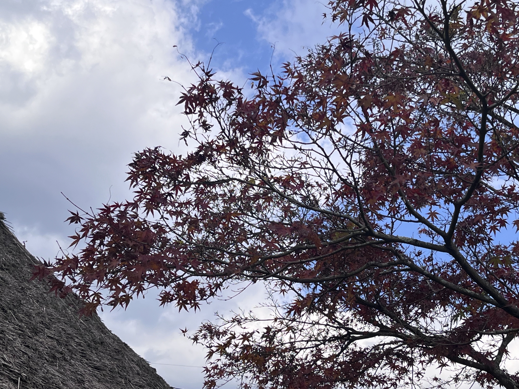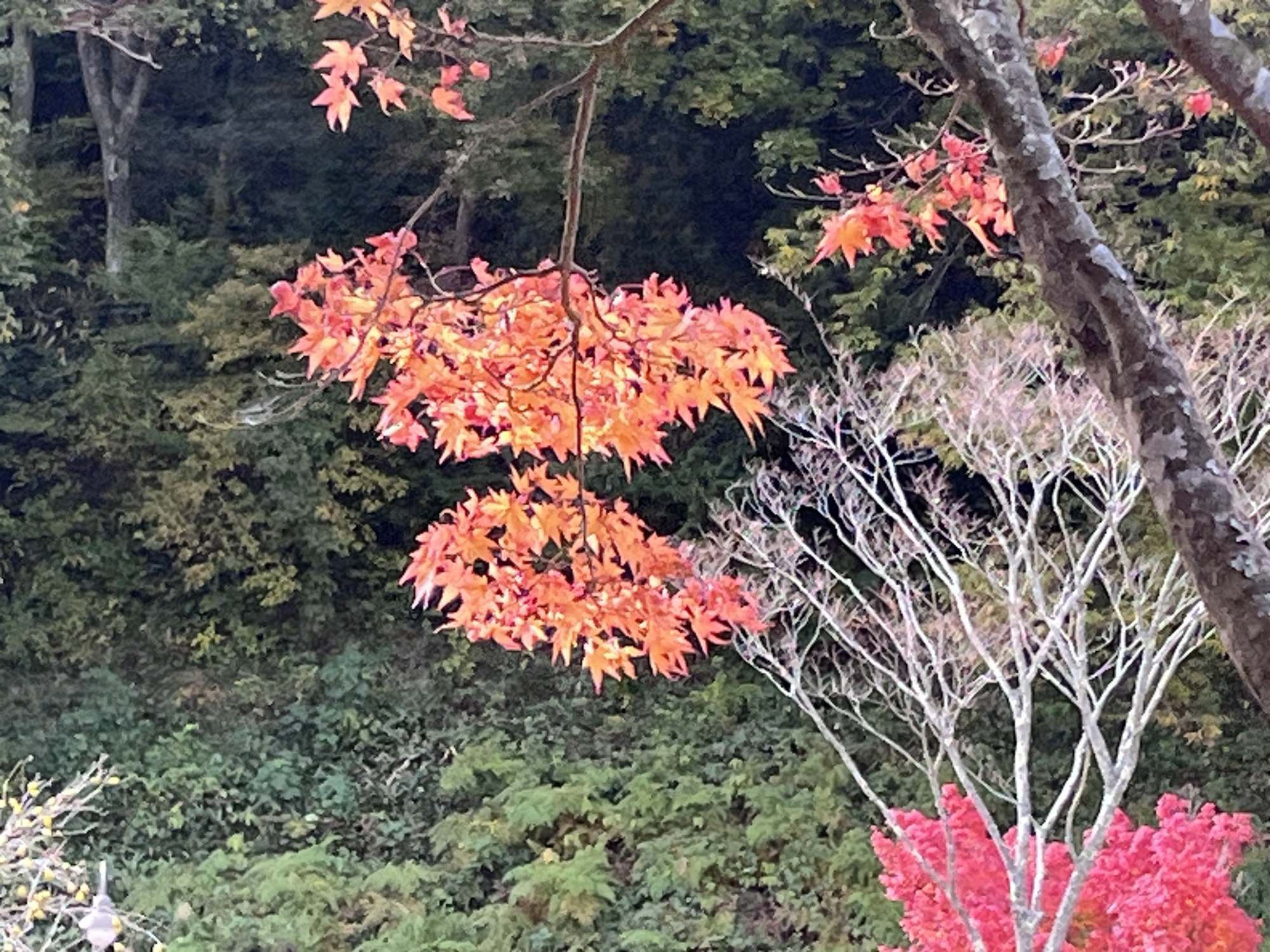 さて、昼から……診療所横もかなり散っていて……歴史民俗資料館の横で、ドウダンツツジと紅葉.