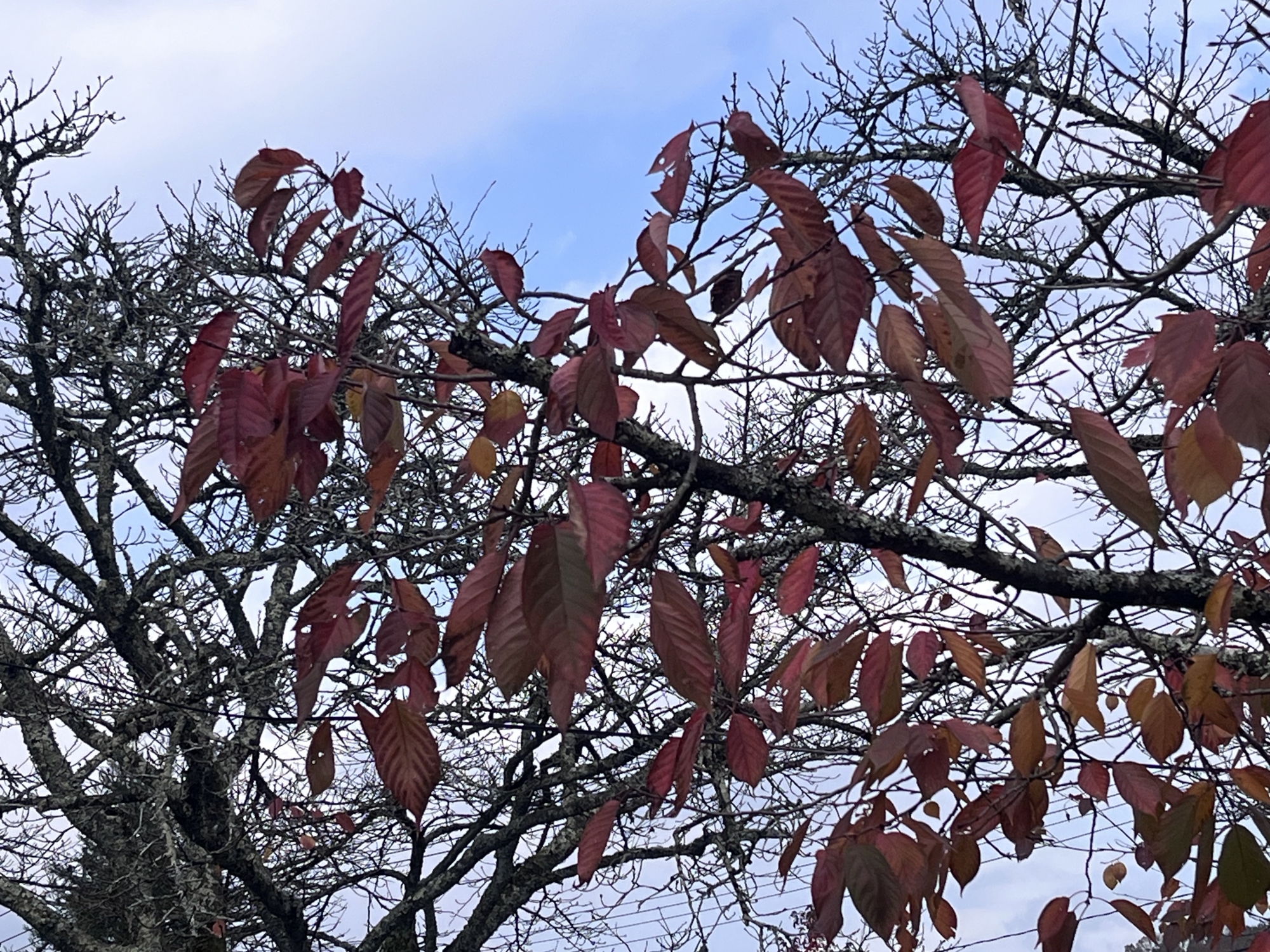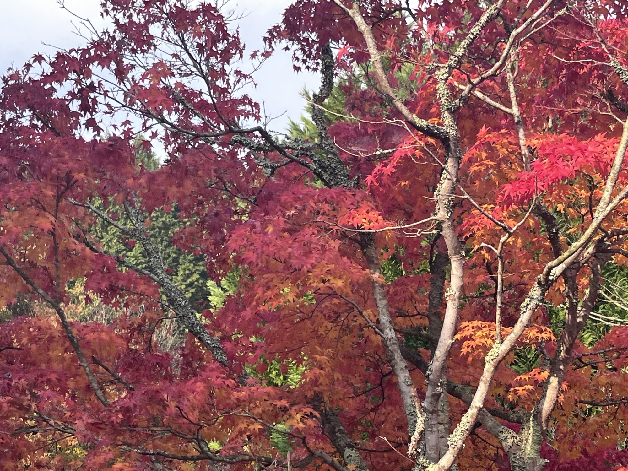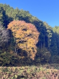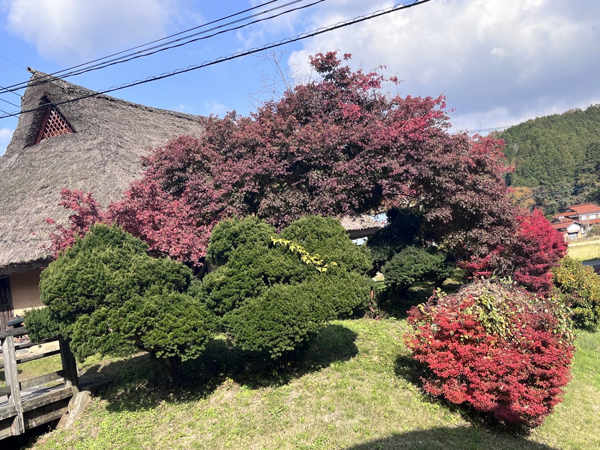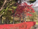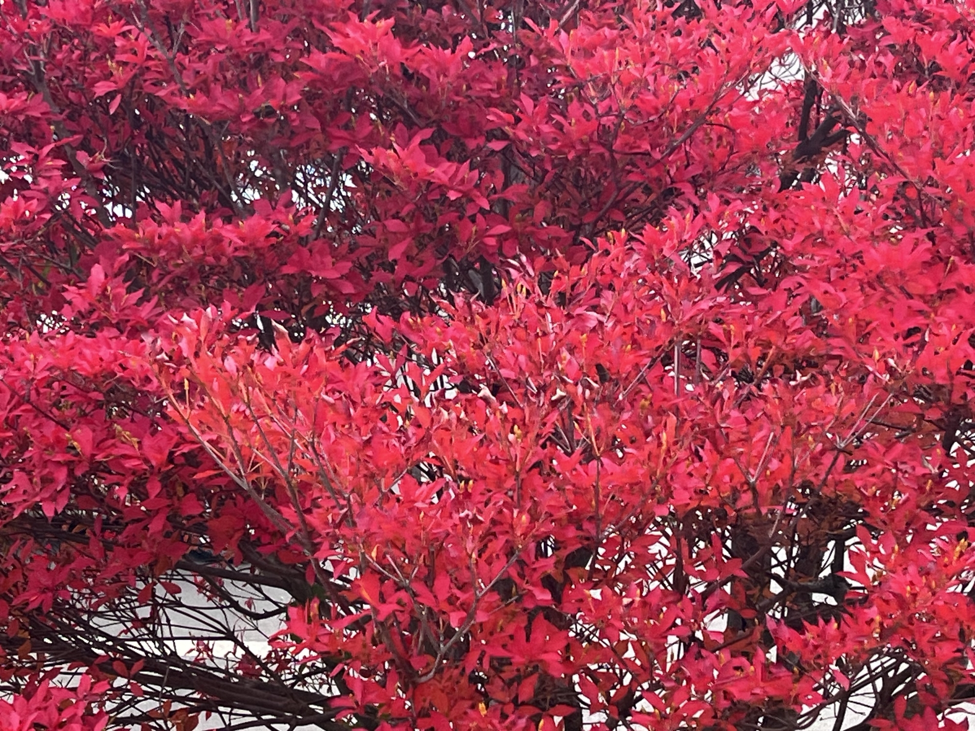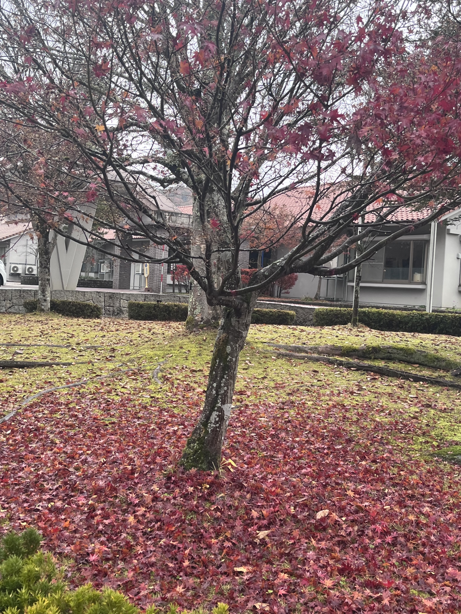 さて、昼から……診療所横もかなり散っていて……歴史民俗資料館の横で、ドウダンツツジと紅葉.